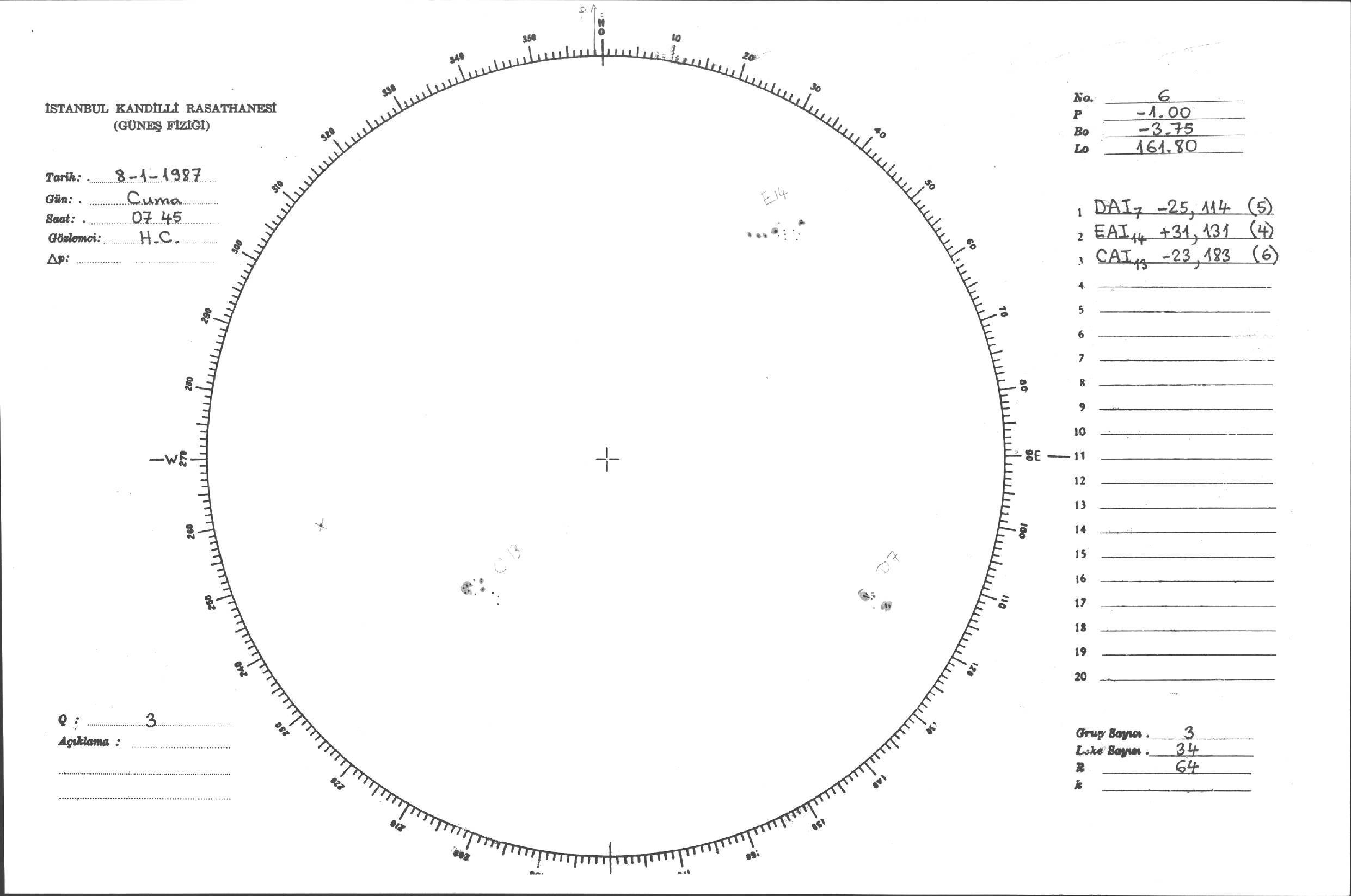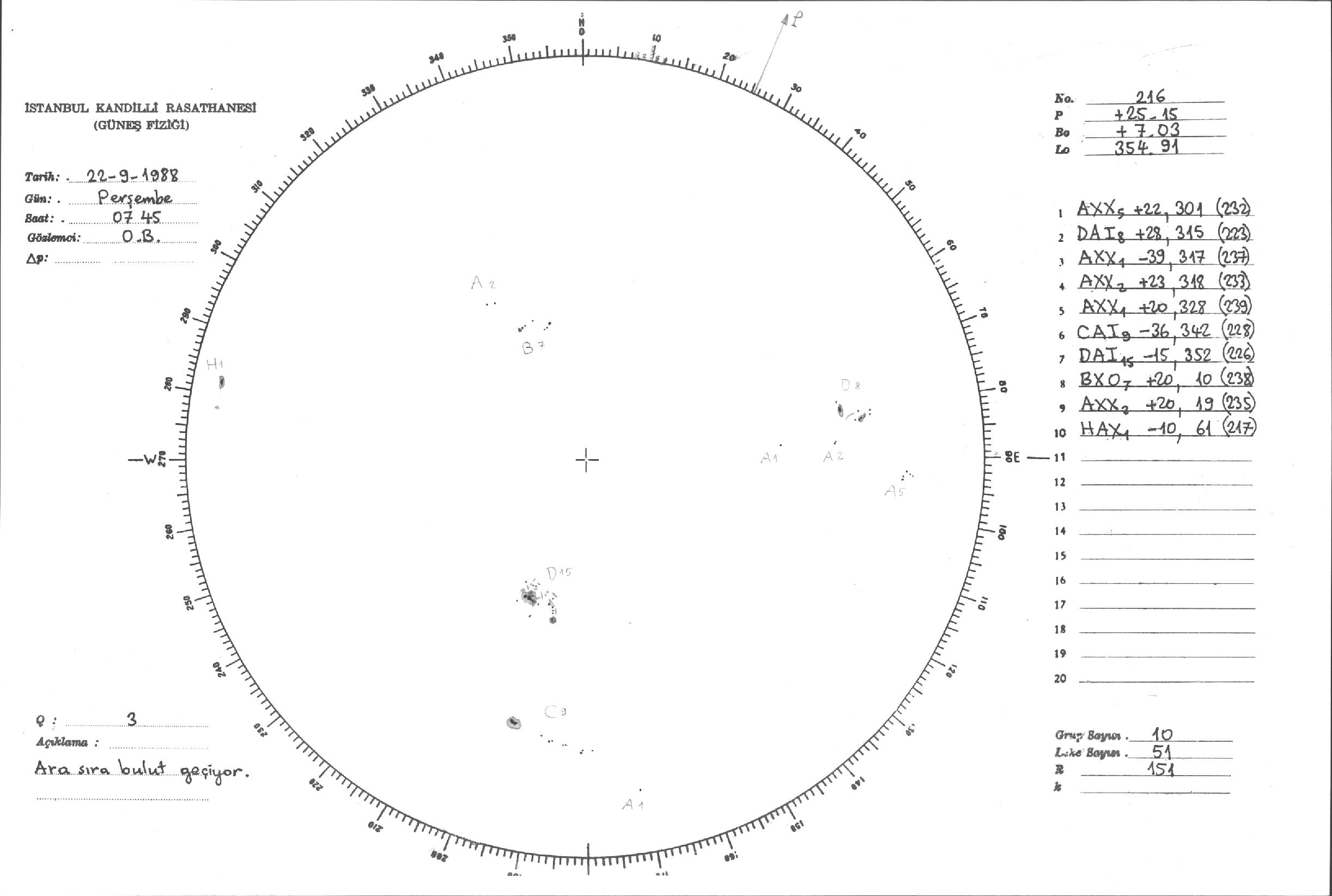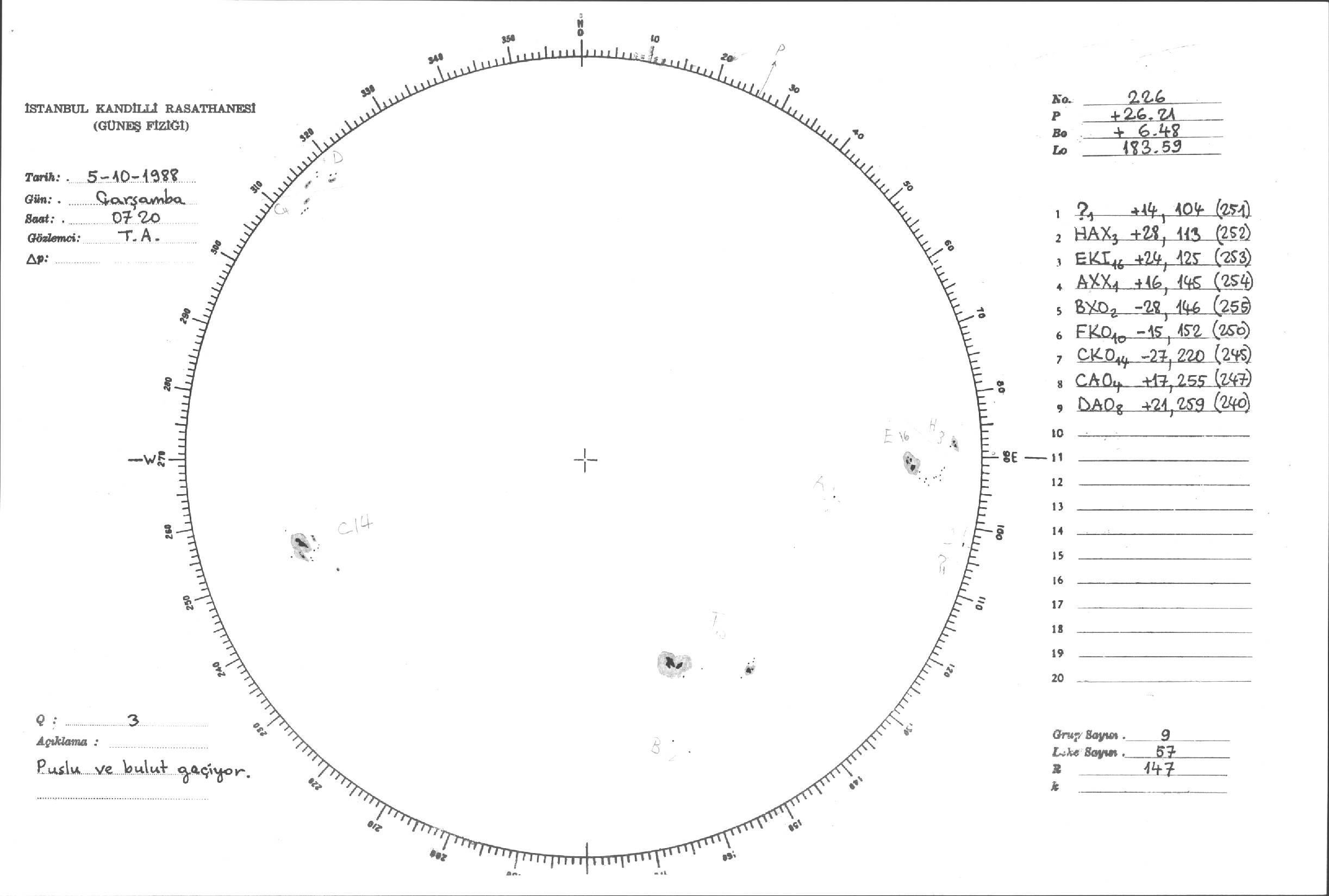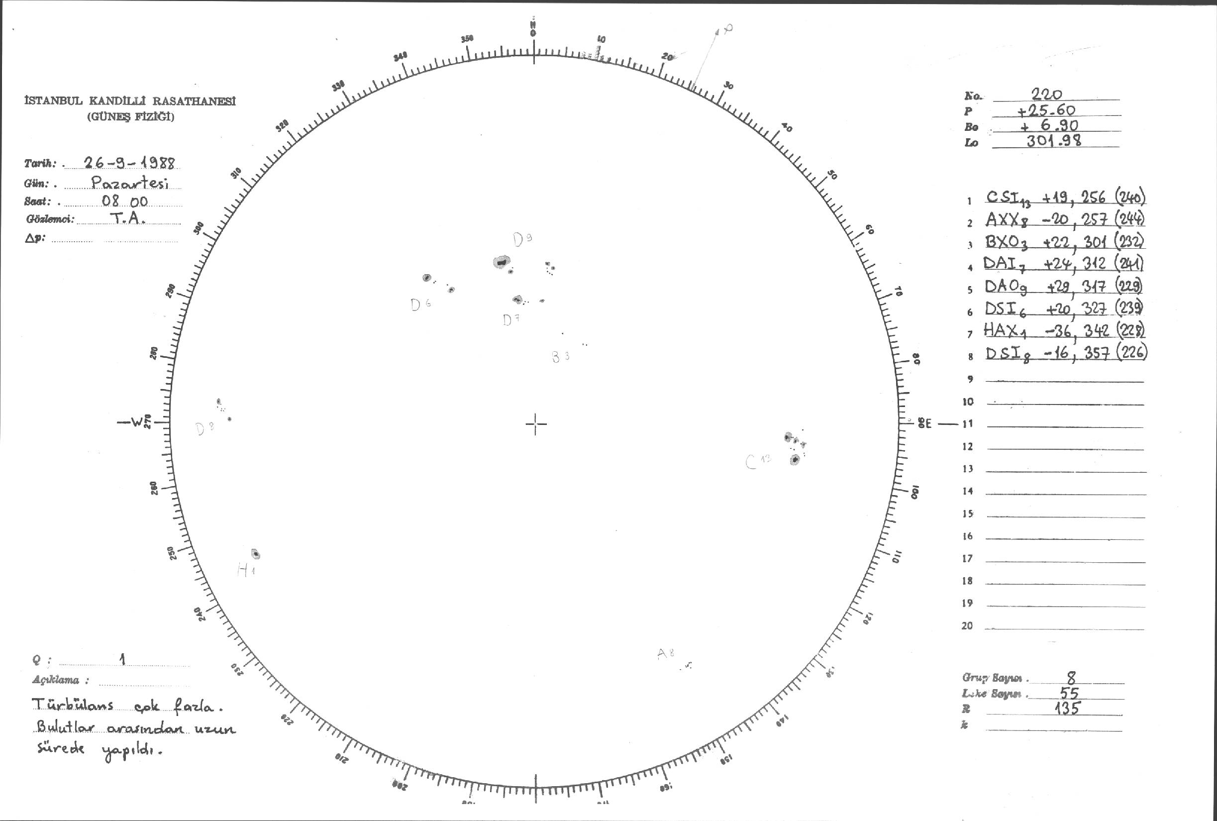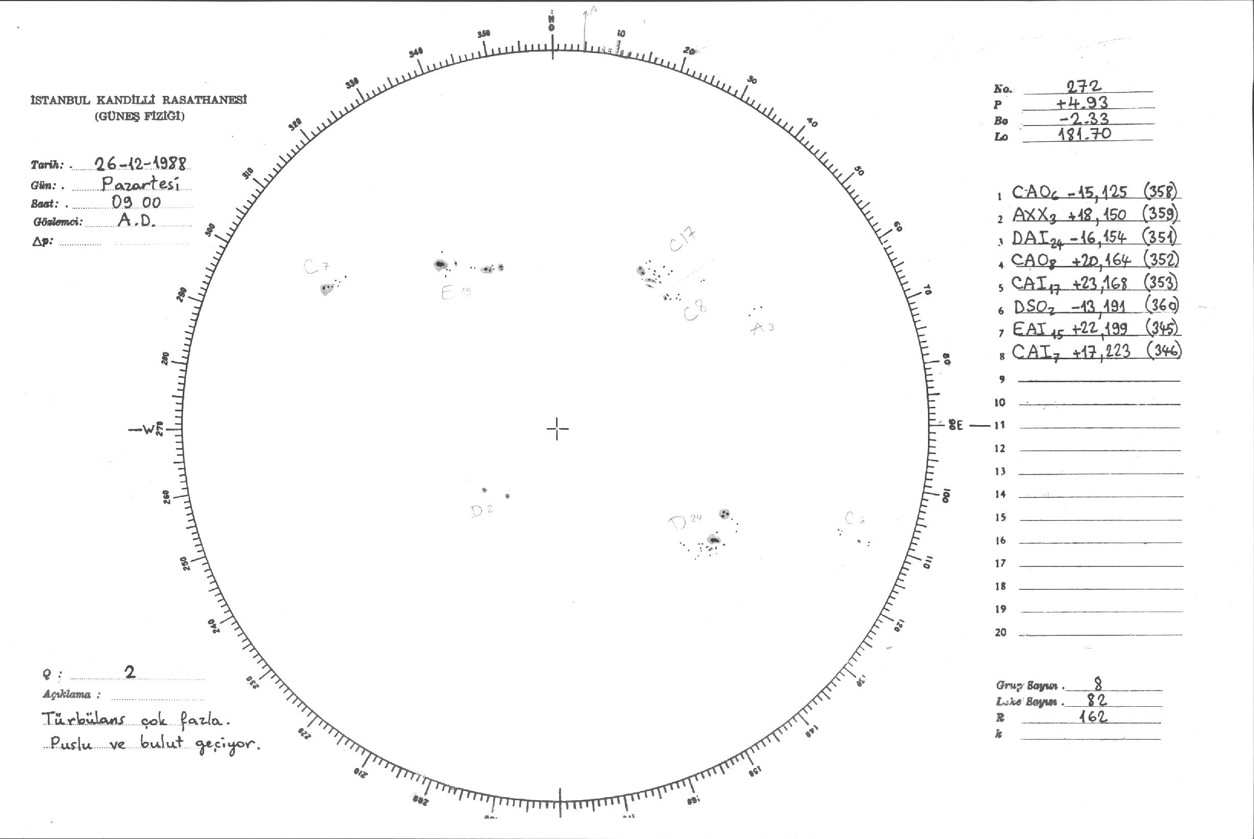 Güneş Lekesi Çizimleri / Kandilli Sunspot Drawings