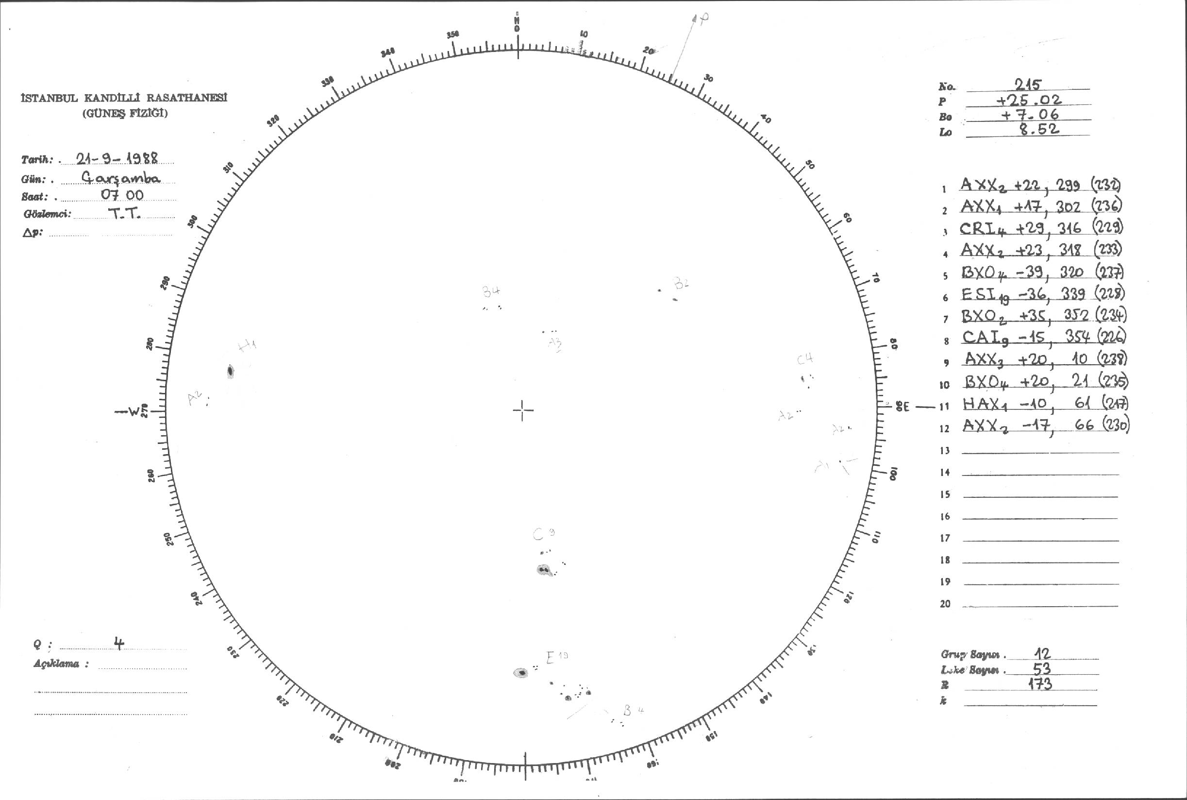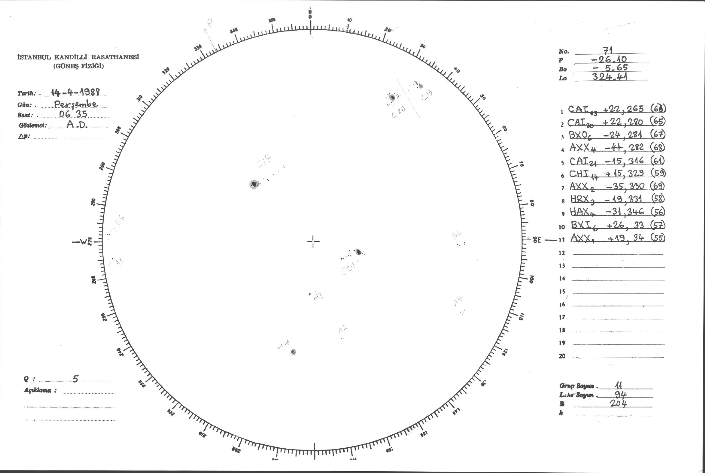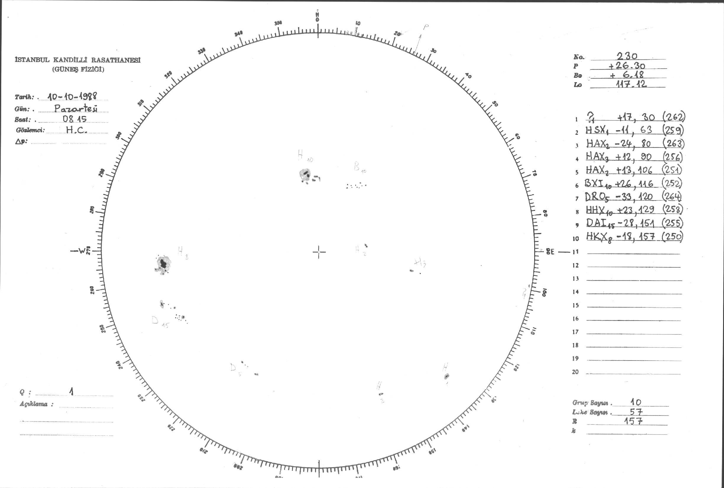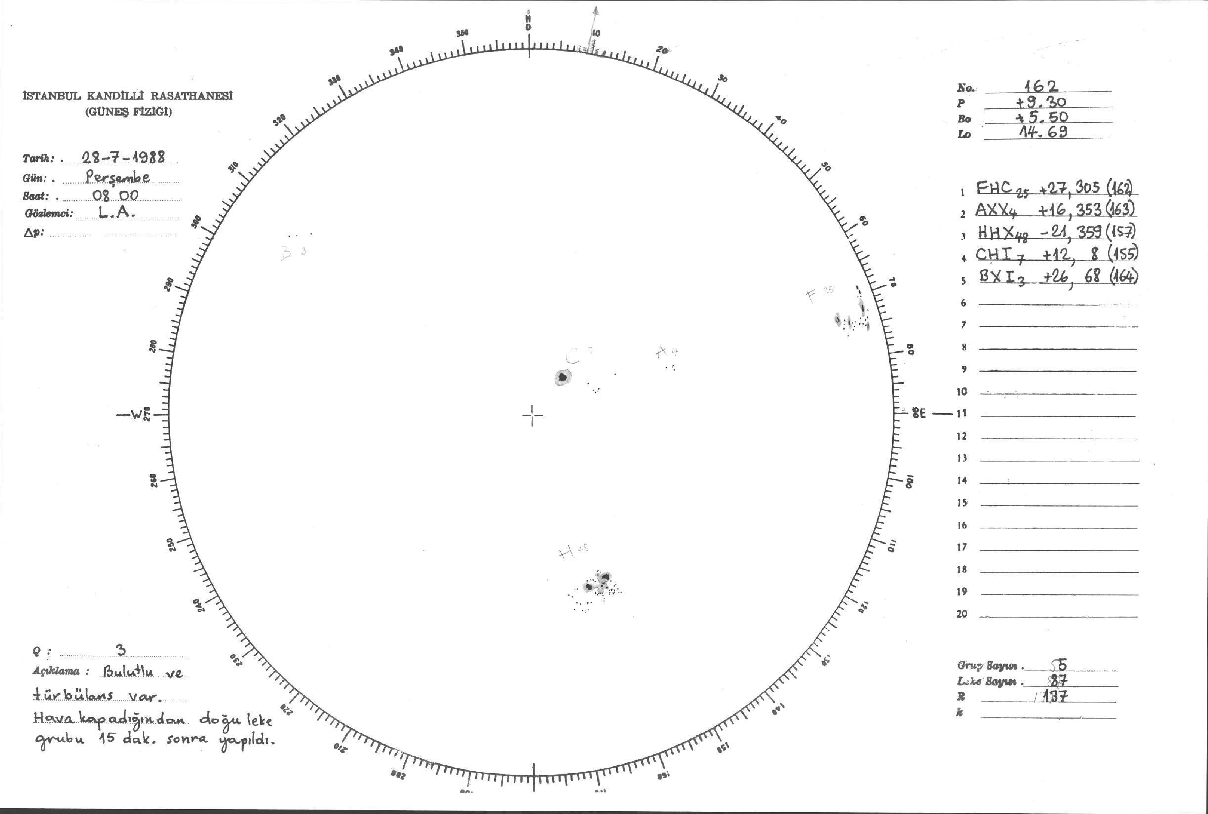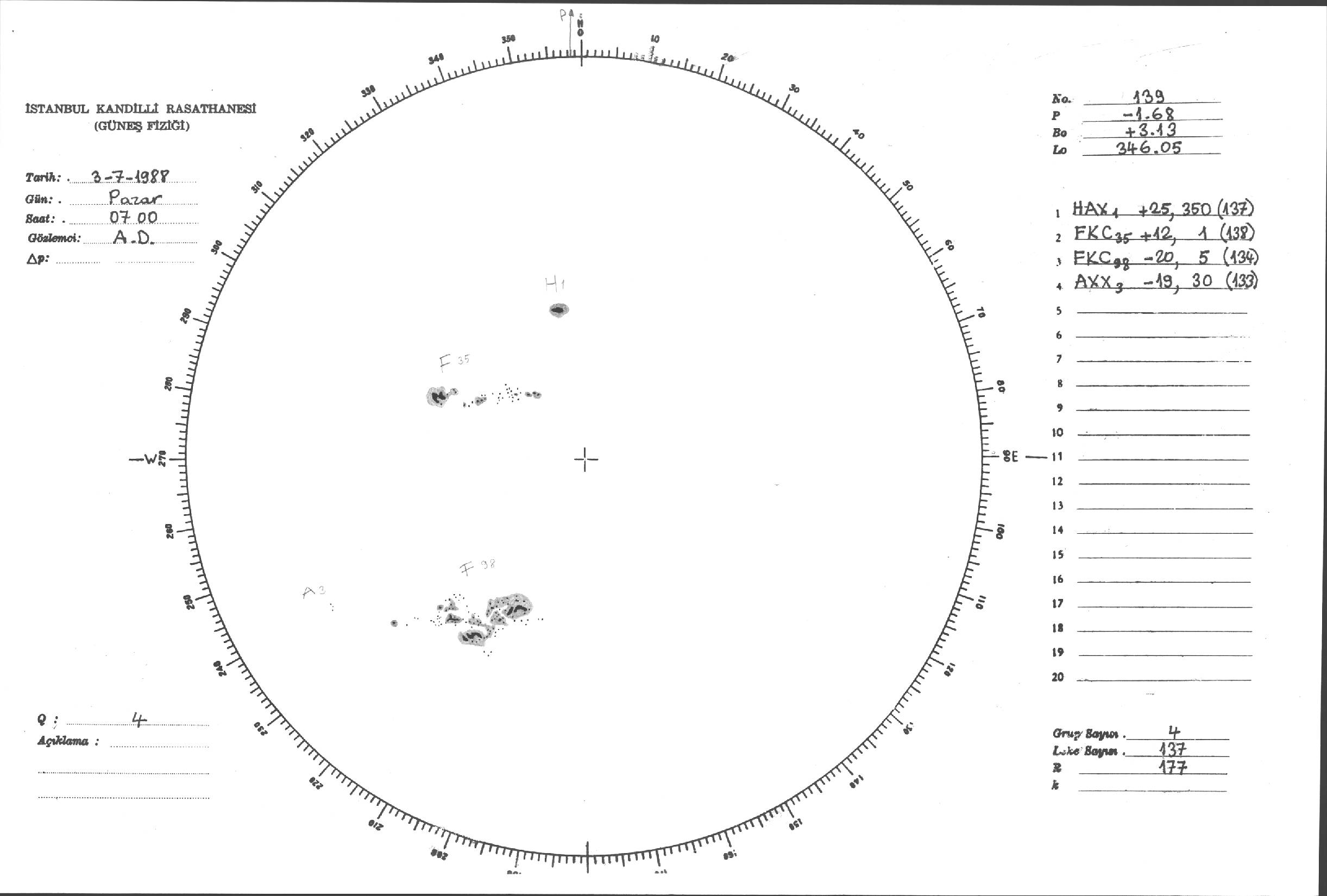 Güneş Lekesi Çizimleri / Kandilli Sunspot Drawings