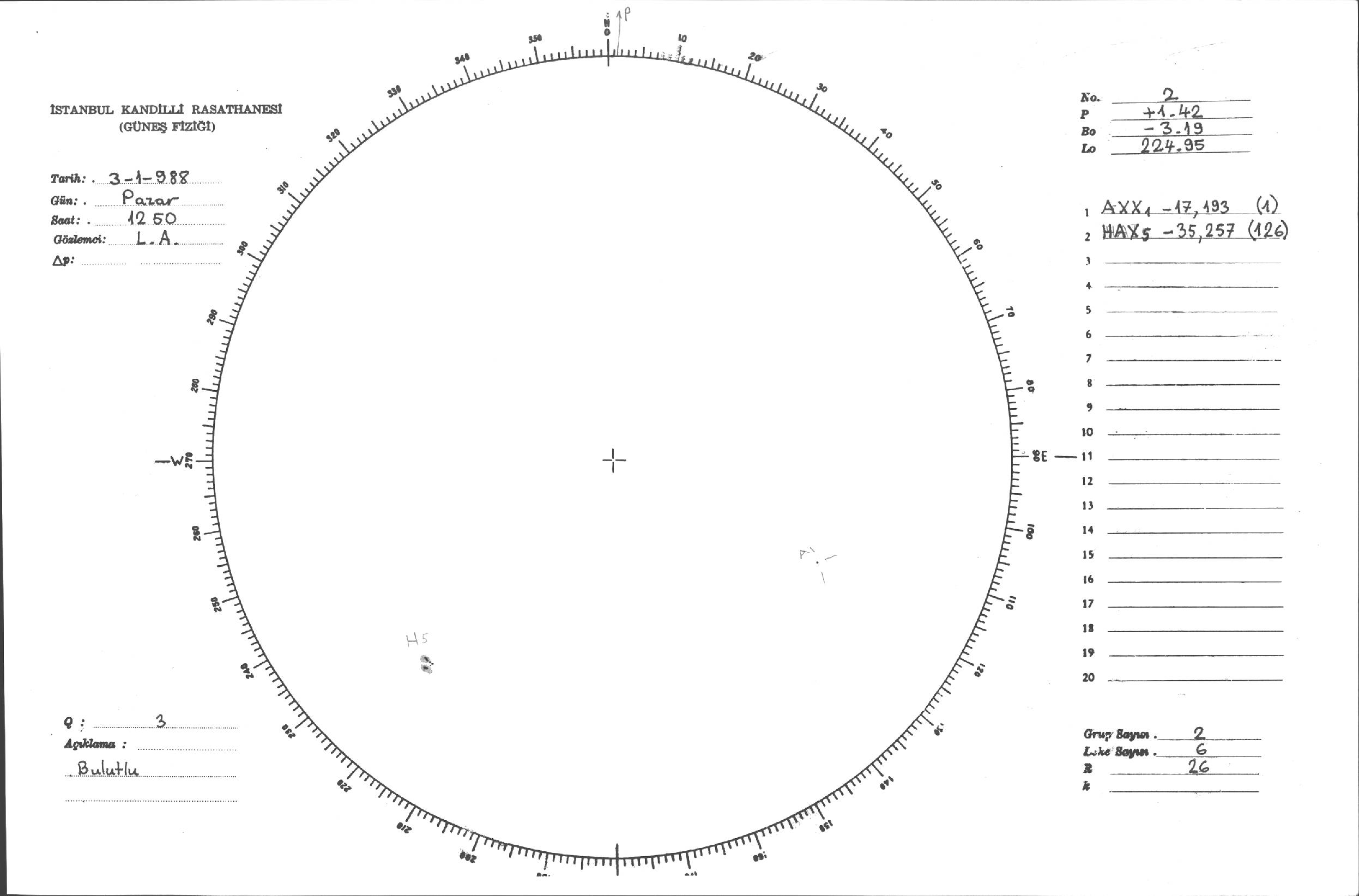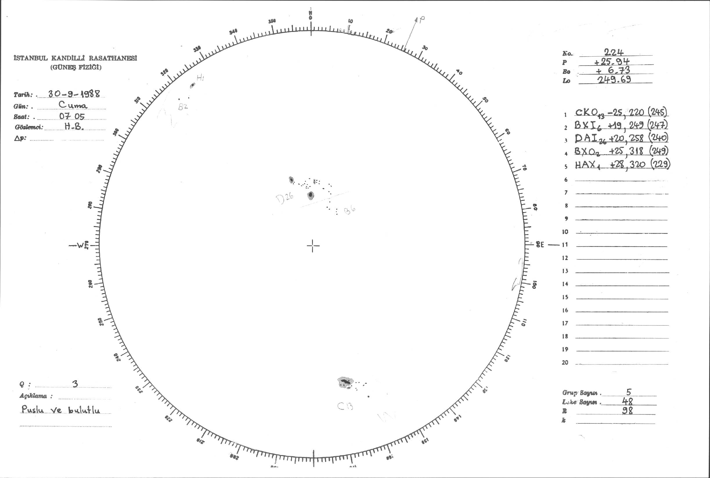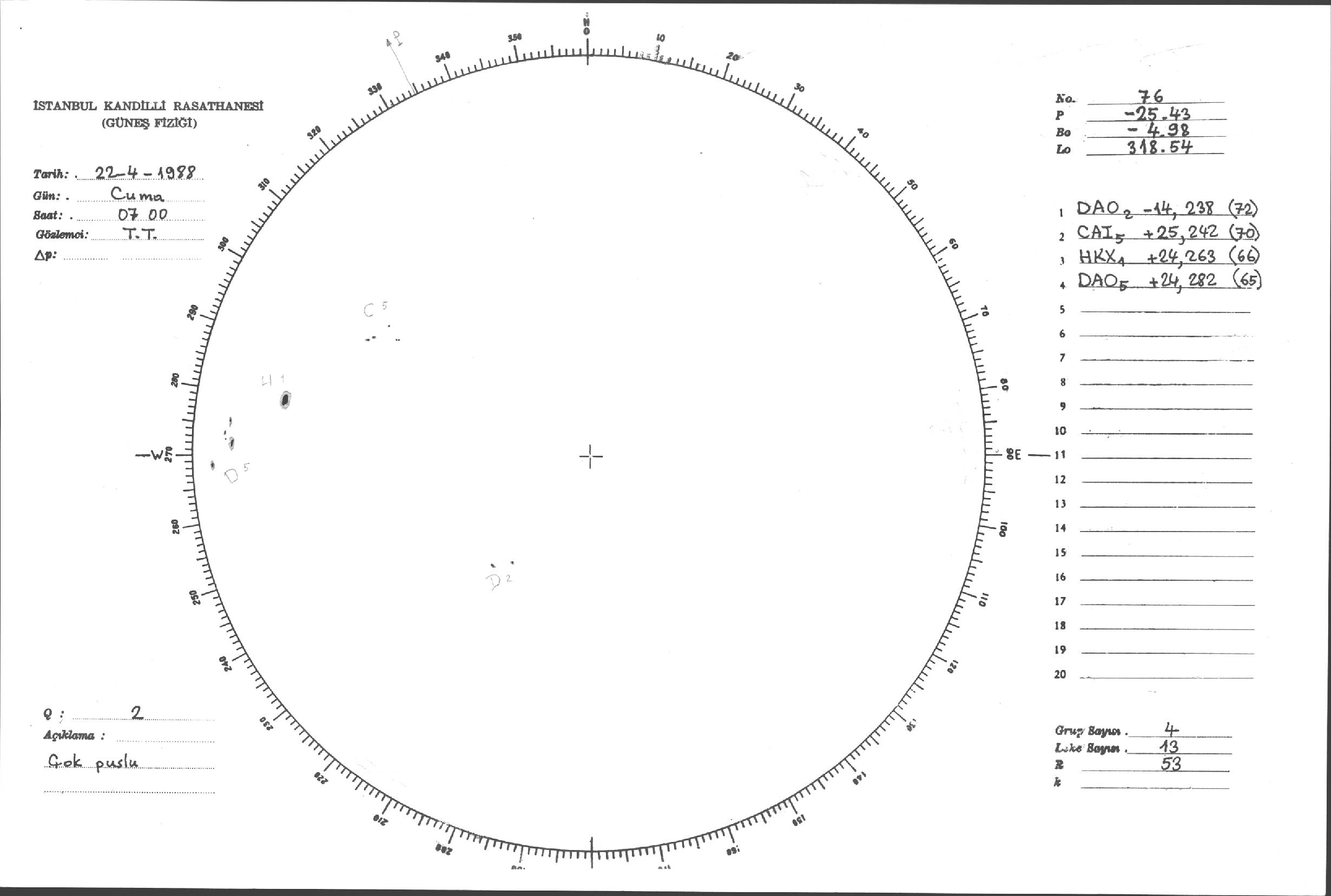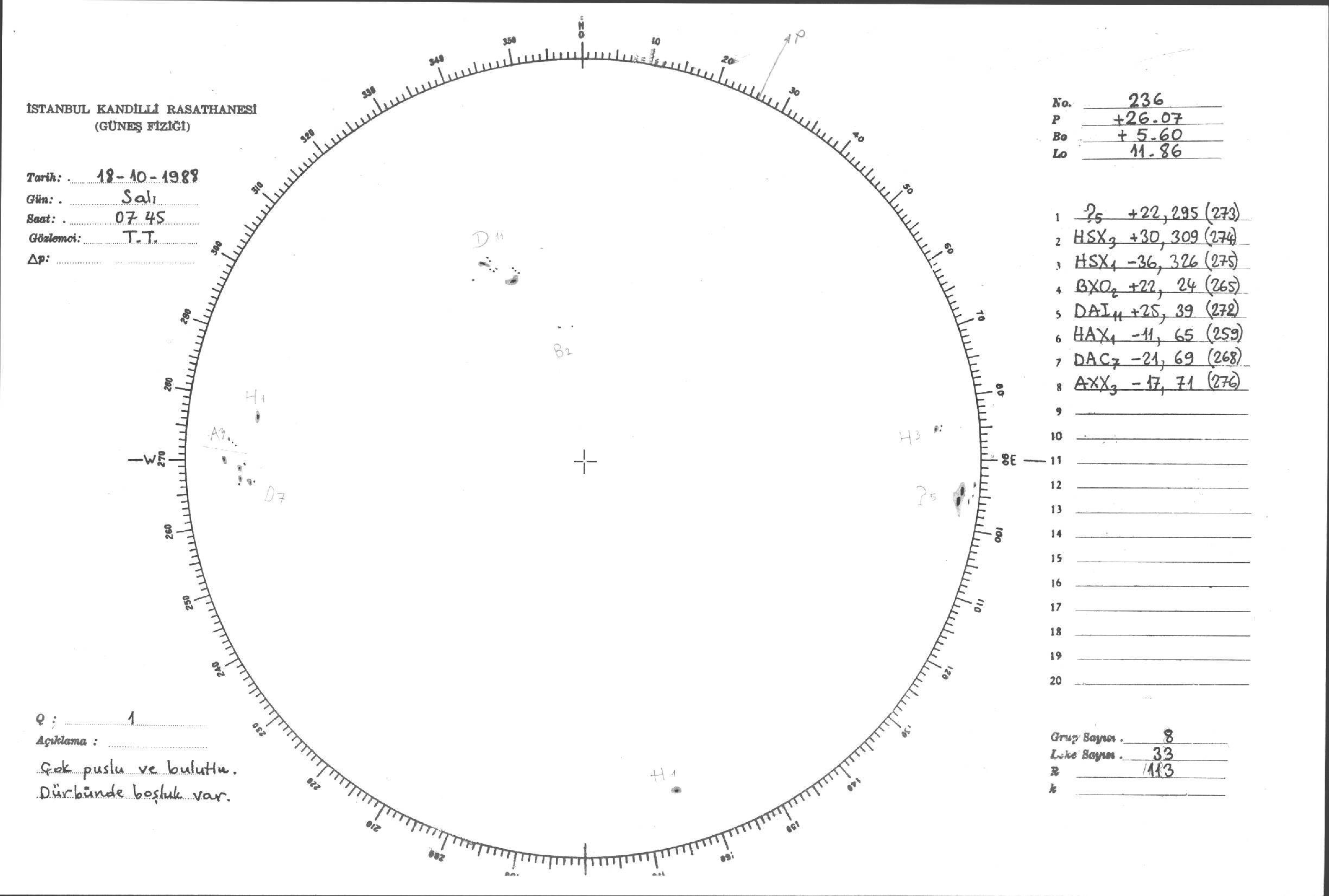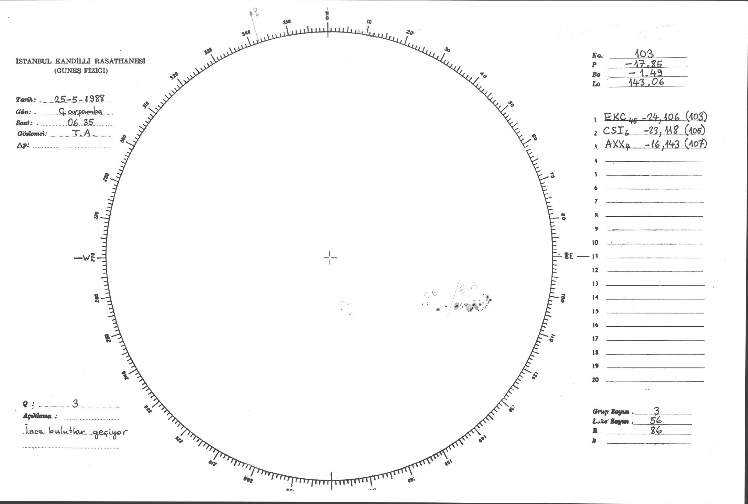 Güneş Lekesi Çizimleri / Kandilli Sunspot Drawings