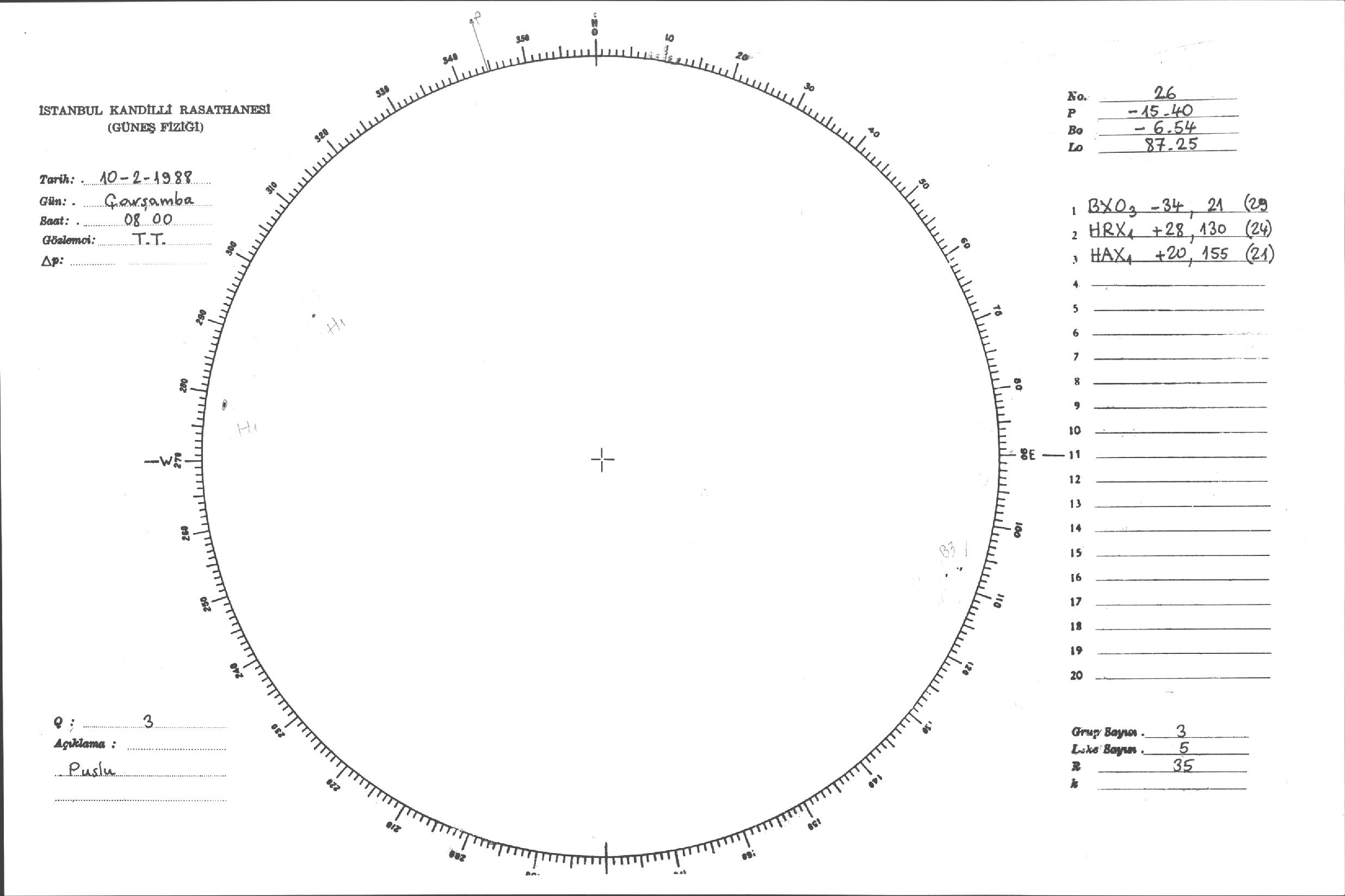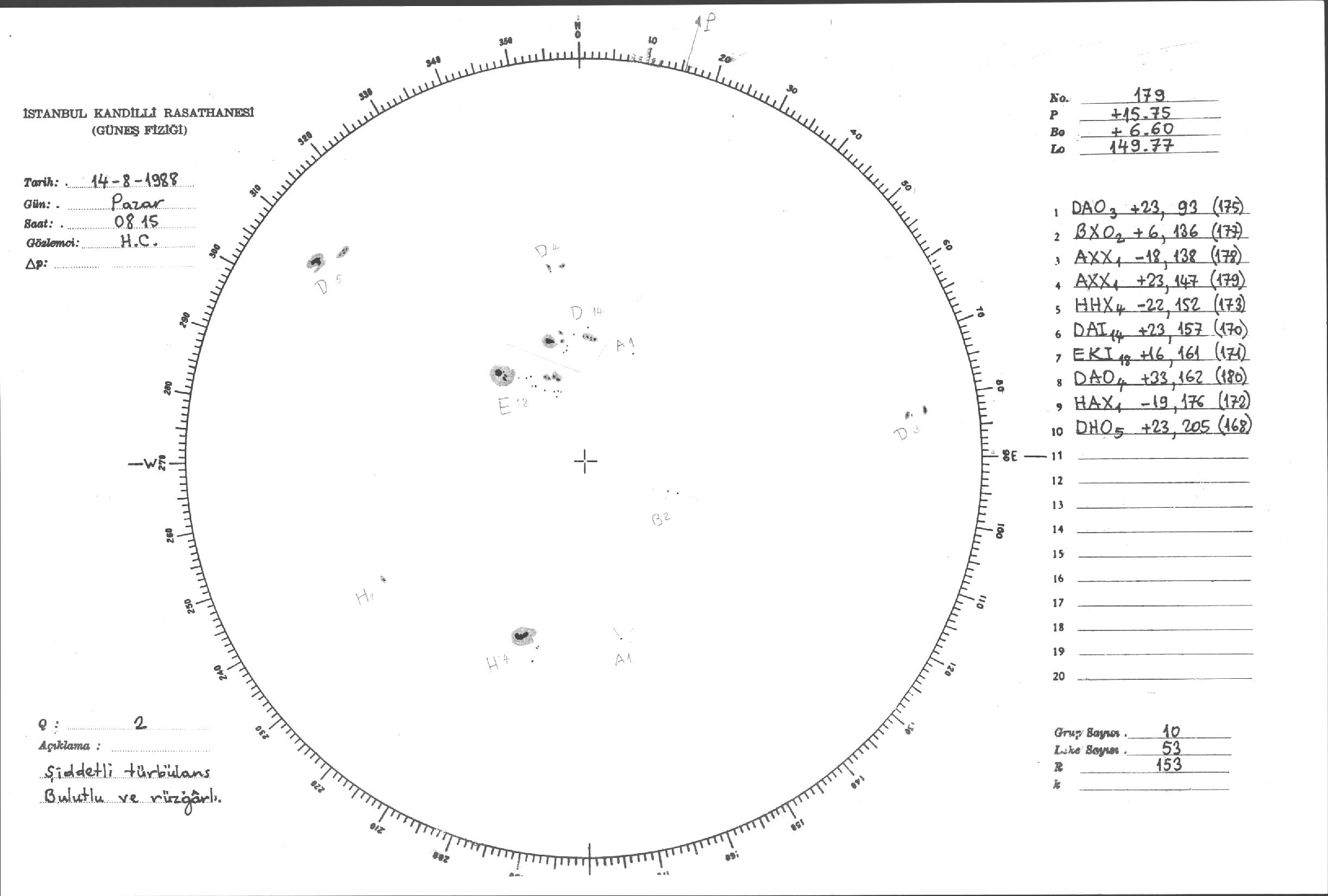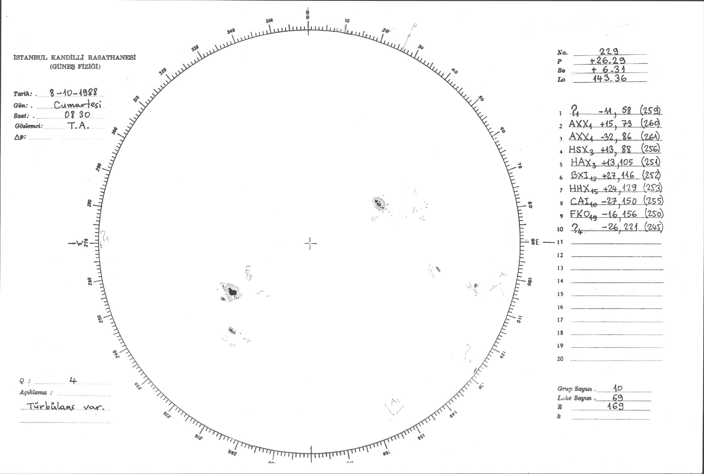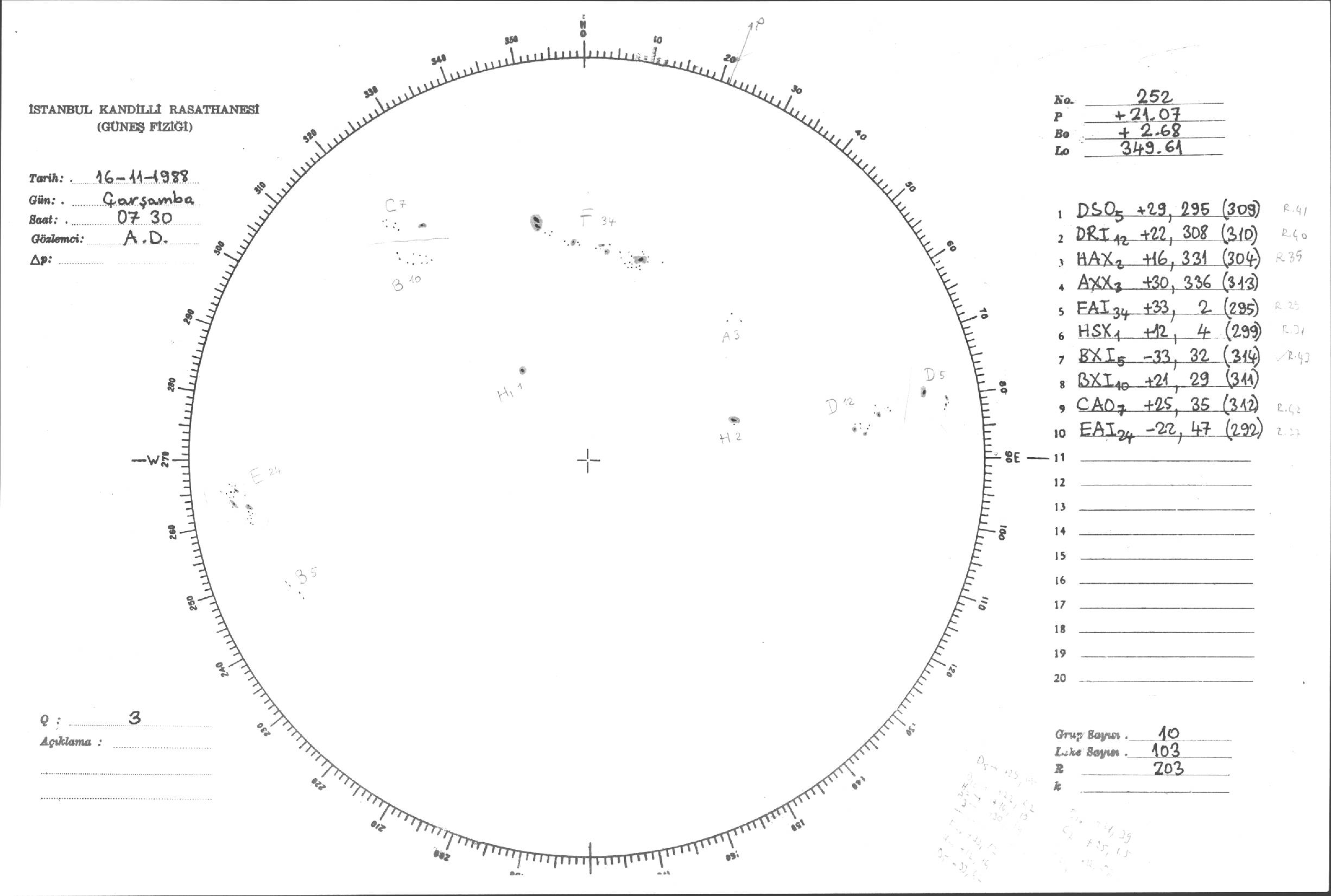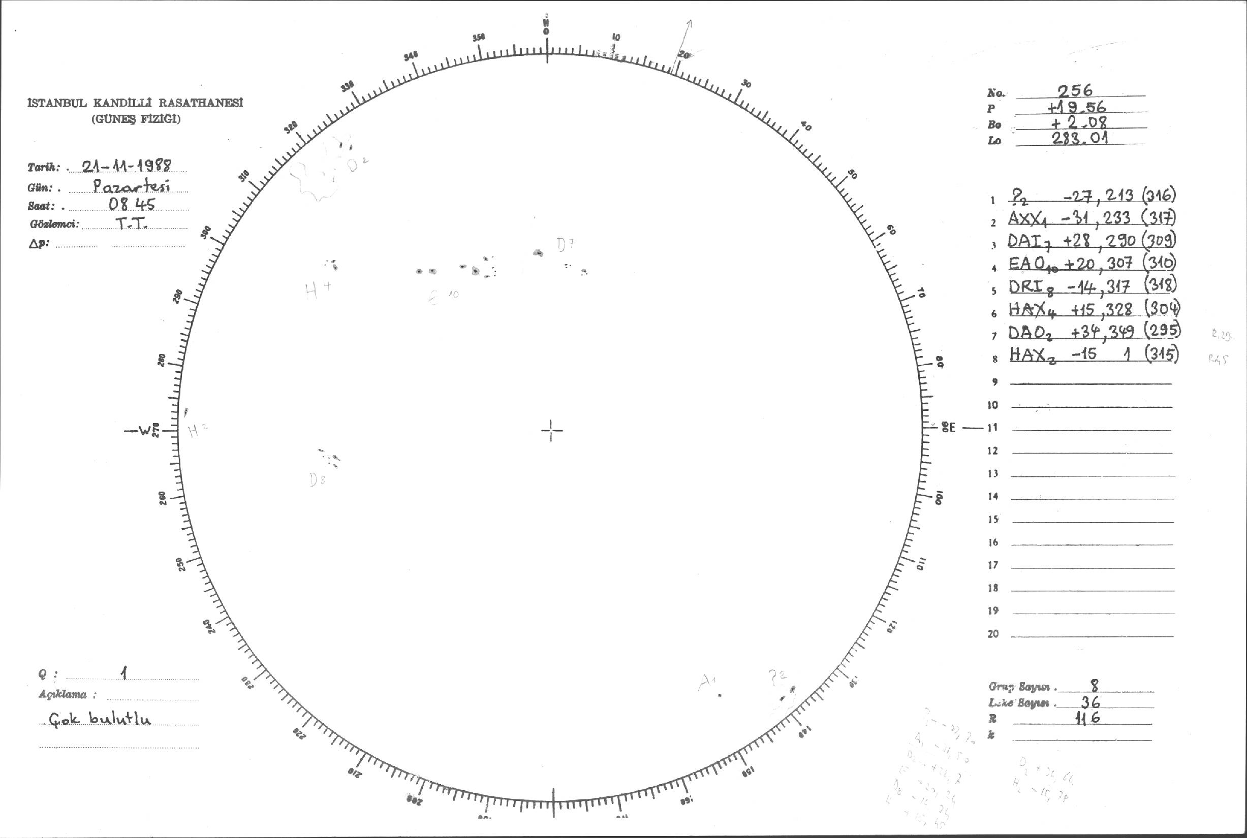 Güneş Lekesi Çizimleri / Kandilli Sunspot Drawings