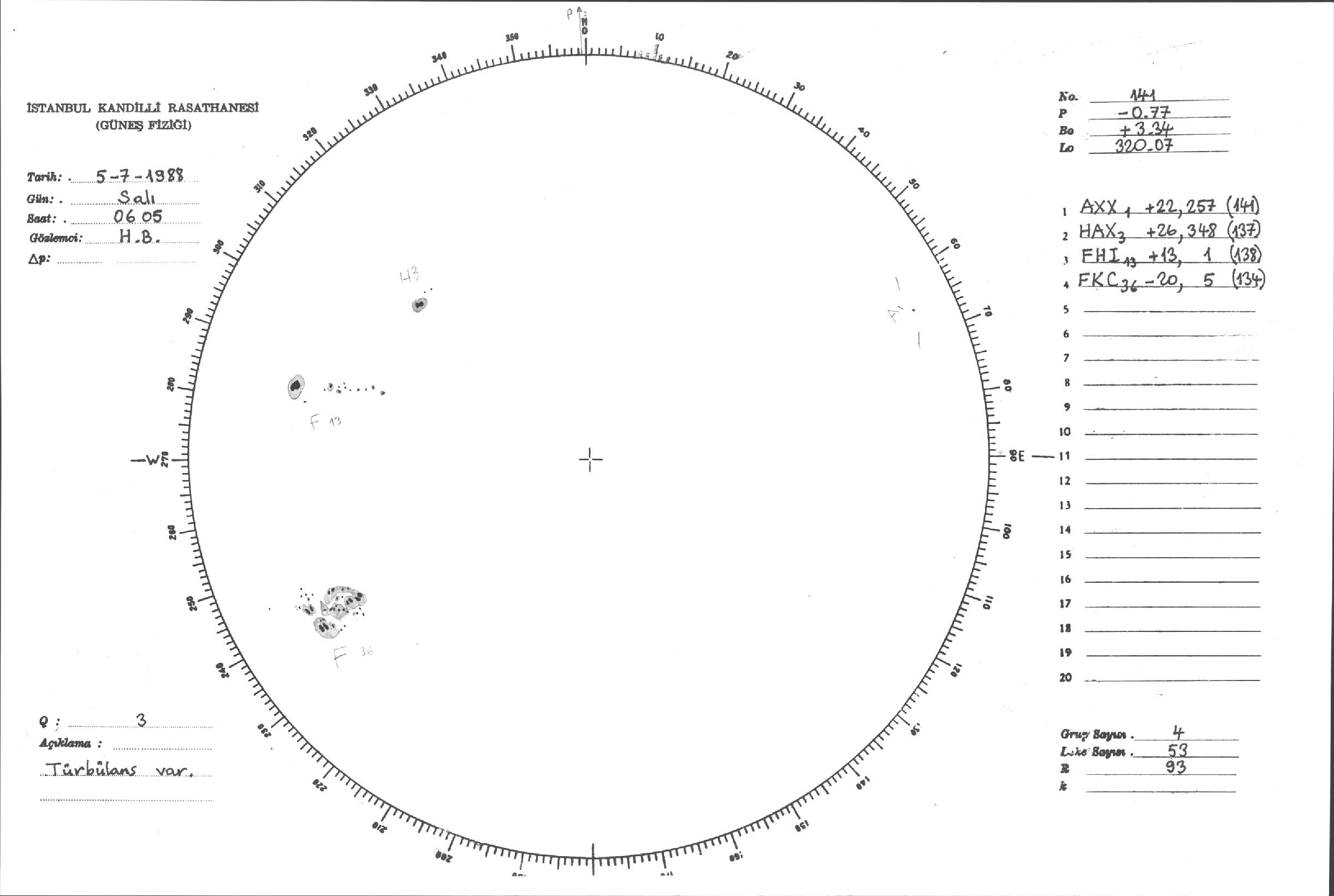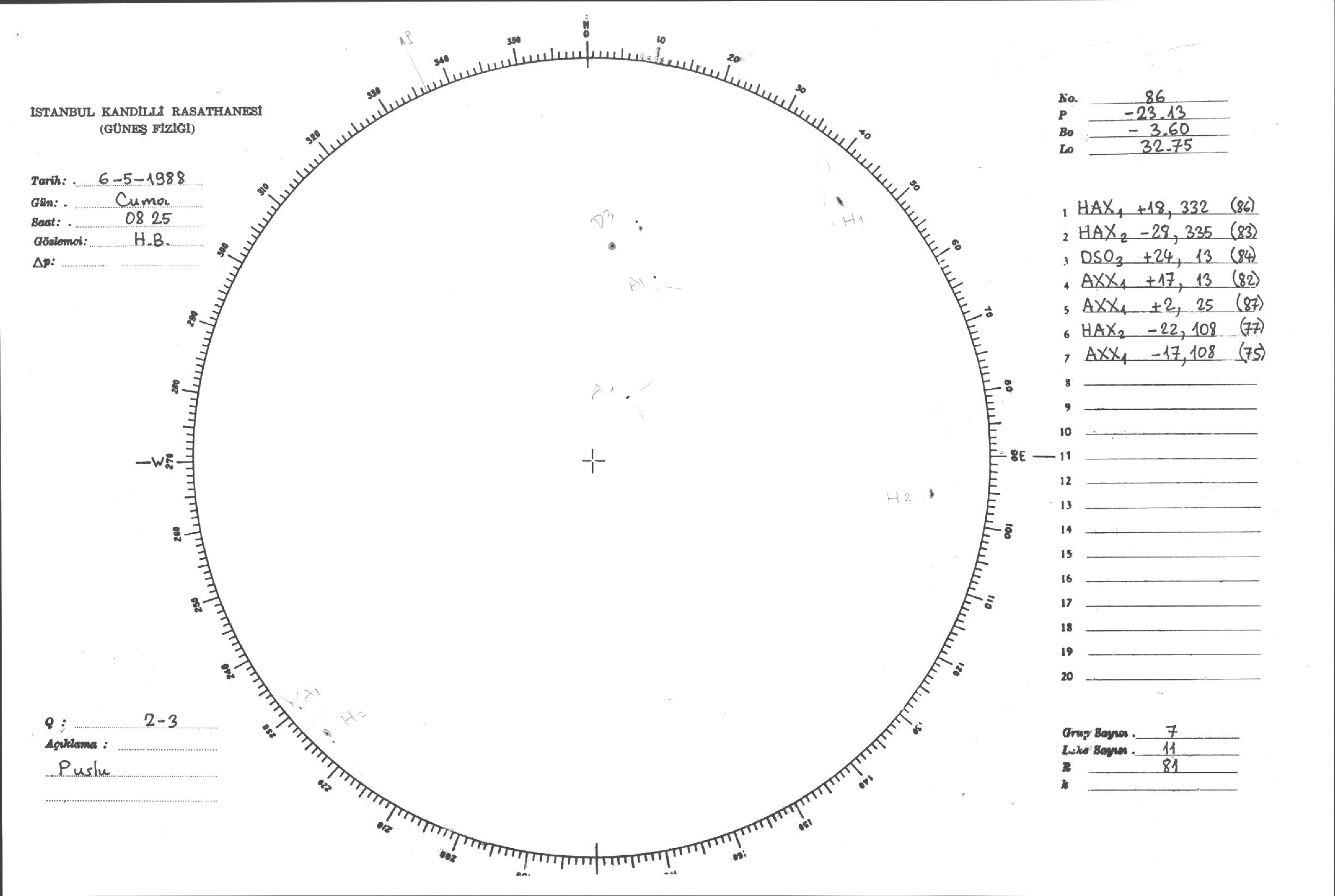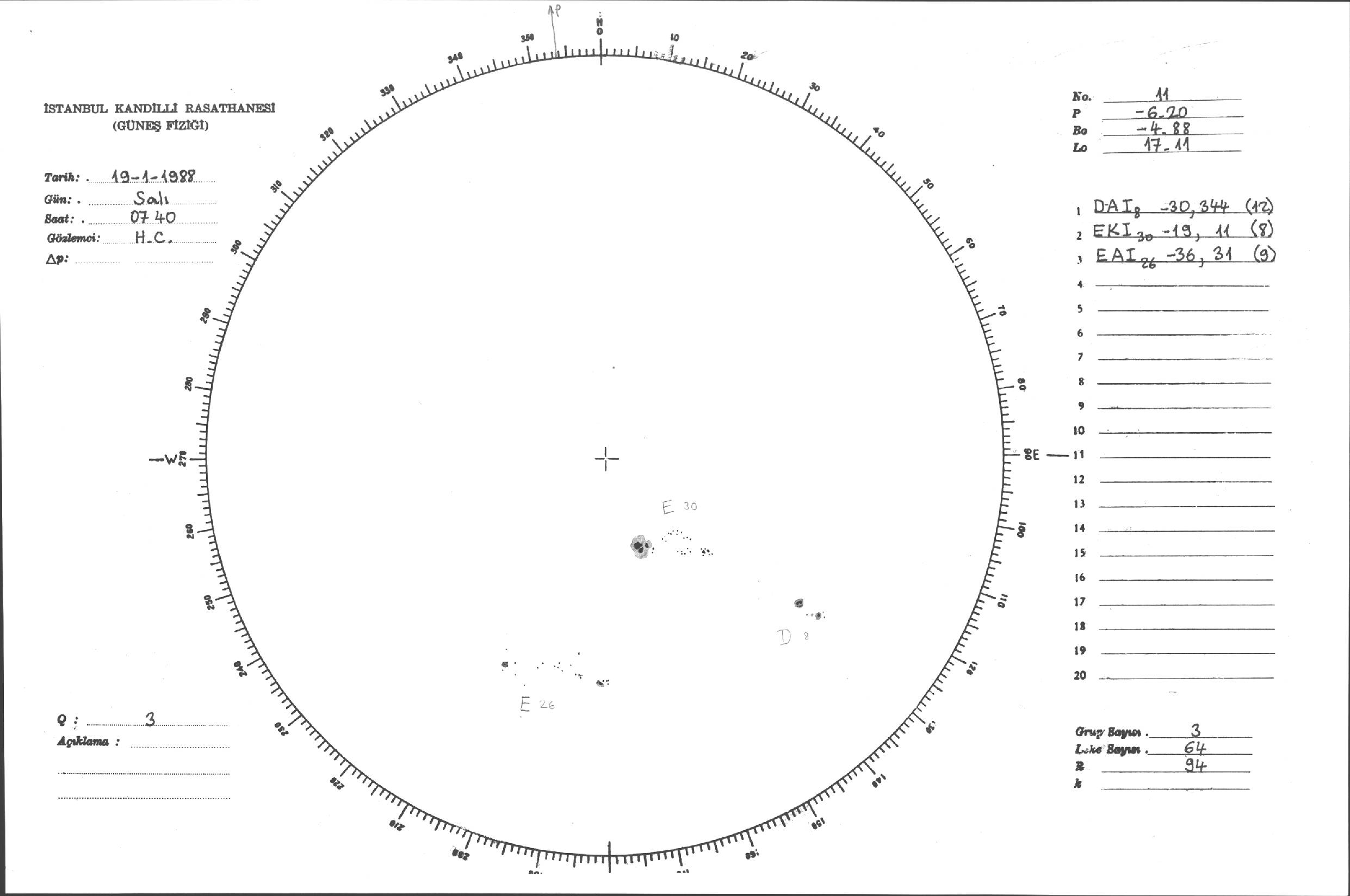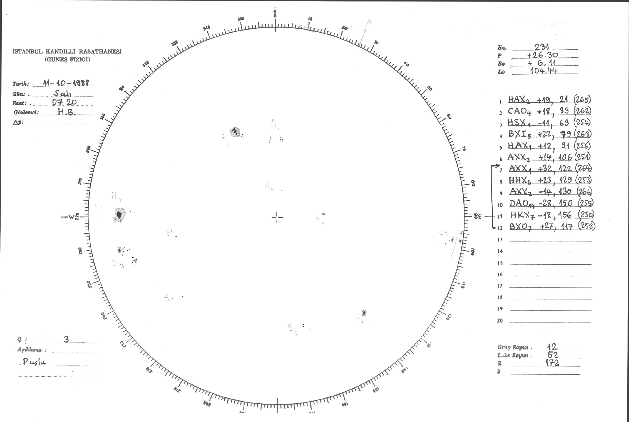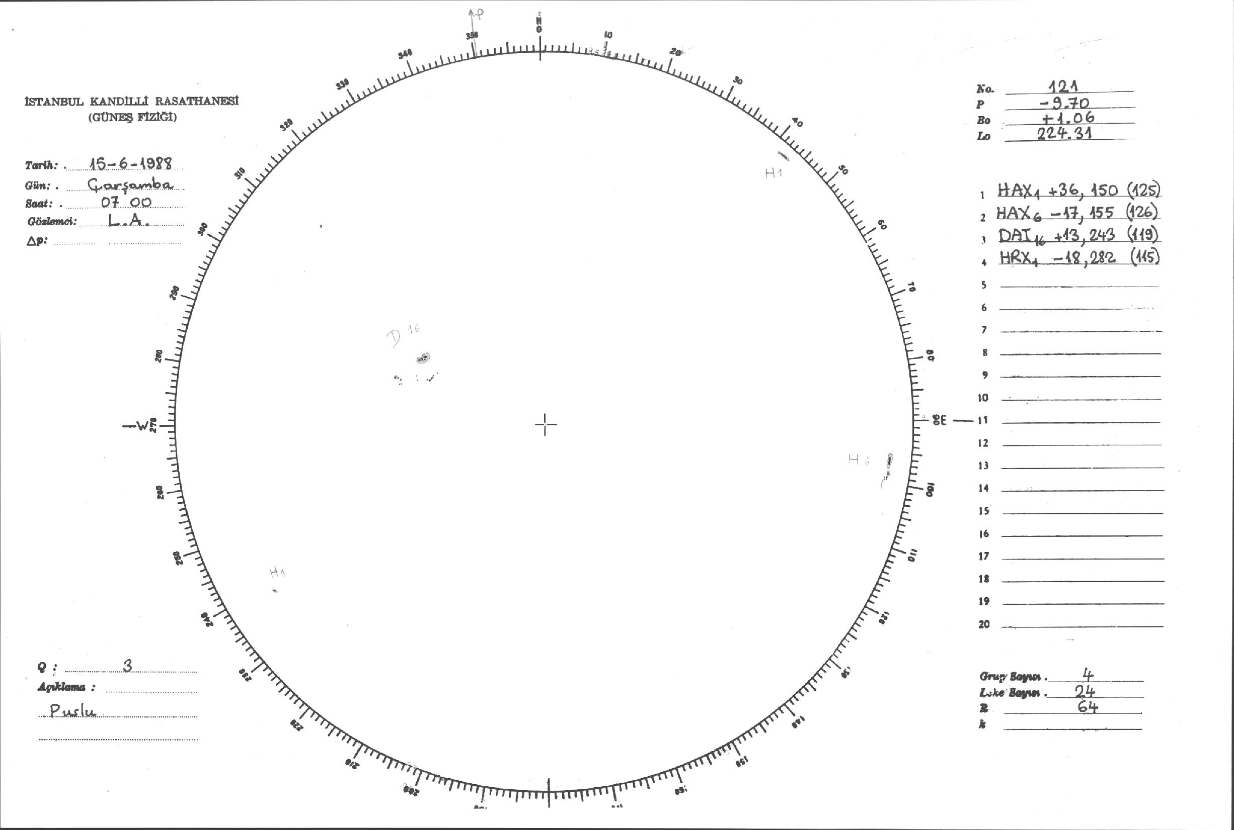 Güneş Lekesi Çizimleri / Kandilli Sunspot Drawings