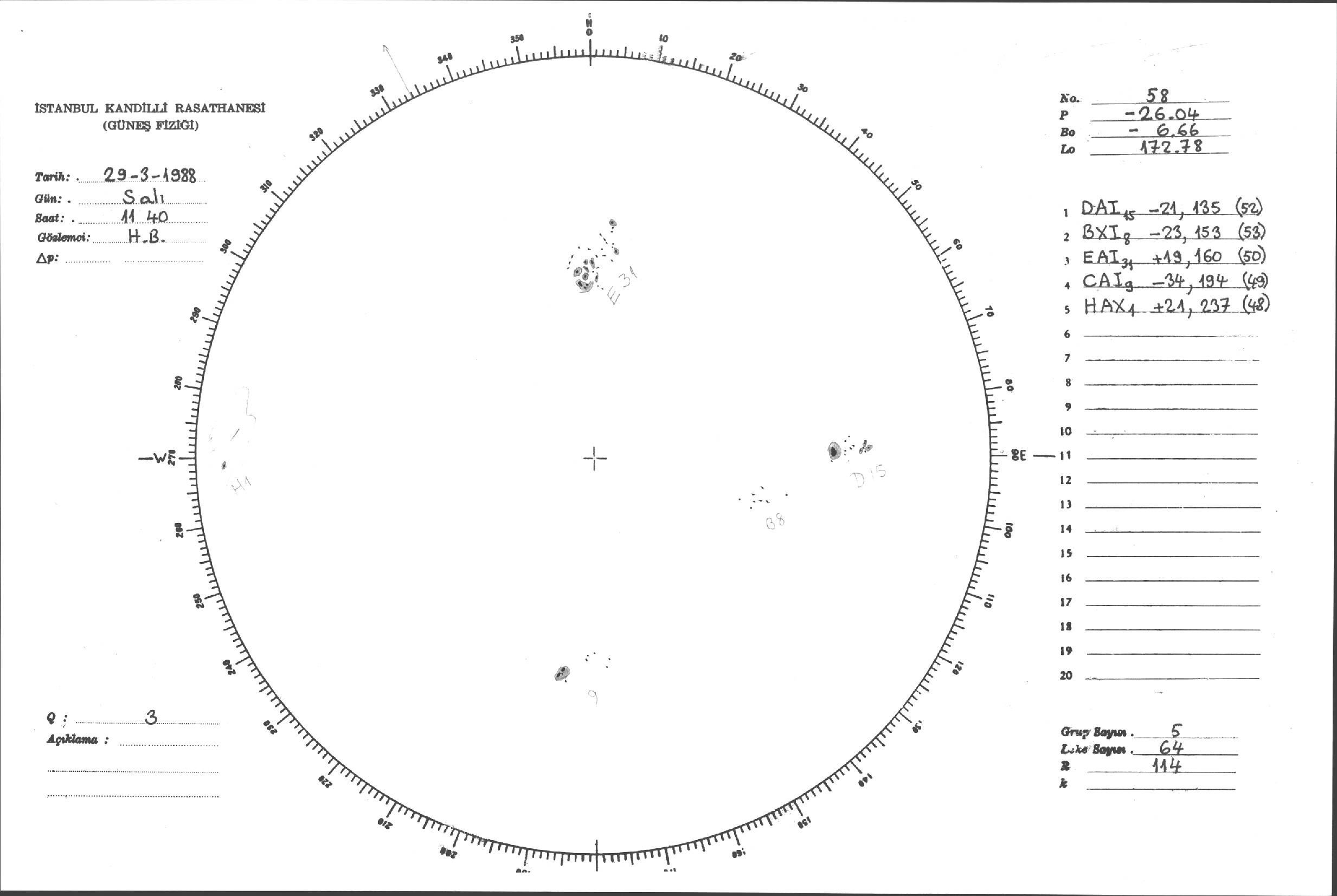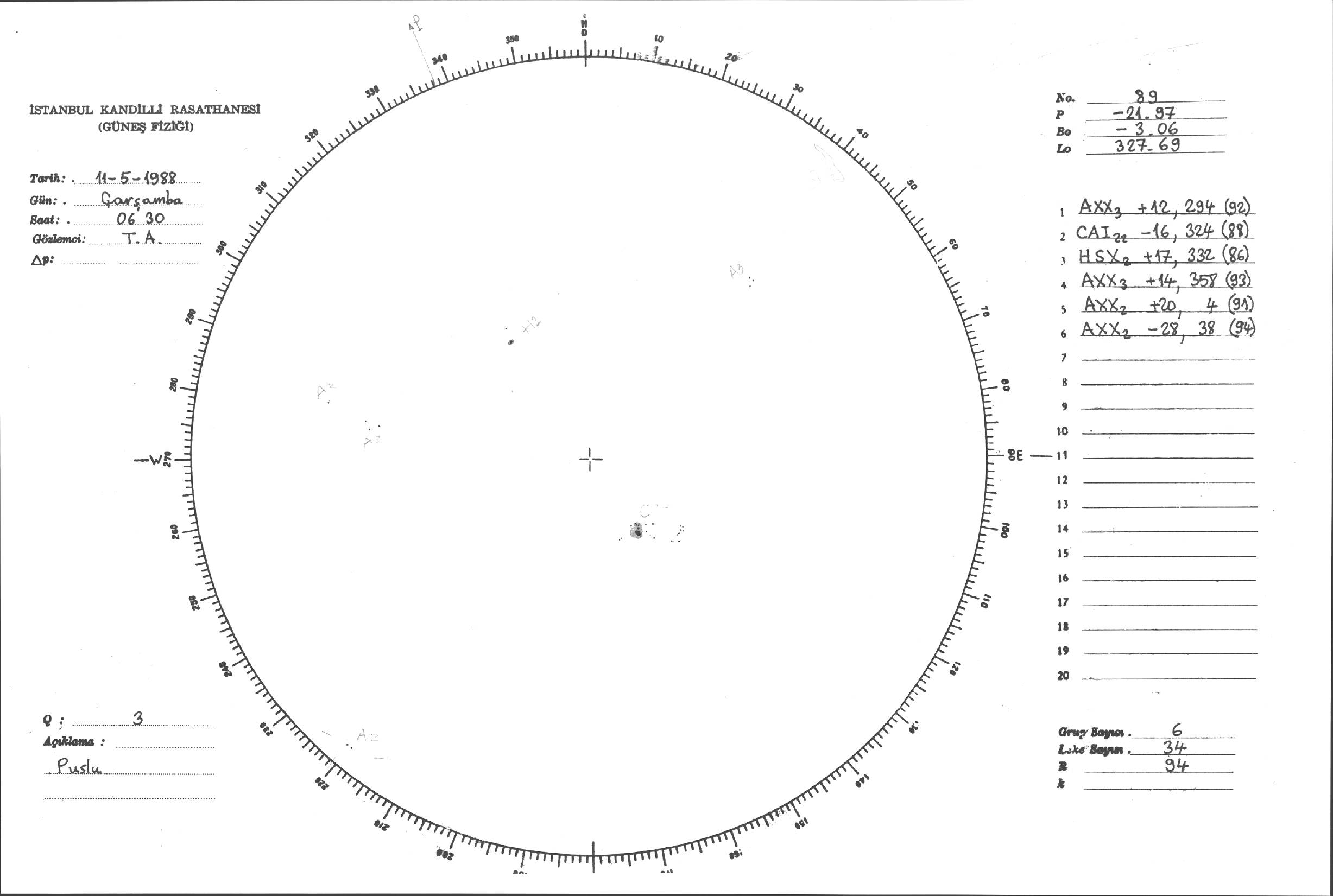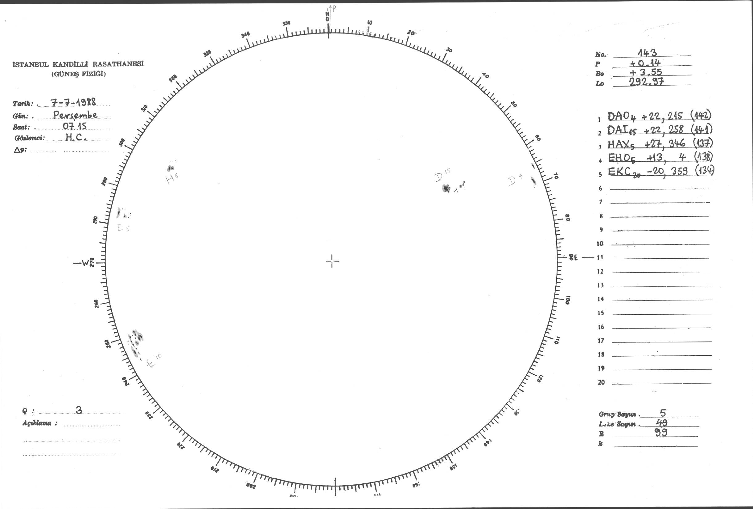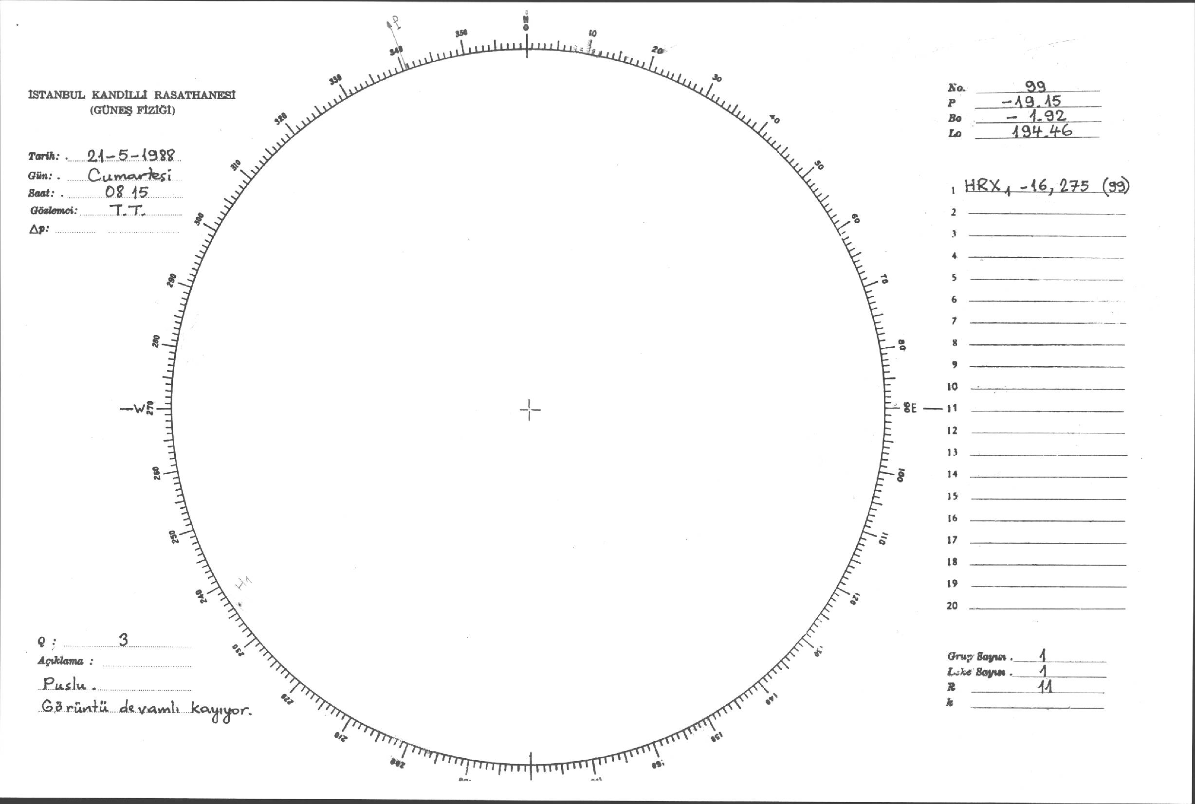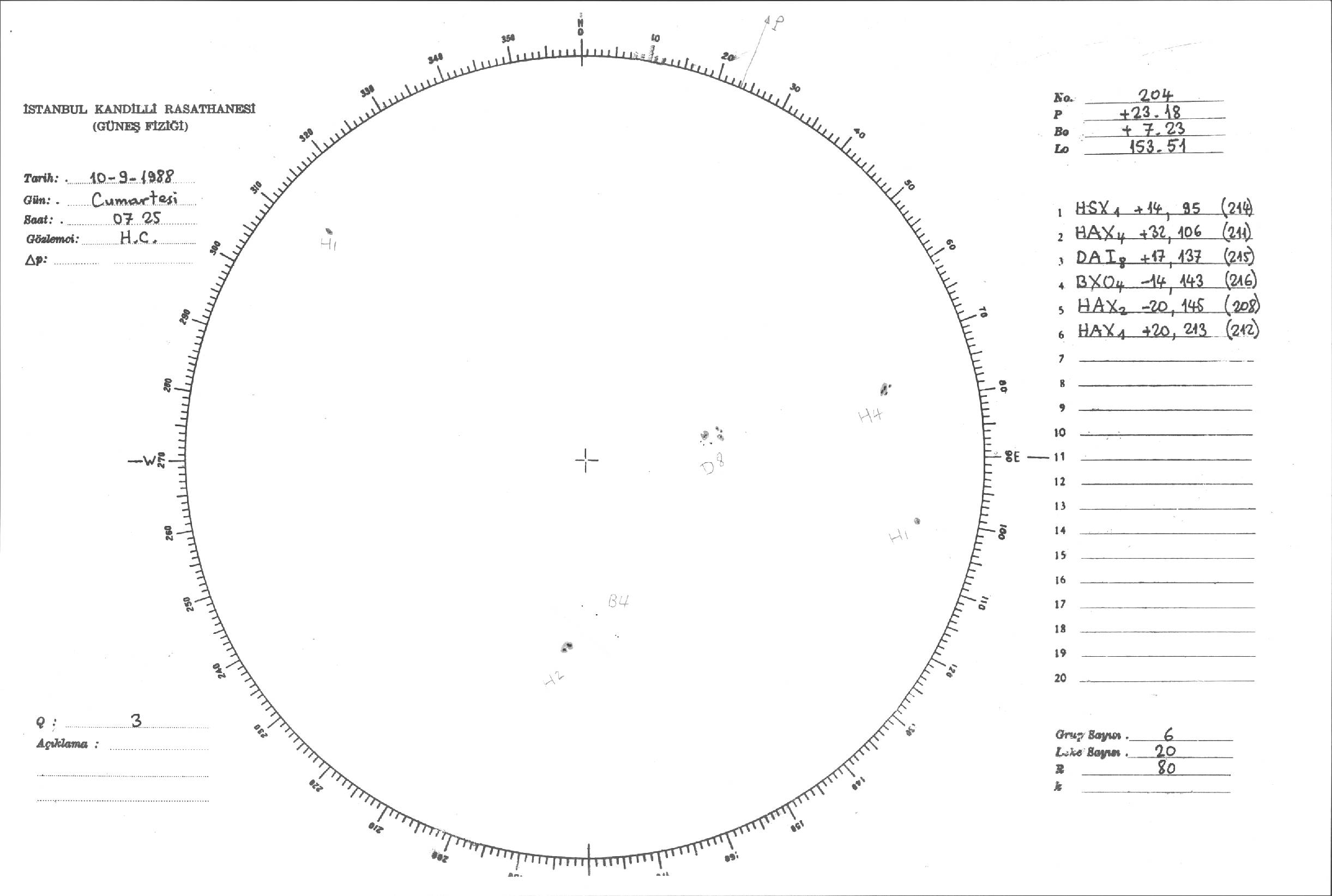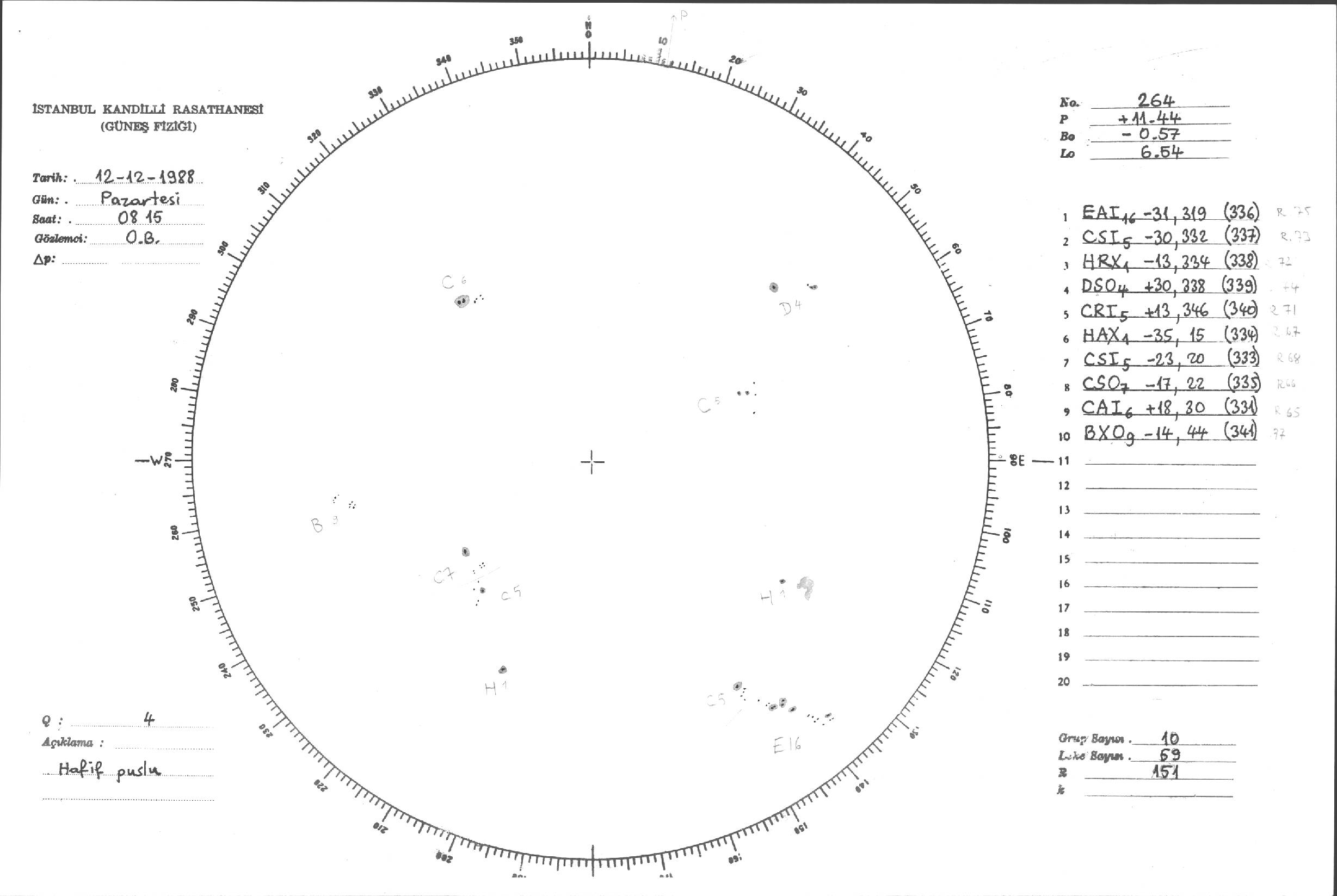 Güneş Lekesi Çizimleri / Kandilli Sunspot Drawings