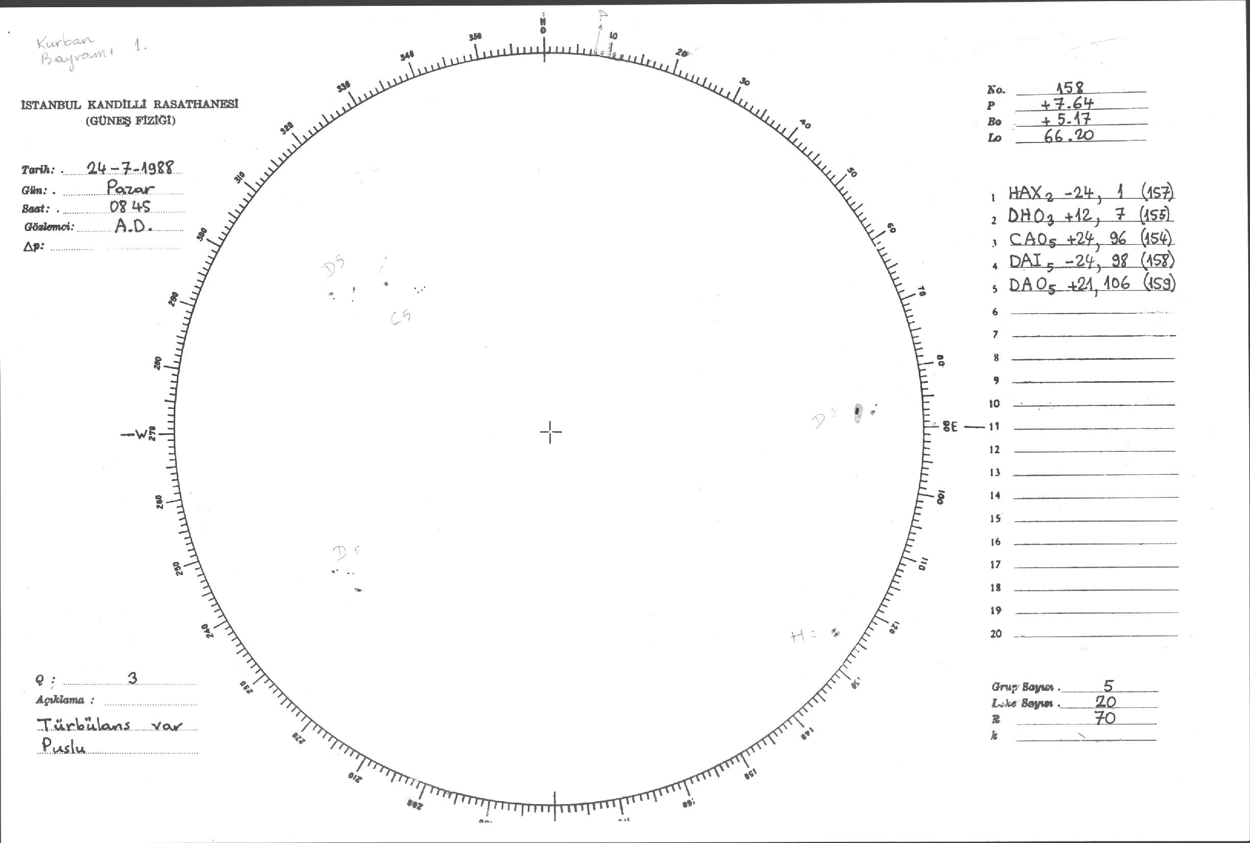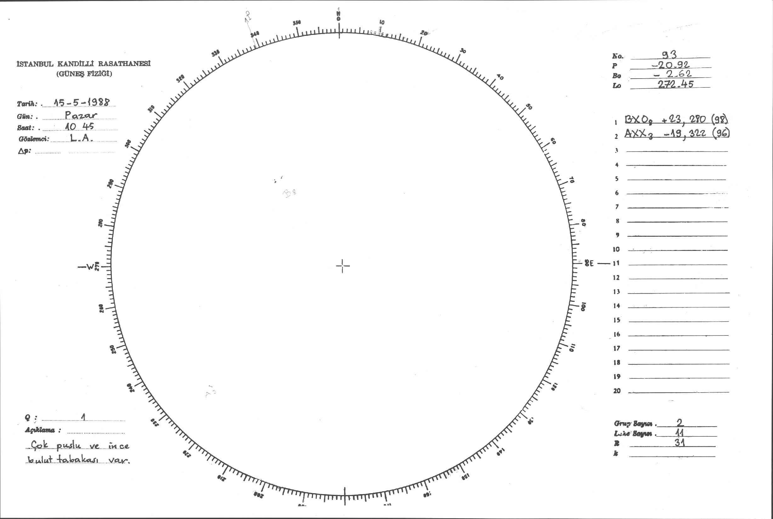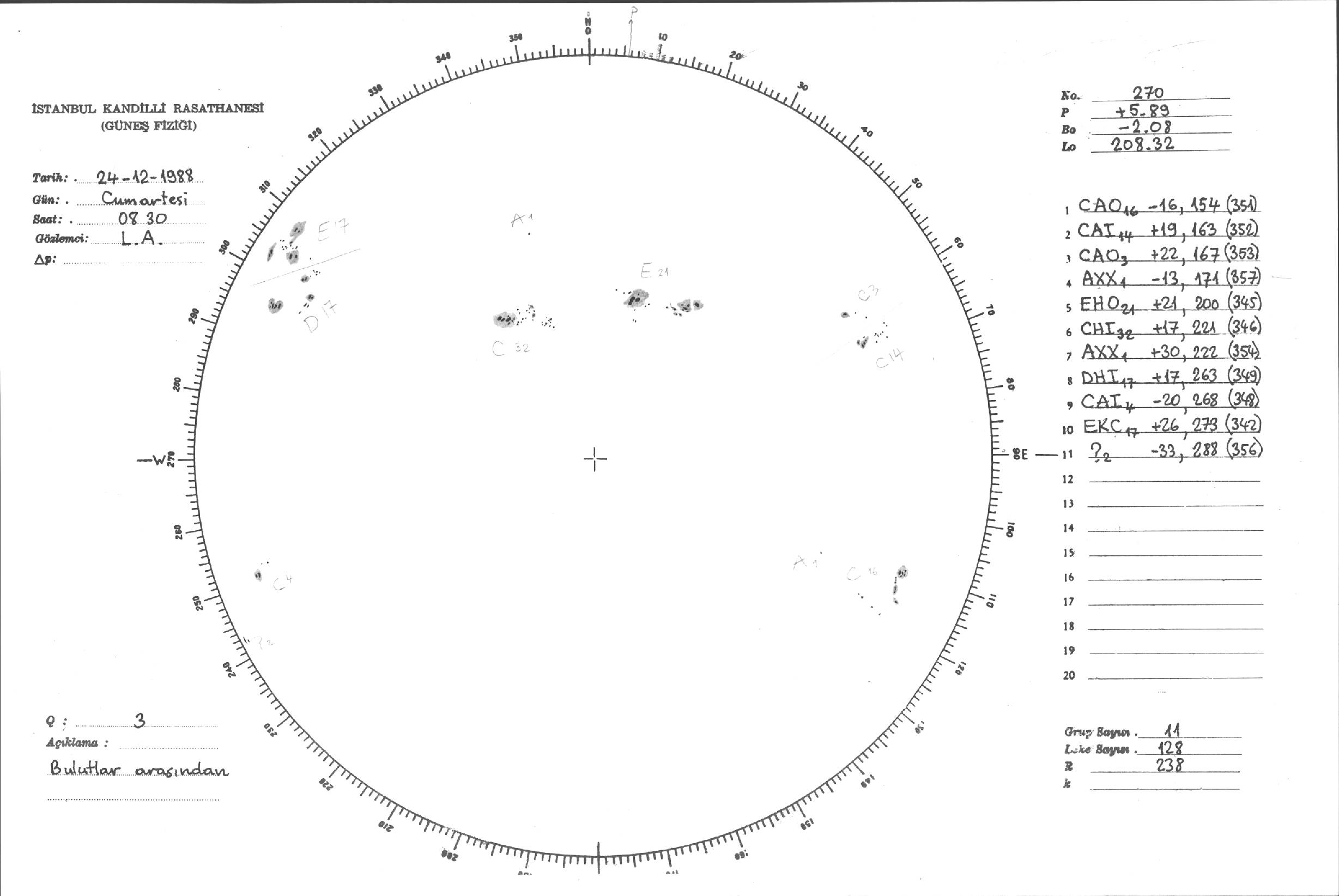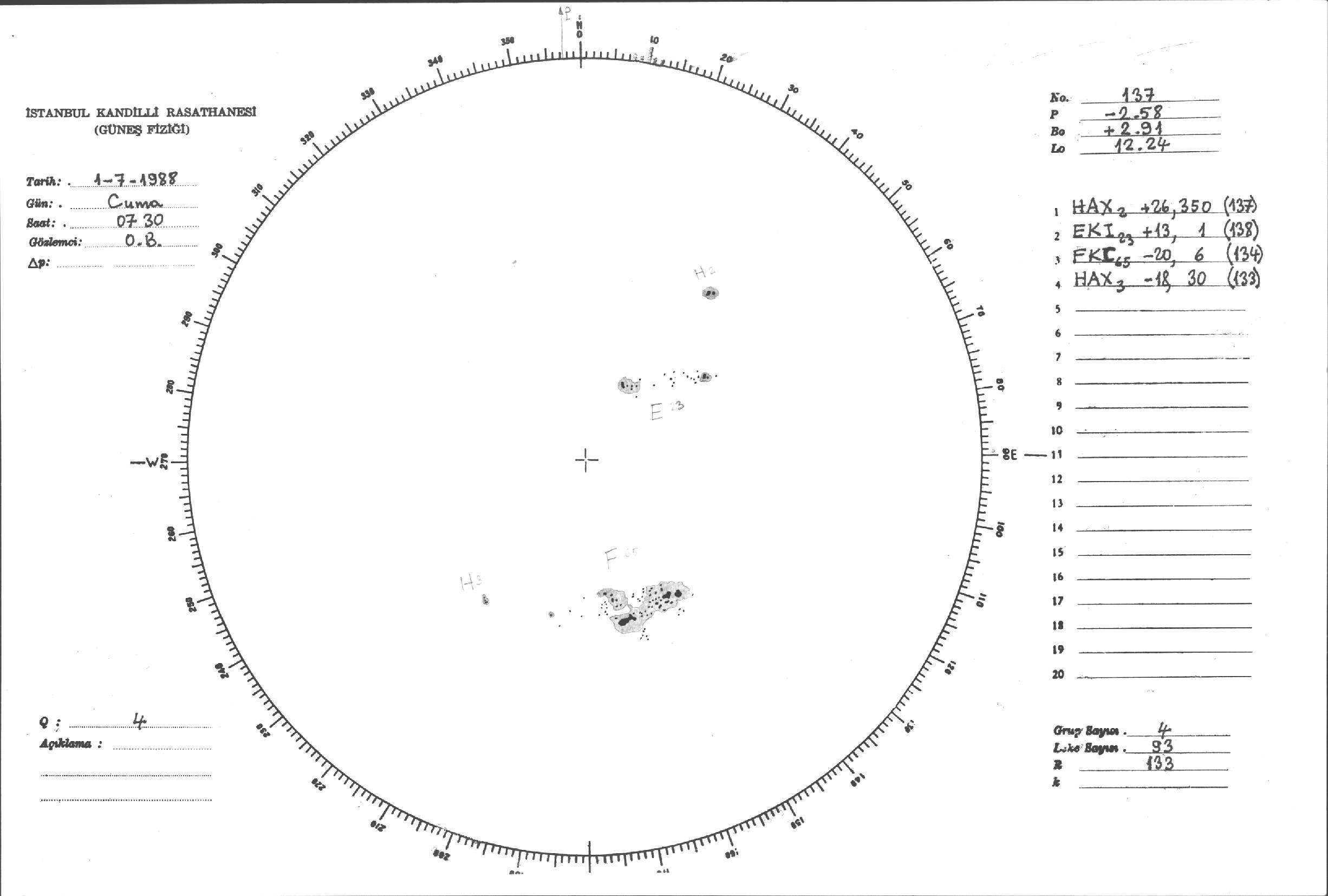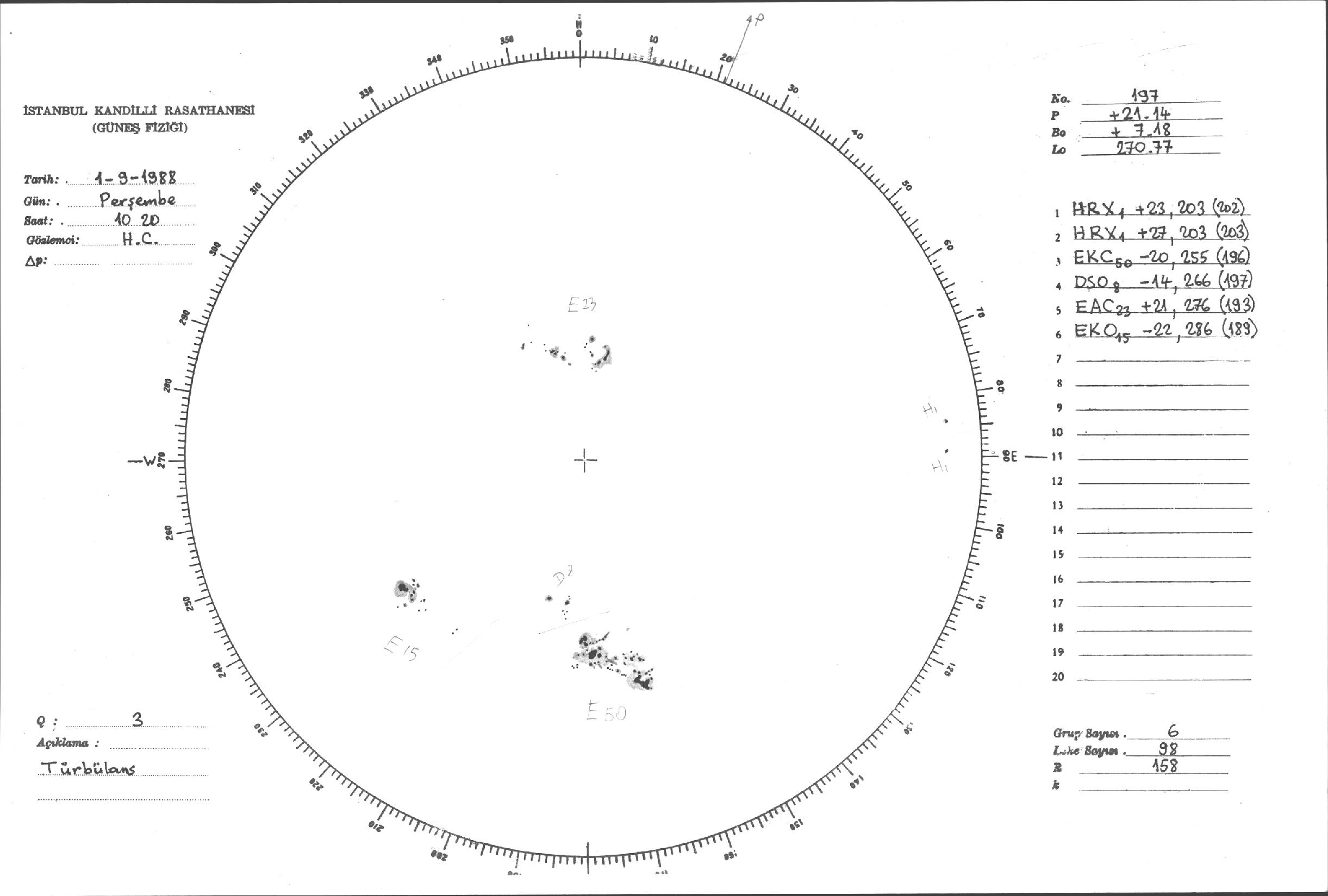 Güneş Lekesi Çizimleri / Kandilli Sunspot Drawings