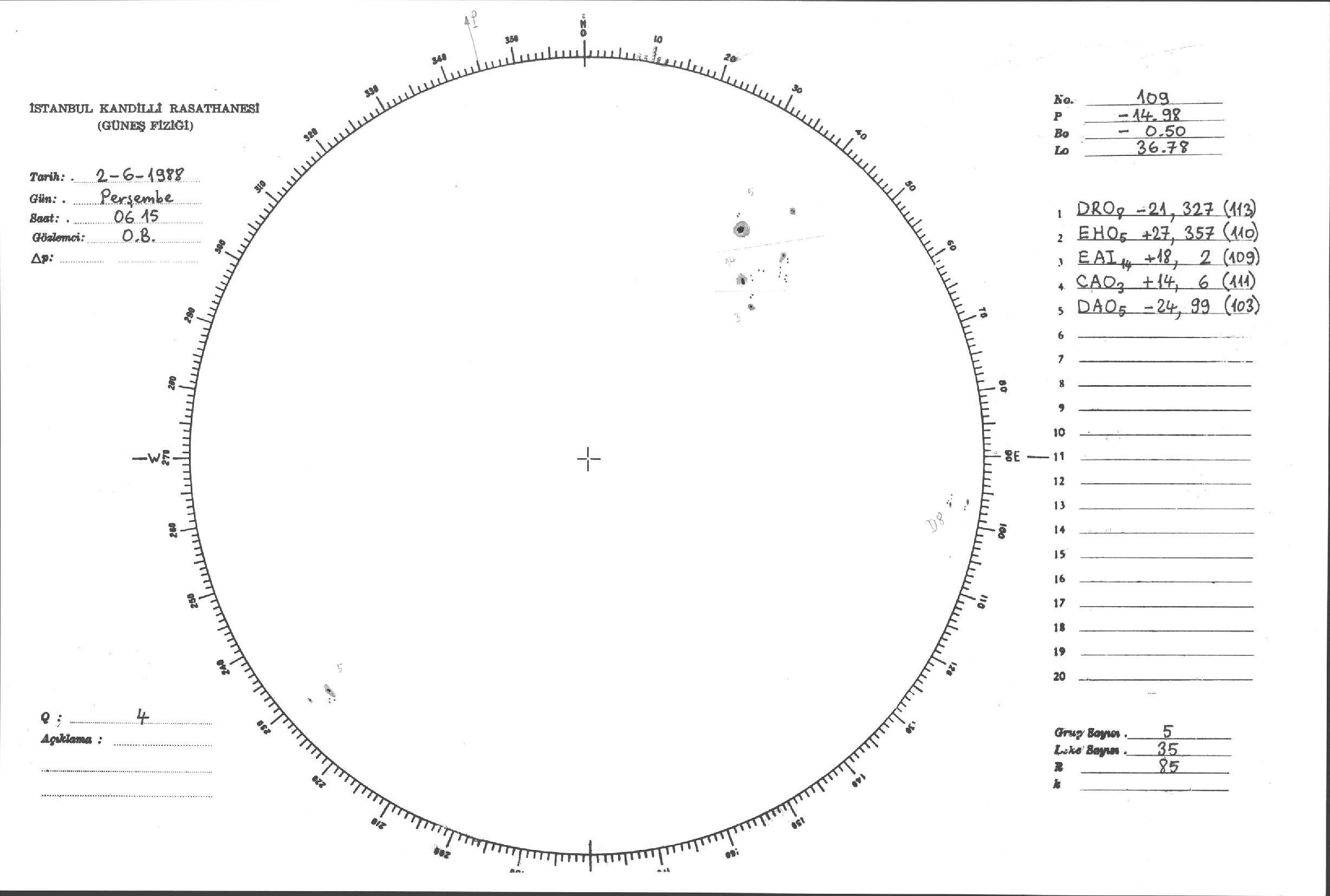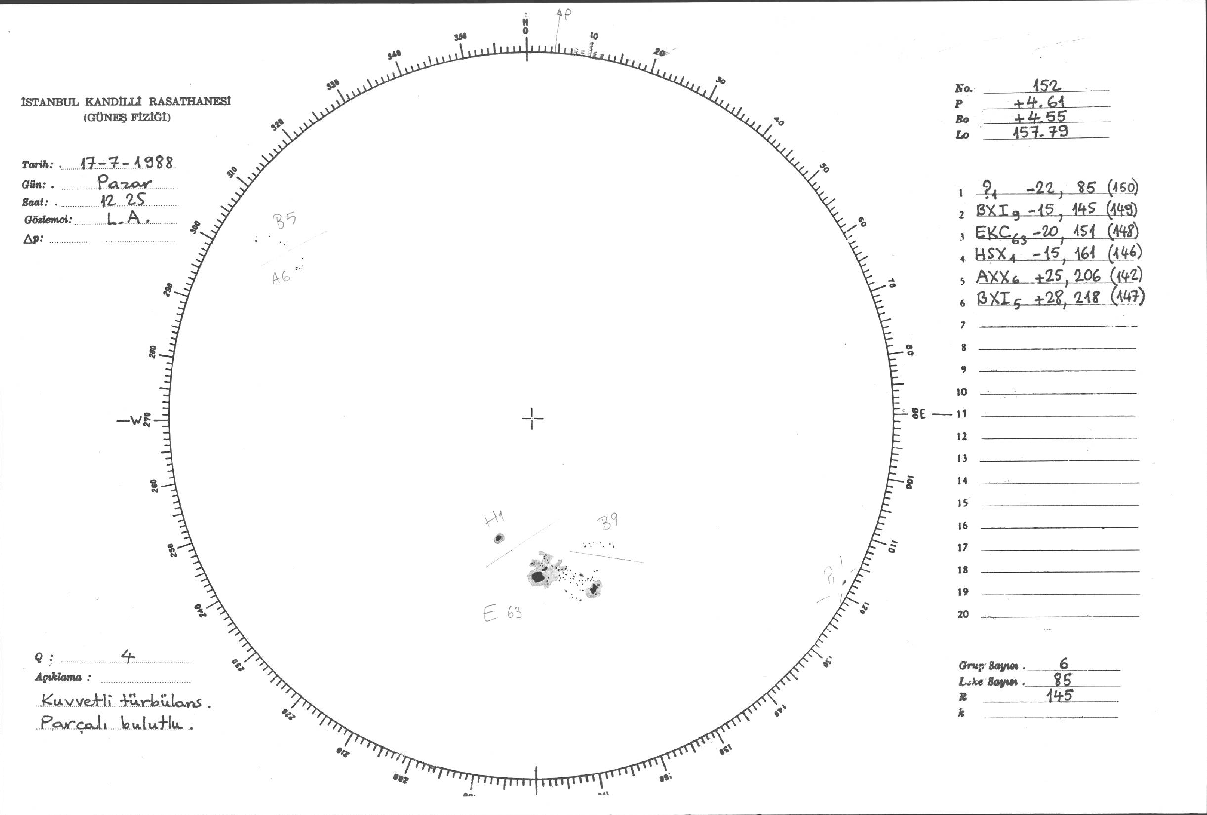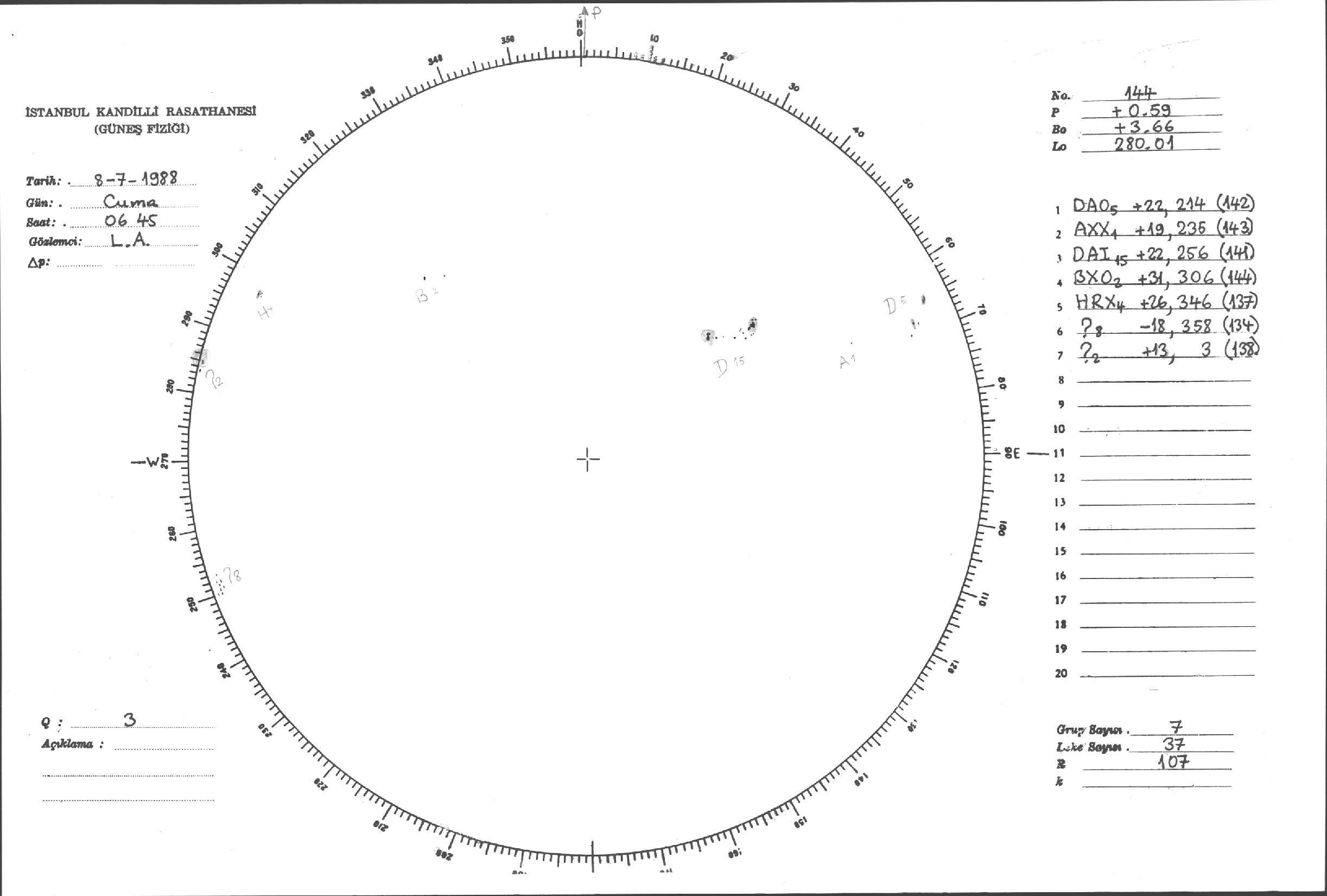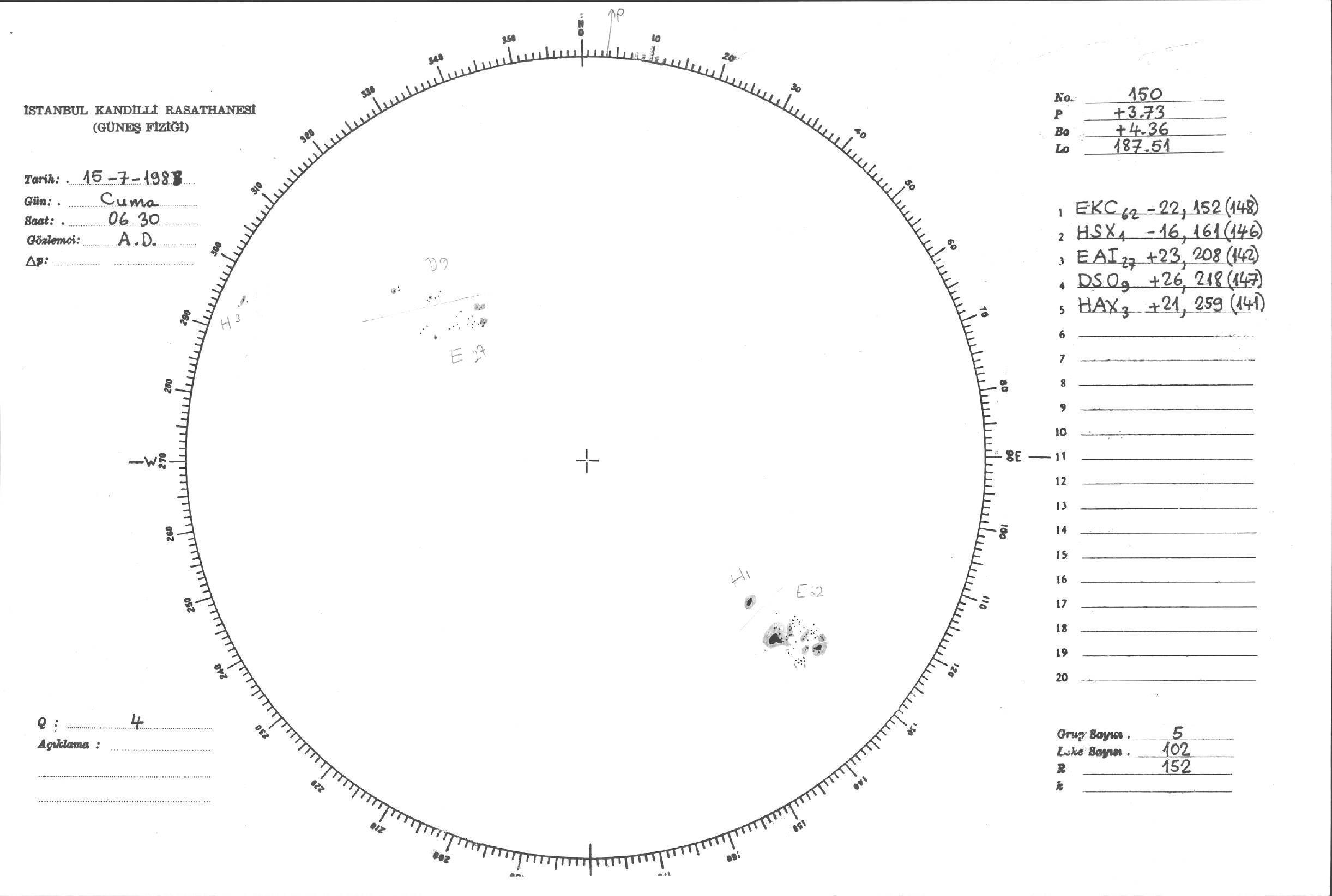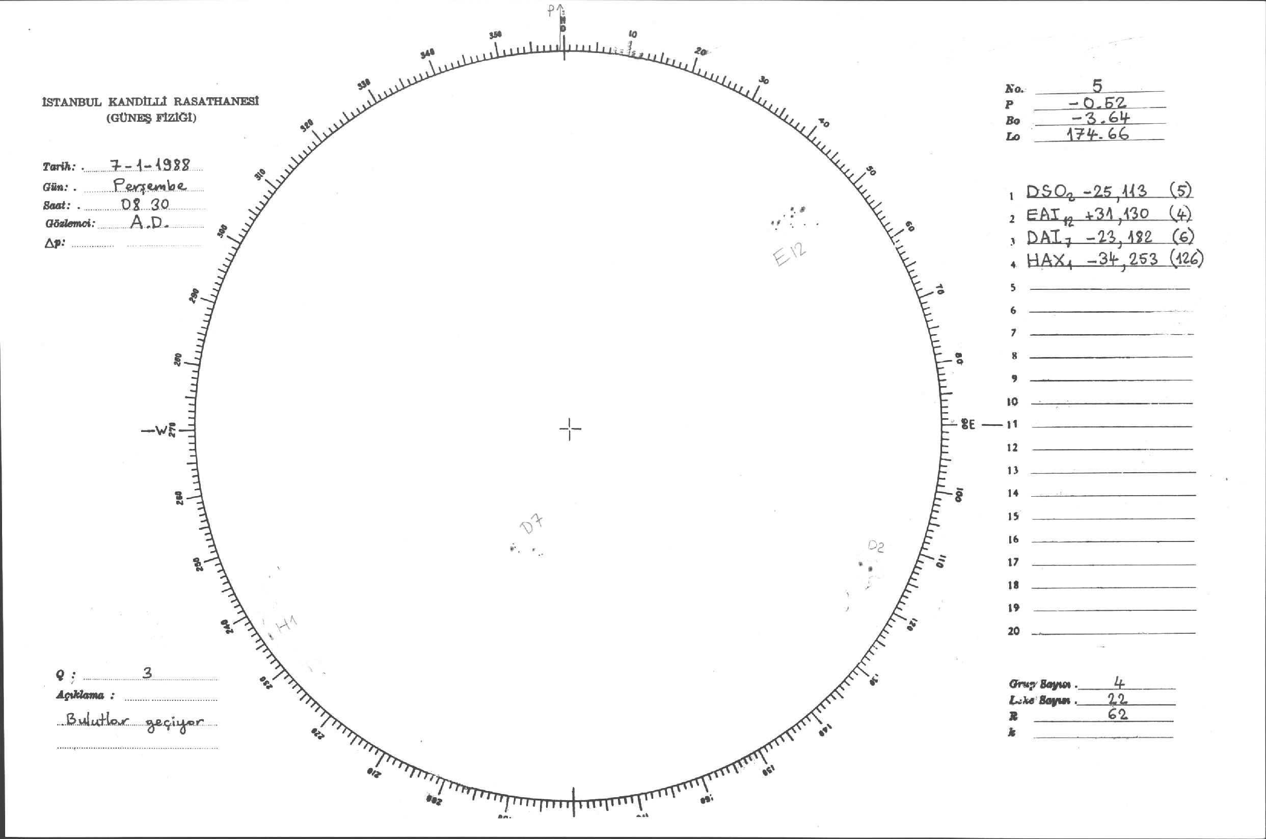 Güneş Lekesi Çizimleri / Kandilli Sunspot Drawings