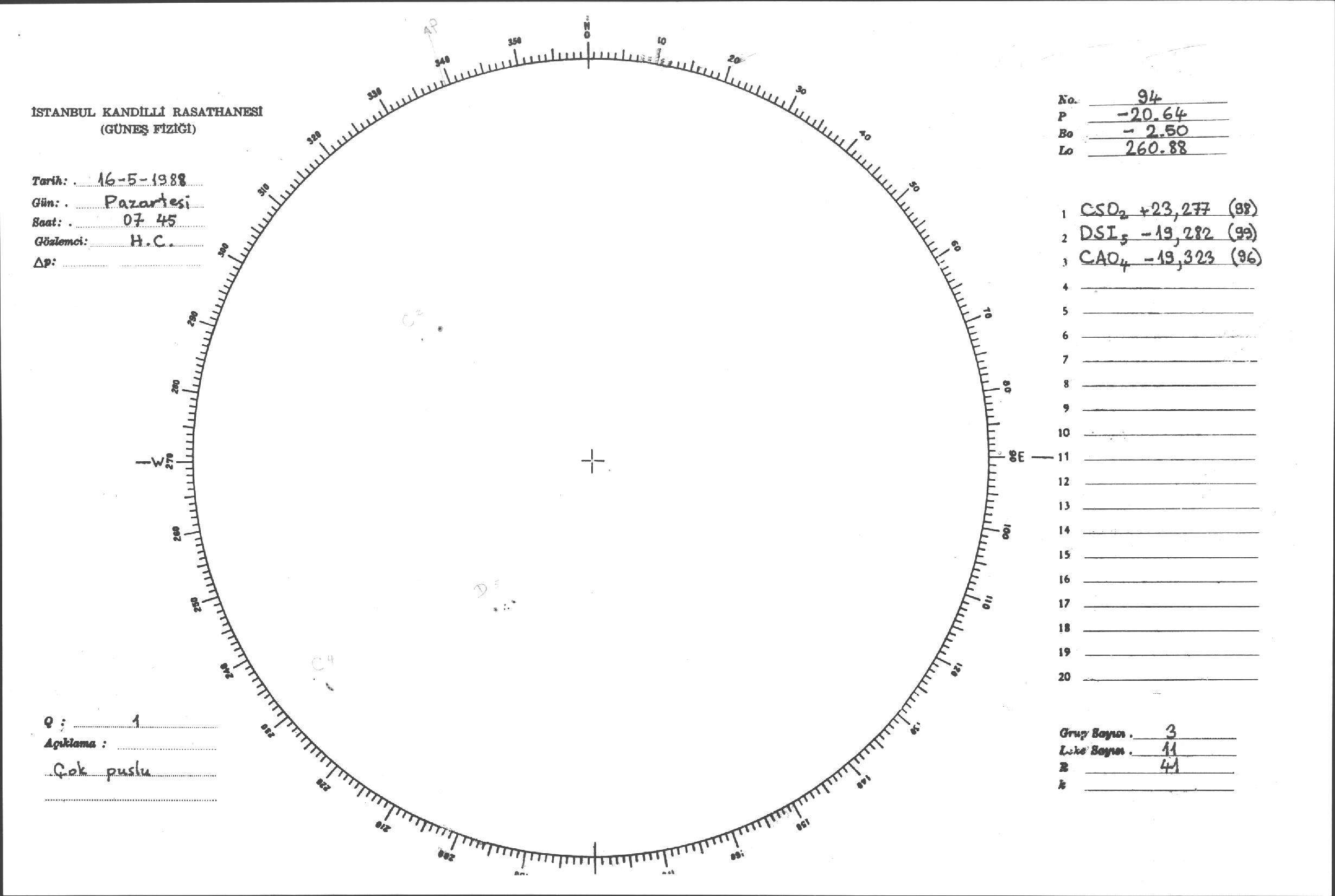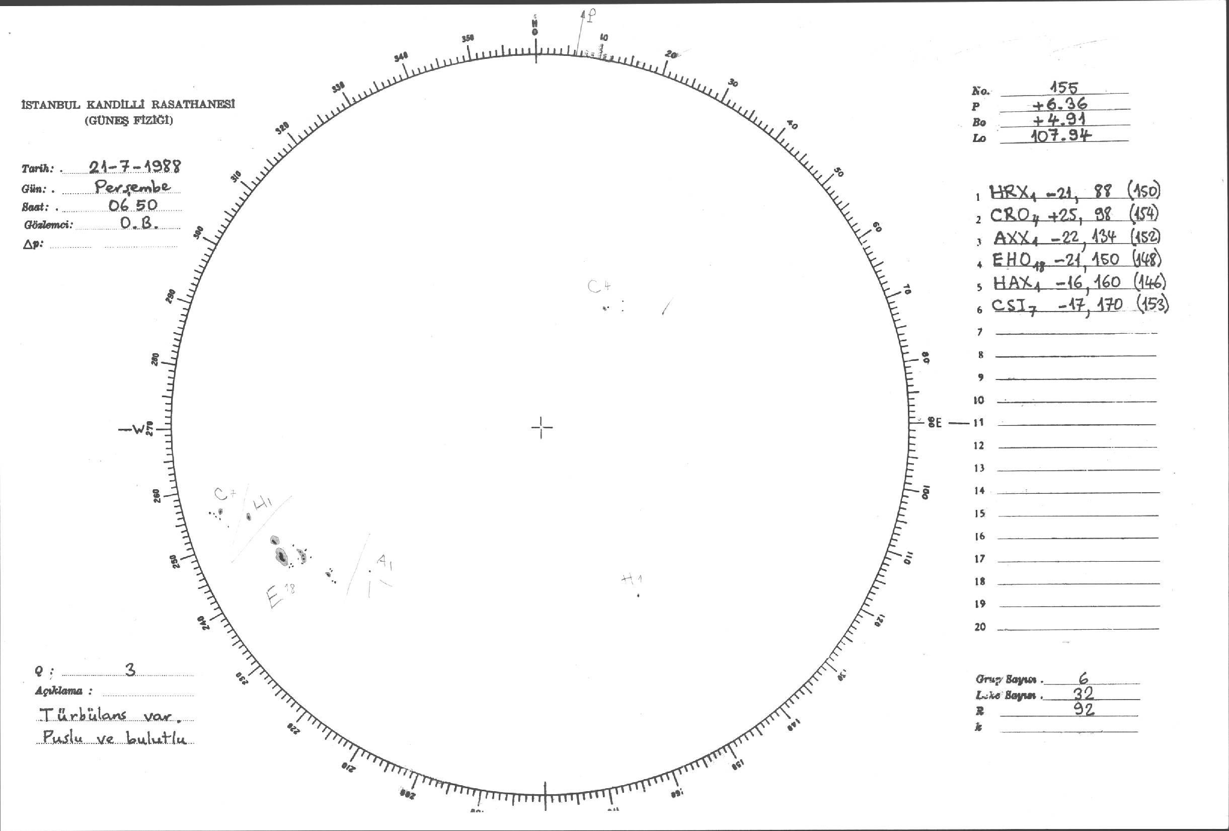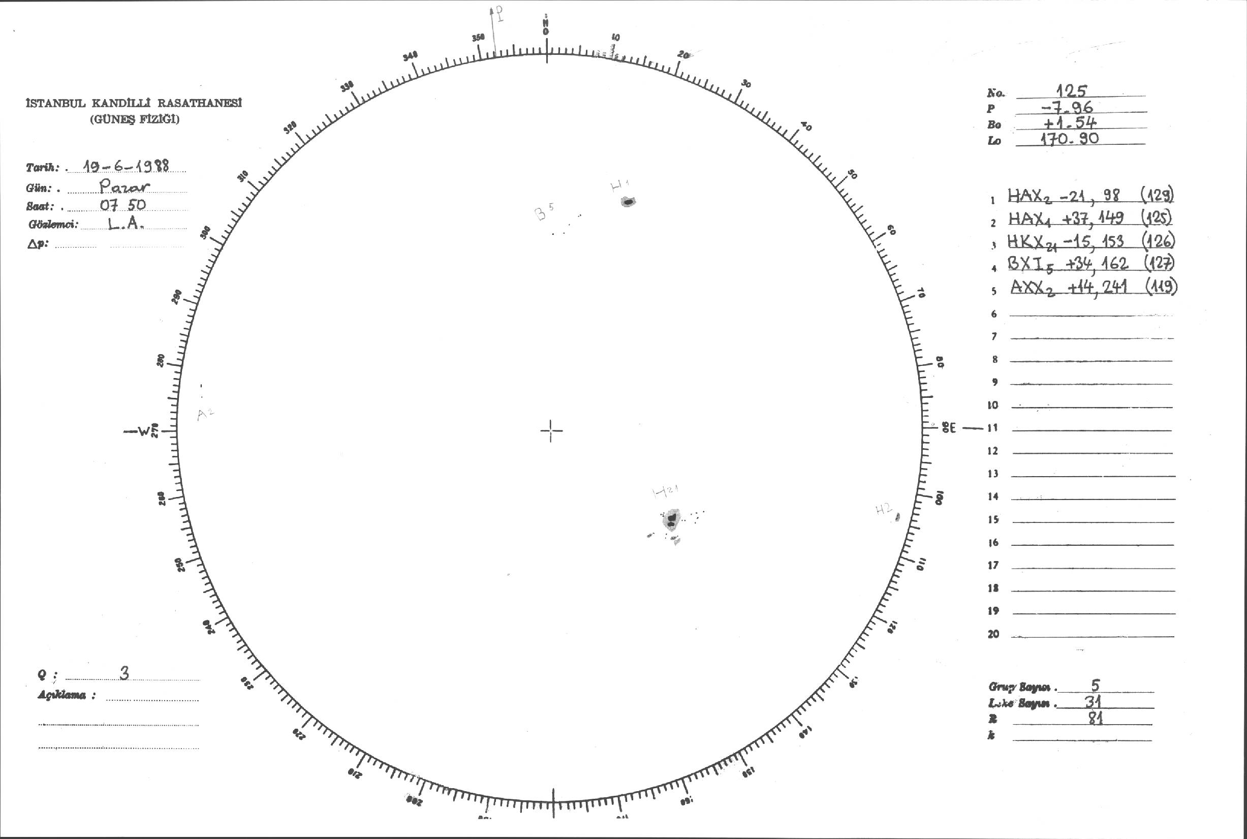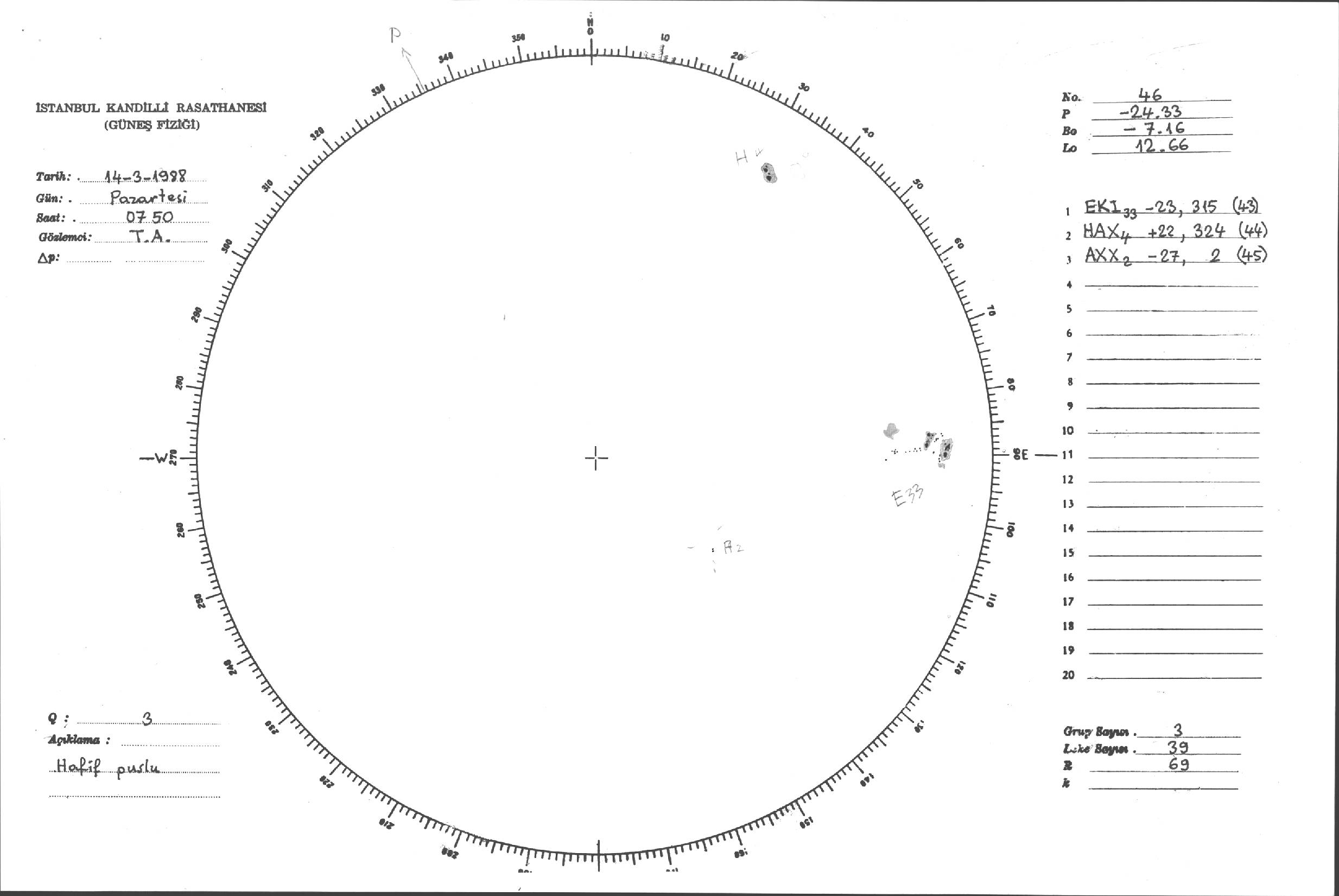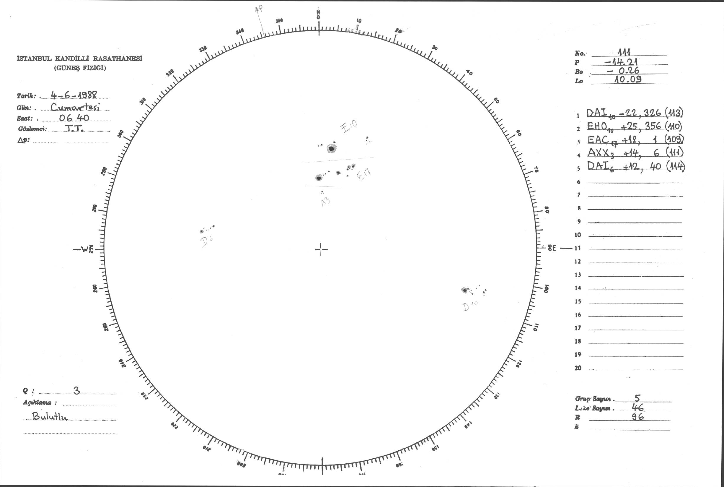 Güneş Lekesi Çizimleri / Kandilli Sunspot Drawings