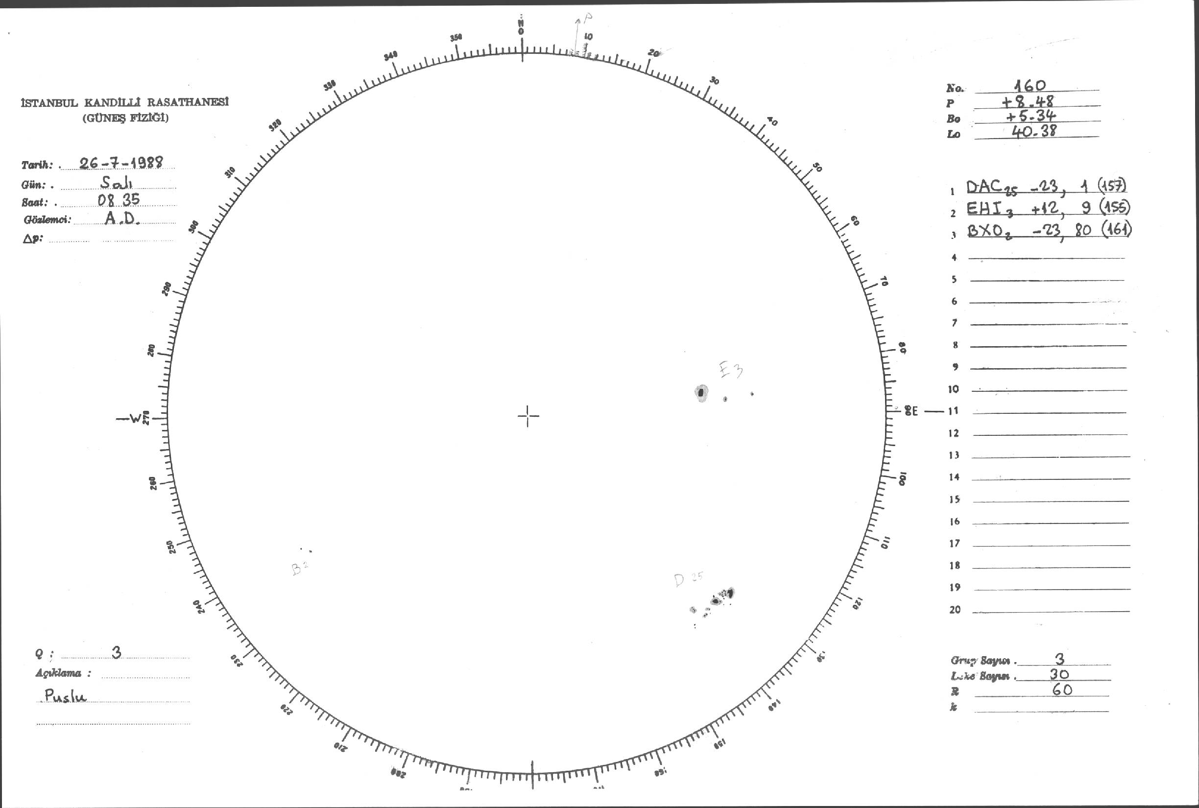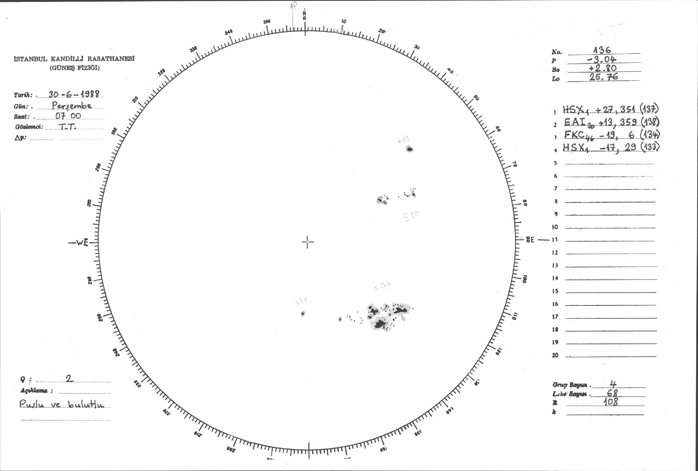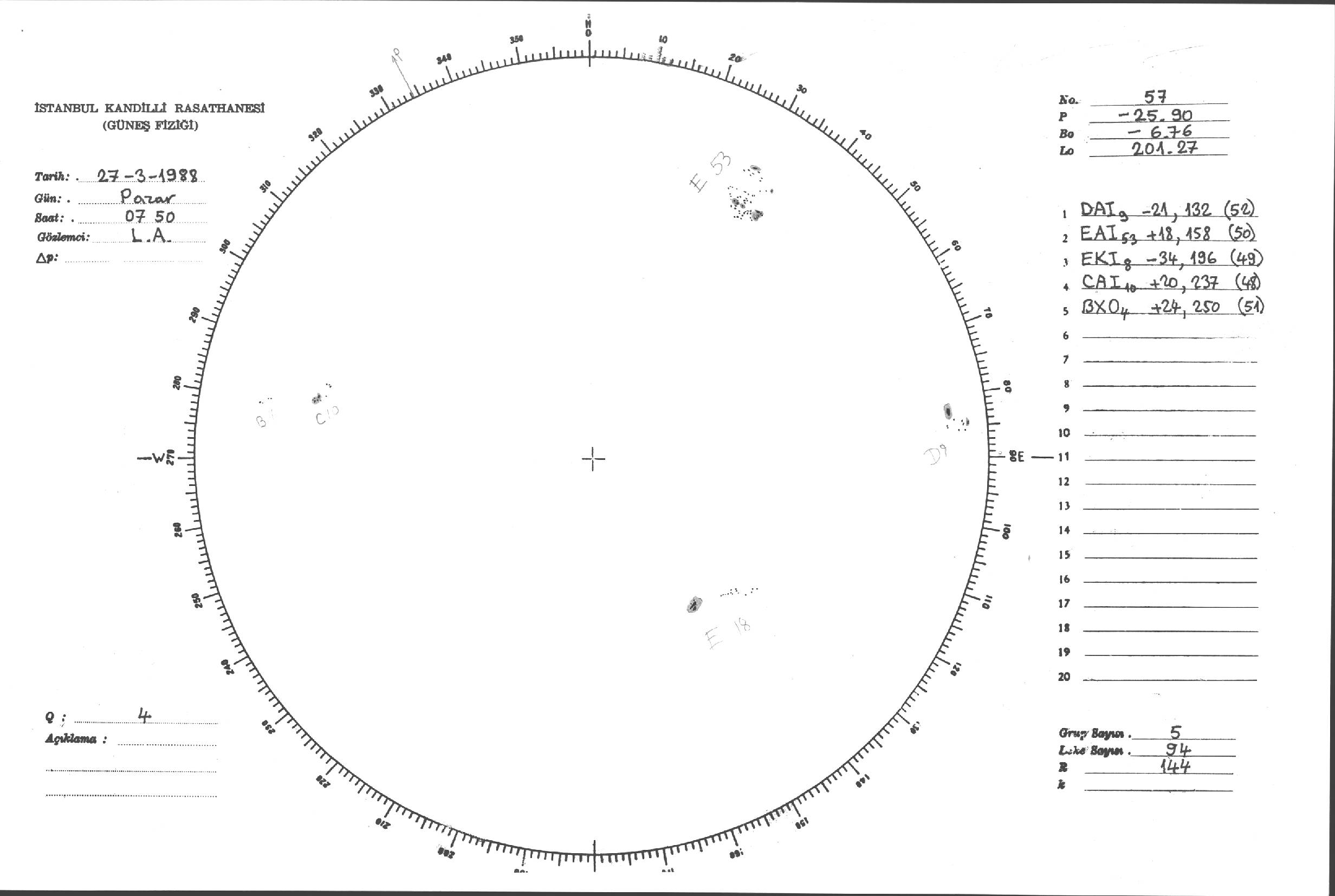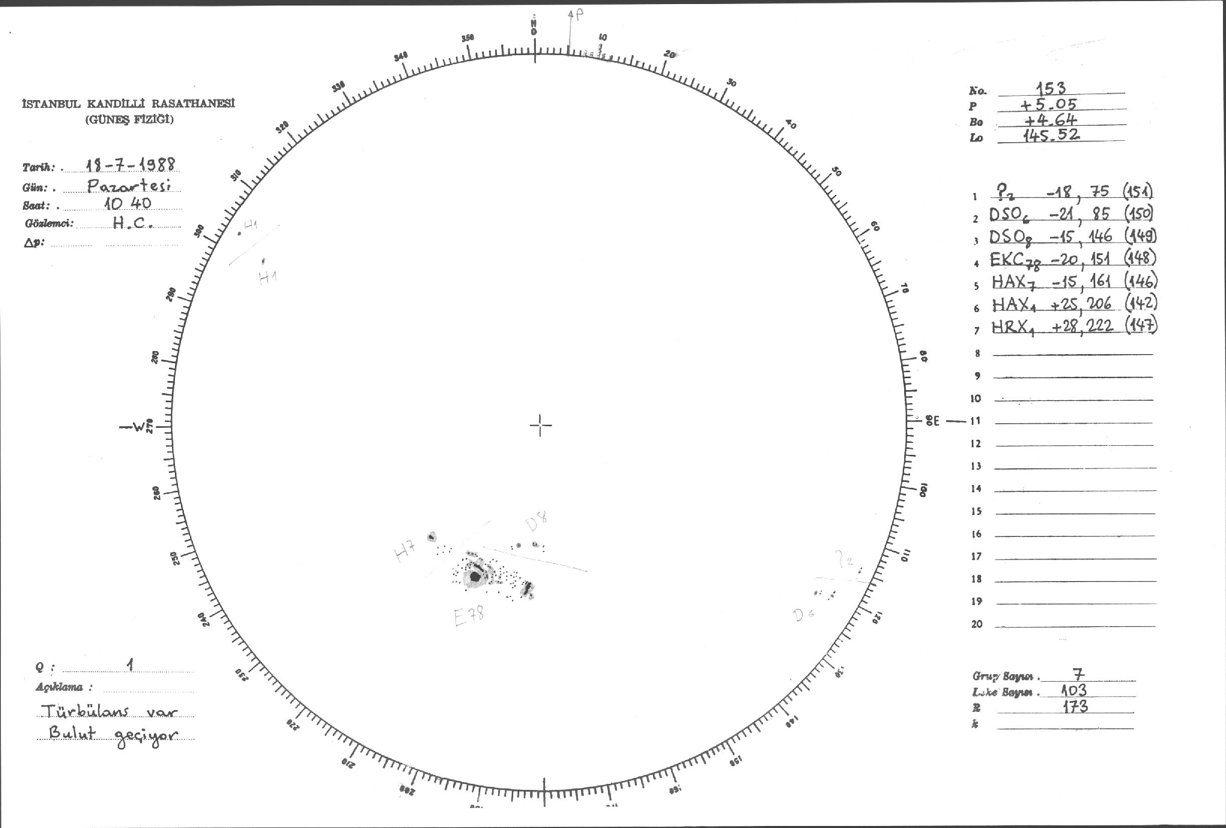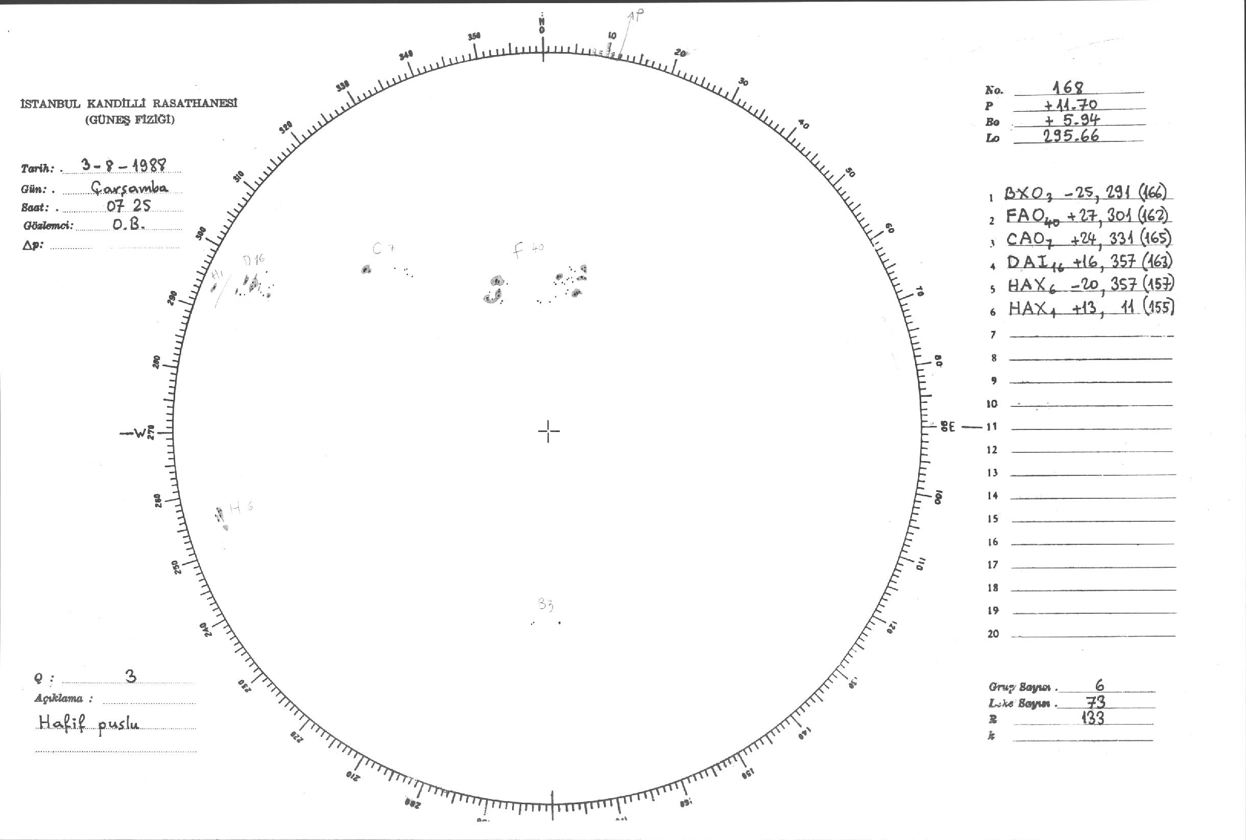 Güneş Lekesi Çizimleri / Kandilli Sunspot Drawings