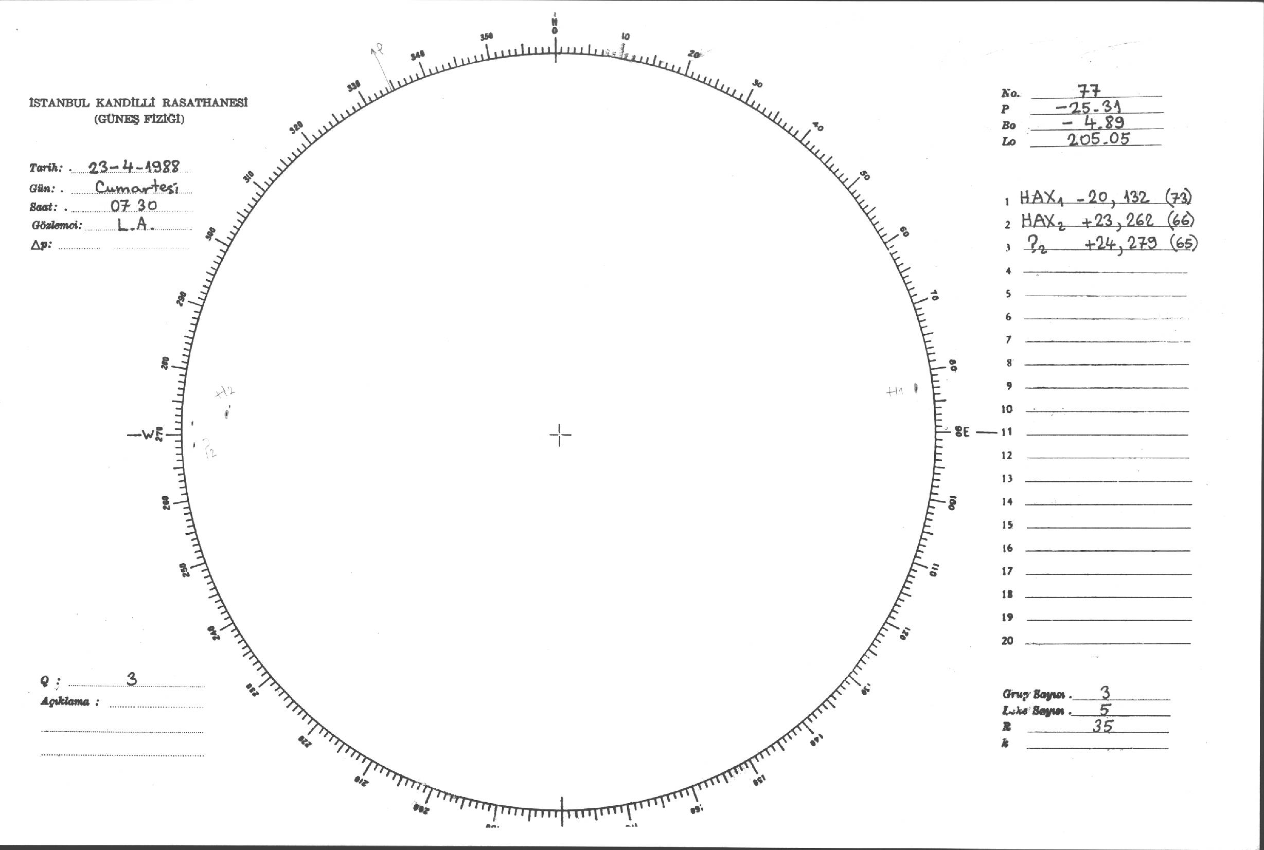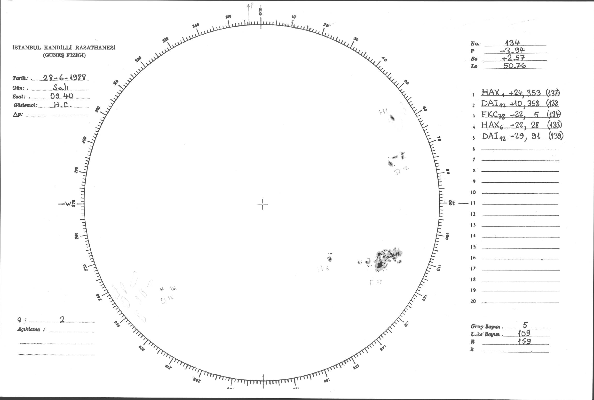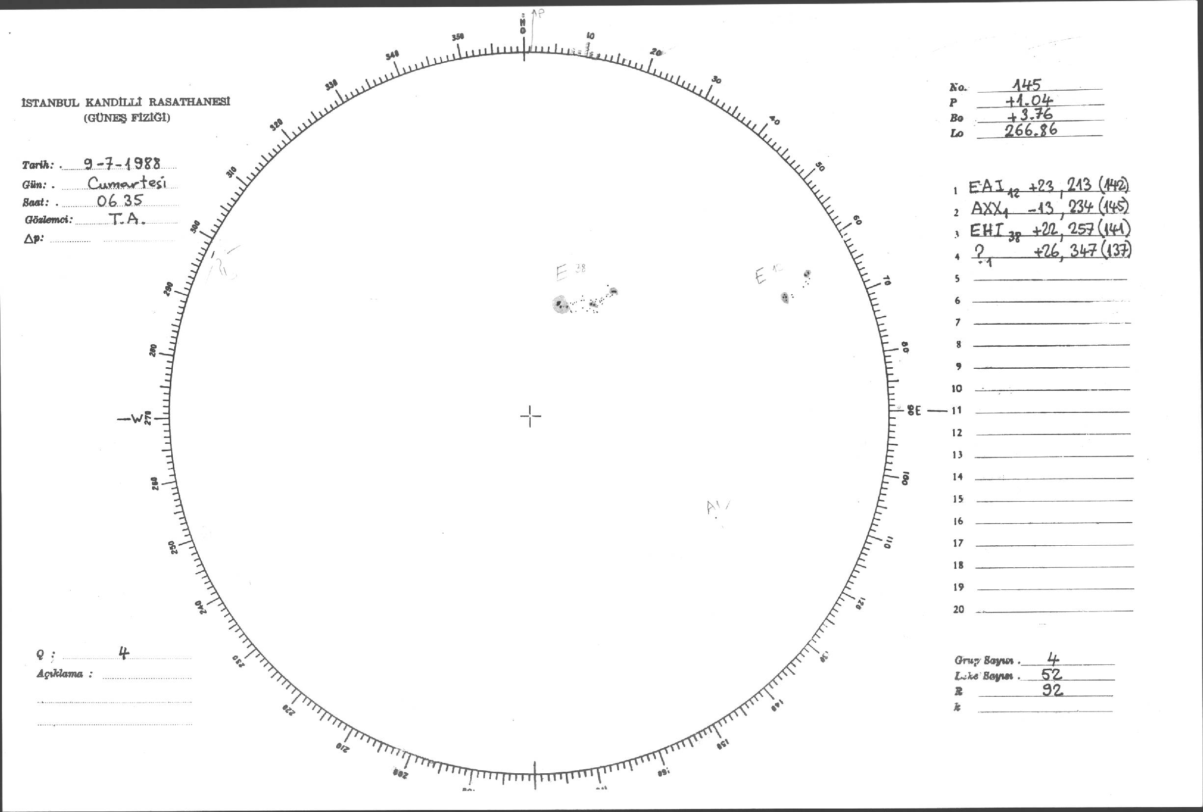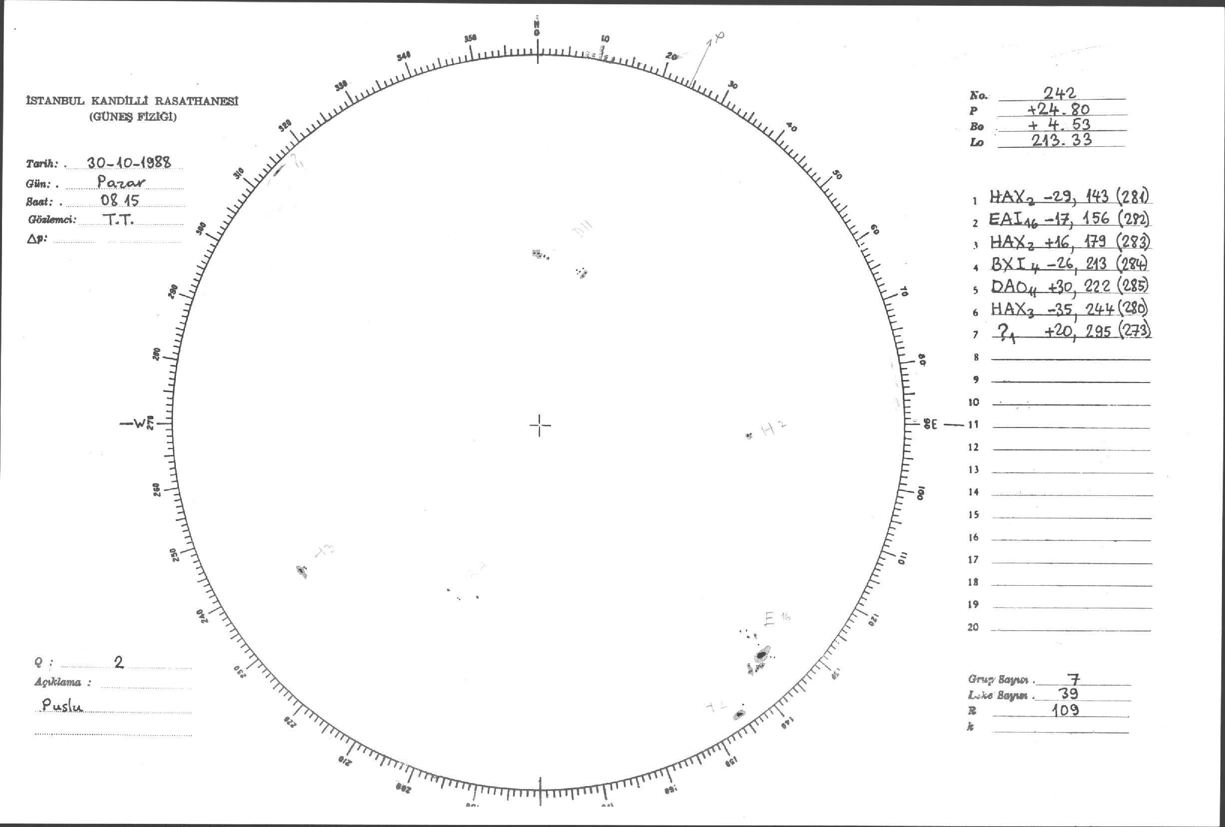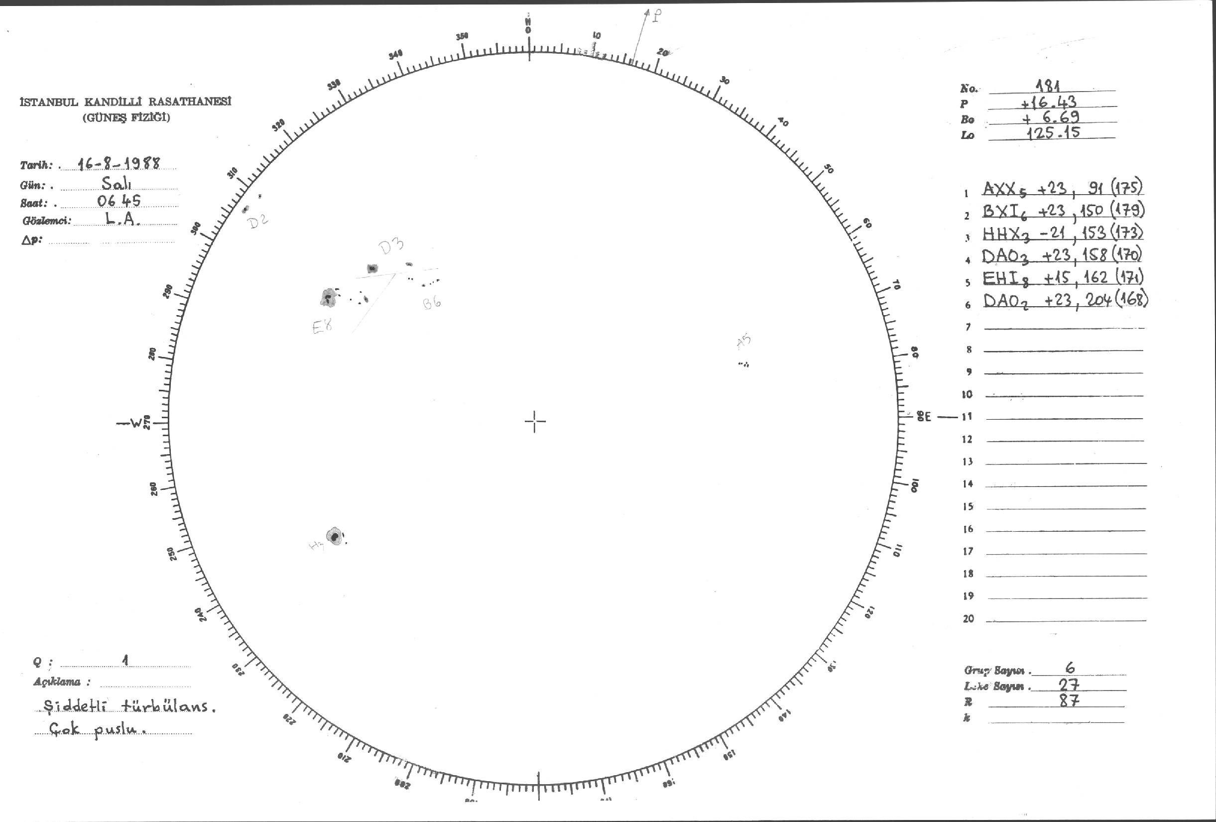 Güneş Lekesi Çizimleri / Kandilli Sunspot Drawings