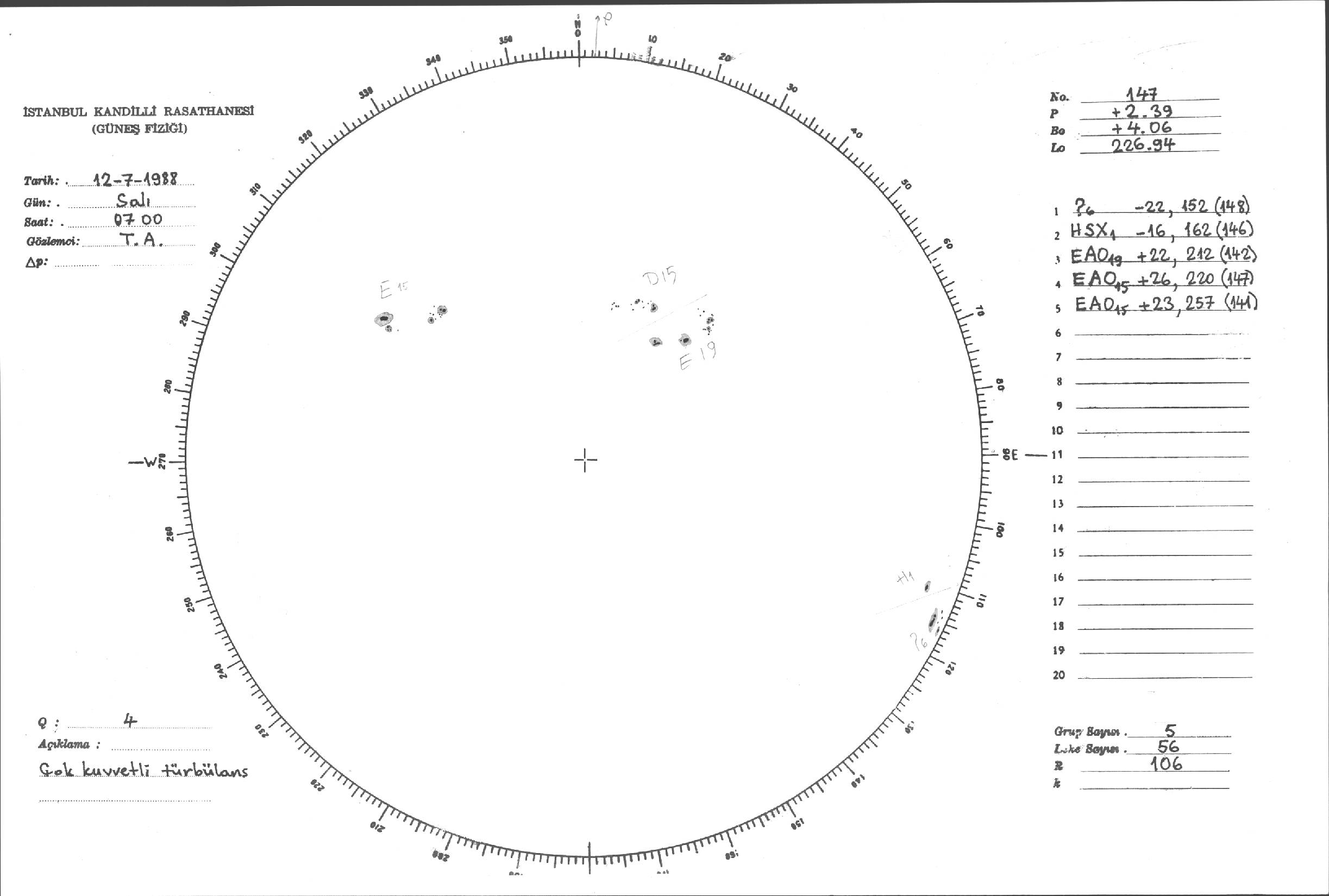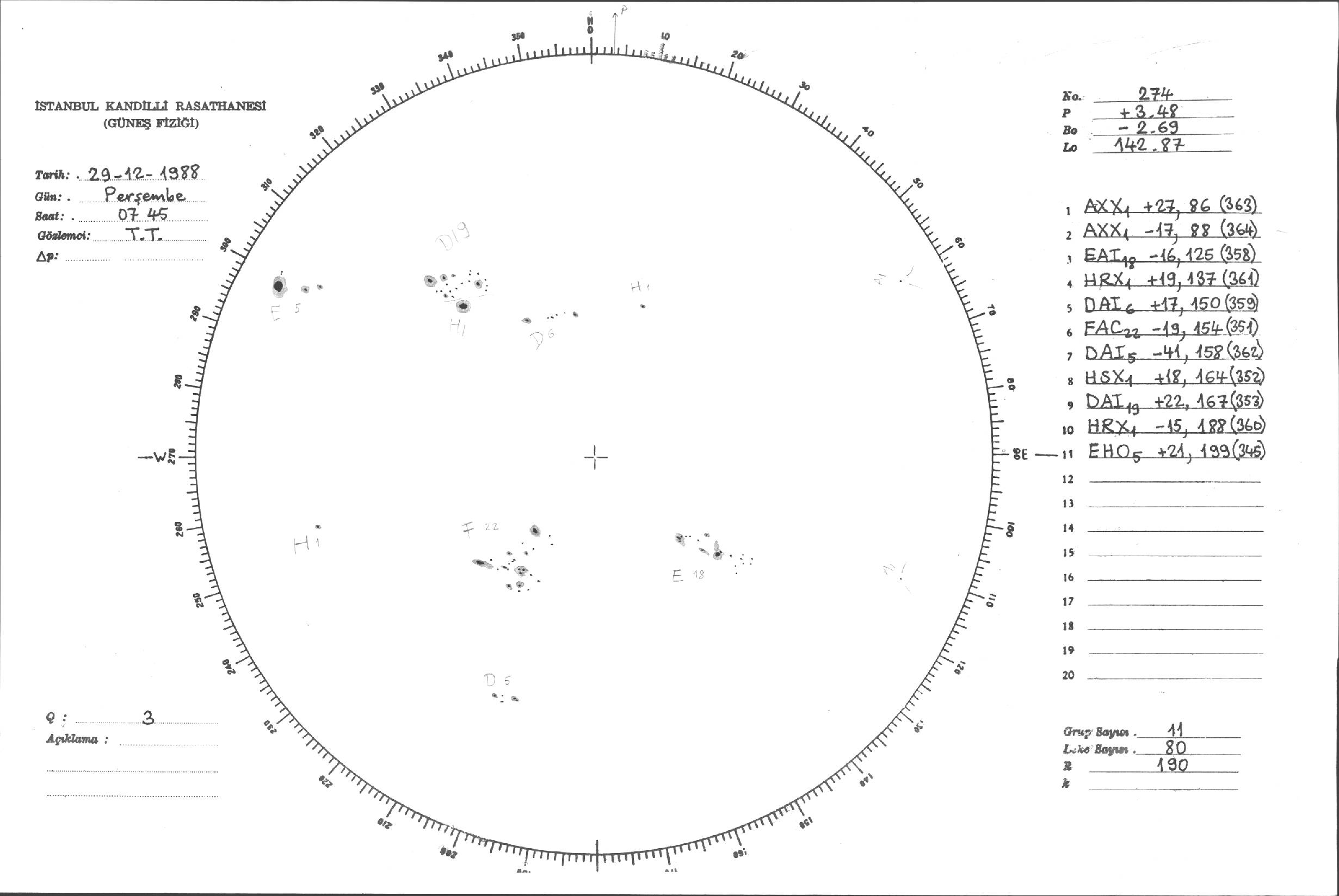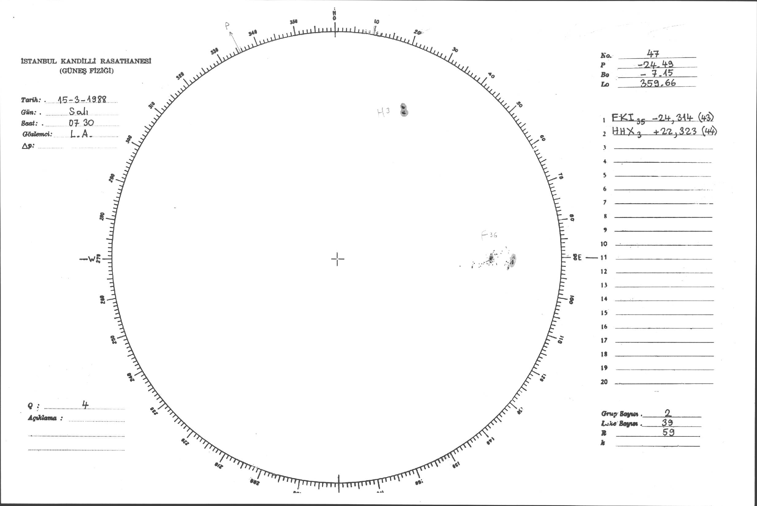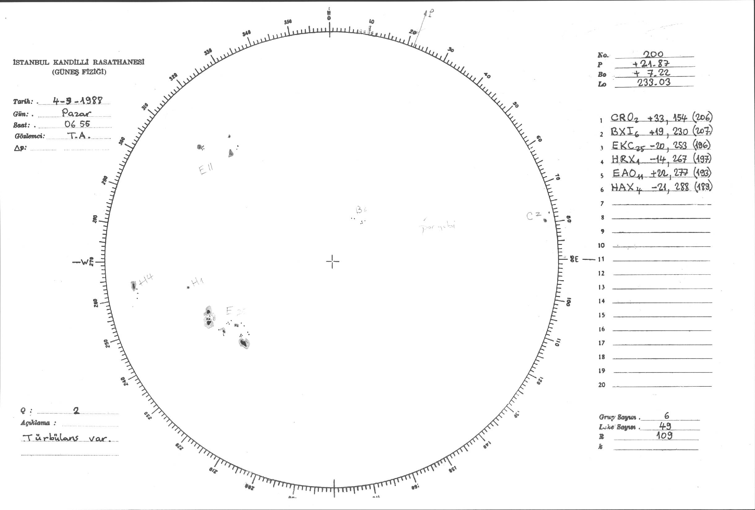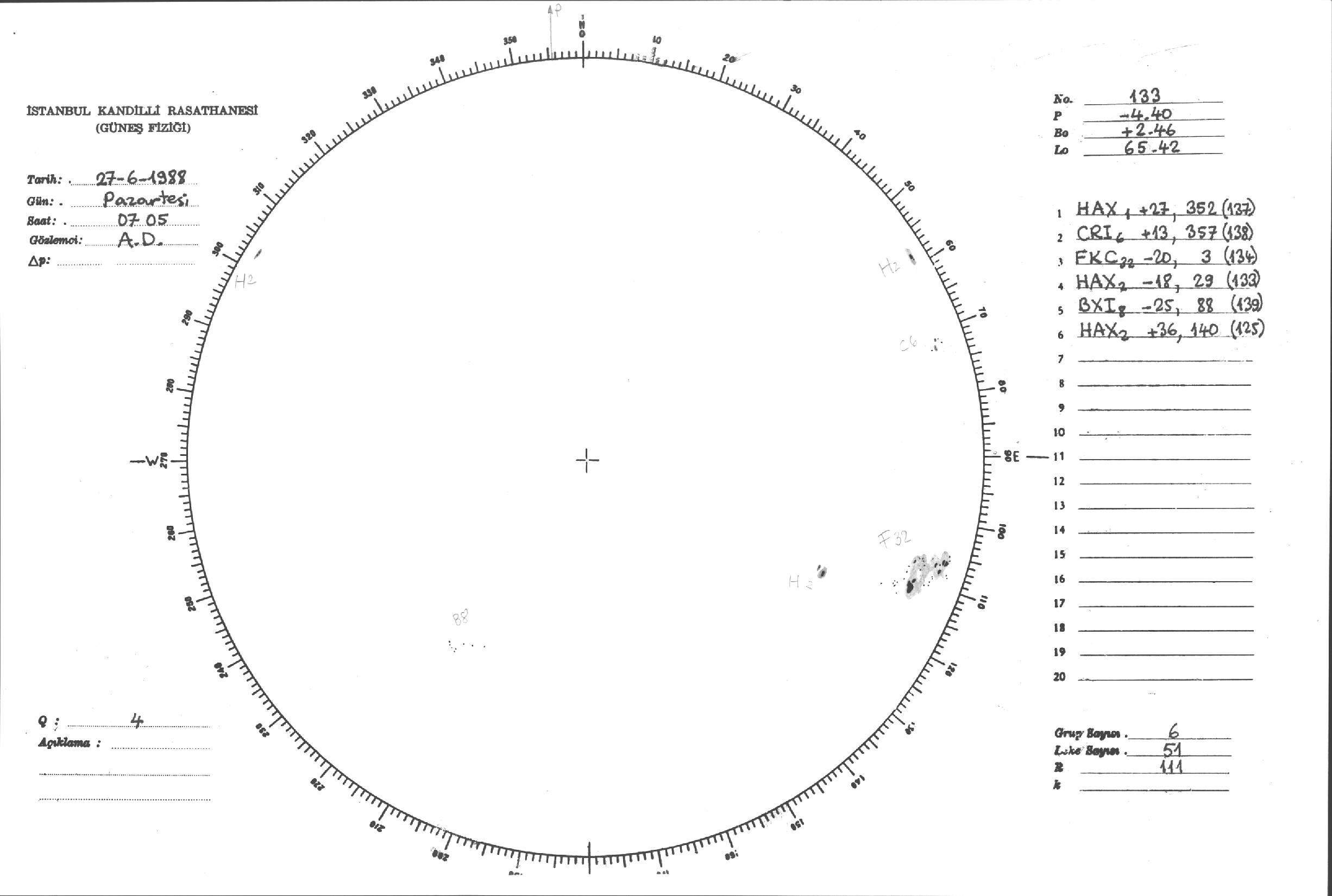 Güneş Lekesi Çizimleri / Kandilli Sunspot Drawings