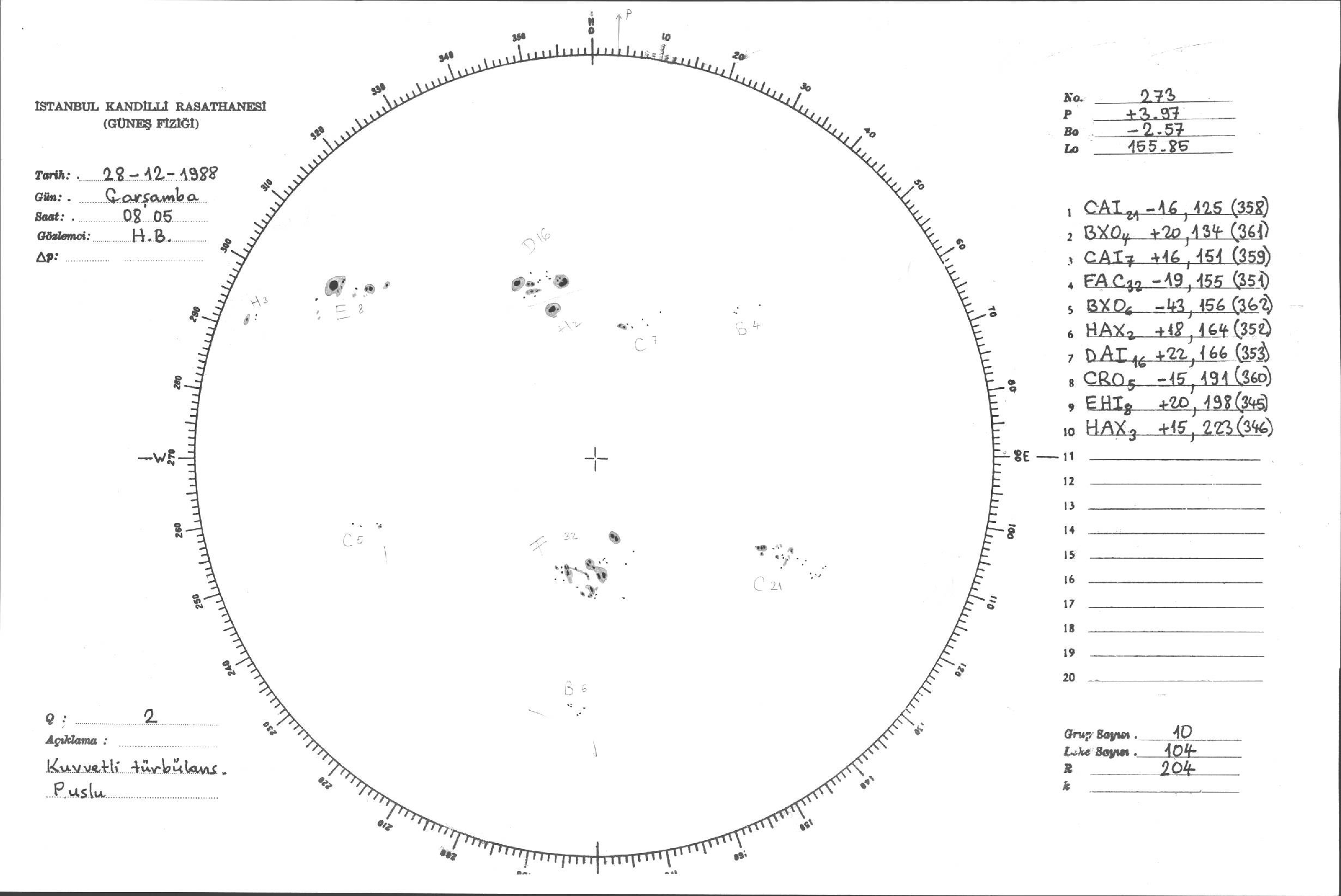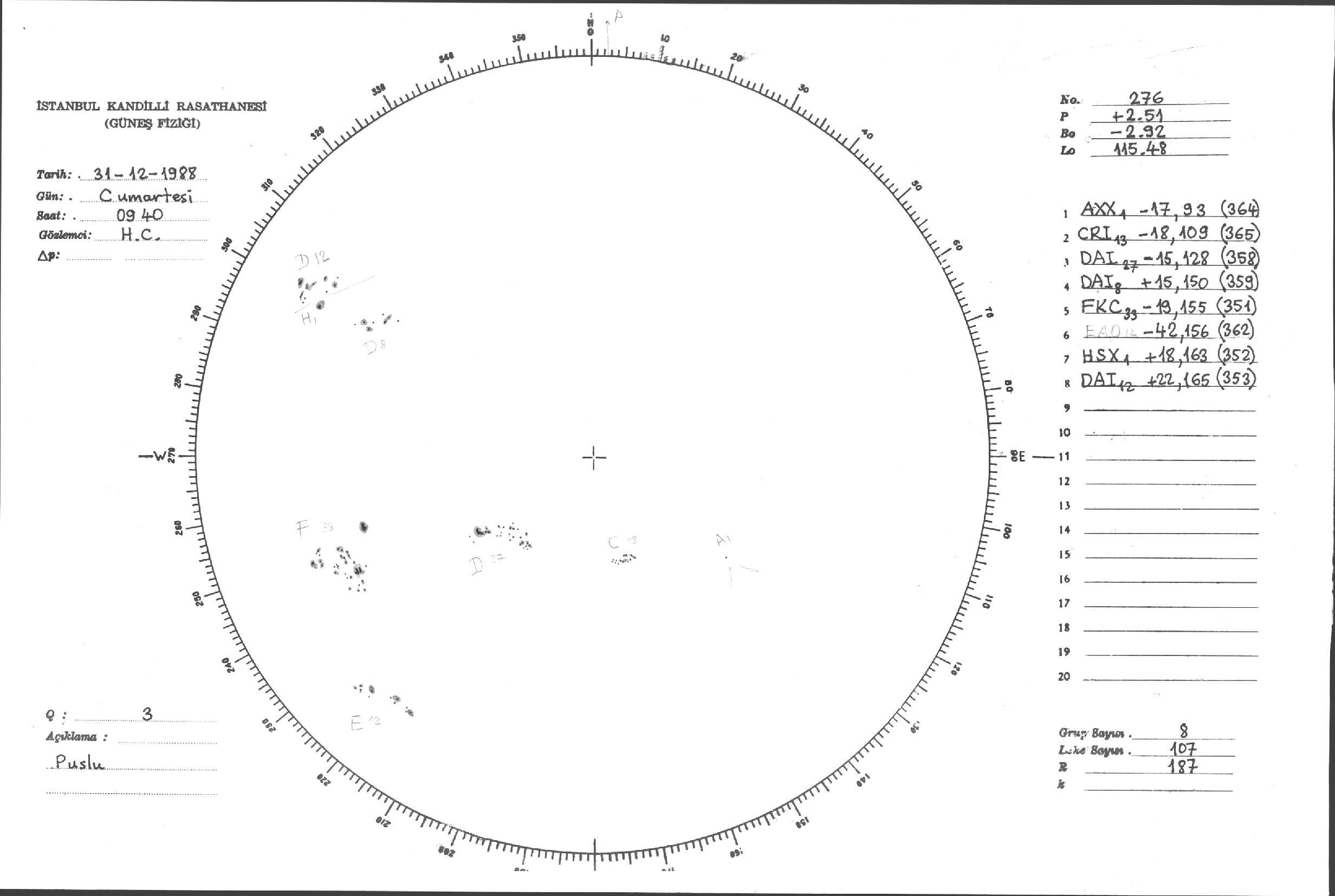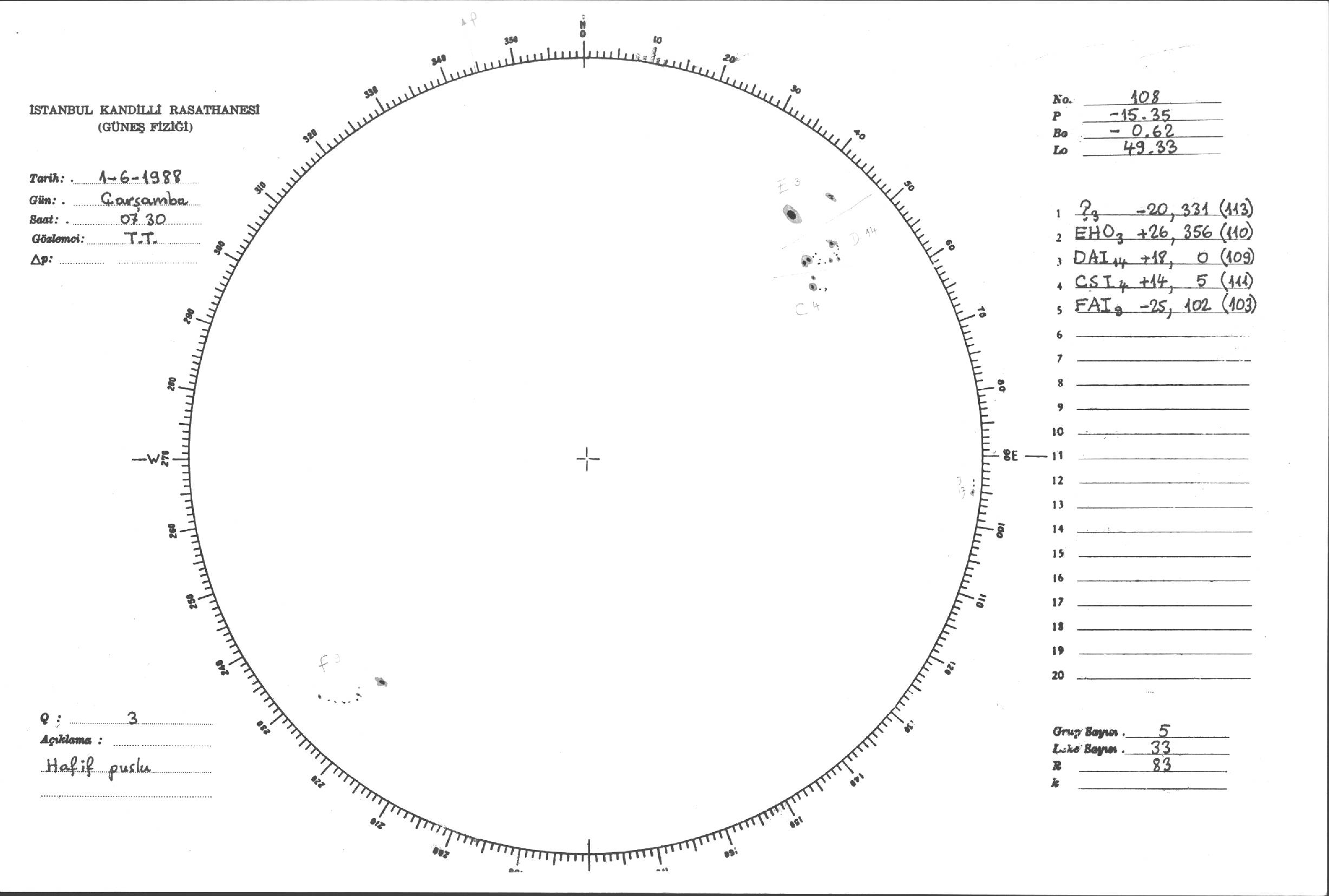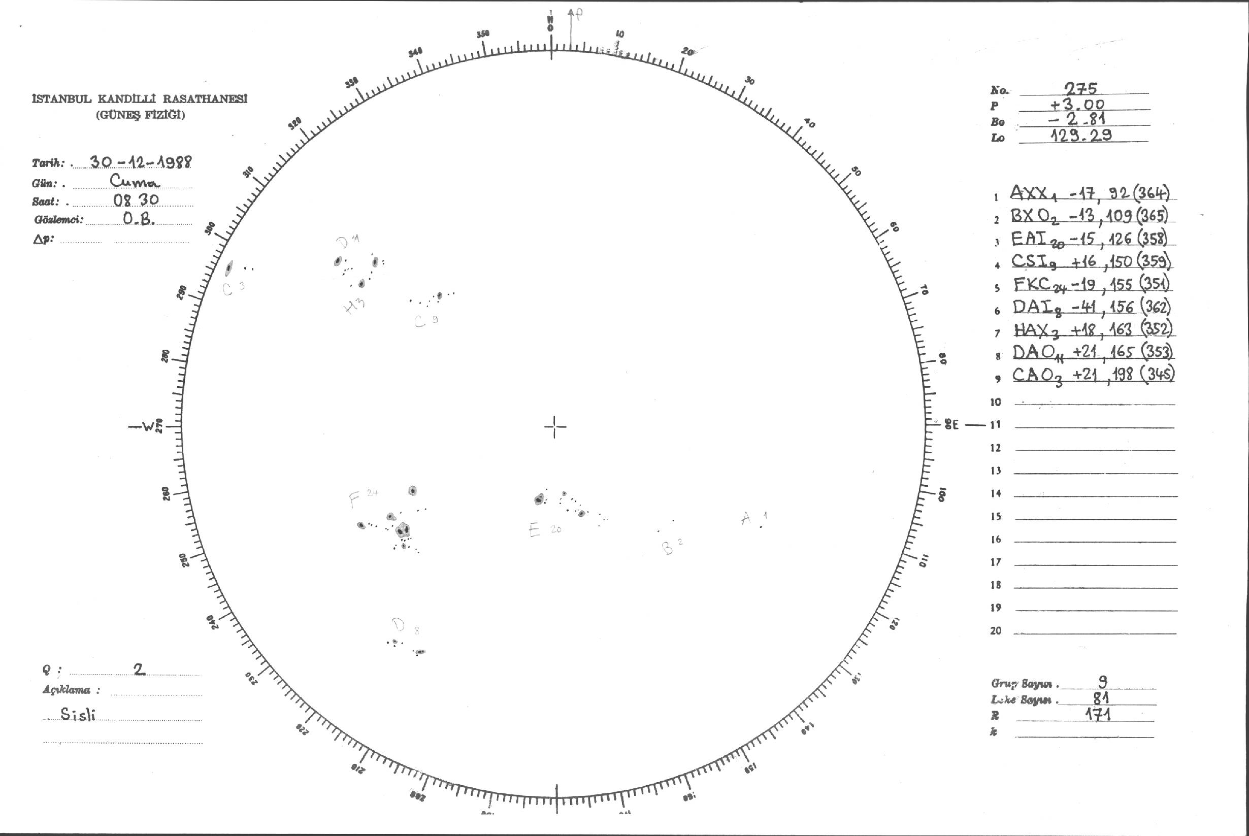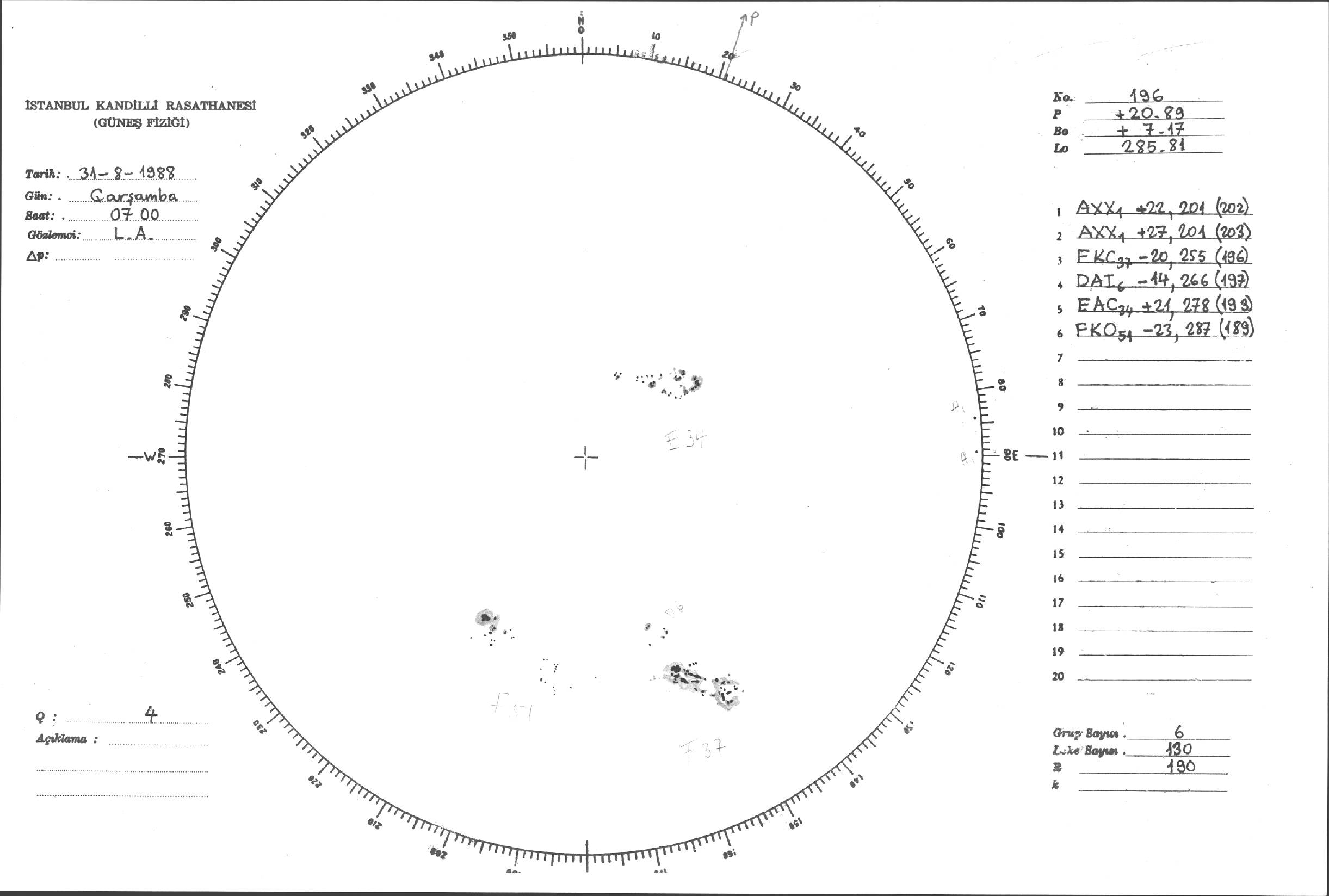 Güneş Lekesi Çizimleri / Kandilli Sunspot Drawings