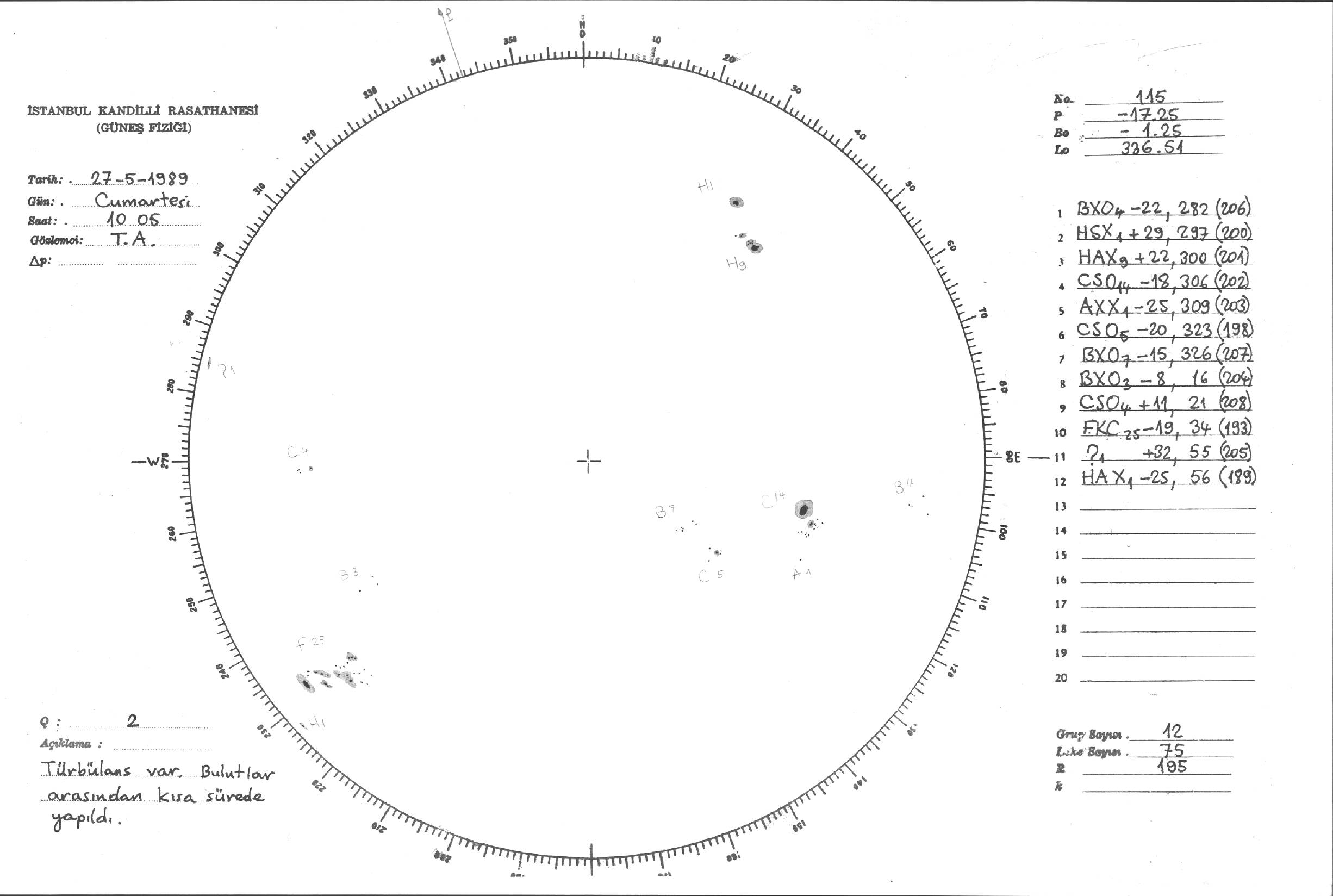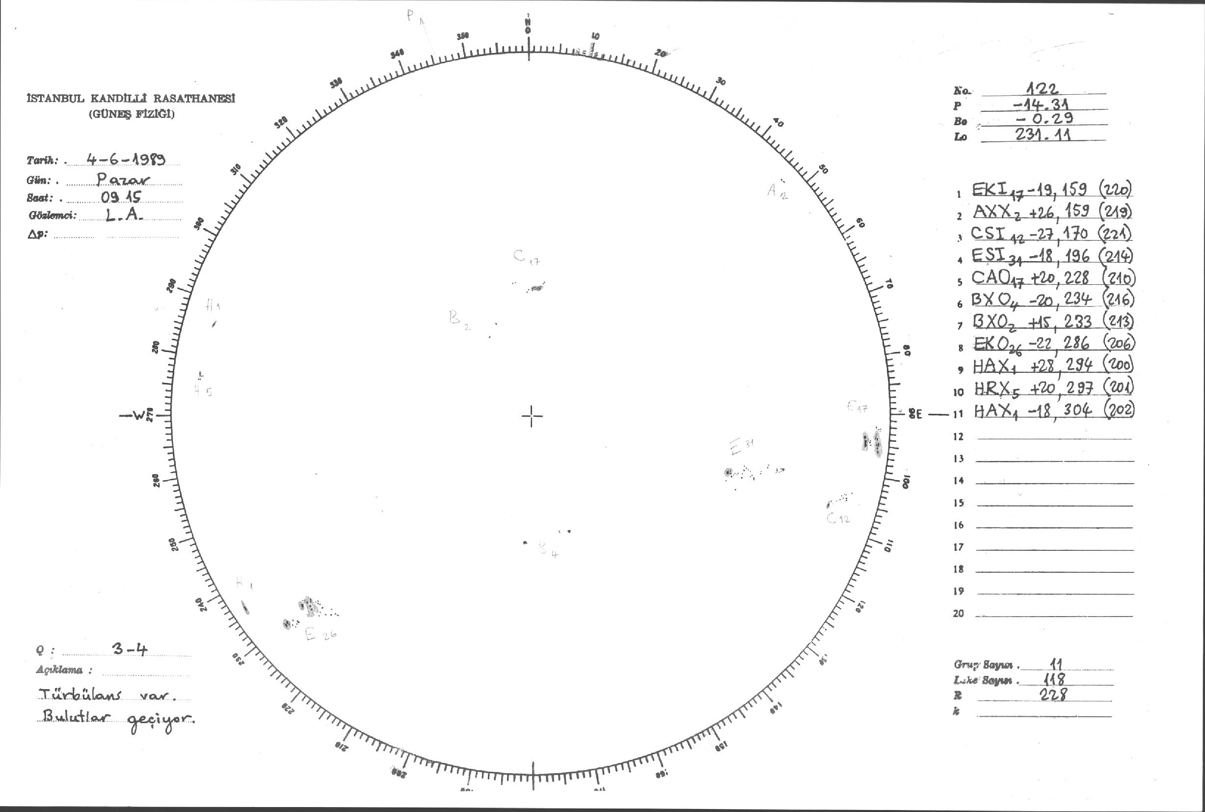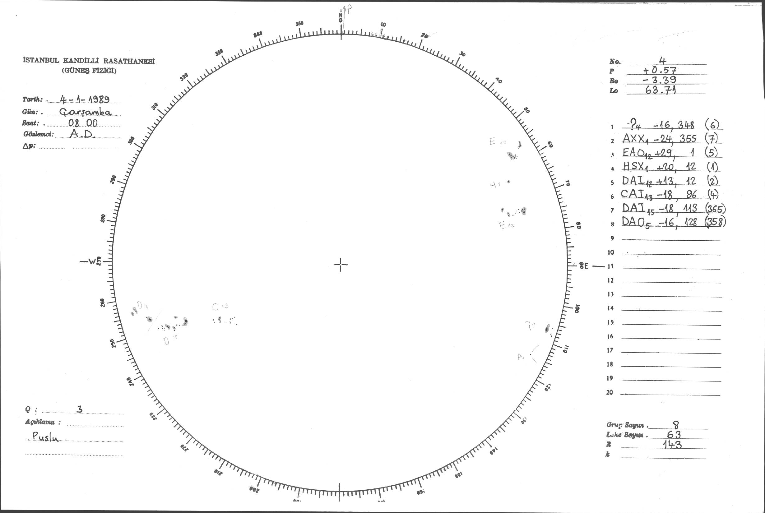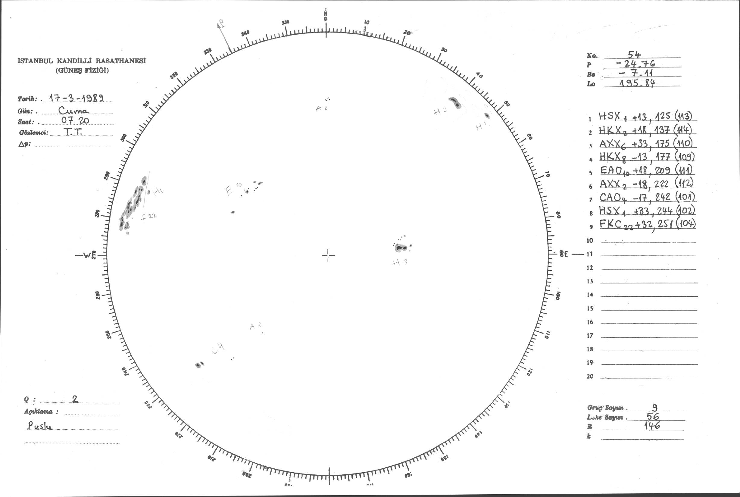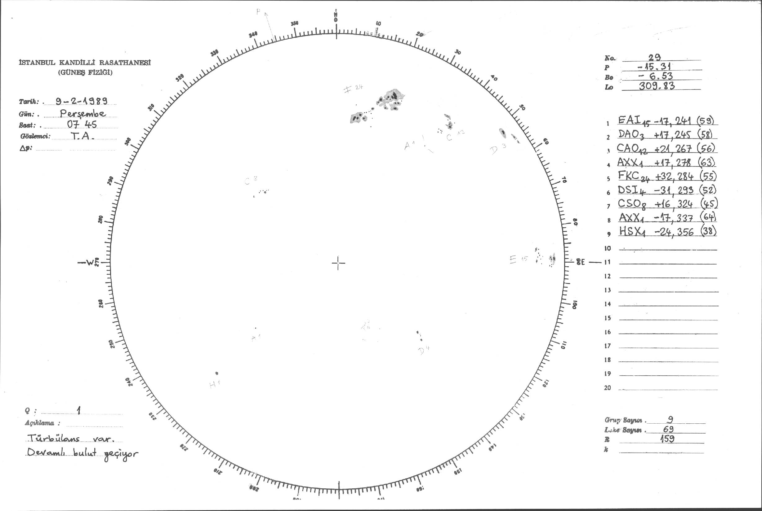 Güneş Lekesi Çizimleri / Kandilli Sunspot Drawings