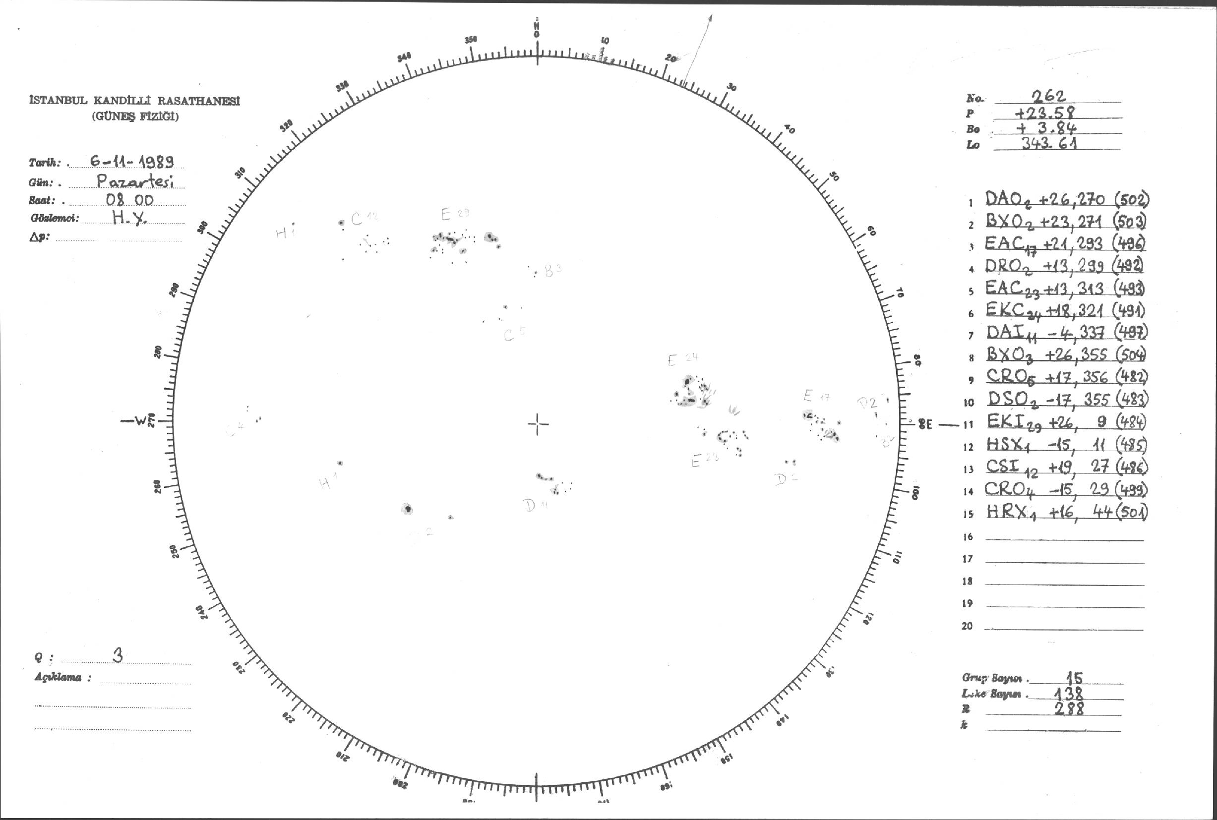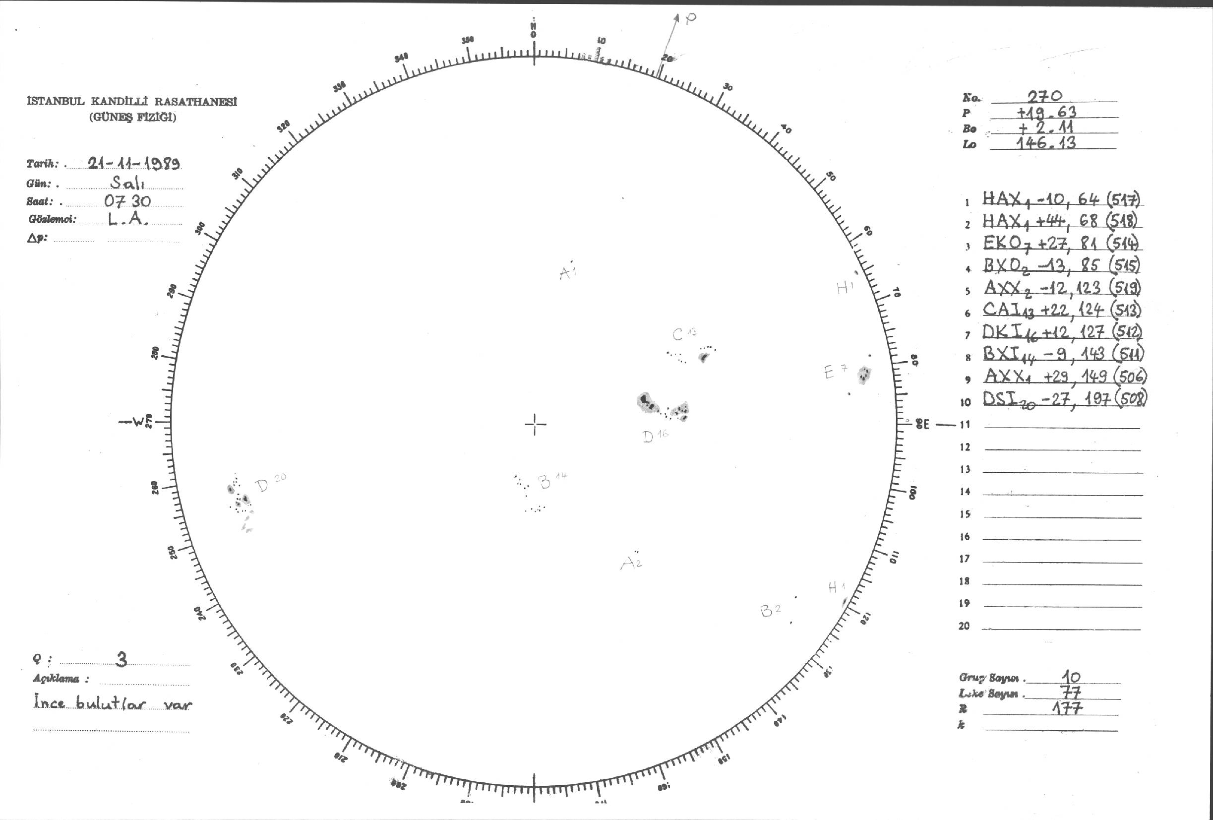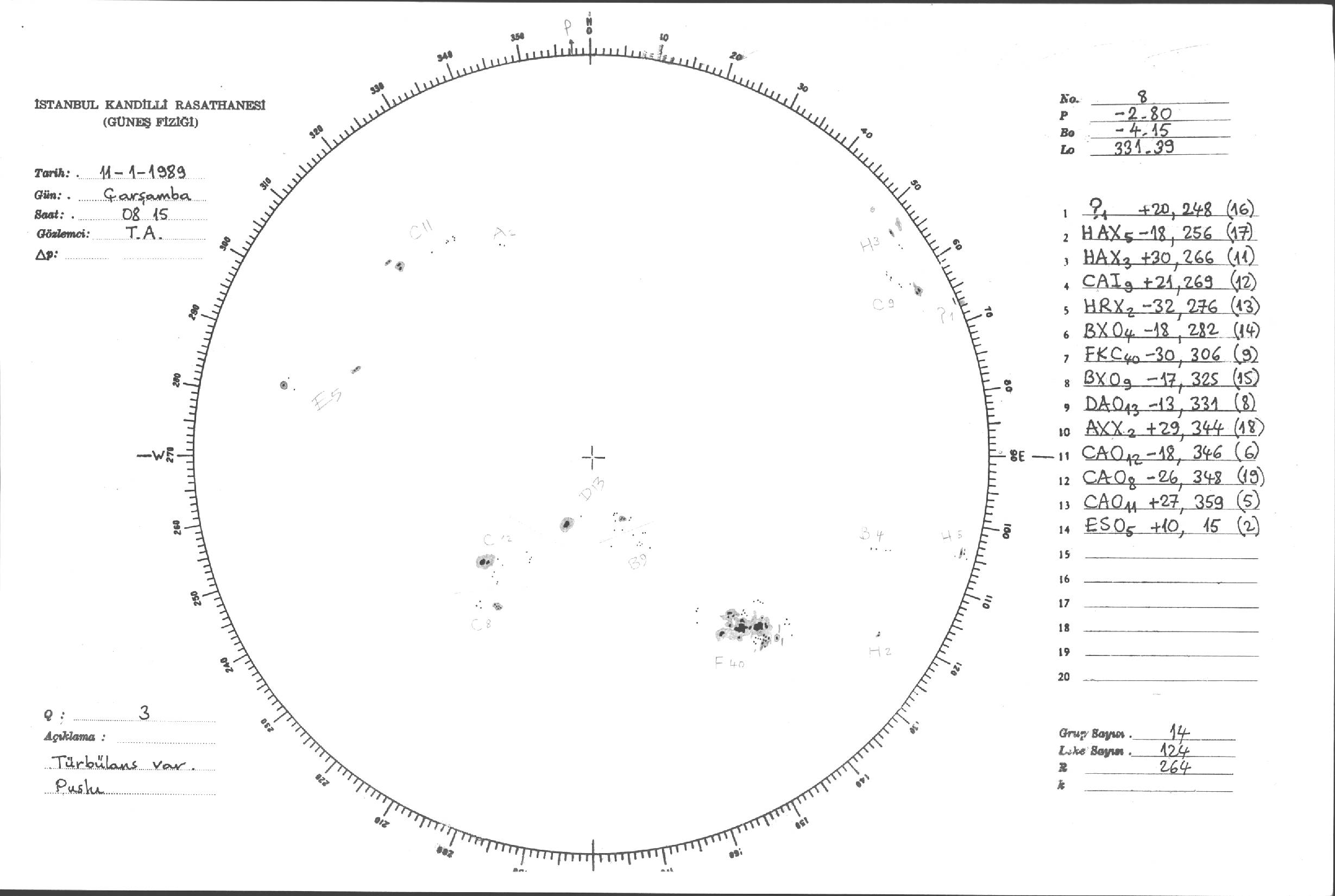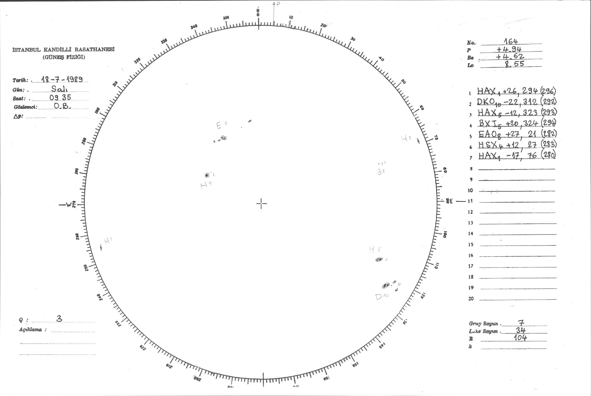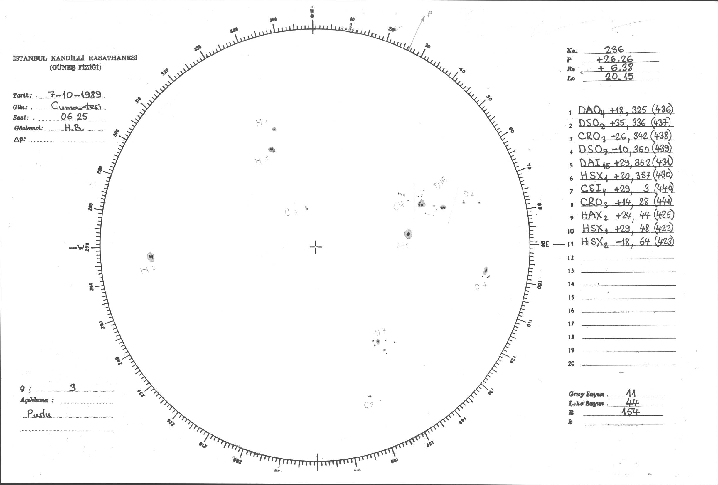 Güneş Lekesi Çizimleri / Kandilli Sunspot Drawings