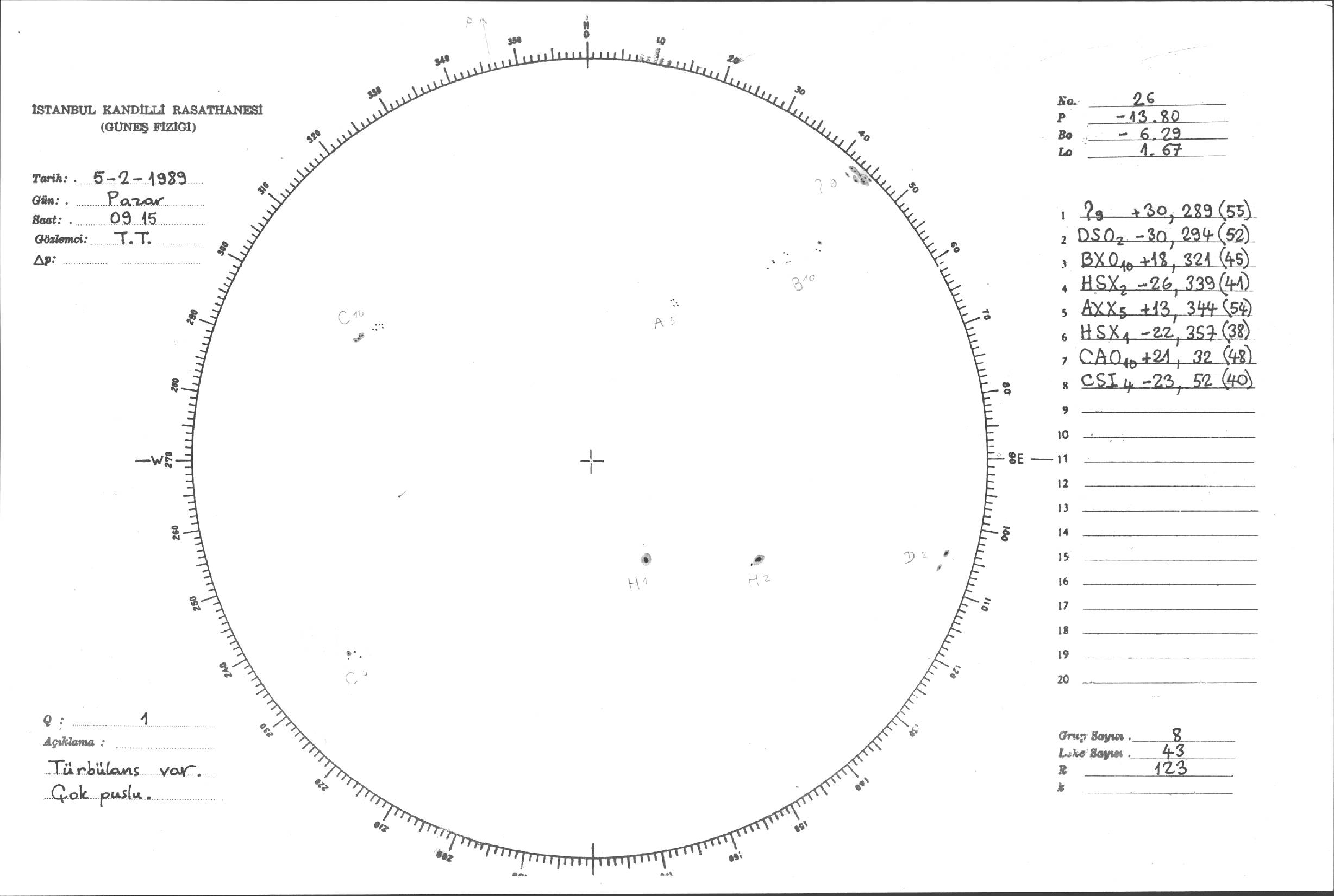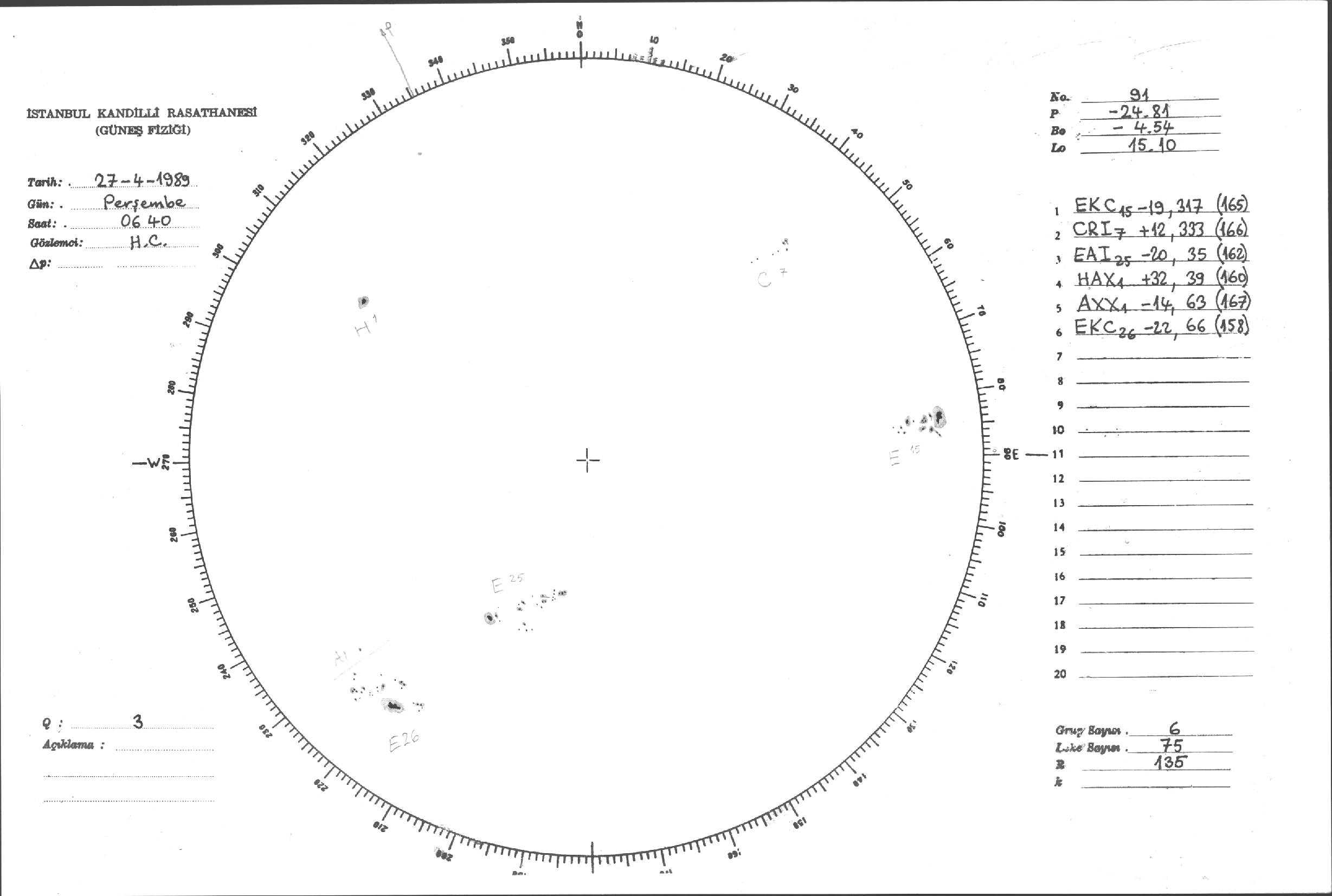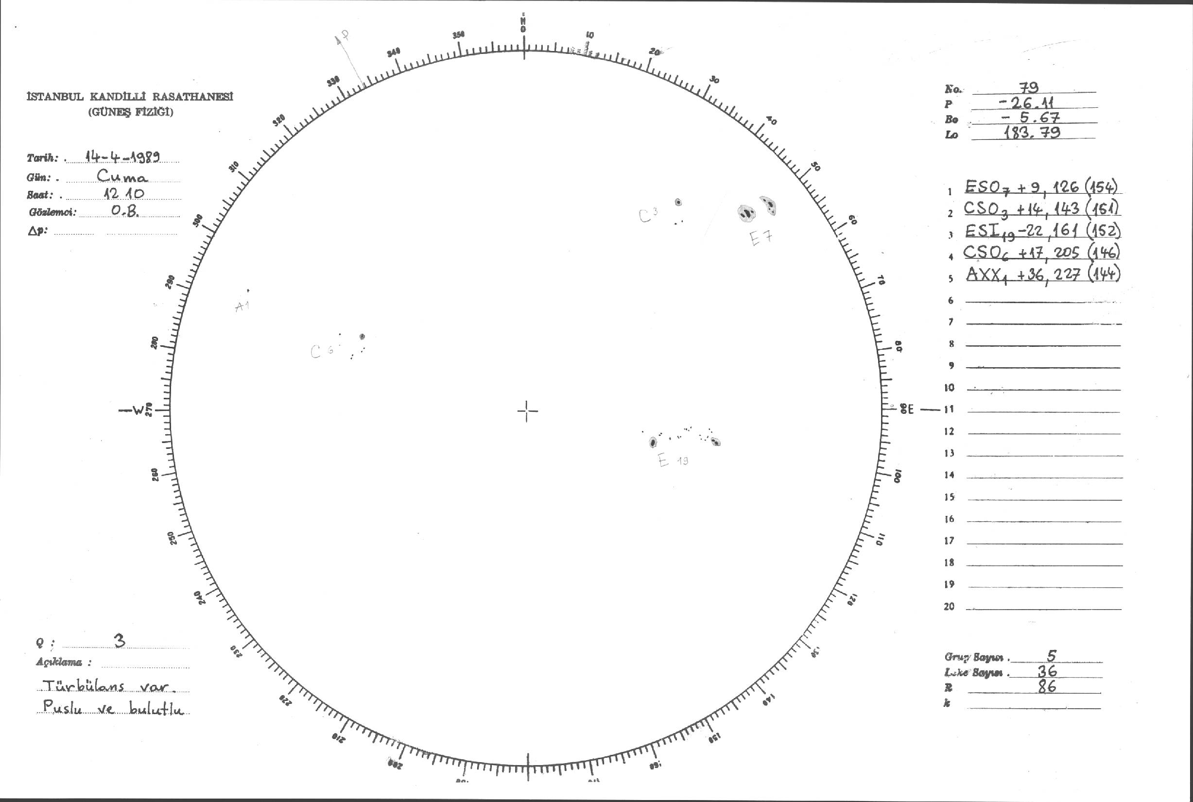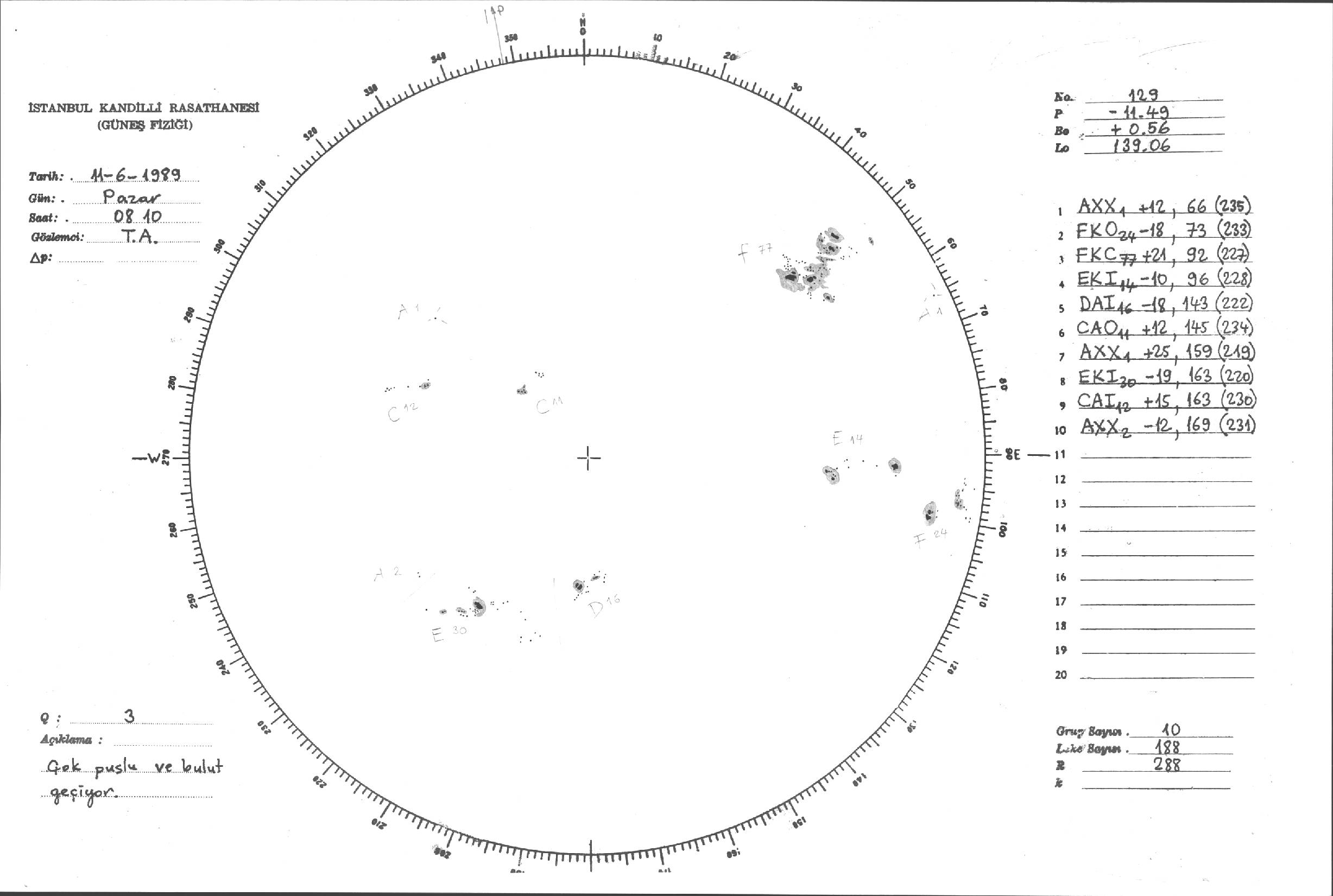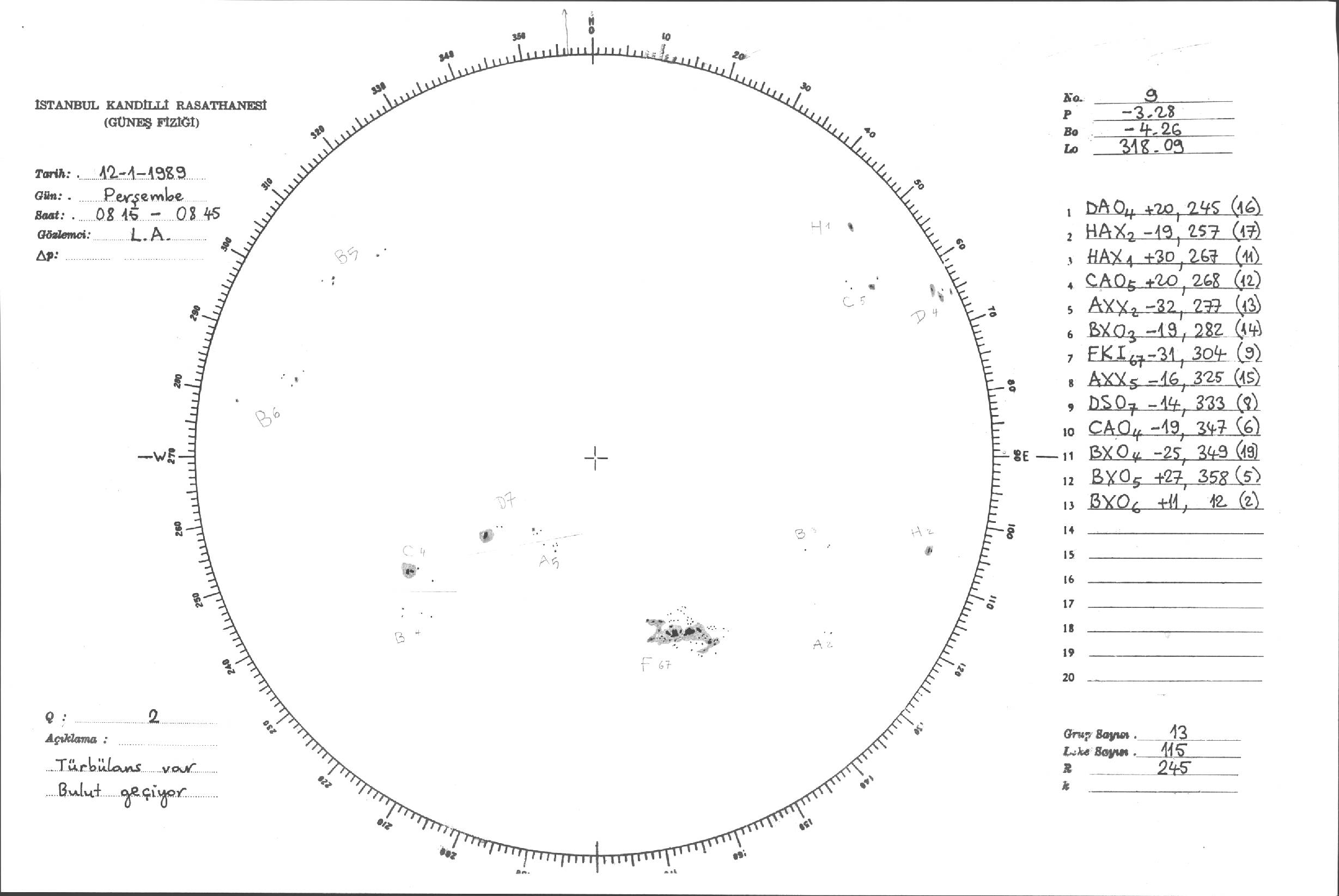 Güneş Lekesi Çizimleri / Kandilli Sunspot Drawings