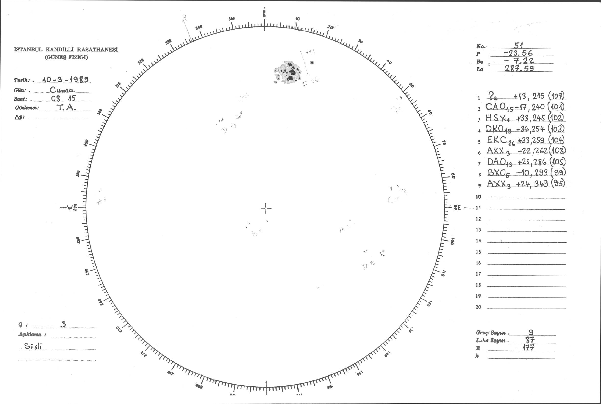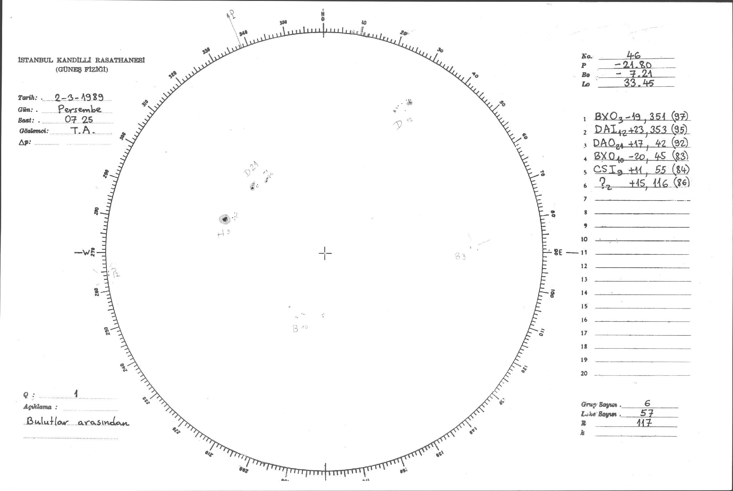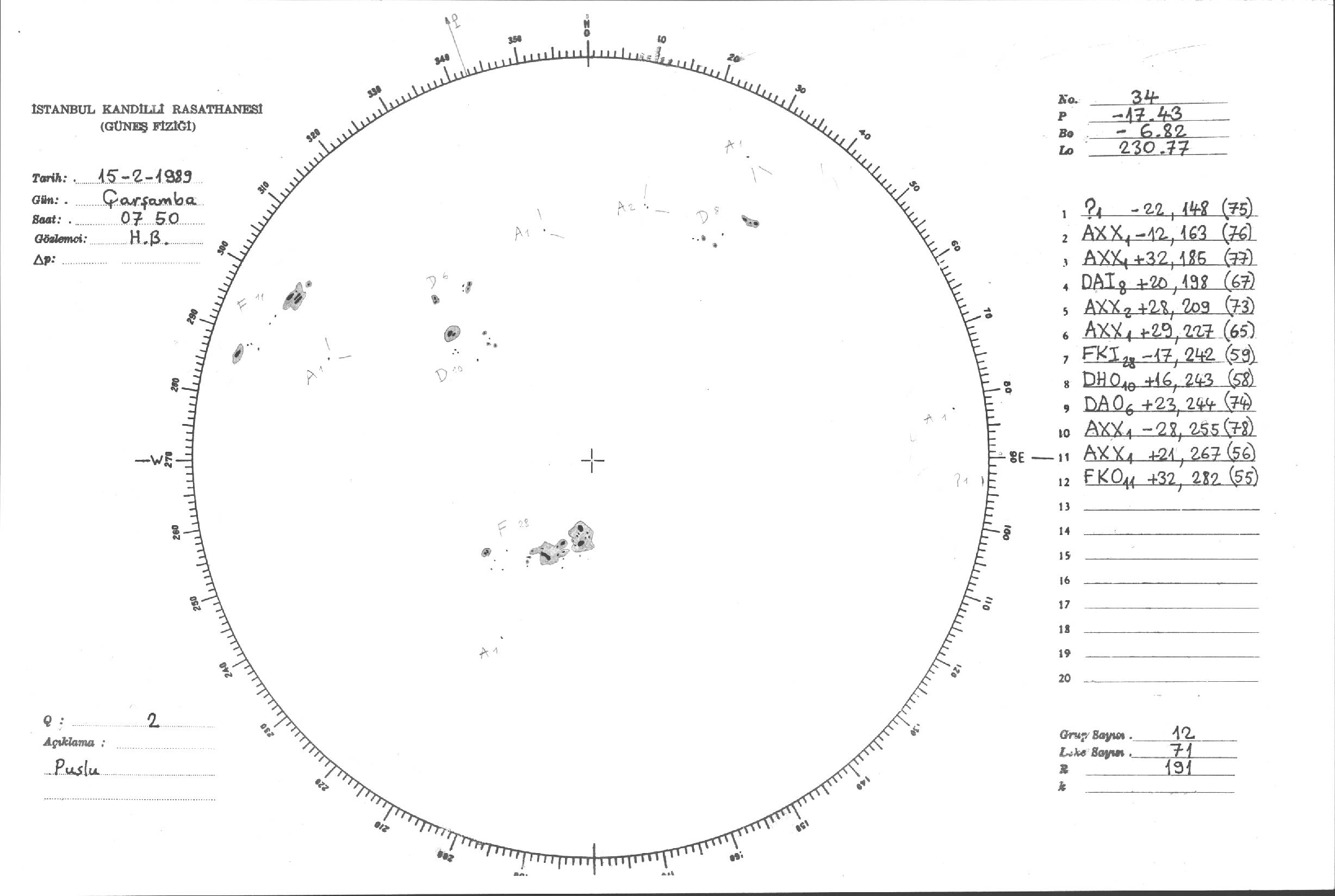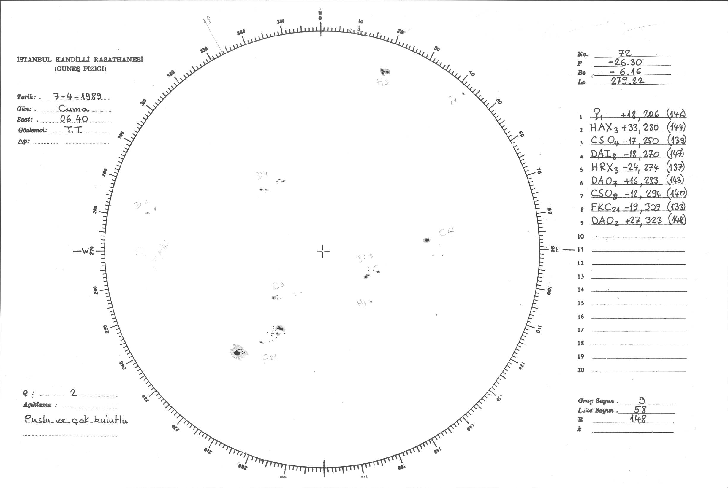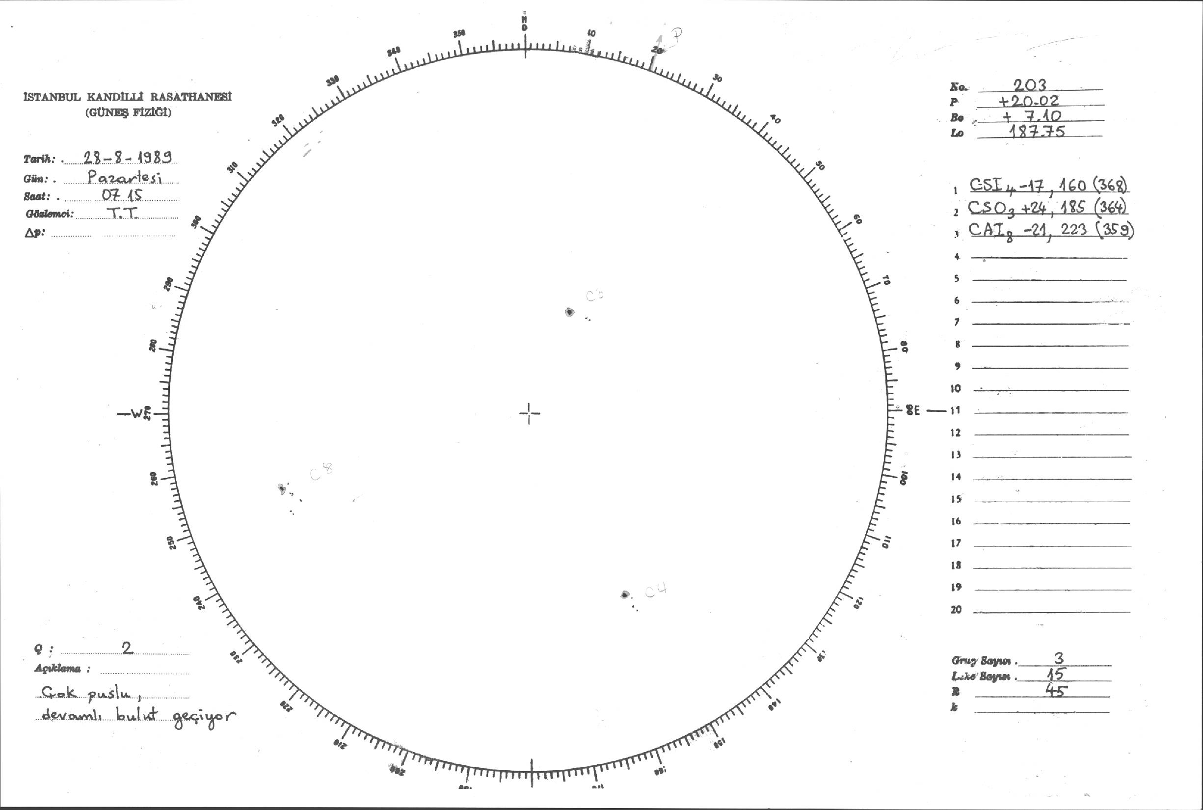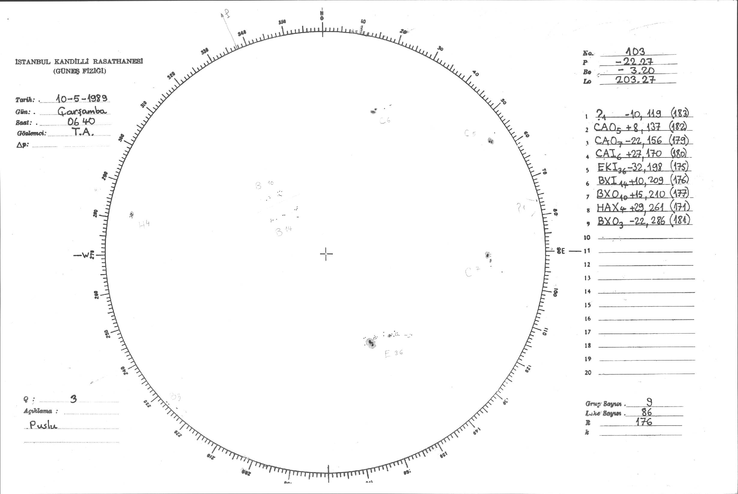 Güneş Lekesi Çizimleri / Kandilli Sunspot Drawings