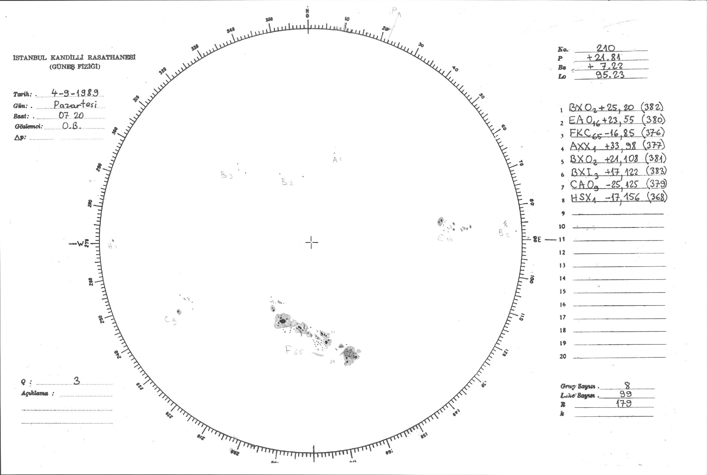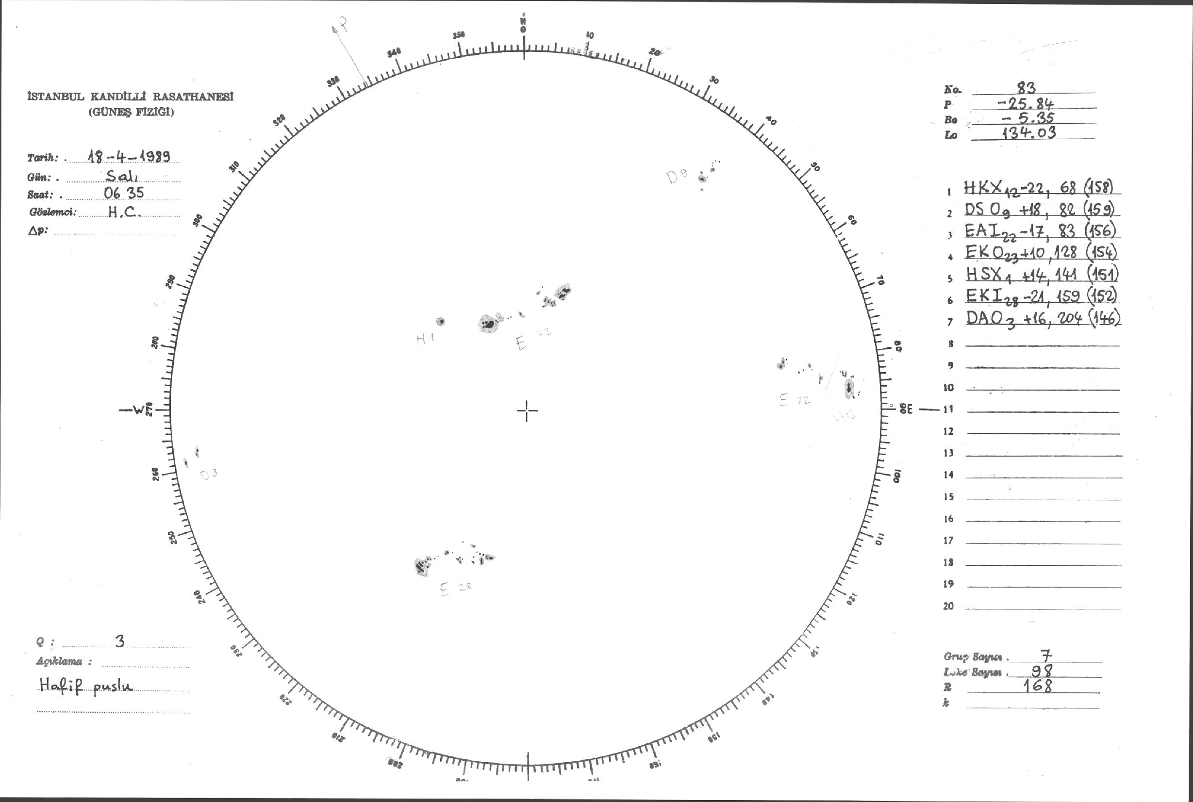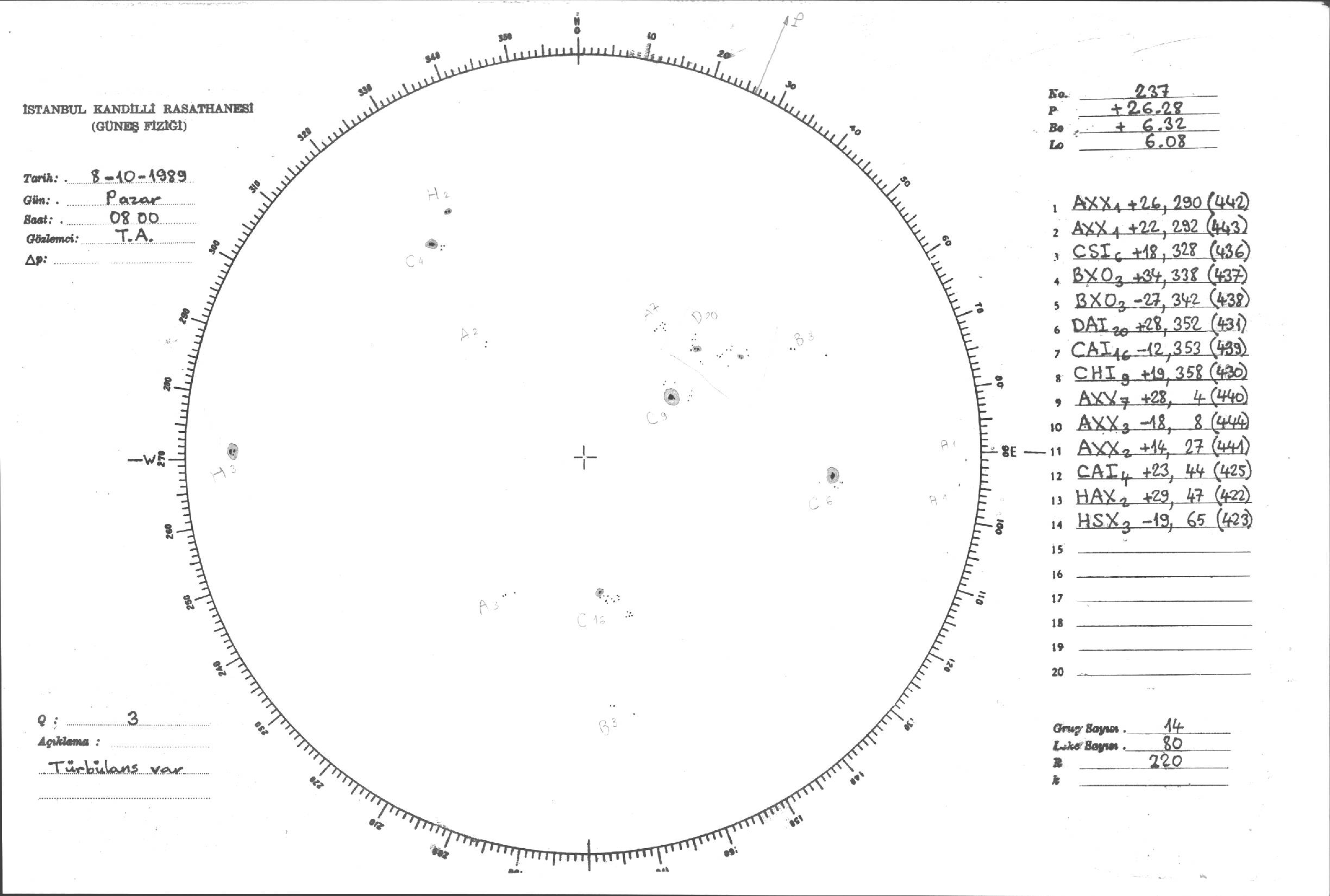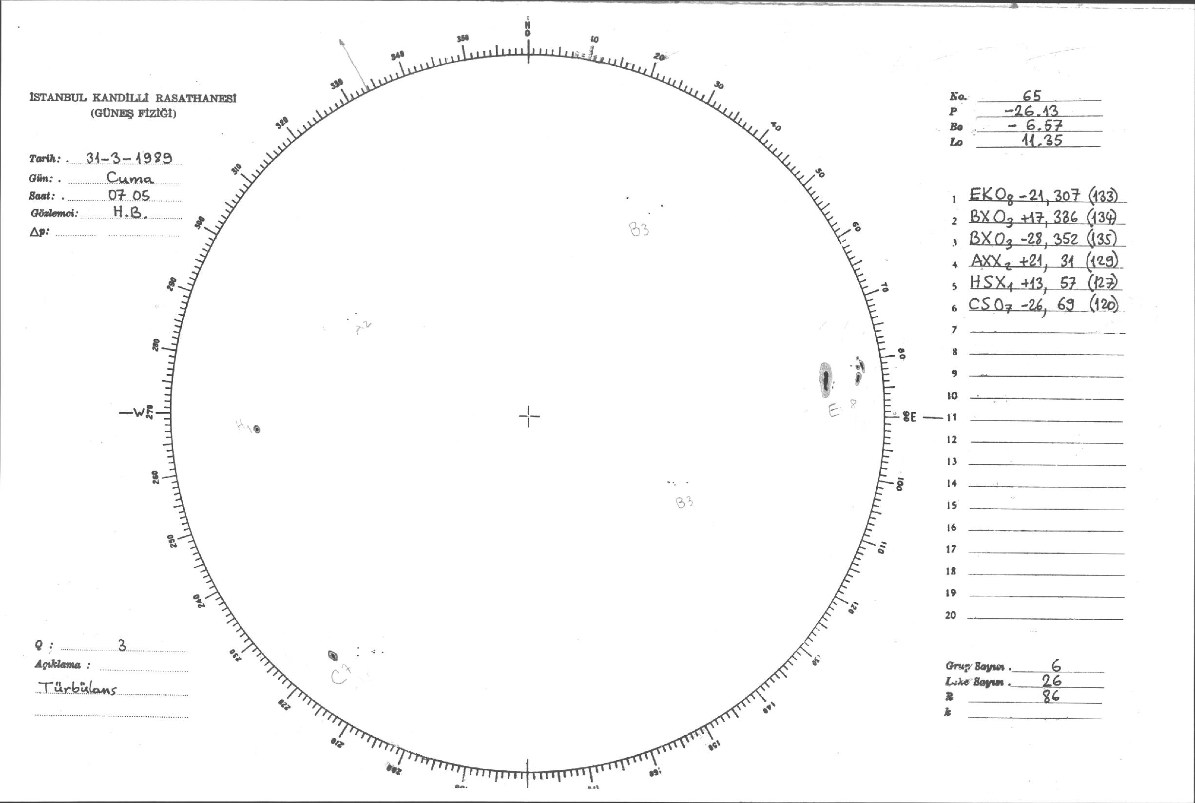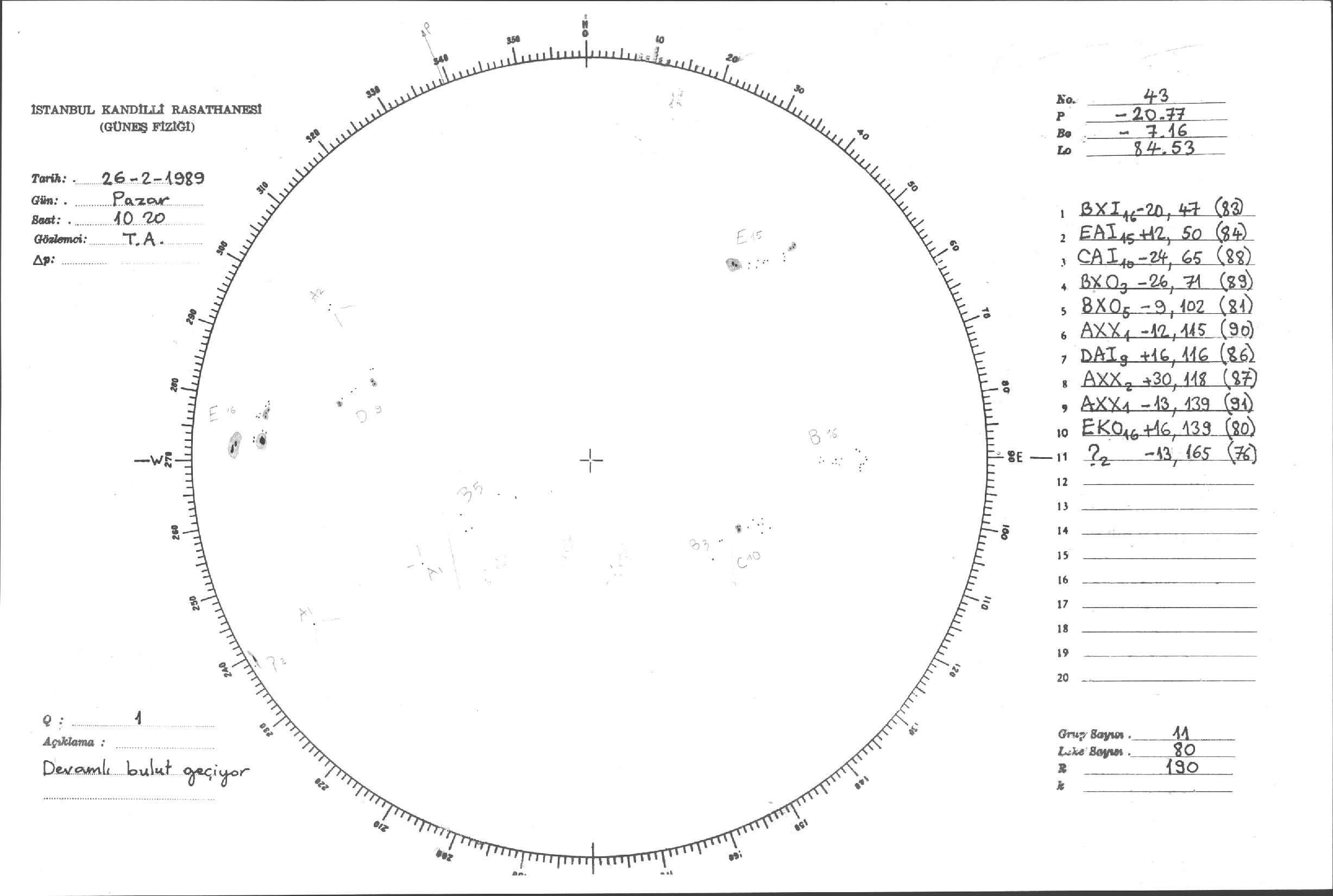 Güneş Lekesi Çizimleri / Kandilli Sunspot Drawings