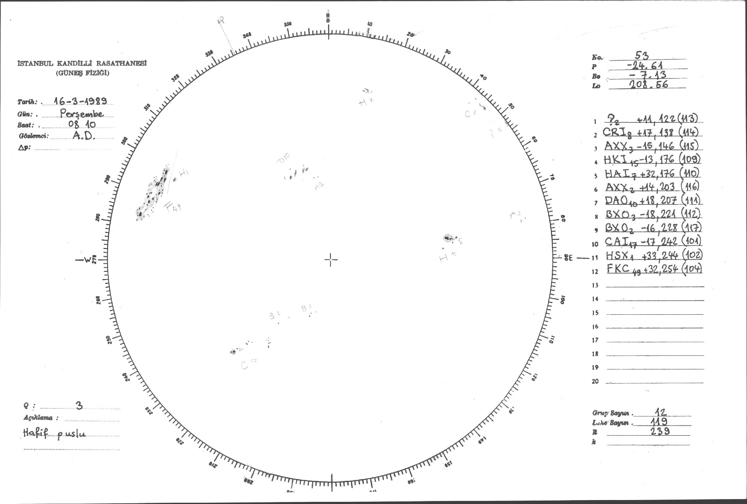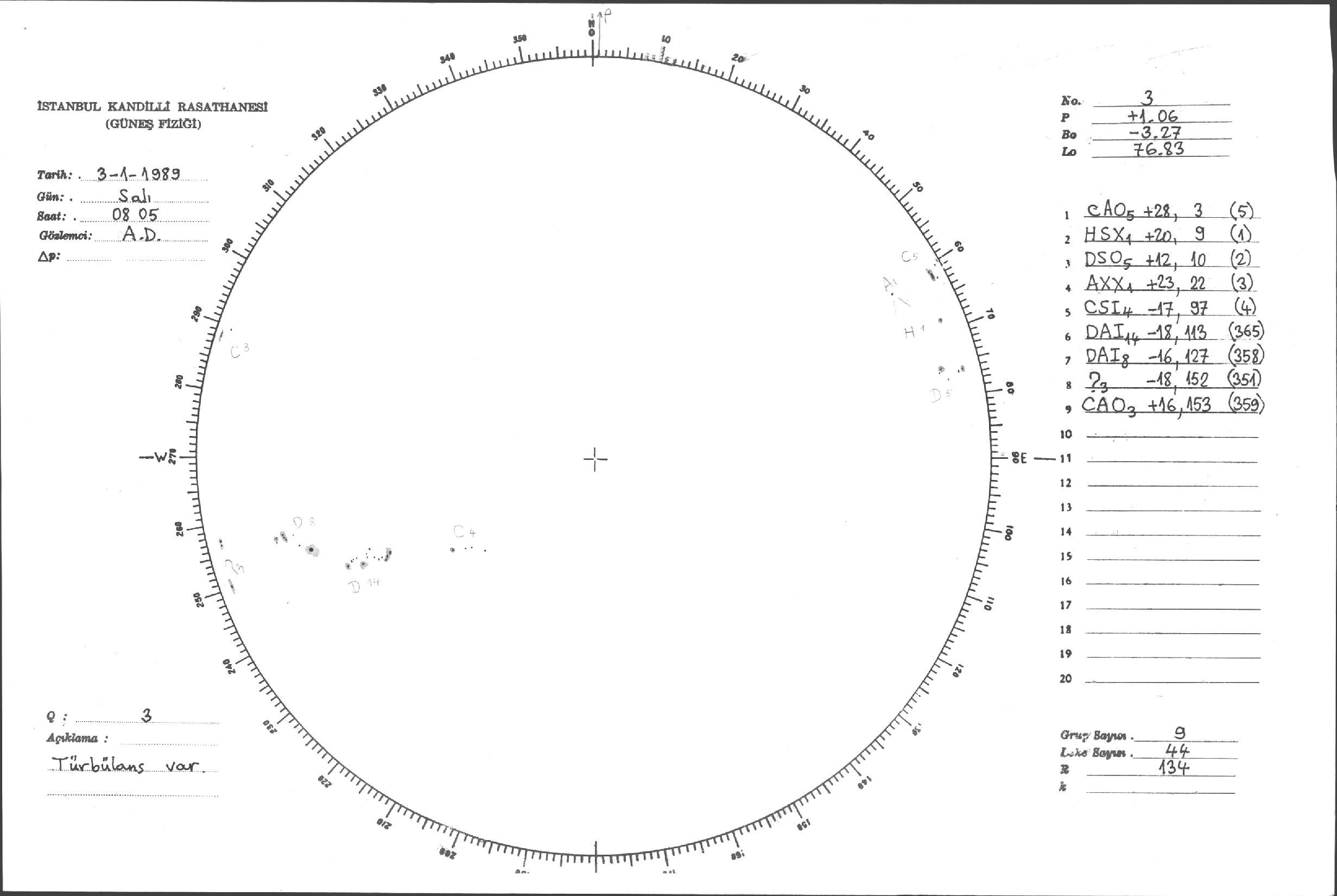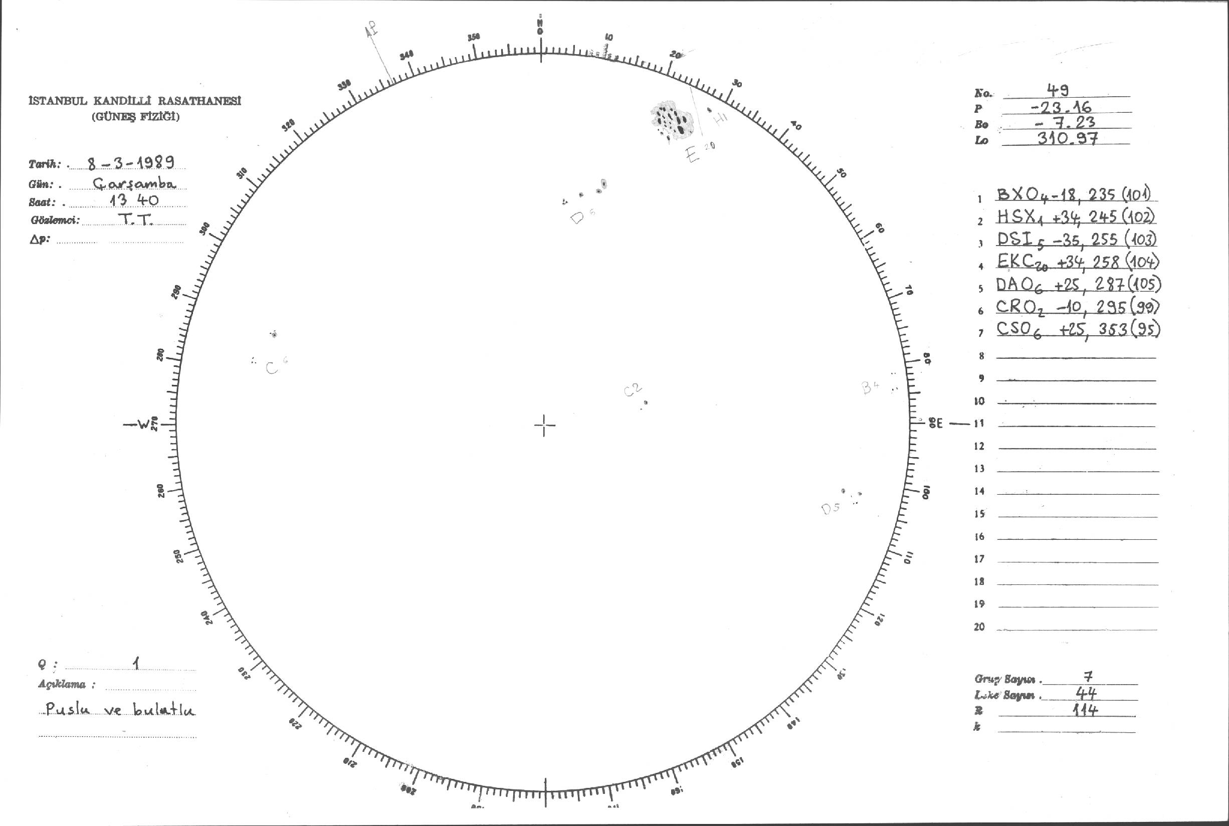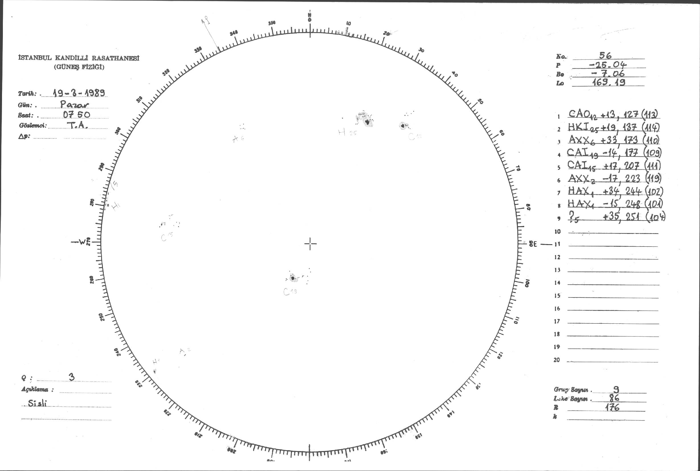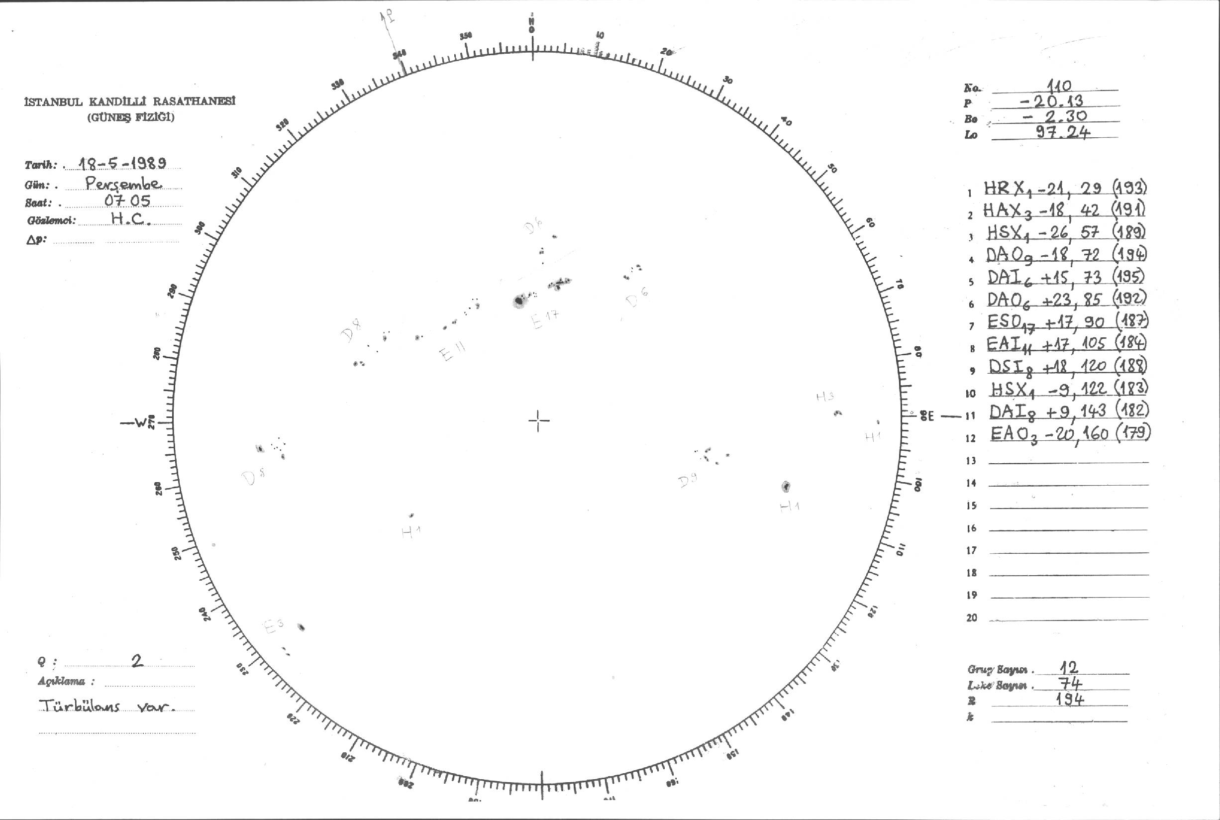 Güneş Lekesi Çizimleri / Kandilli Sunspot Drawings