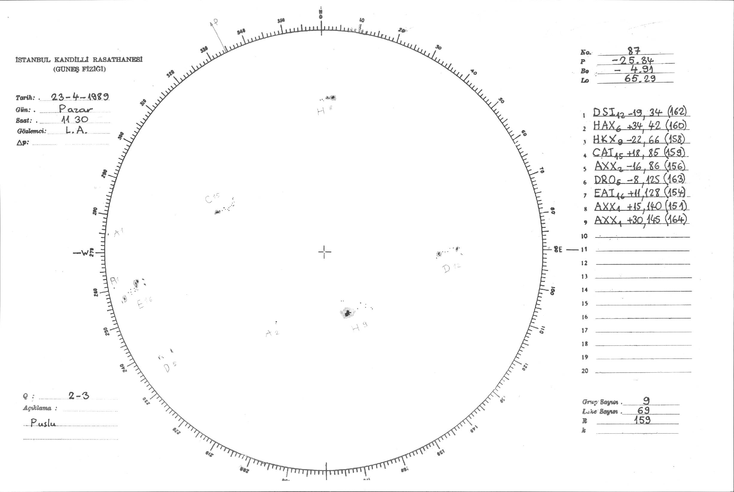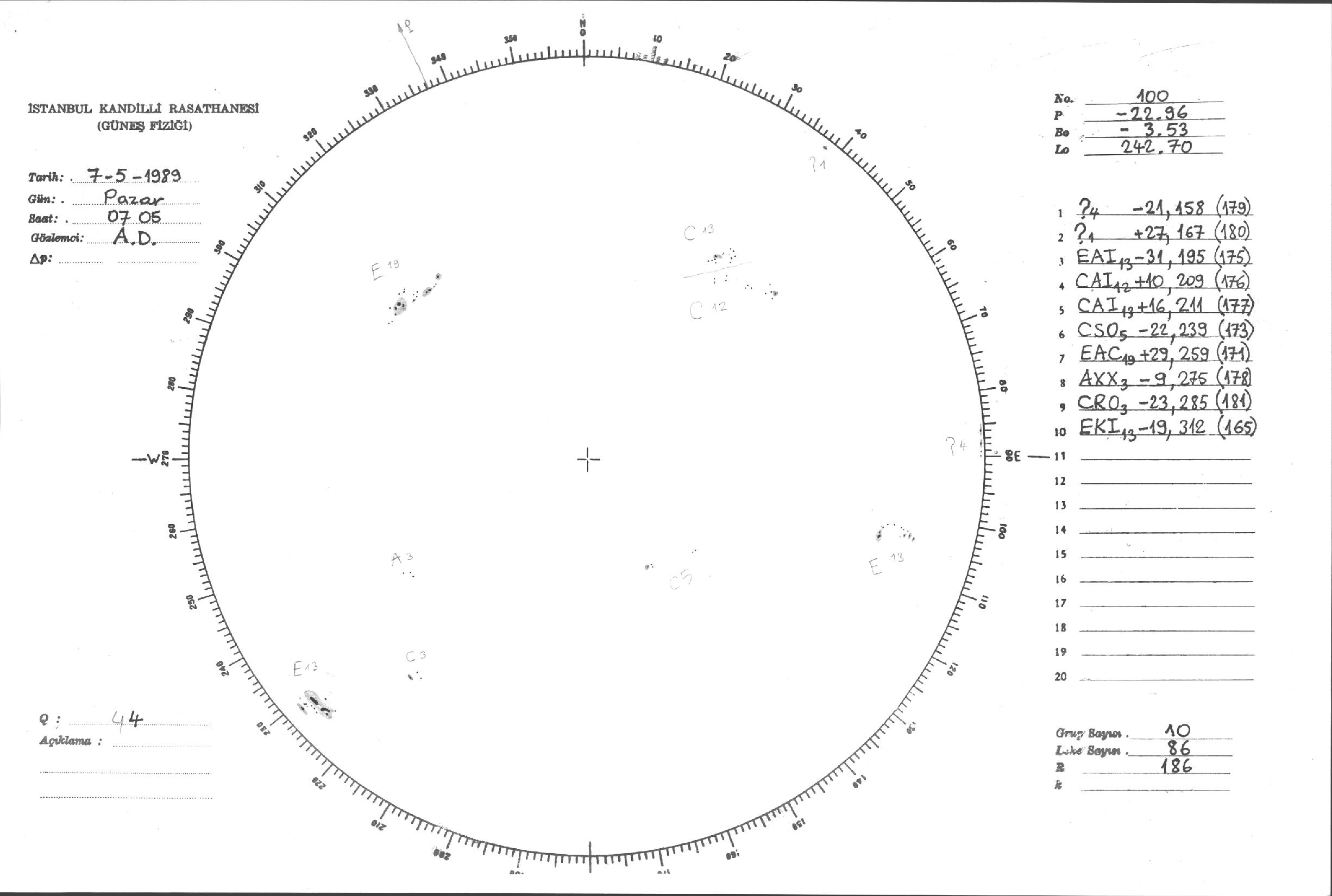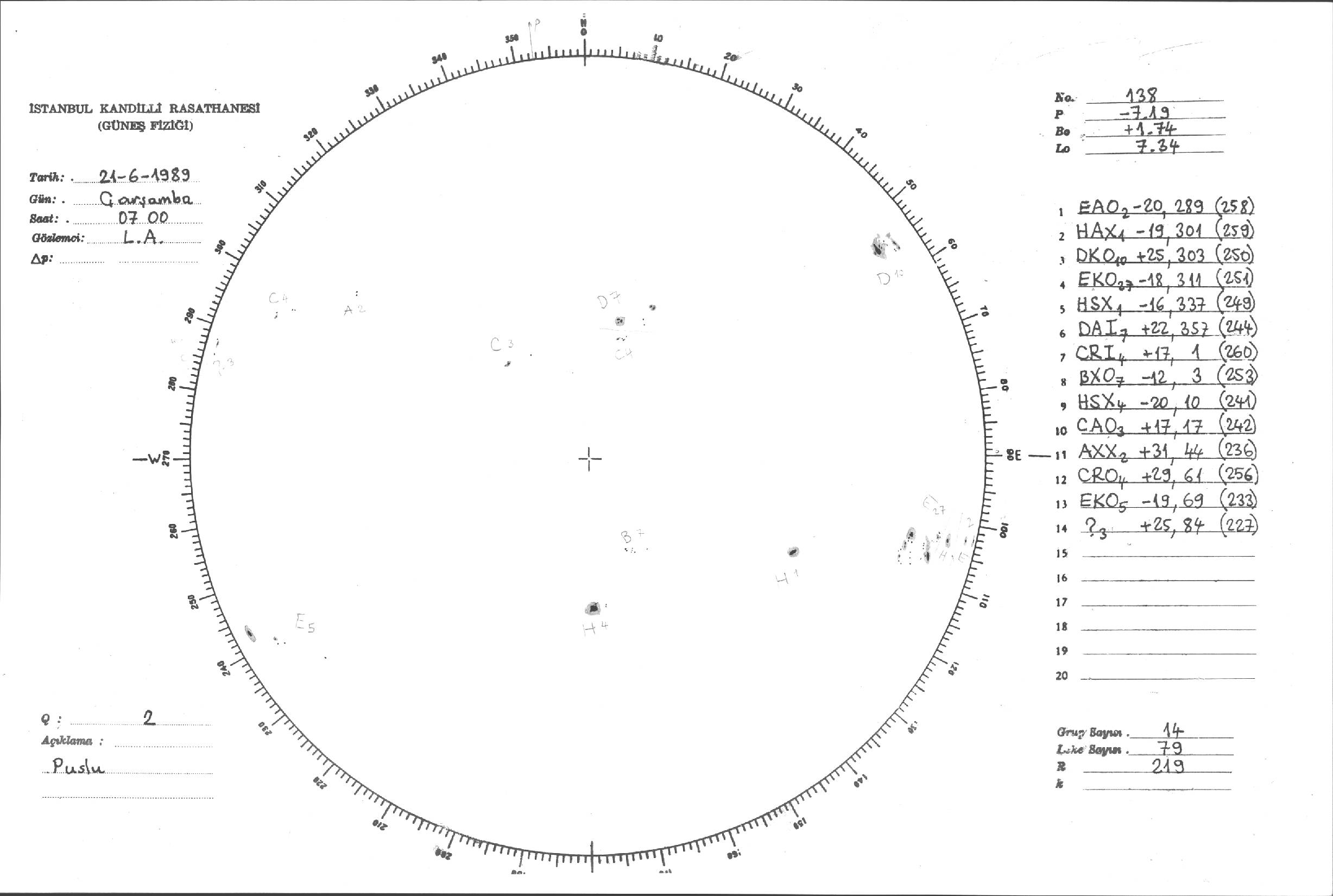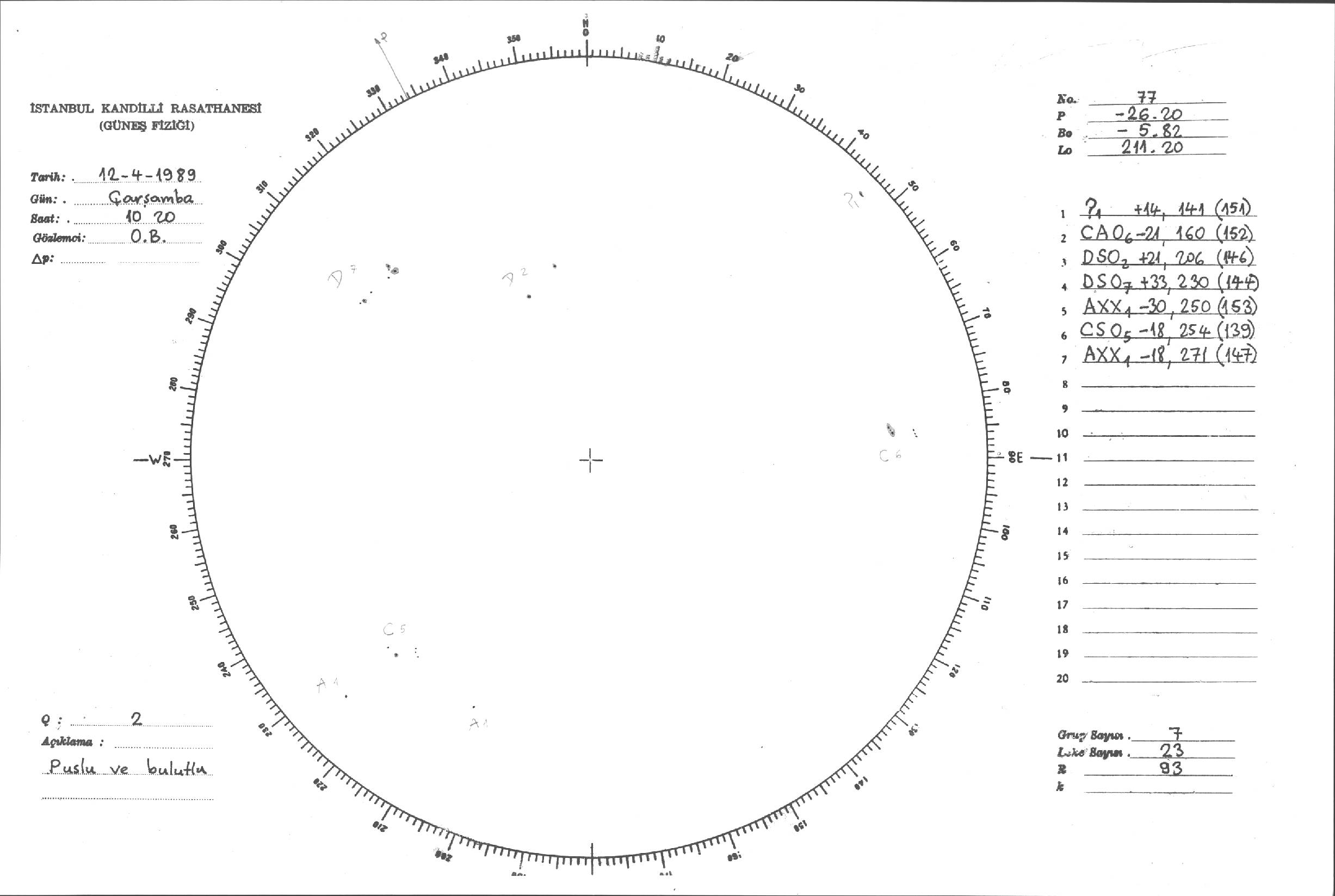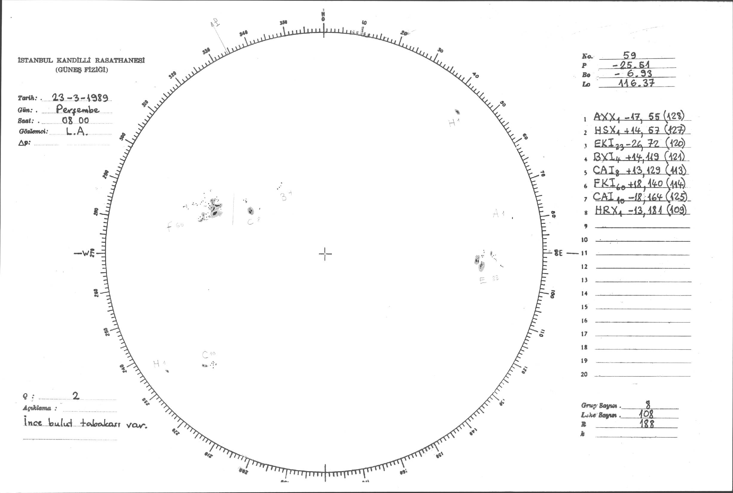 Güneş Lekesi Çizimleri / Kandilli Sunspot Drawings