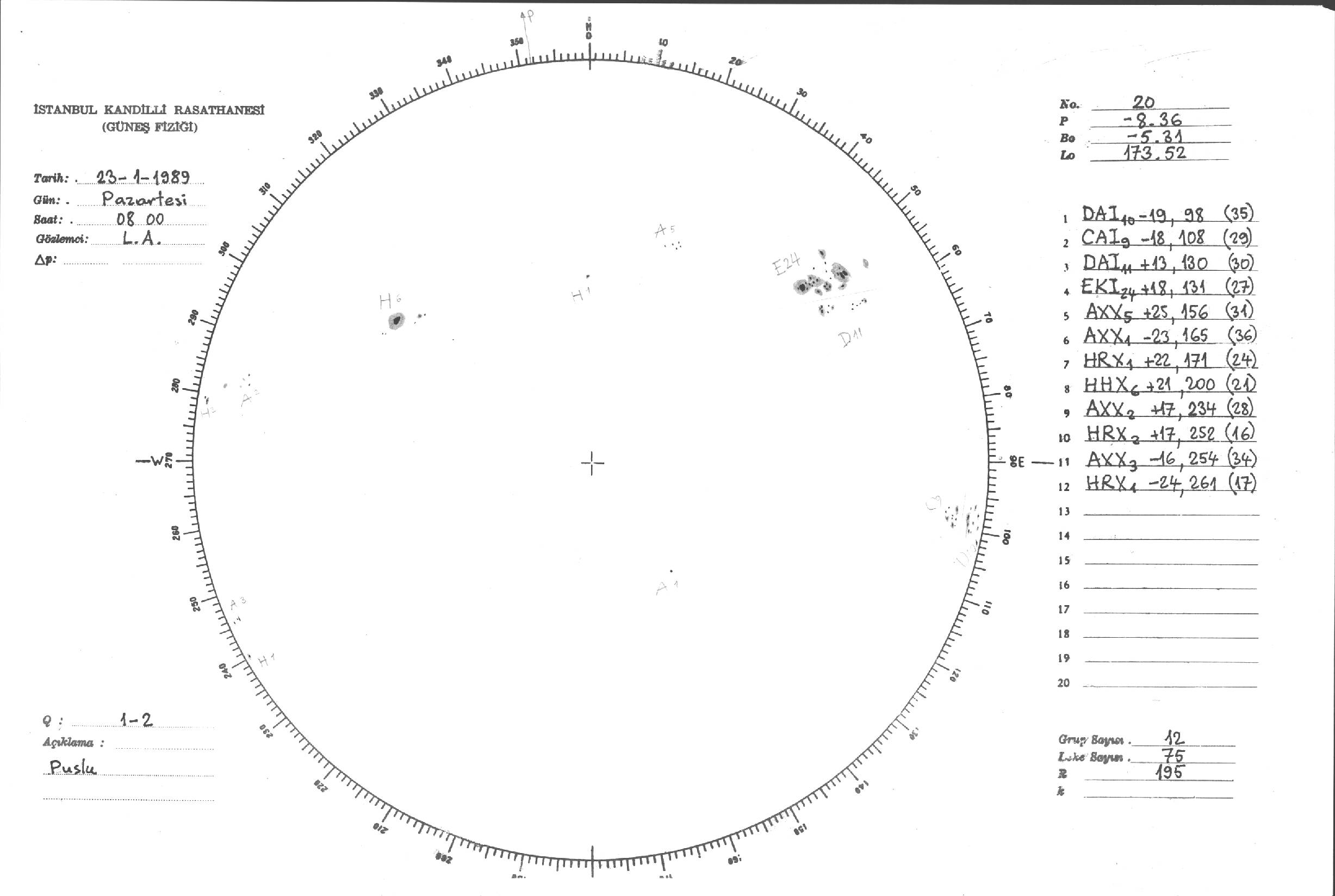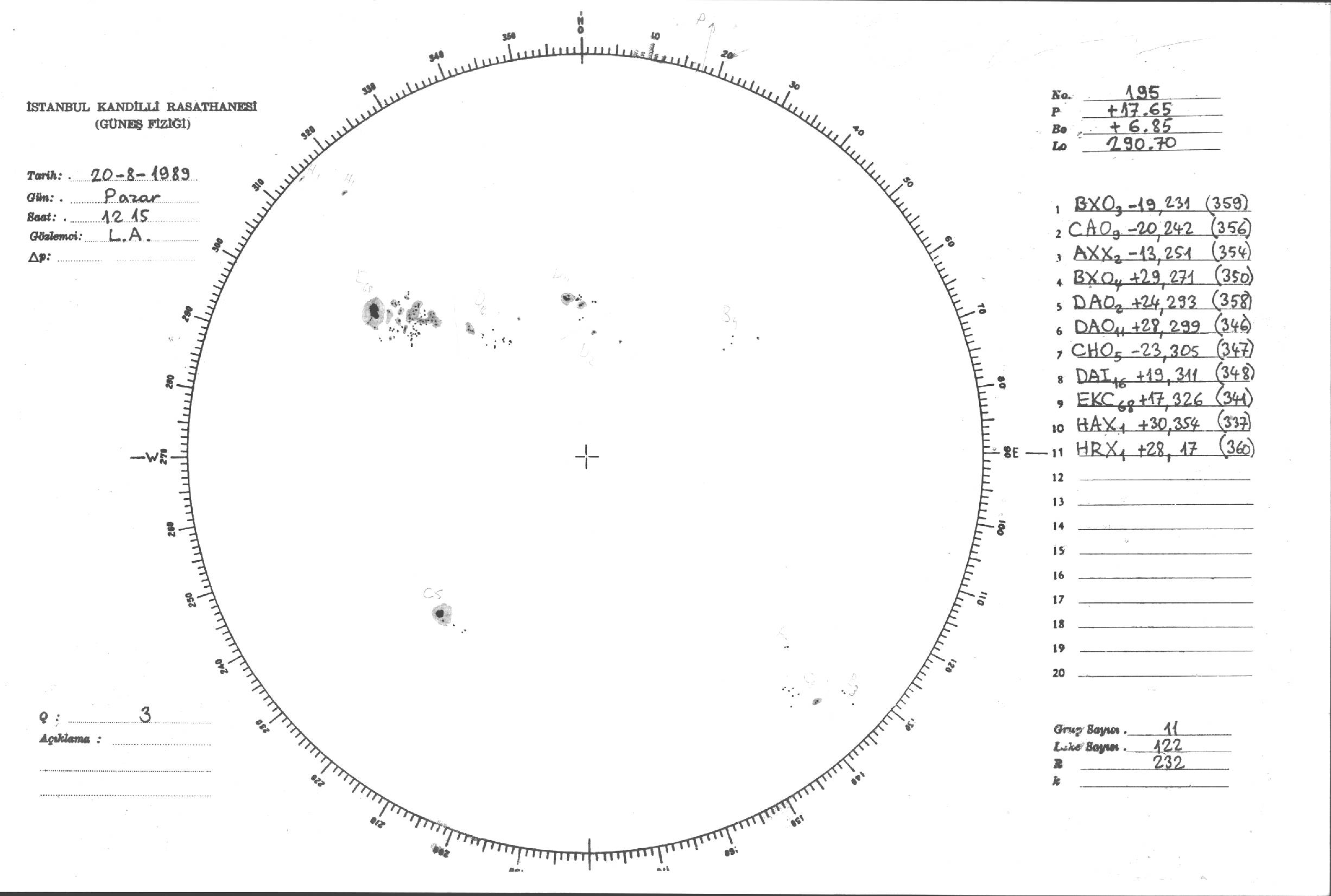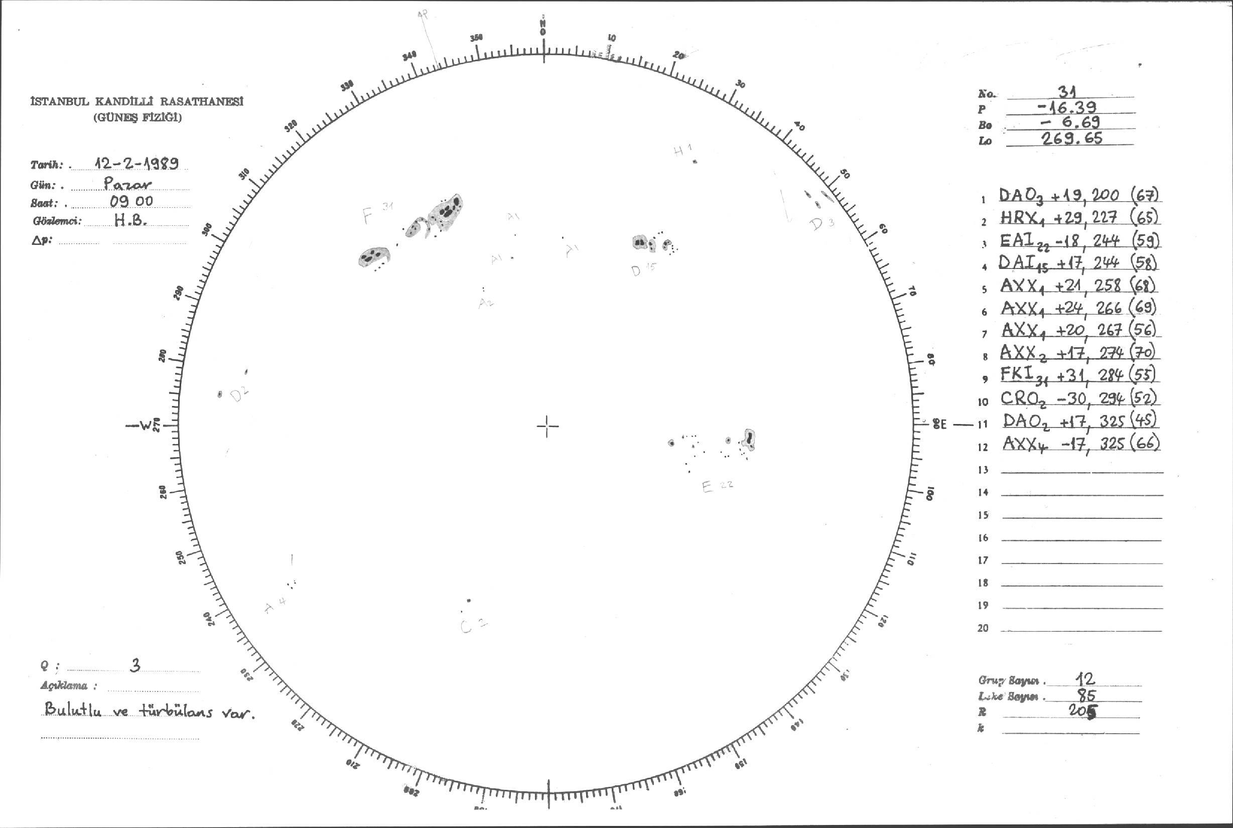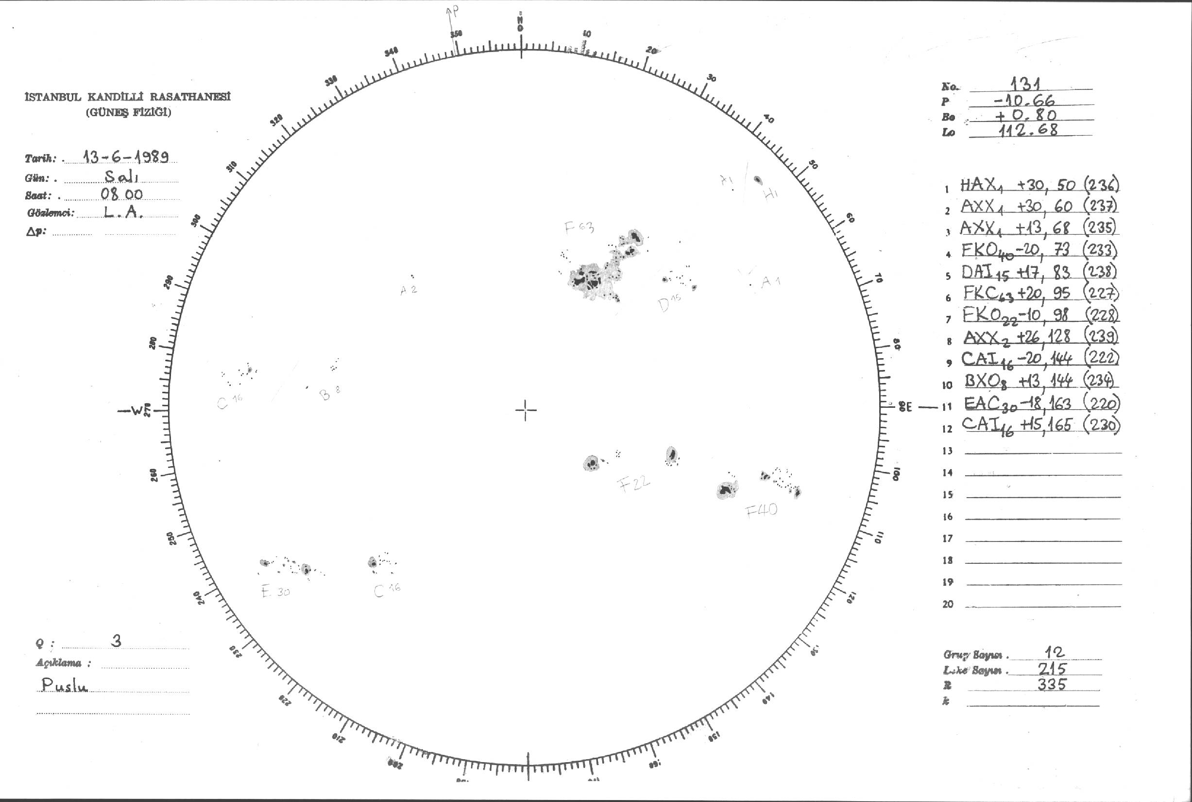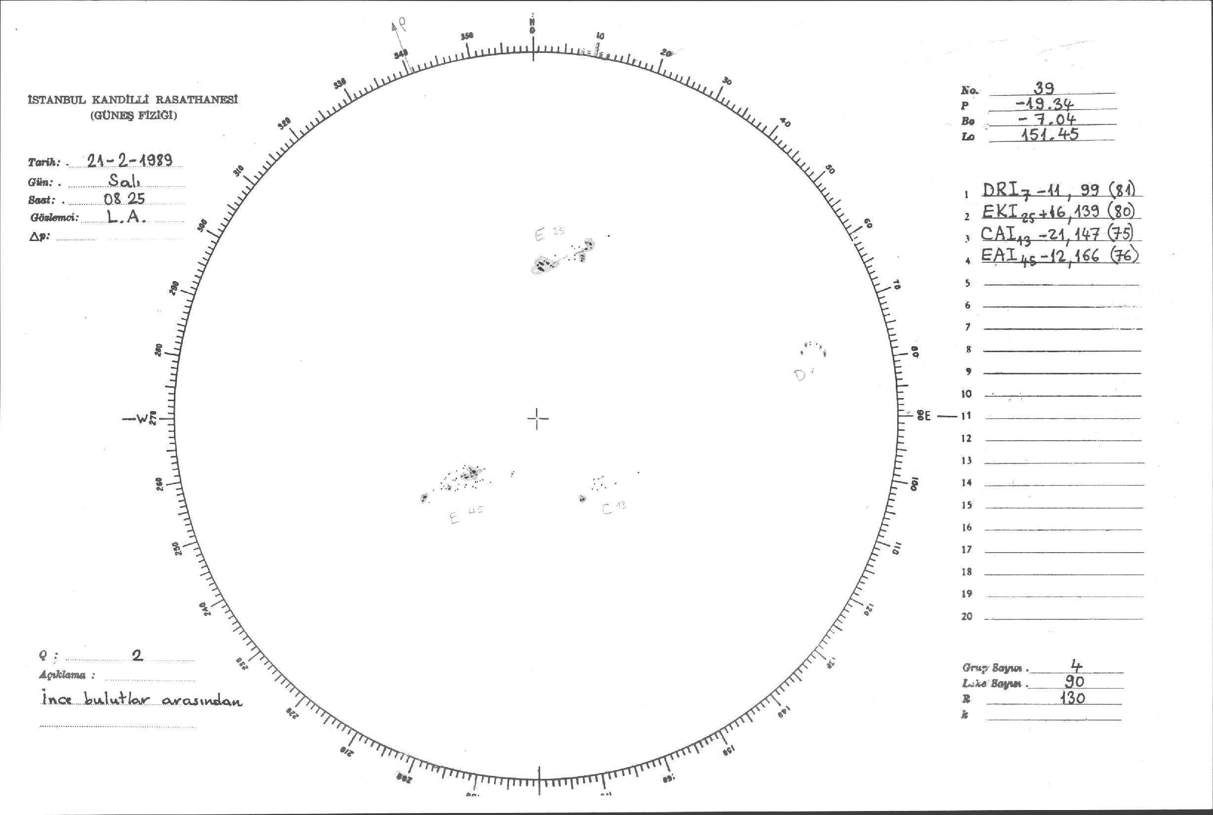 Güneş Lekesi Çizimleri / Kandilli Sunspot Drawings
