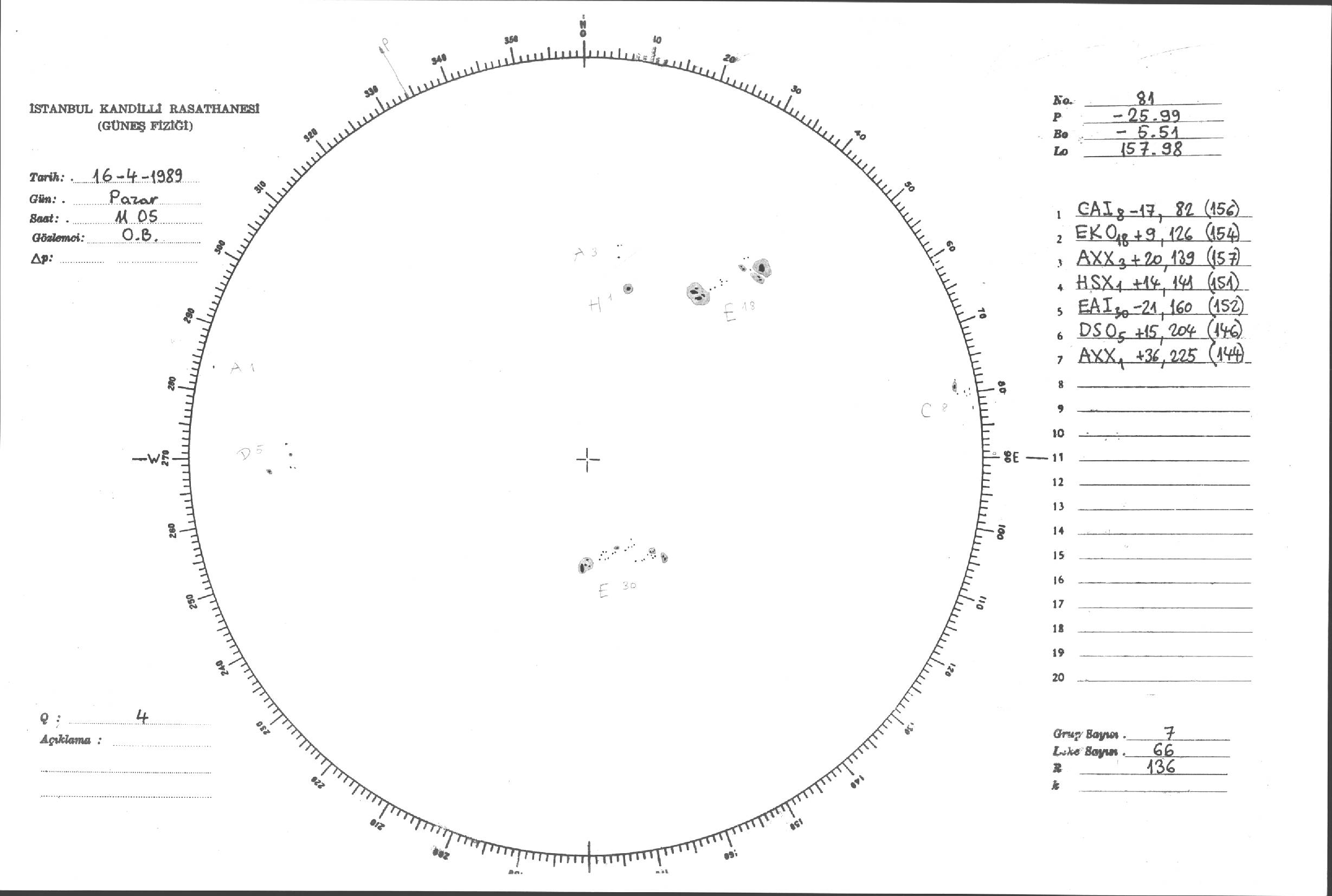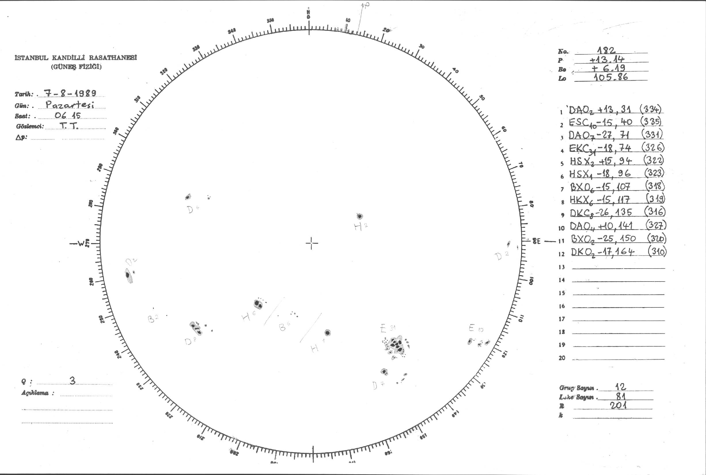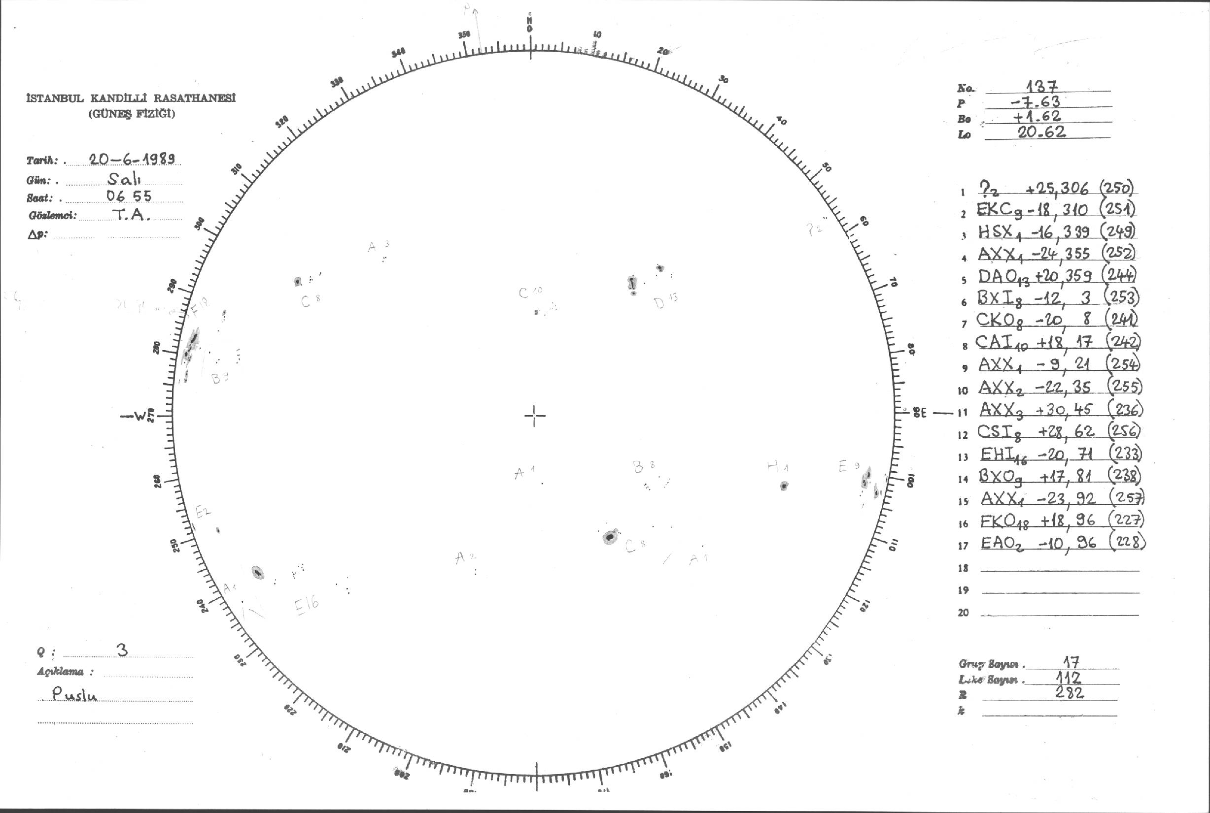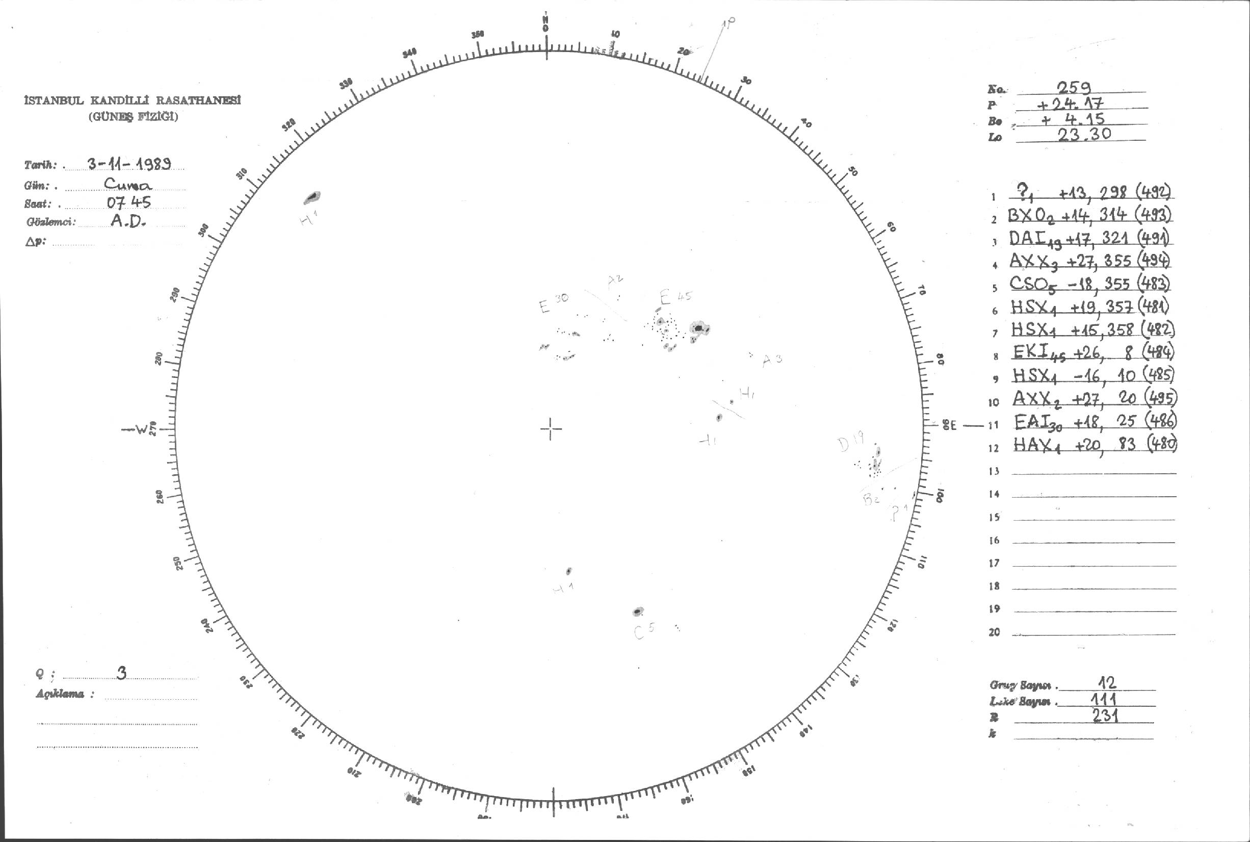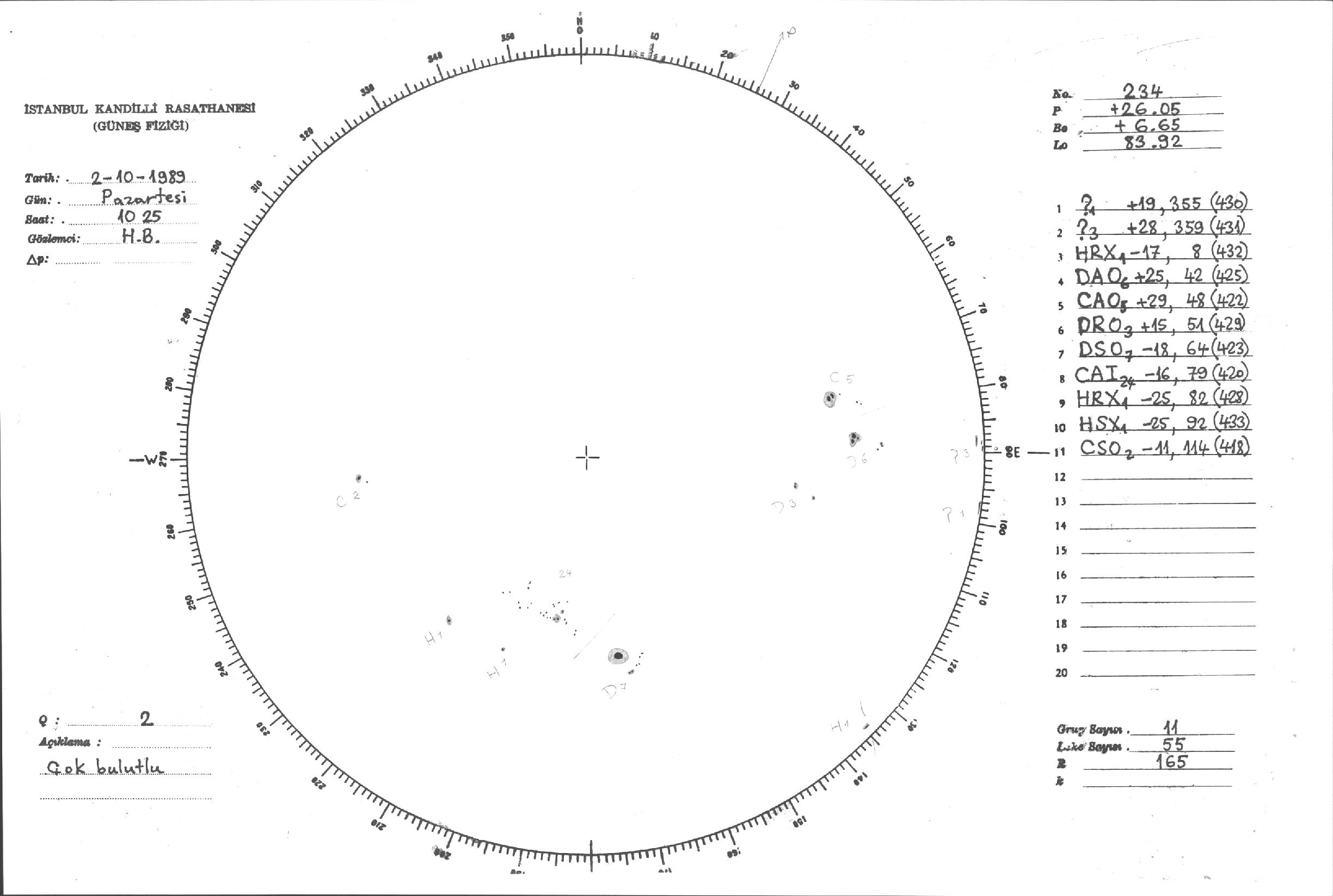 Güneş Lekesi Çizimleri / Kandilli Sunspot Drawings
