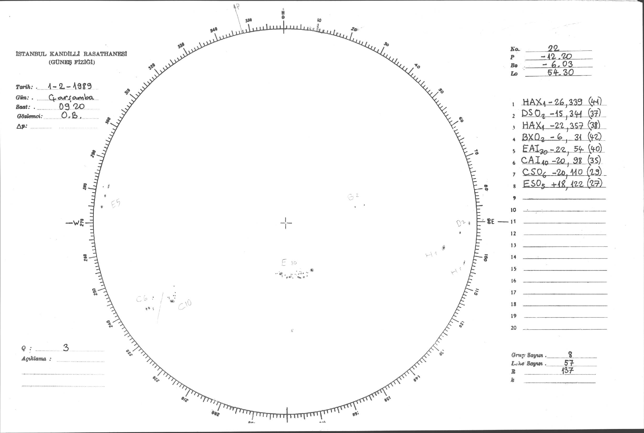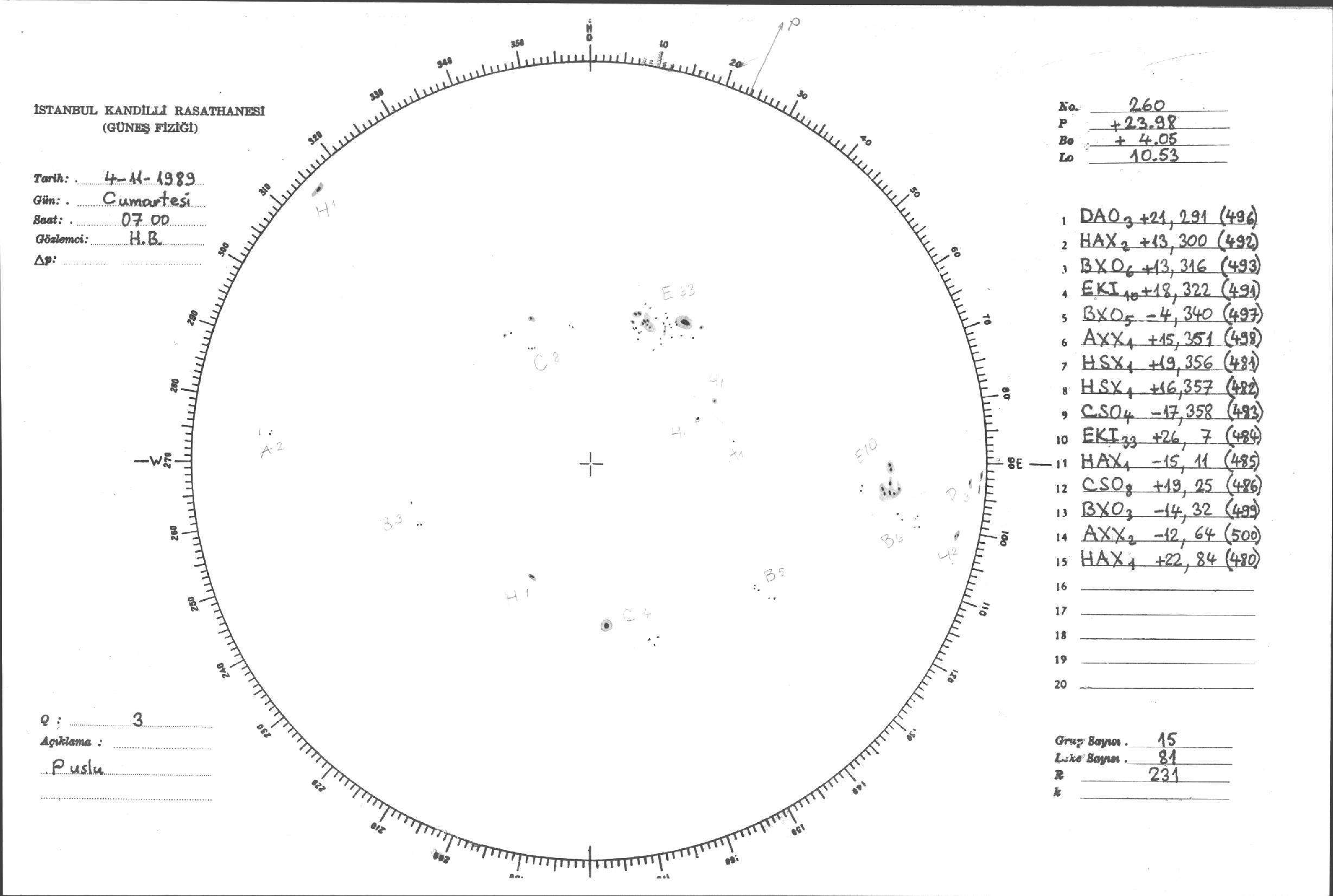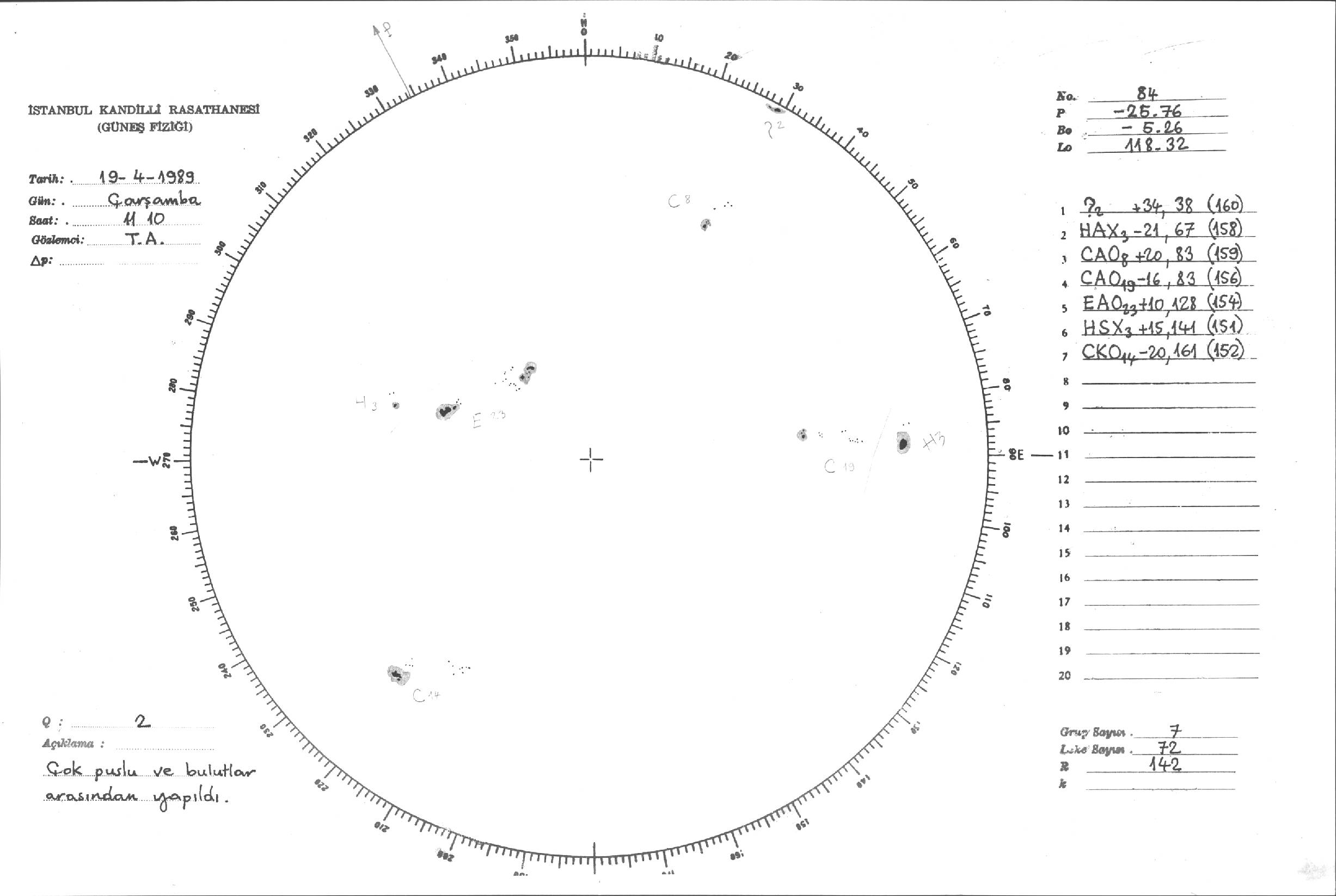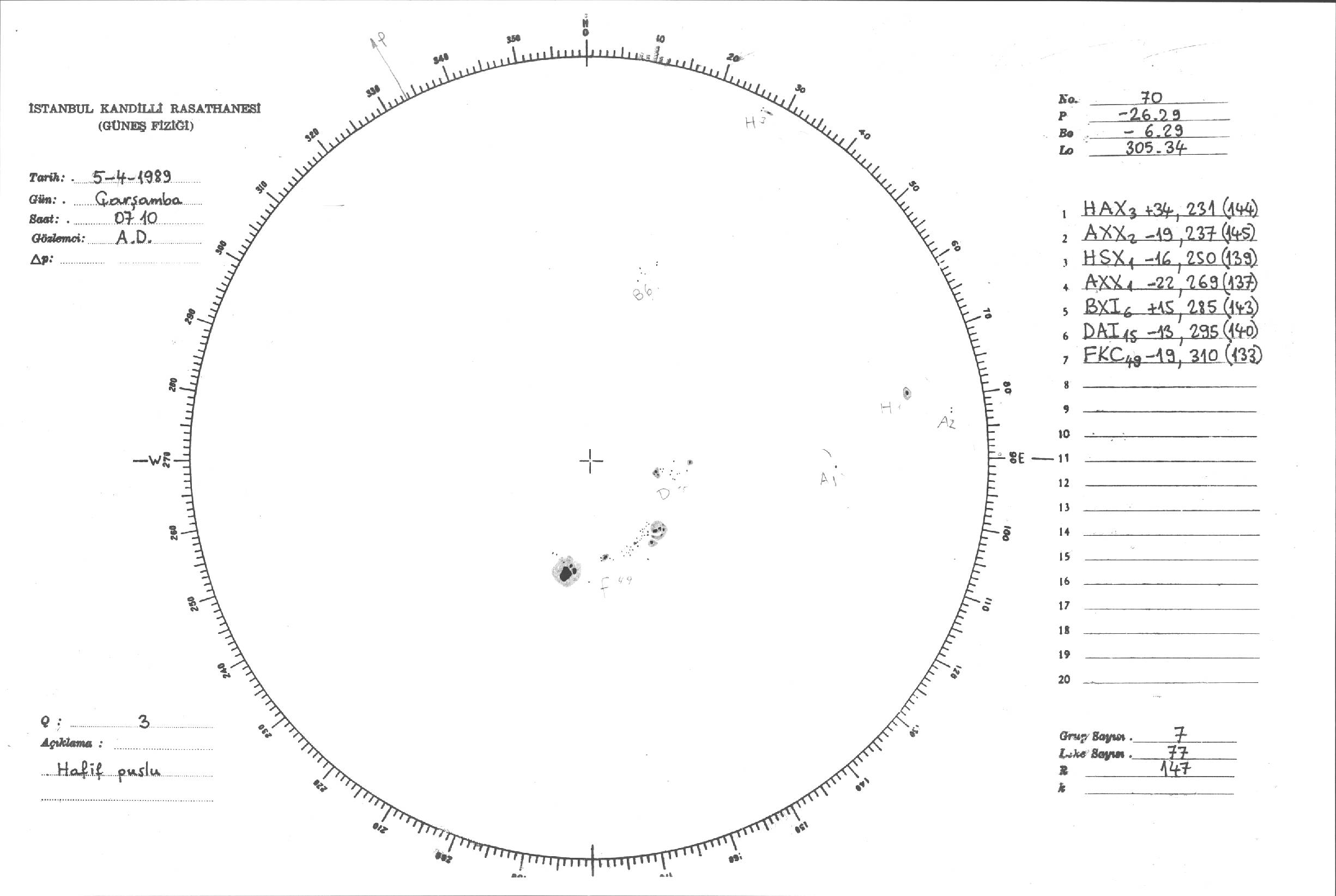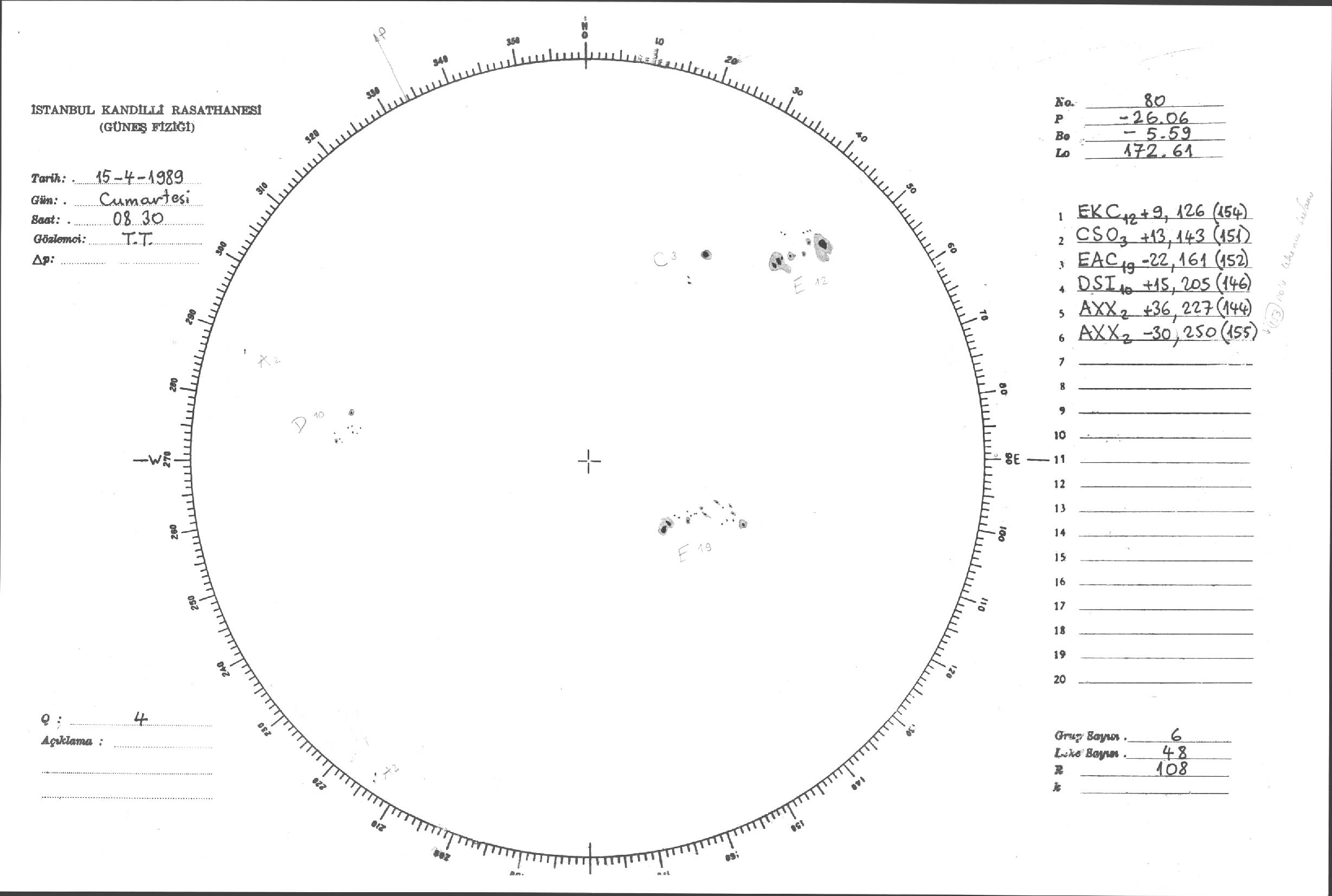 Güneş Lekesi Çizimleri / Kandilli Sunspot Drawings