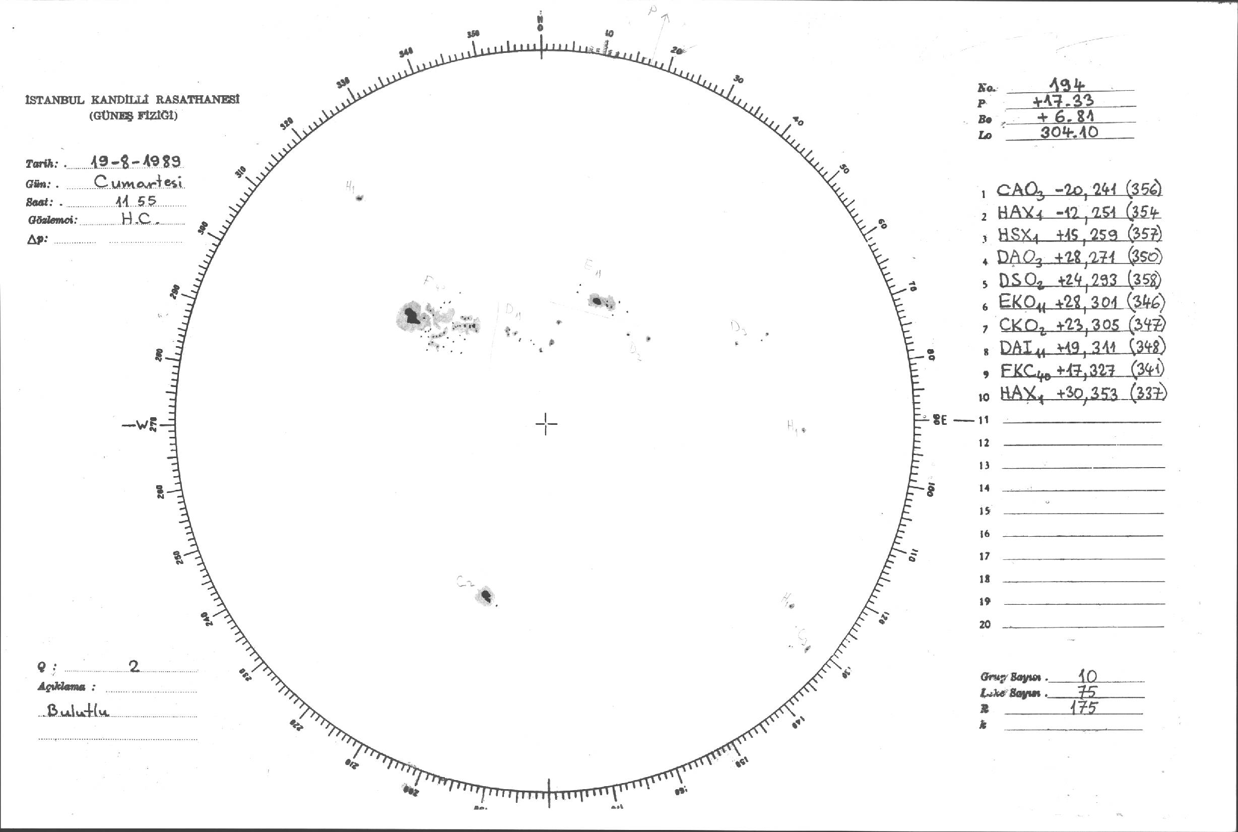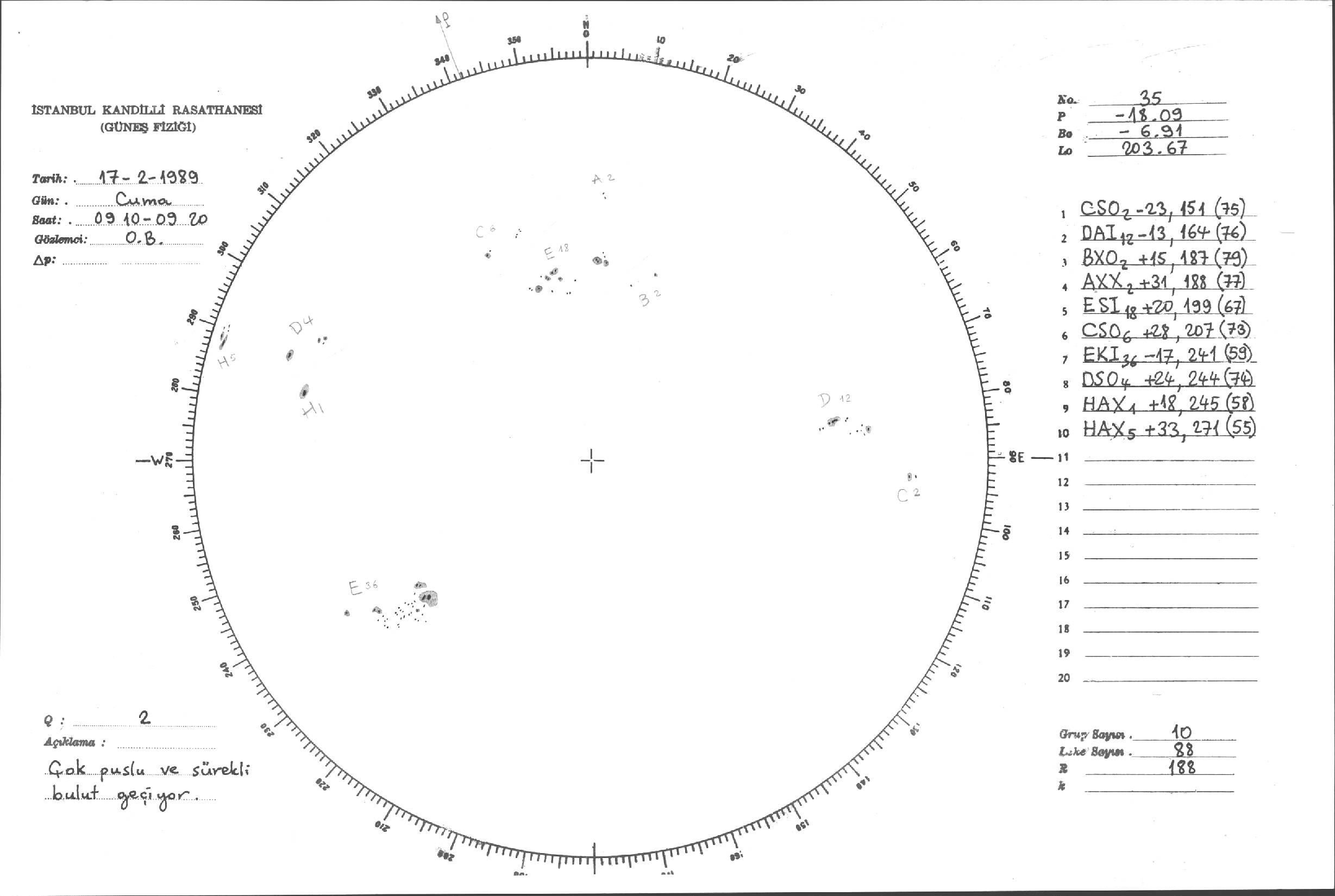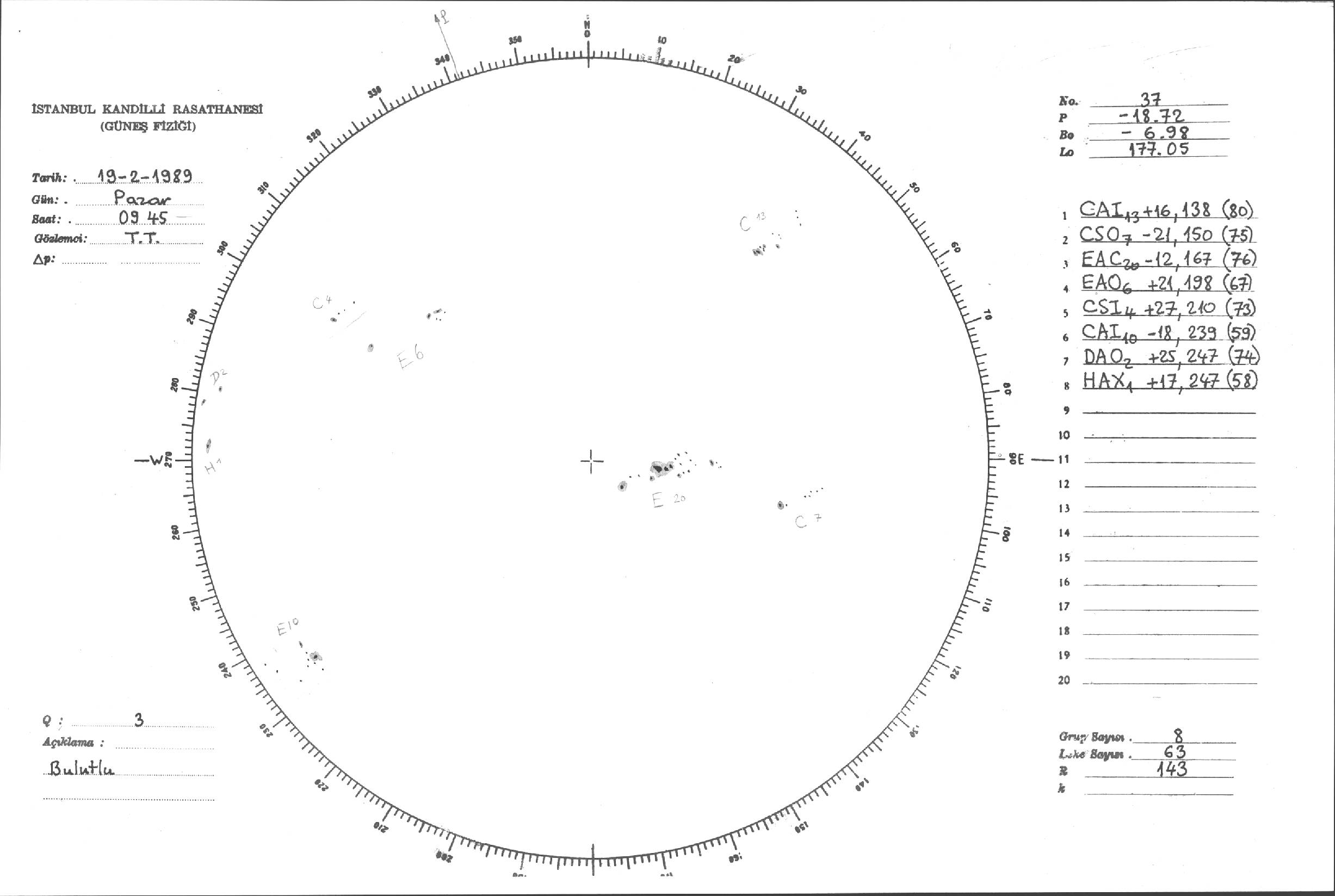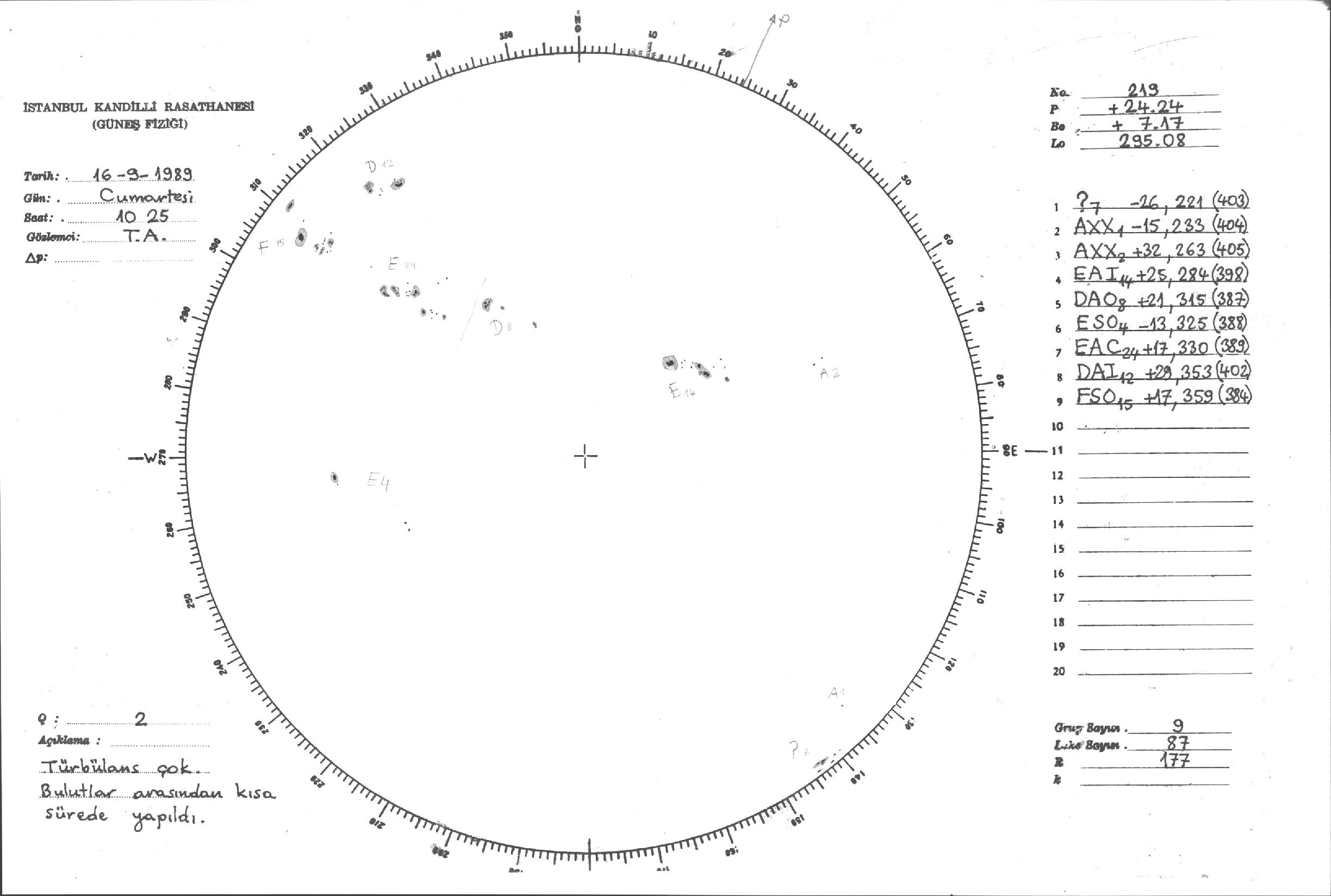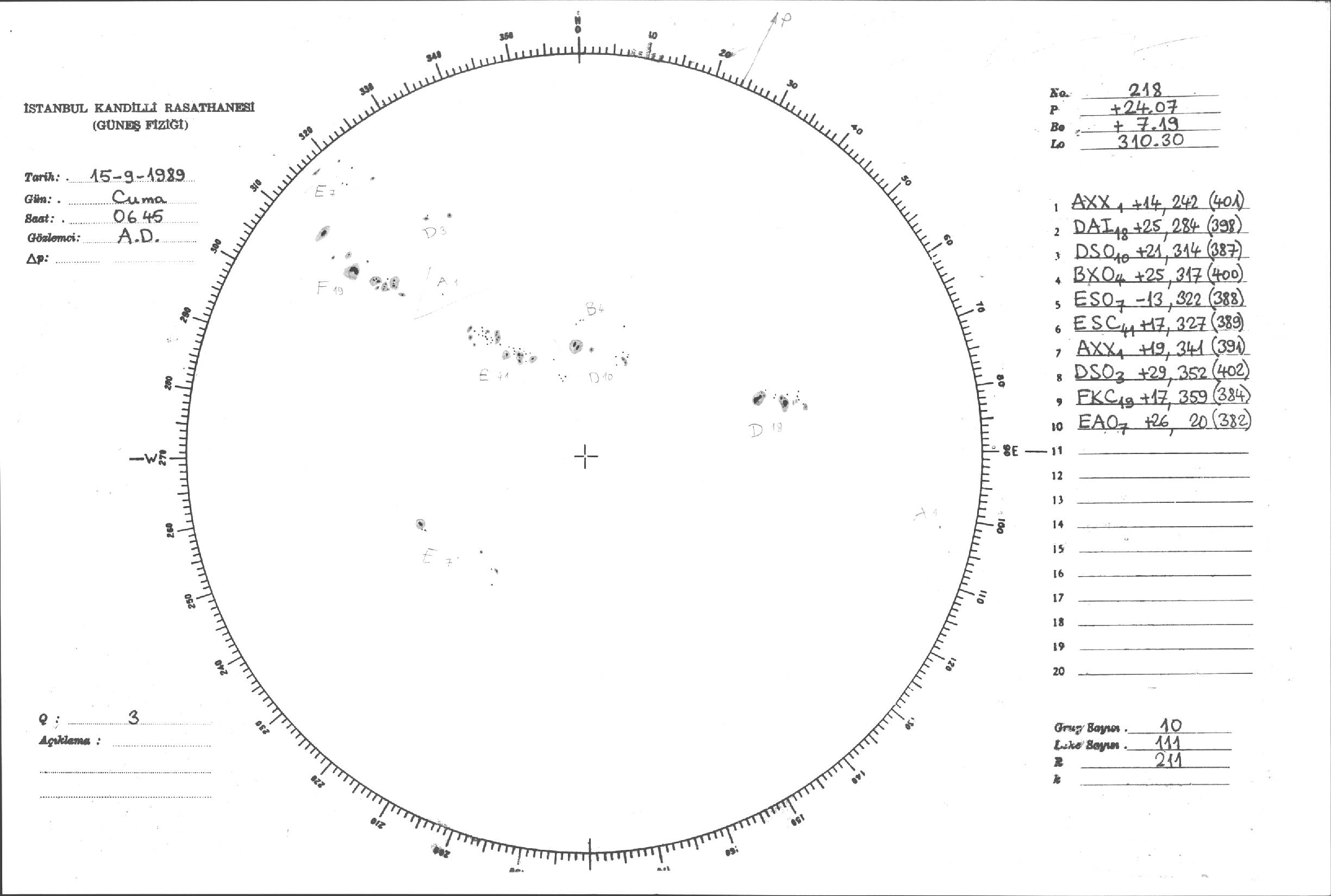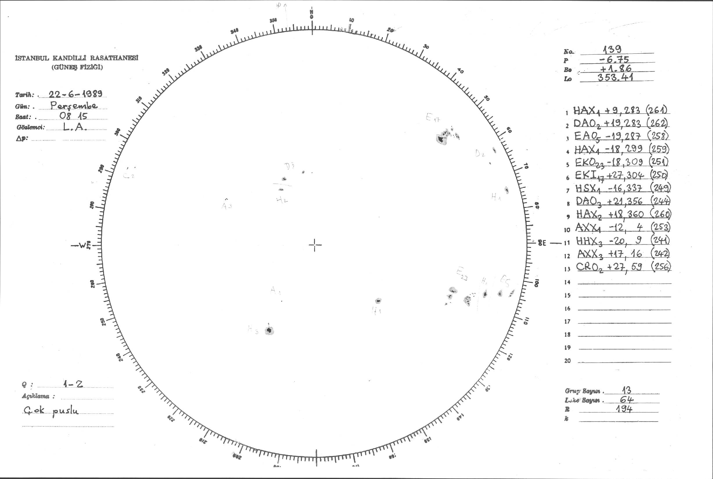 Güneş Lekesi Çizimleri / Kandilli Sunspot Drawings