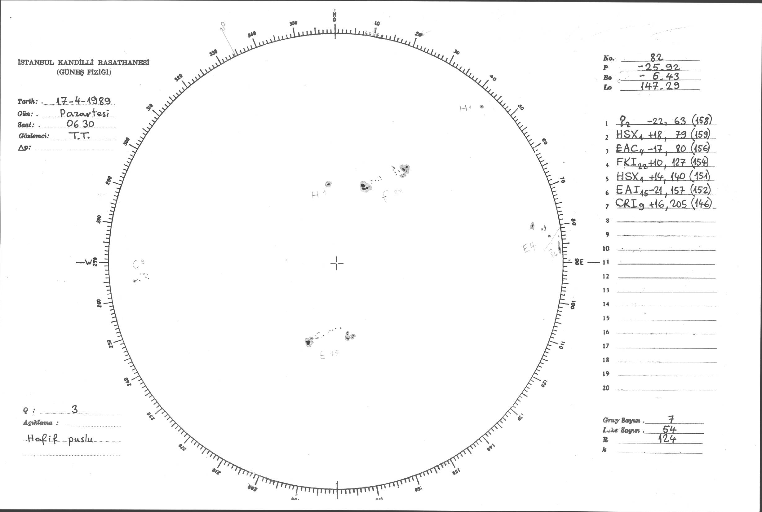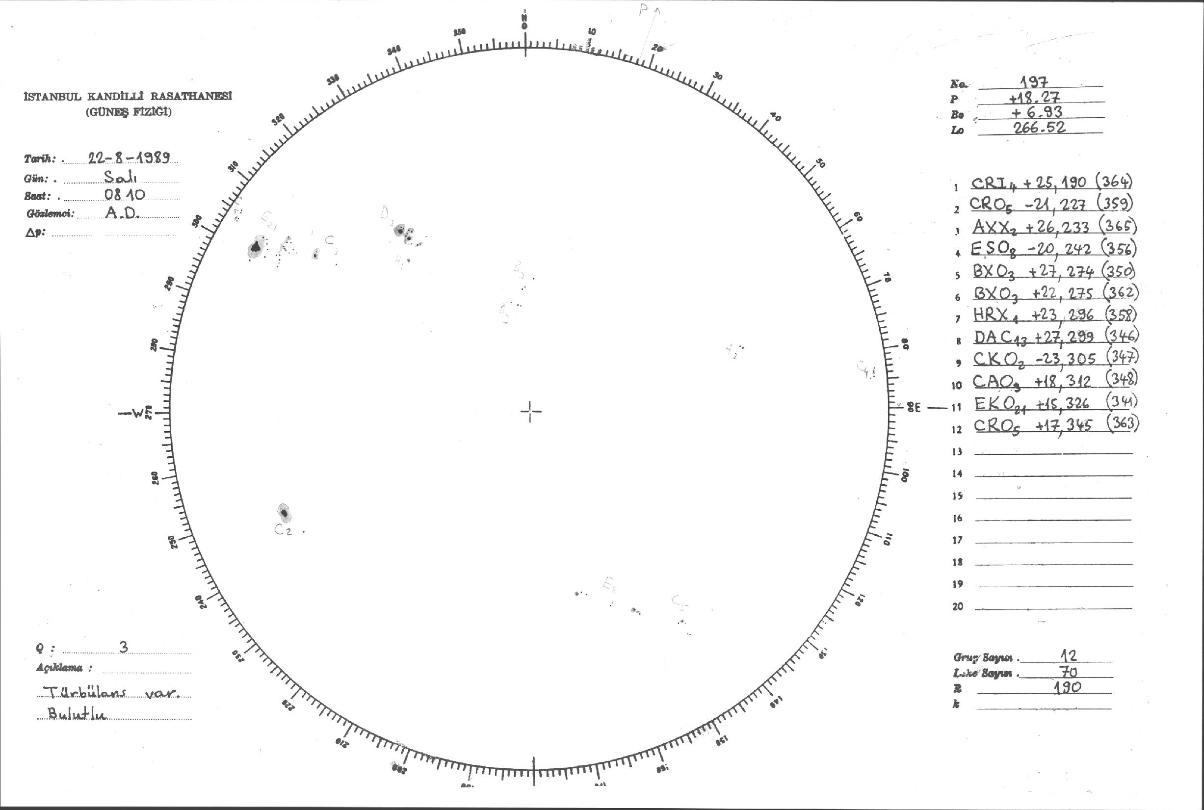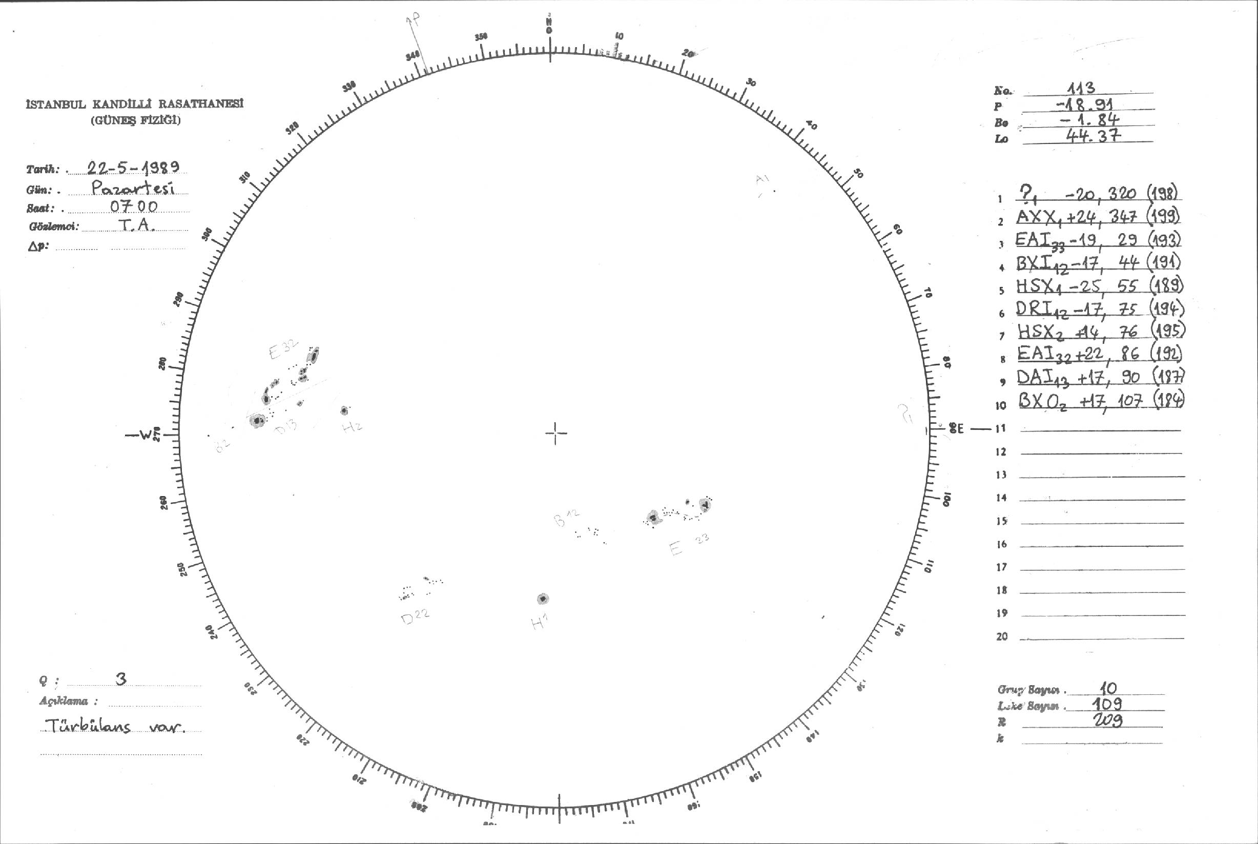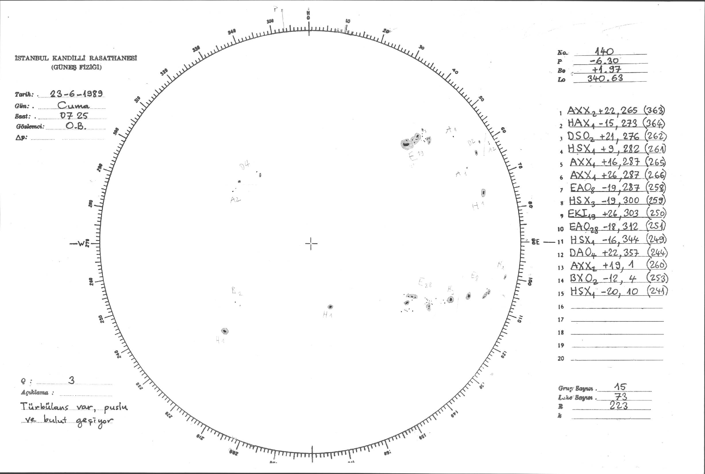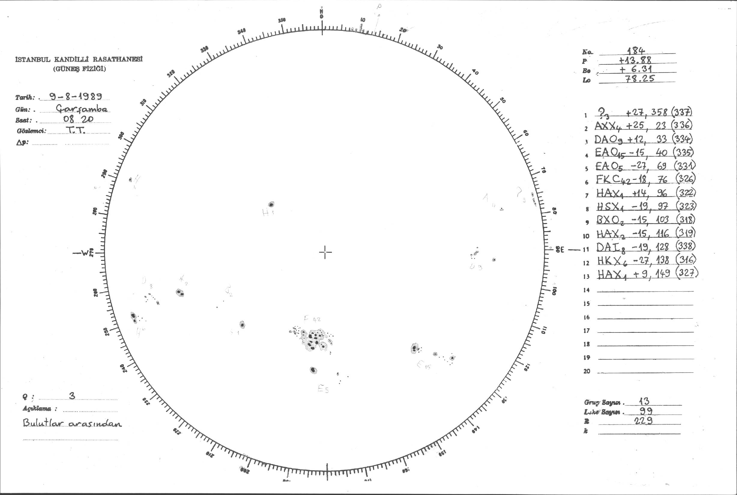 Güneş Lekesi Çizimleri / Kandilli Sunspot Drawings