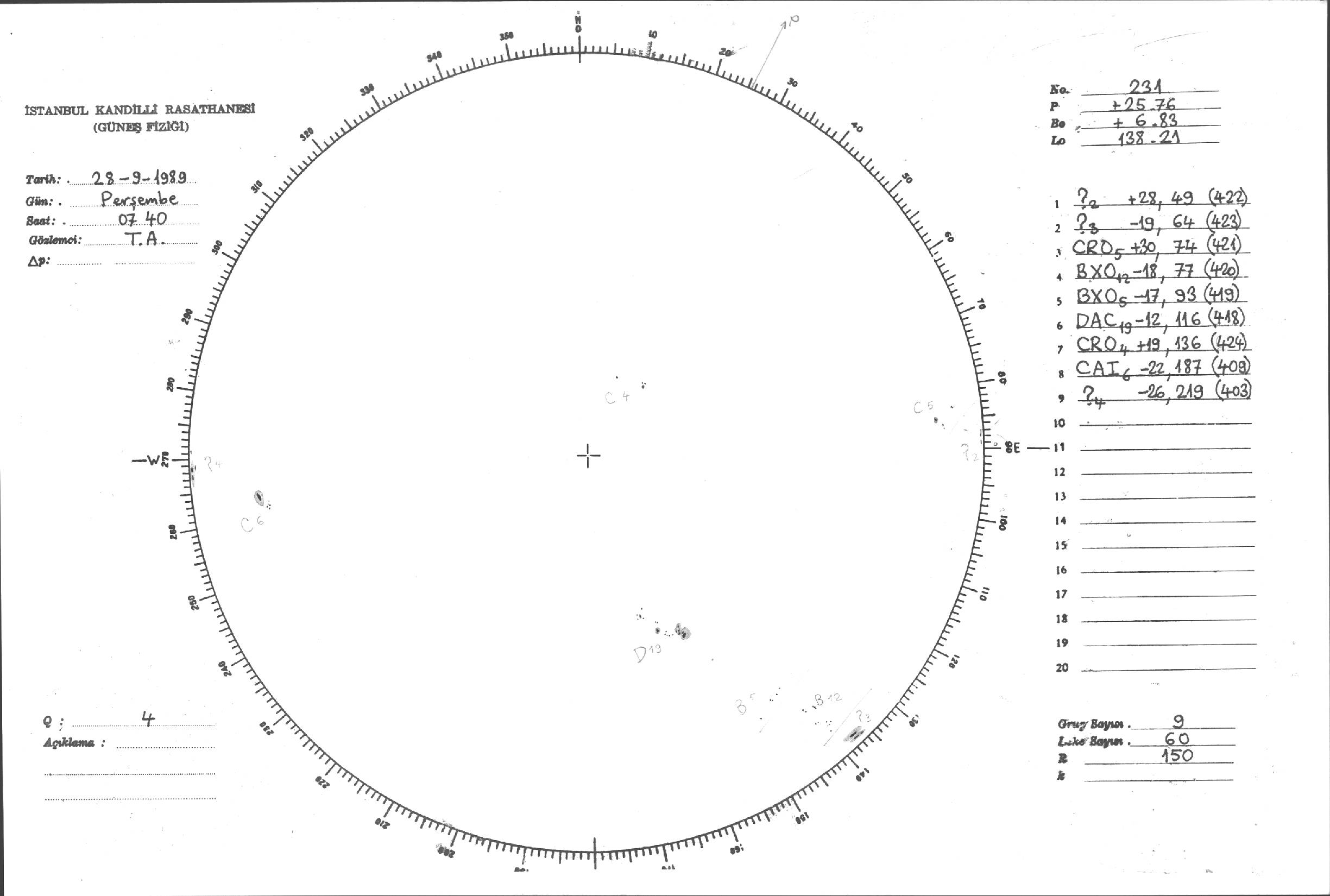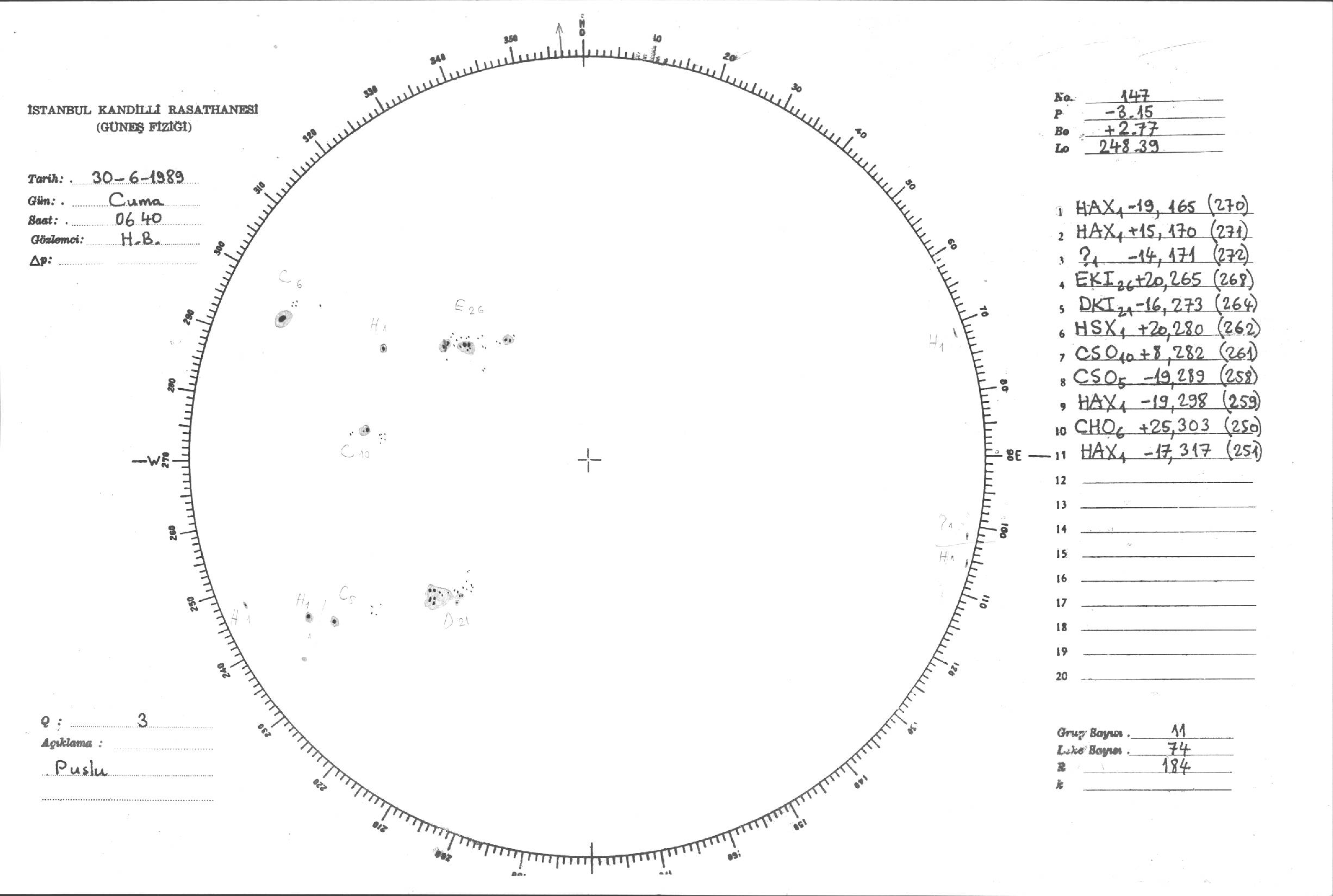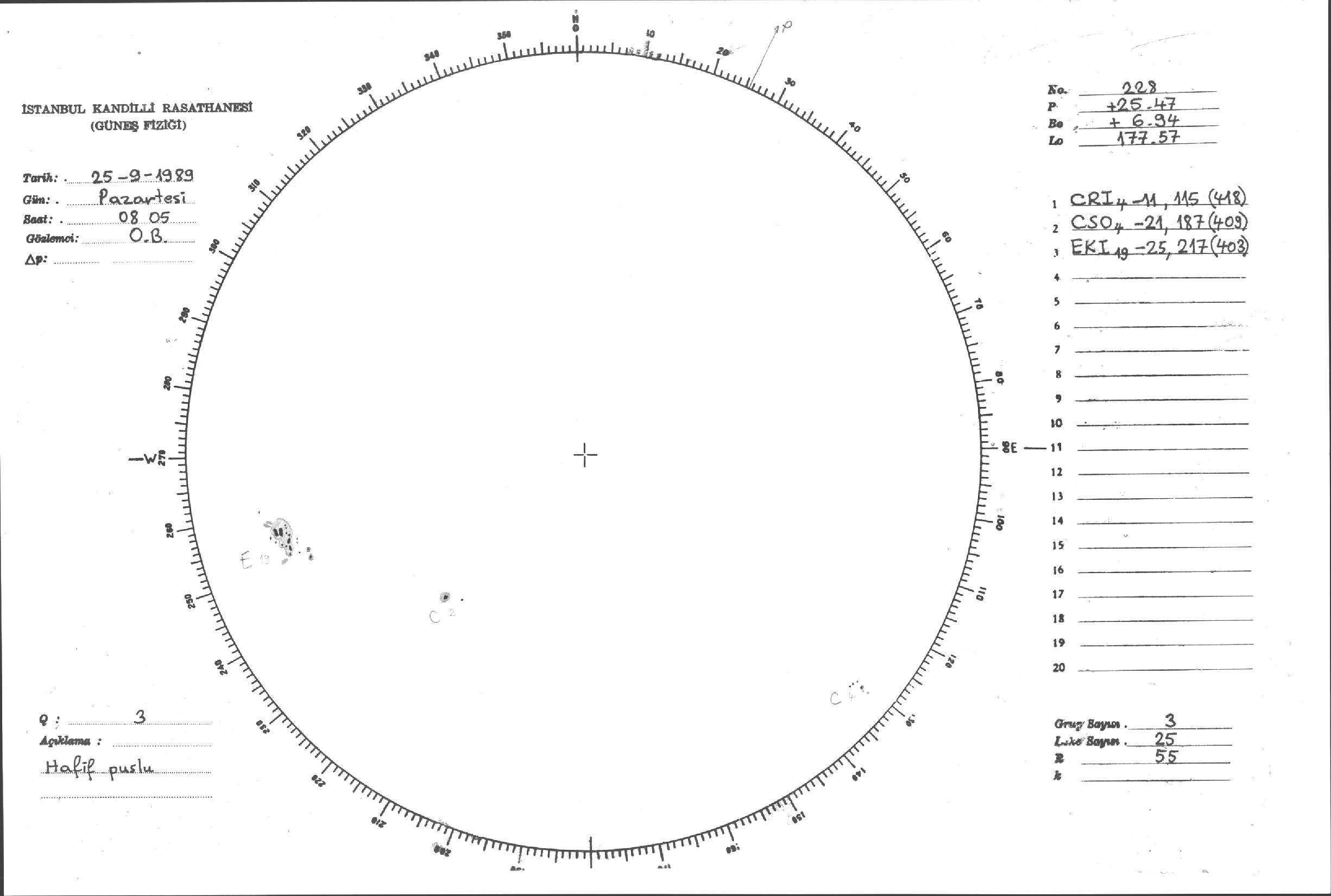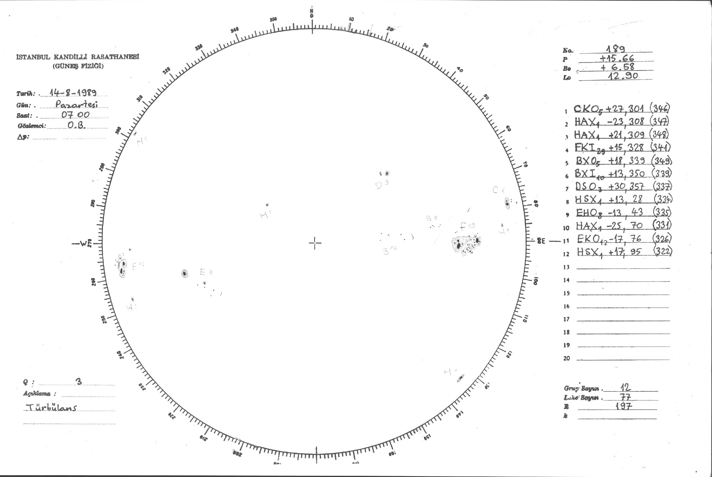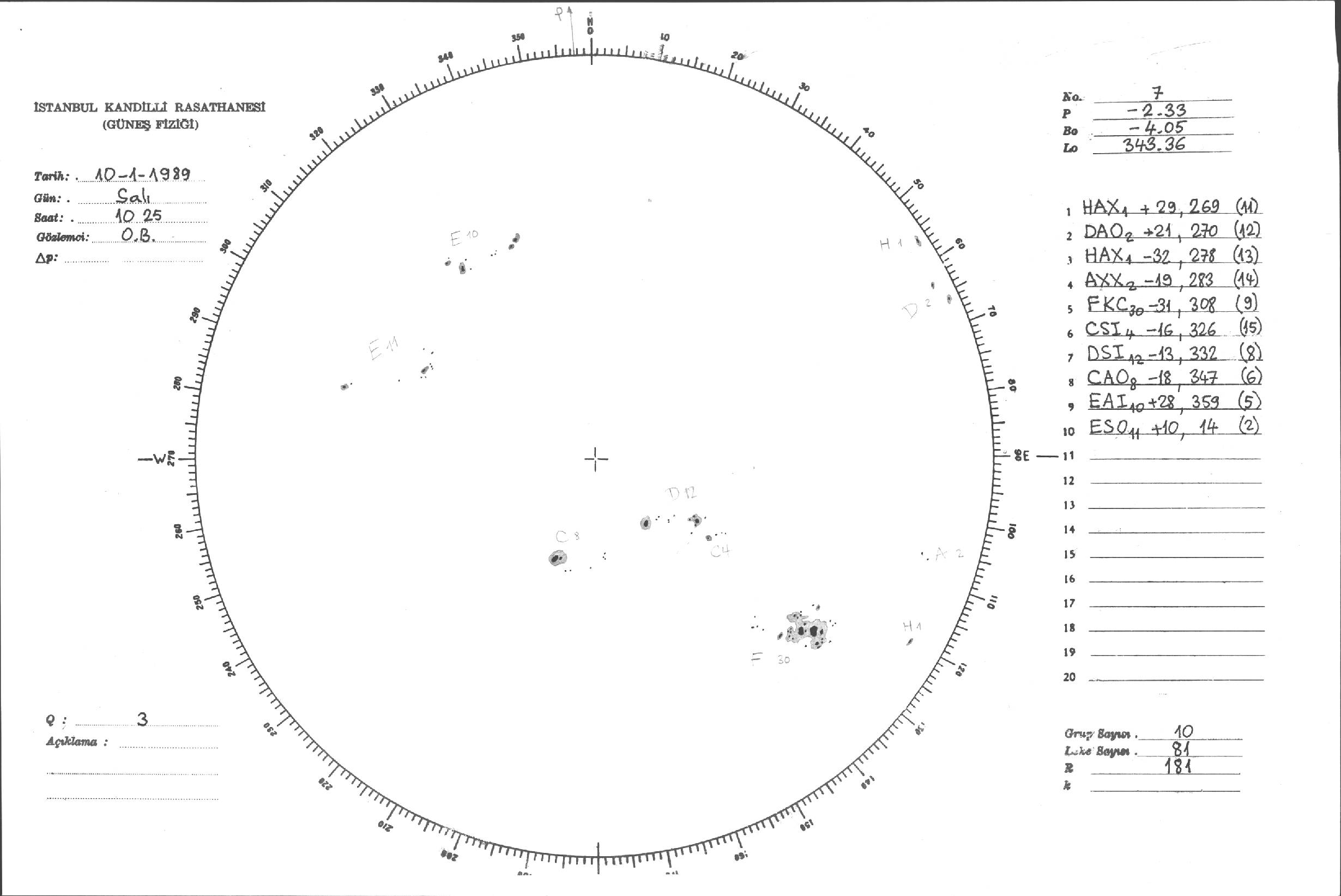 Güneş Lekesi Çizimleri / Kandilli Sunspot Drawings