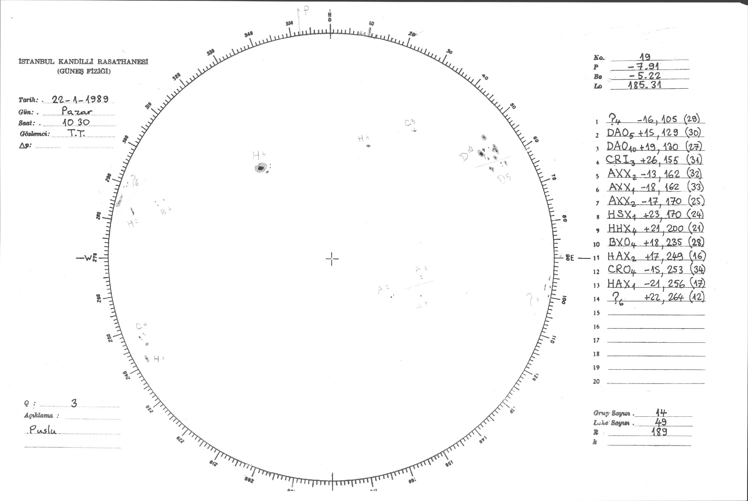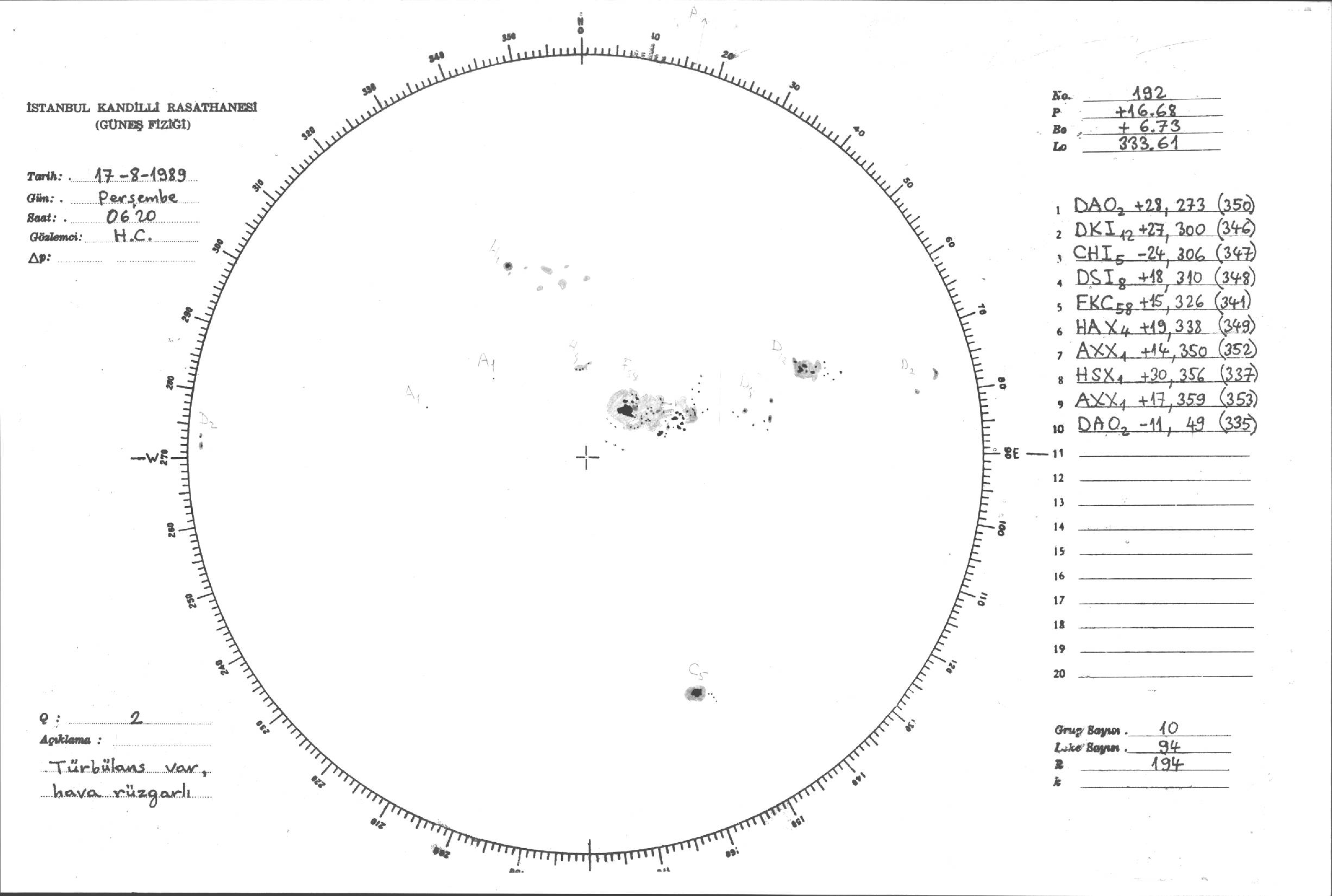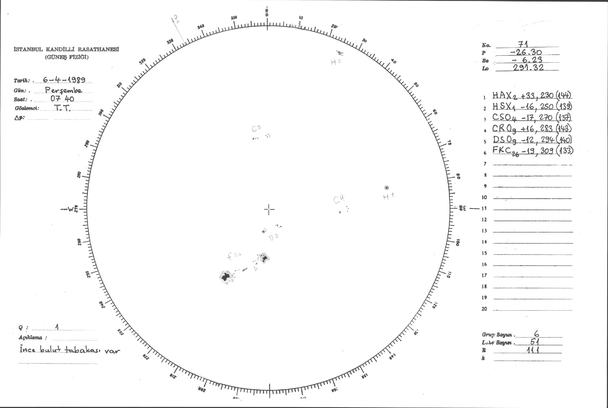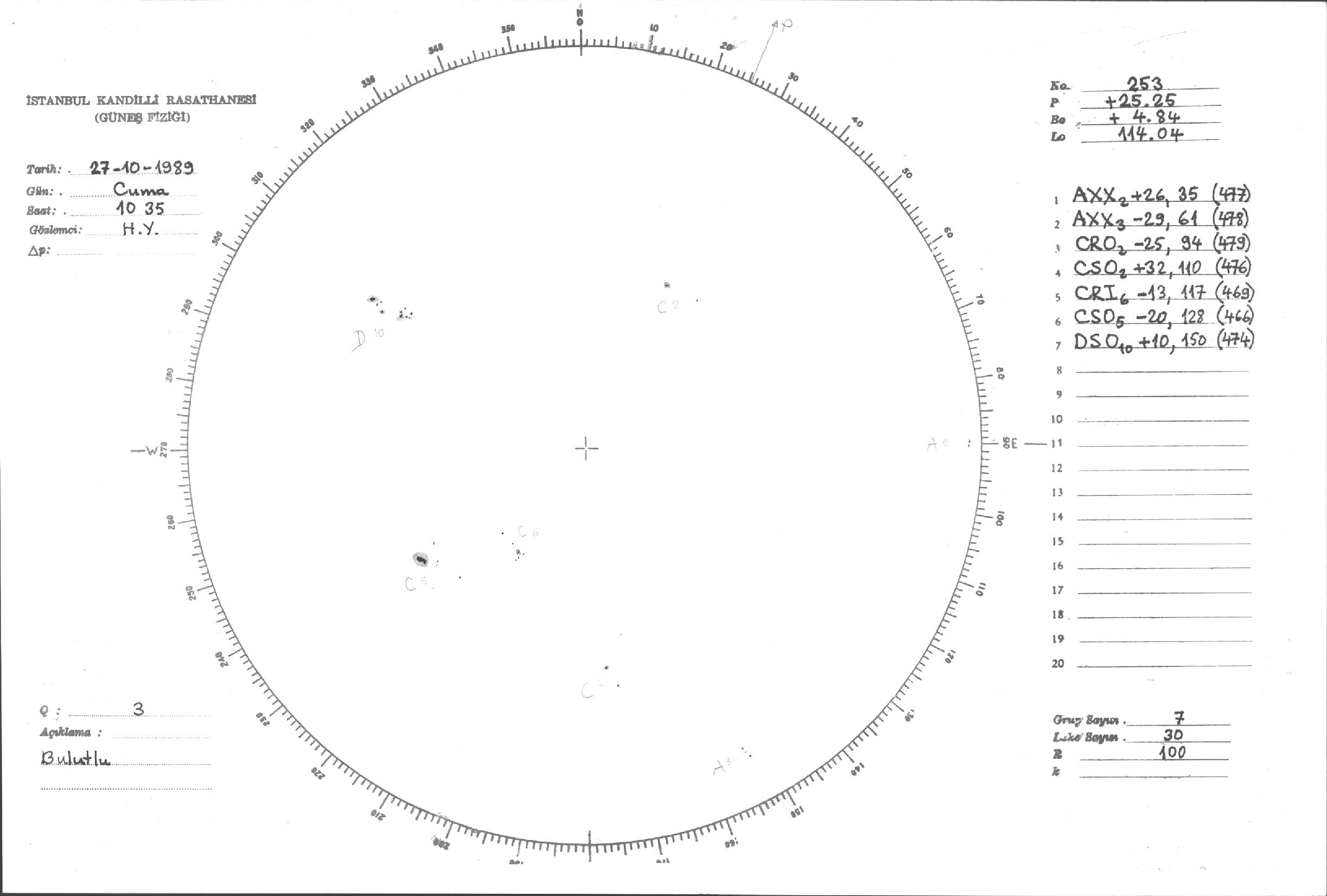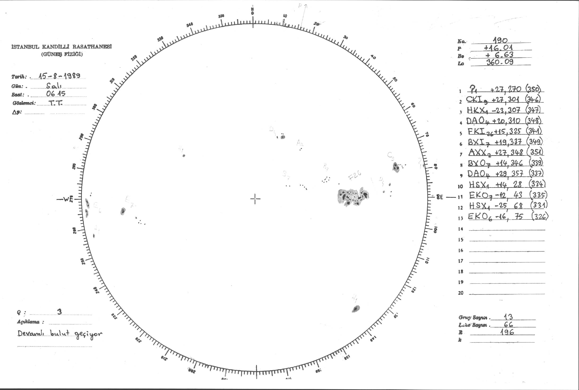 Güneş Lekesi Çizimleri / Kandilli Sunspot Drawings