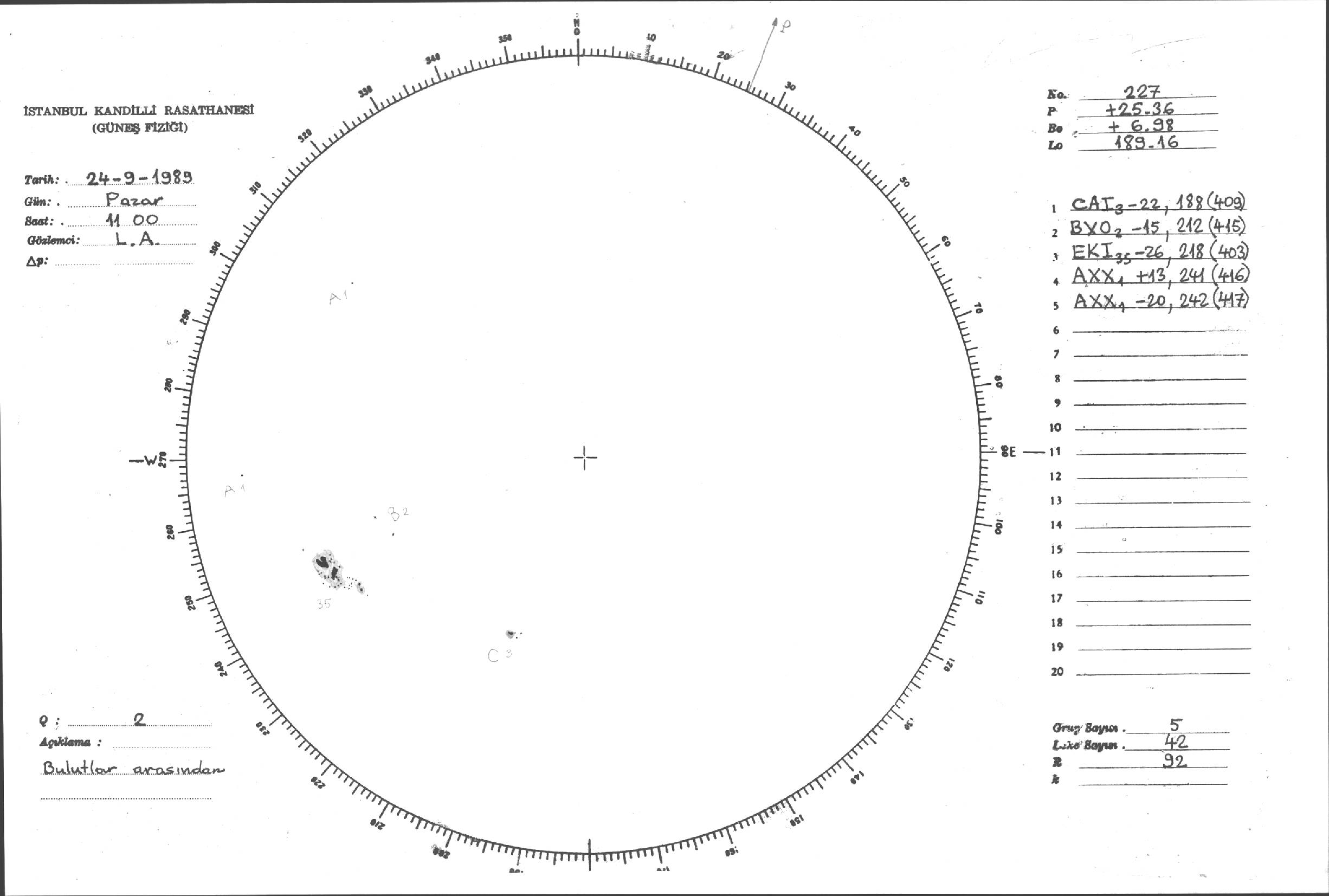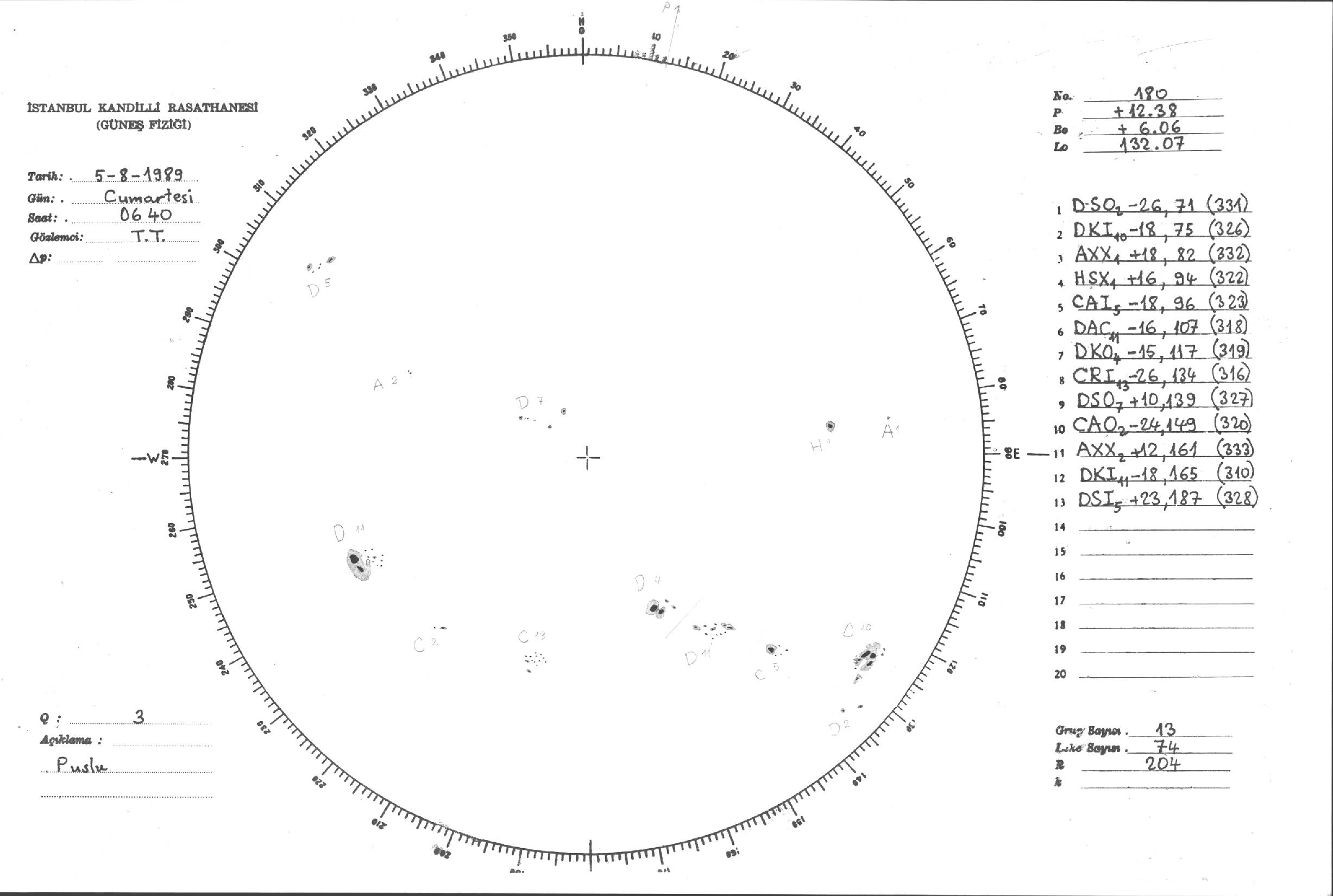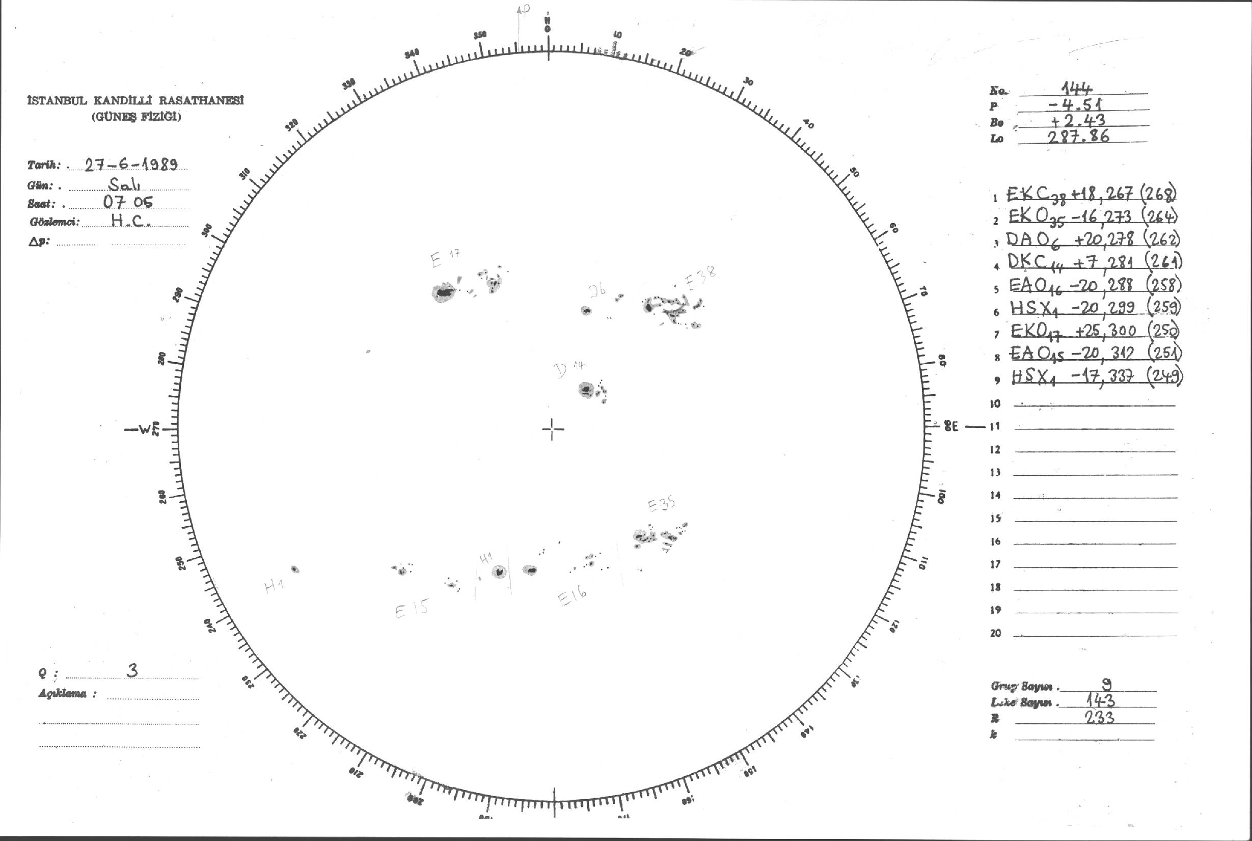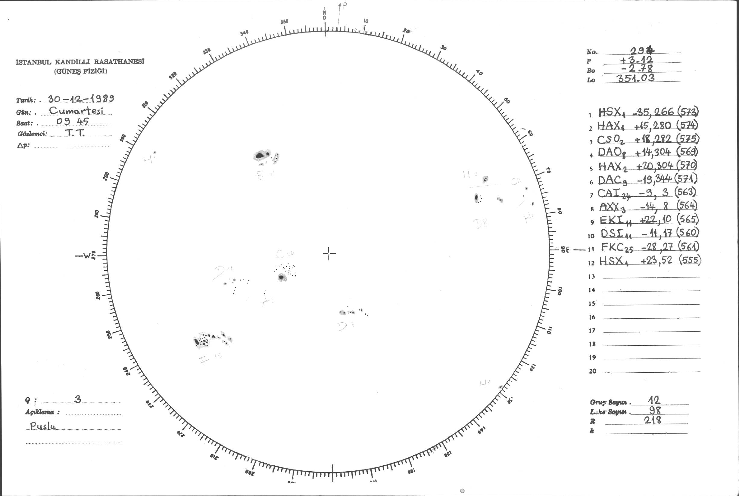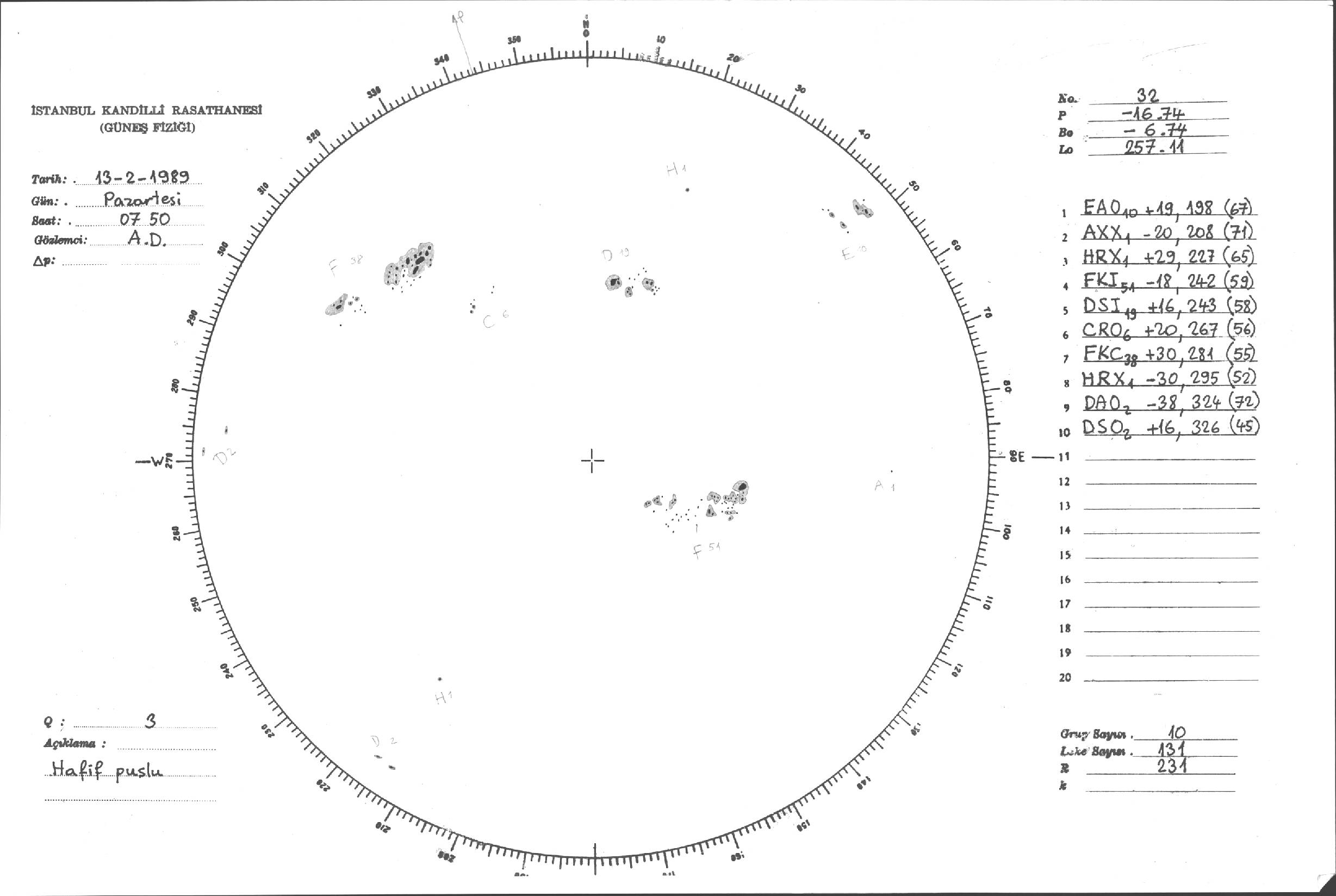 Güneş Lekesi Çizimleri / Kandilli Sunspot Drawings