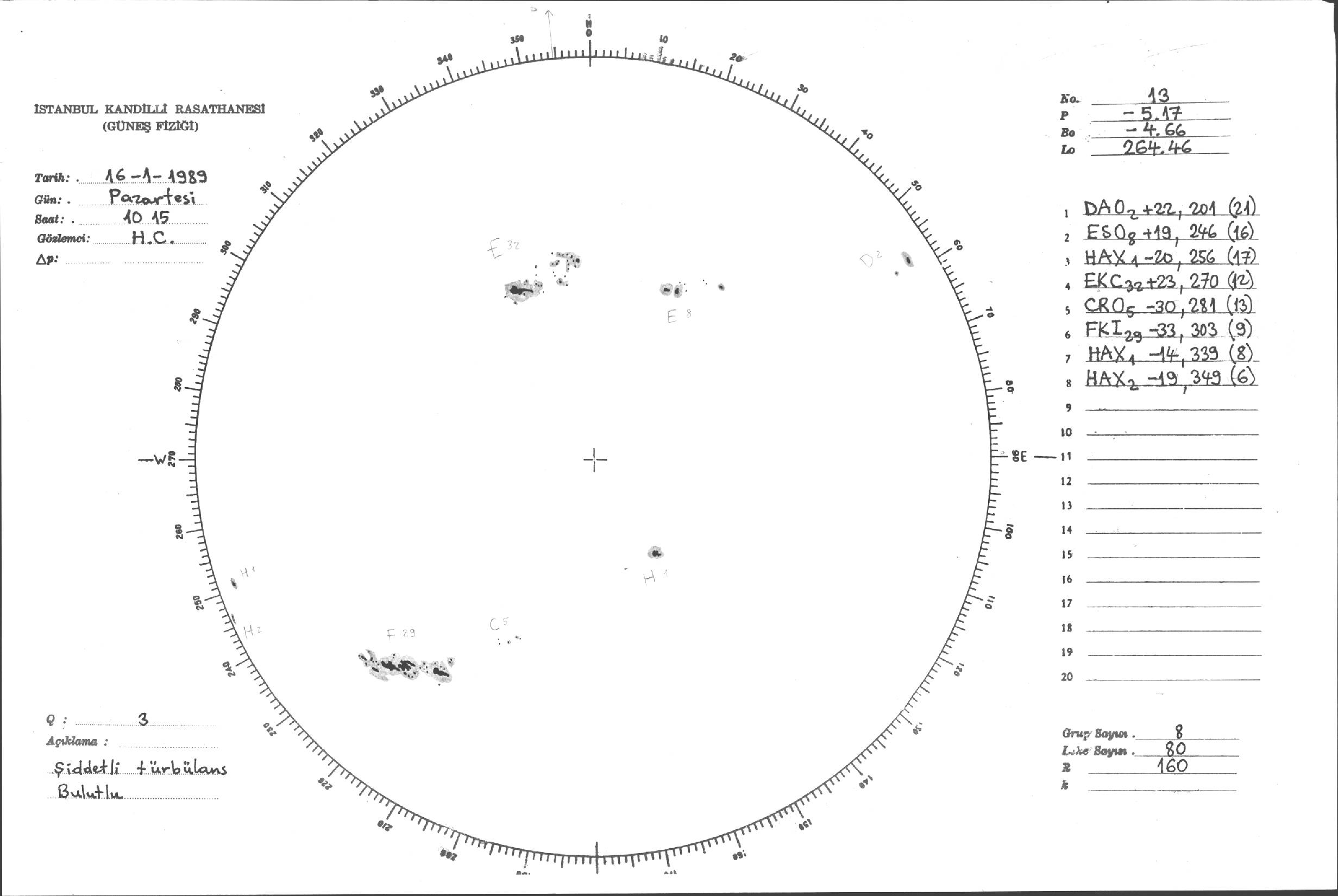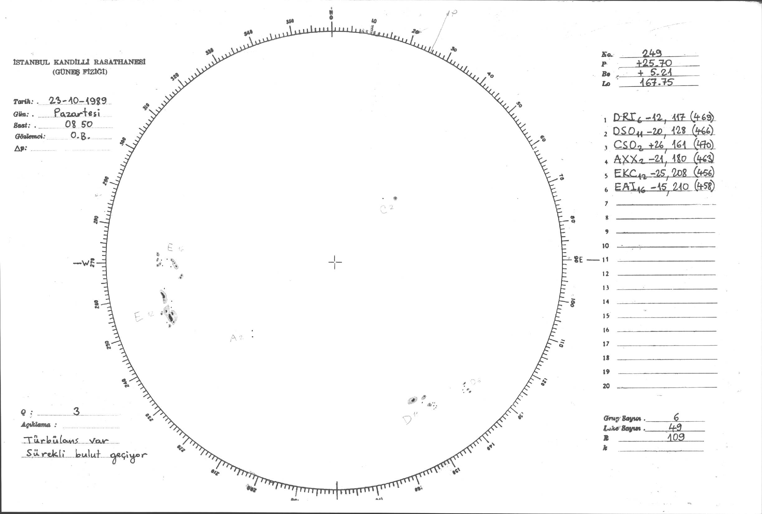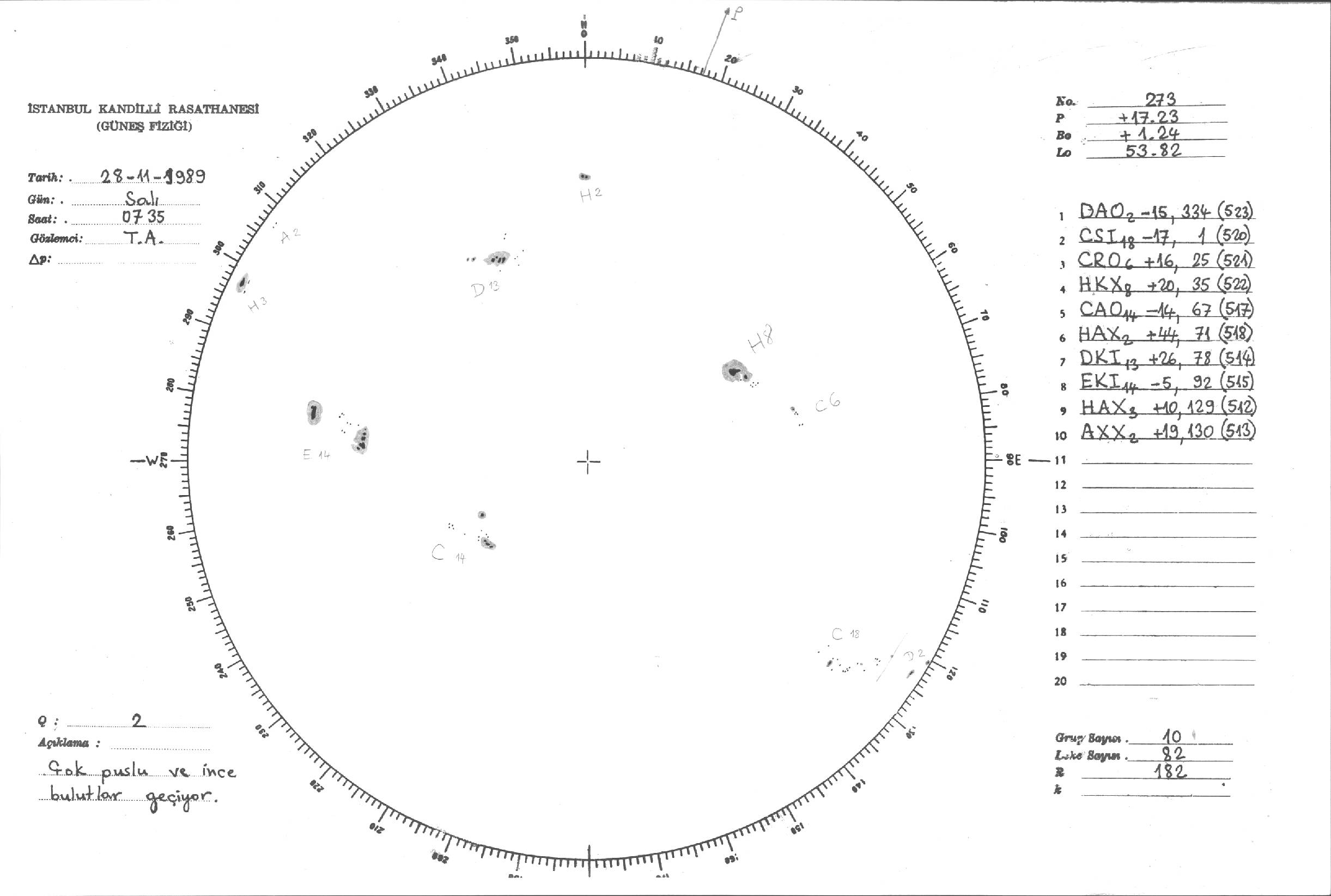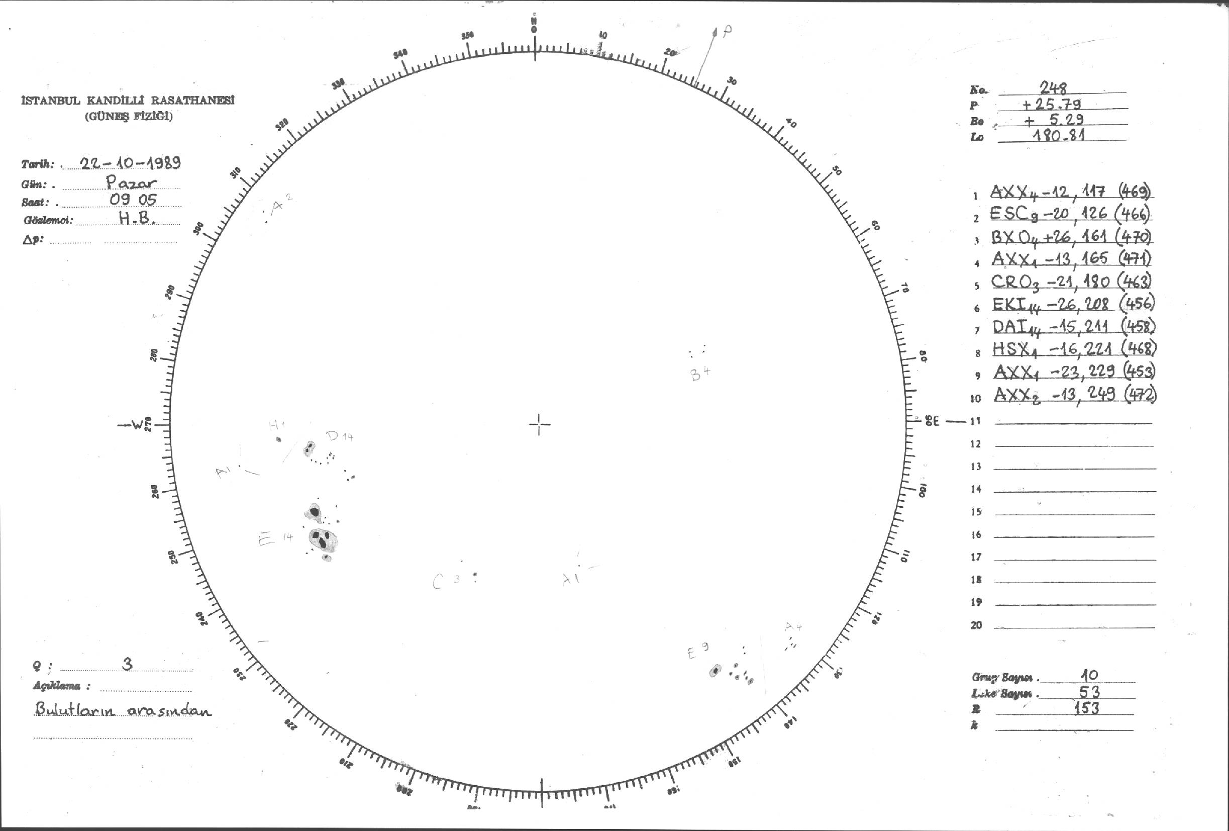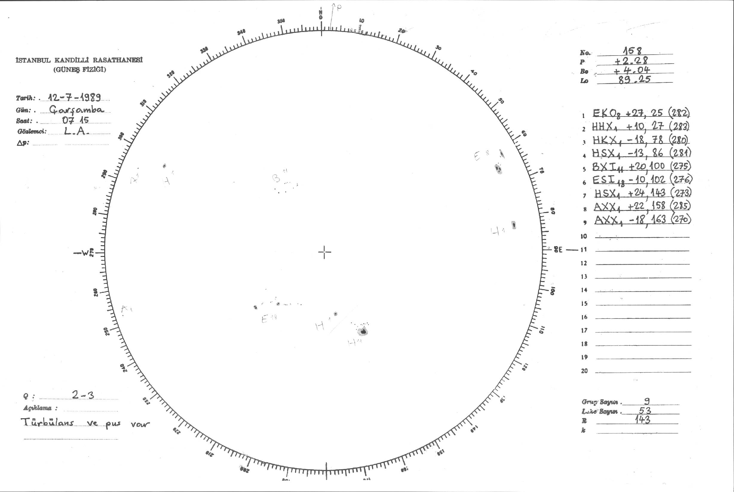 Güneş Lekesi Çizimleri / Kandilli Sunspot Drawings