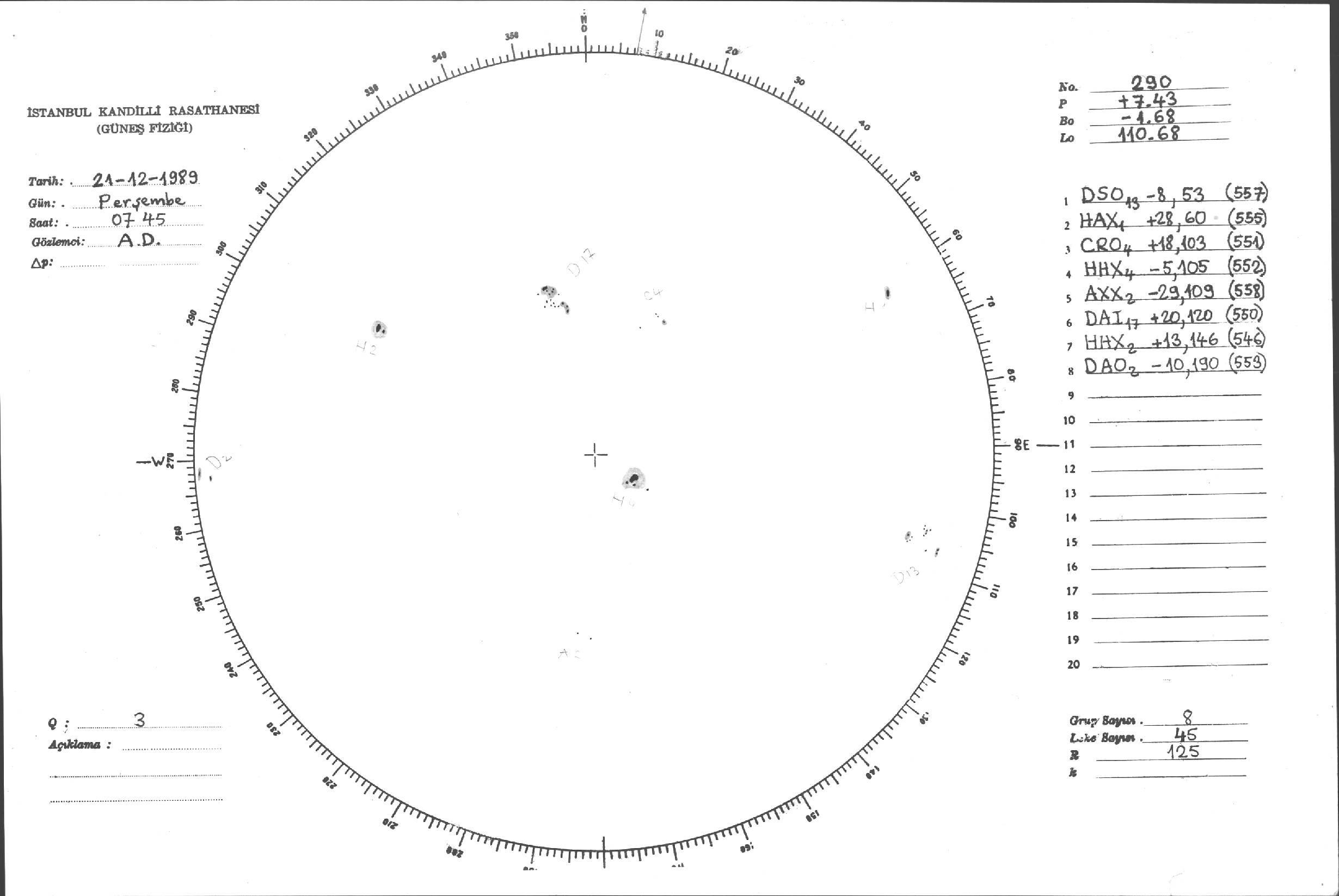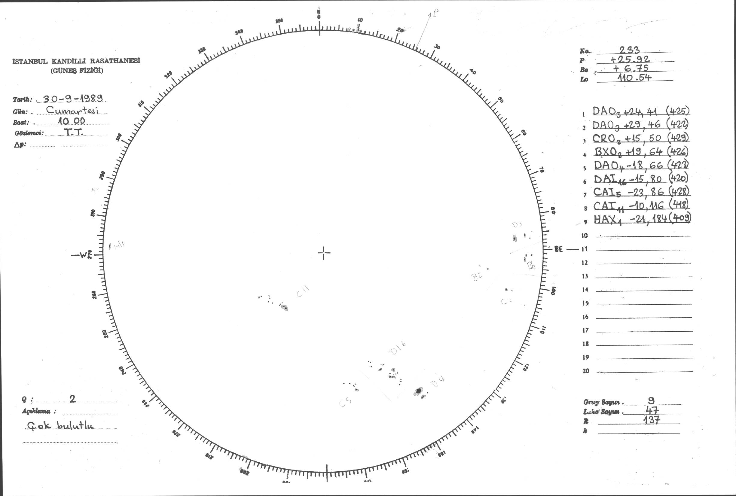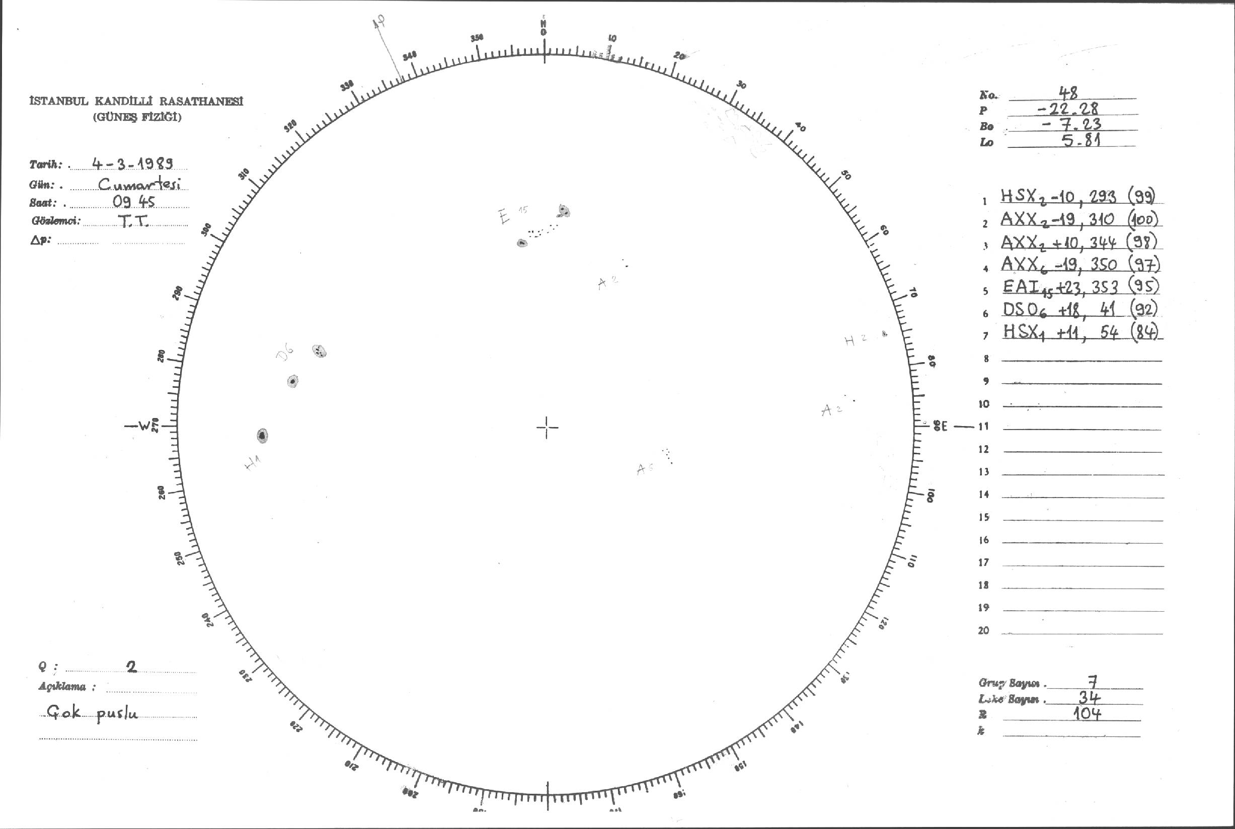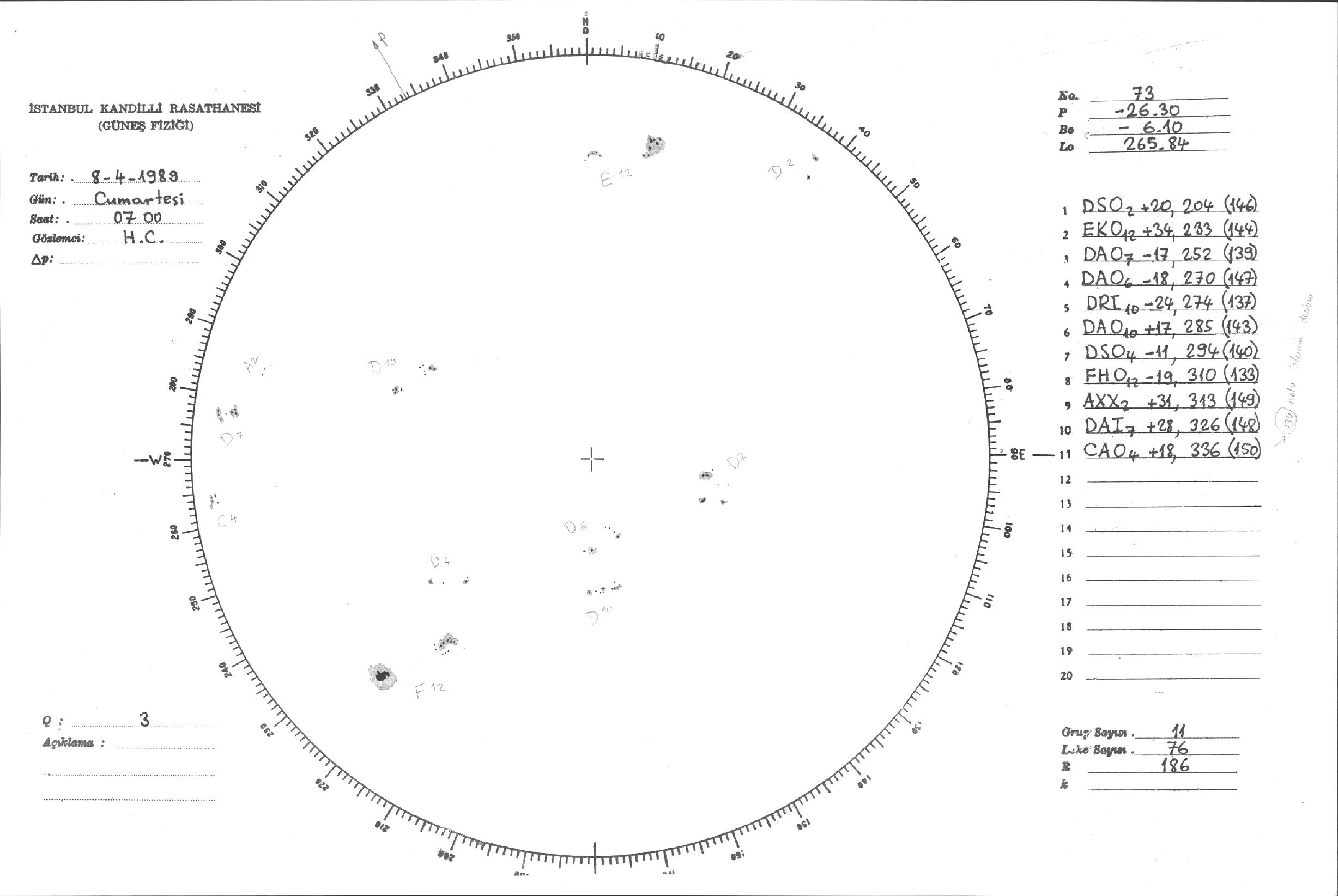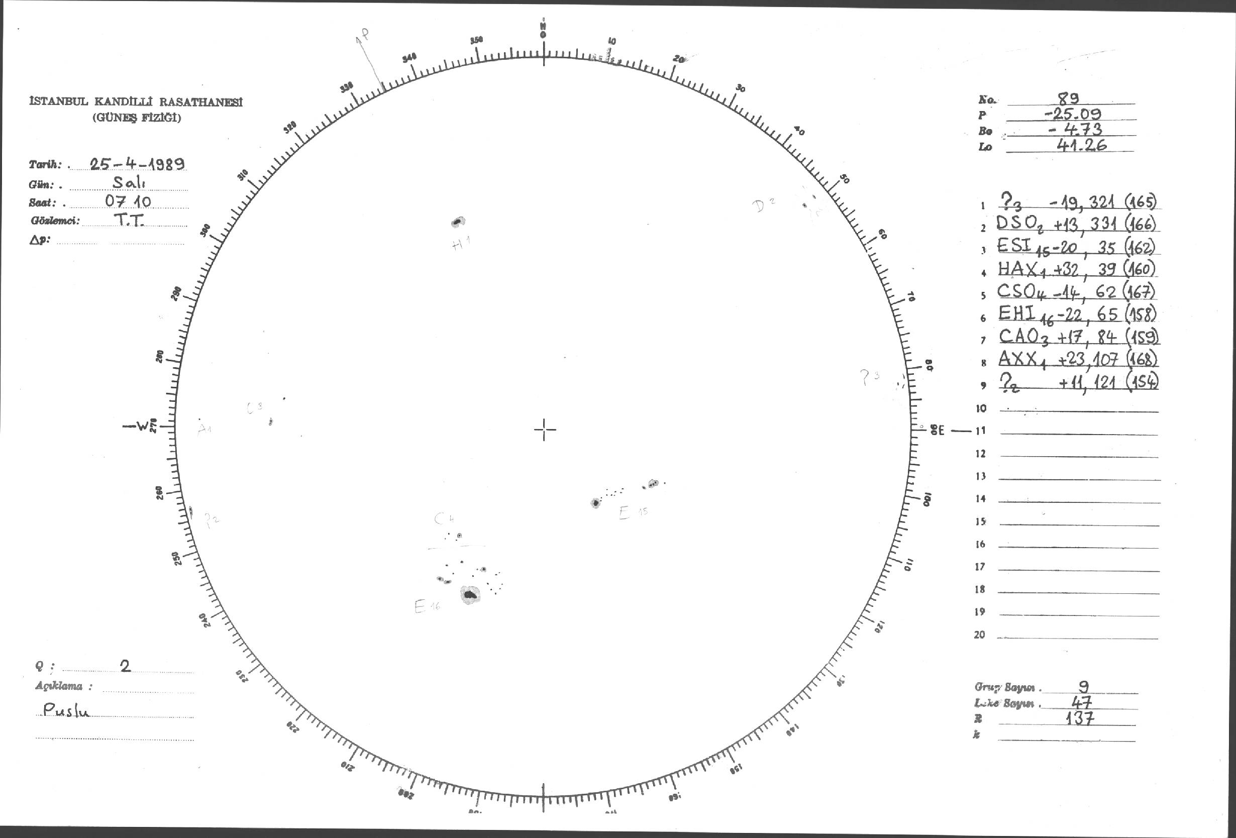 Güneş Lekesi Çizimleri / Kandilli Sunspot Drawings