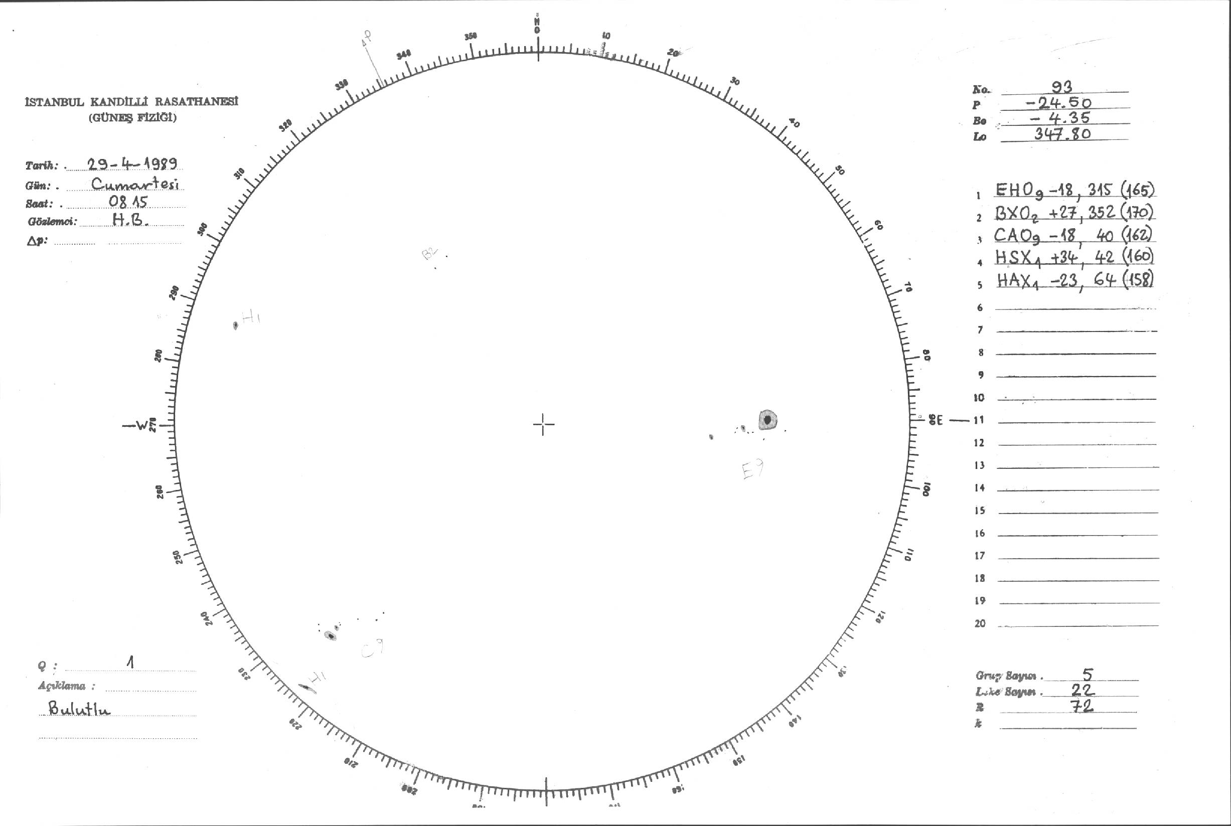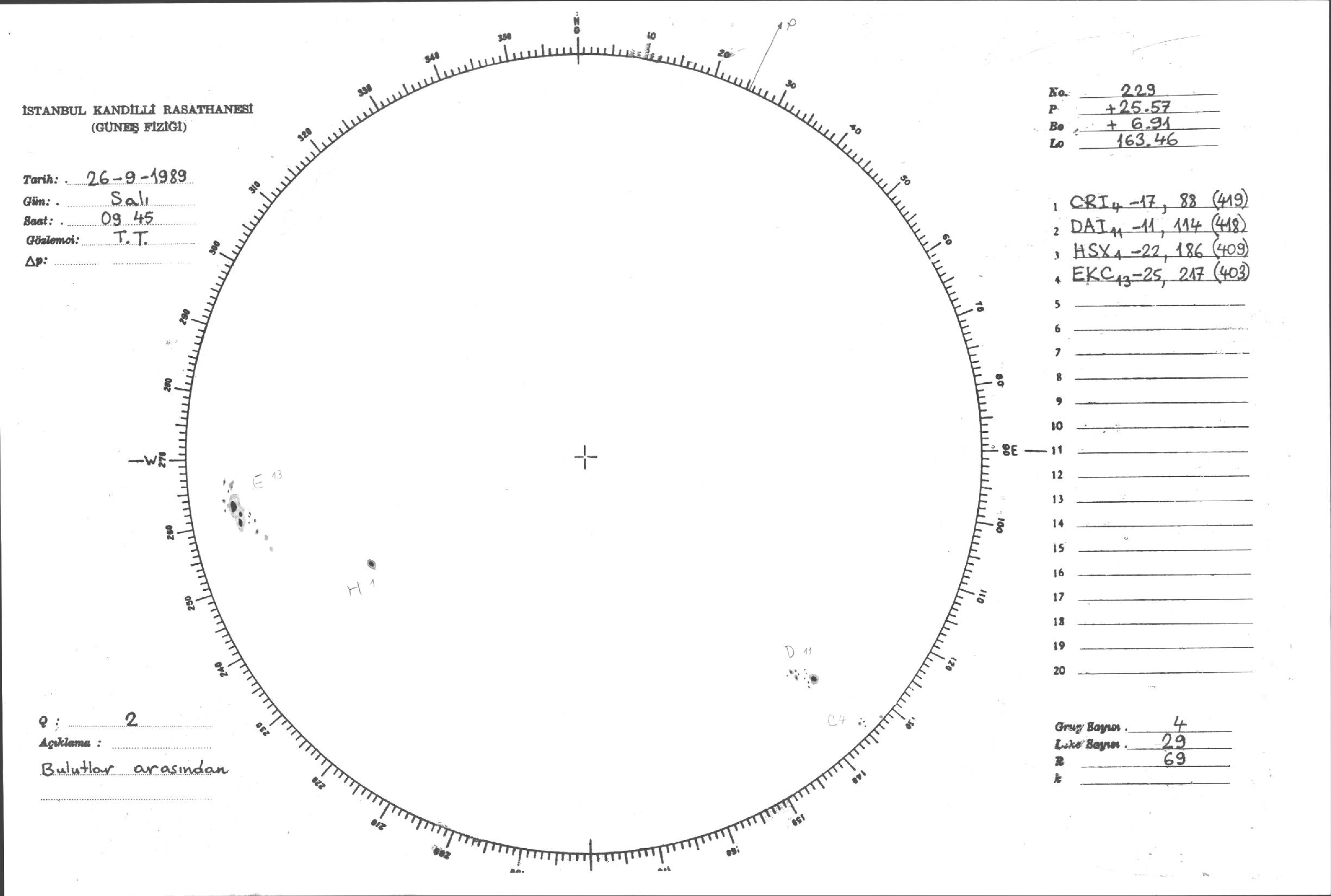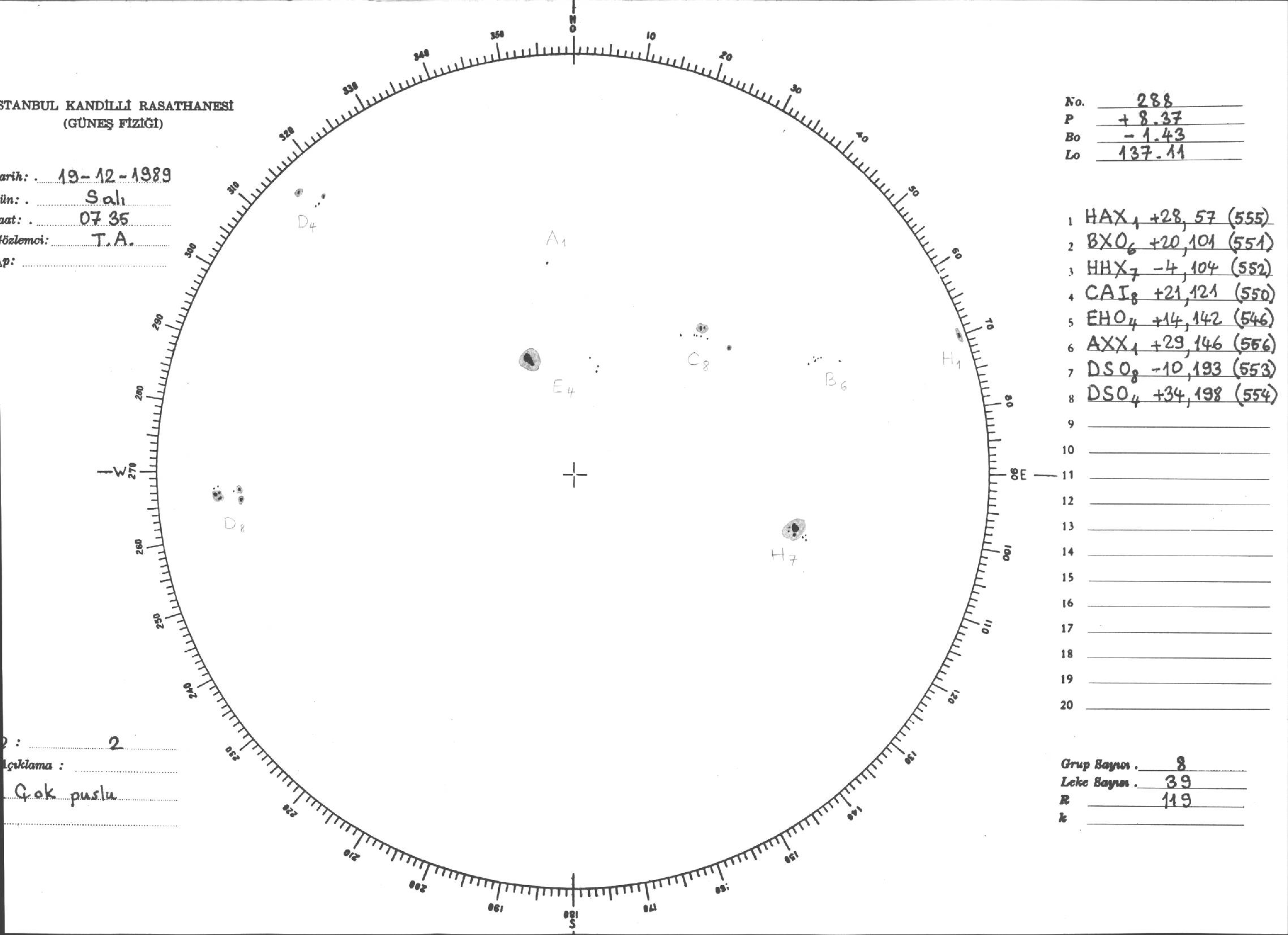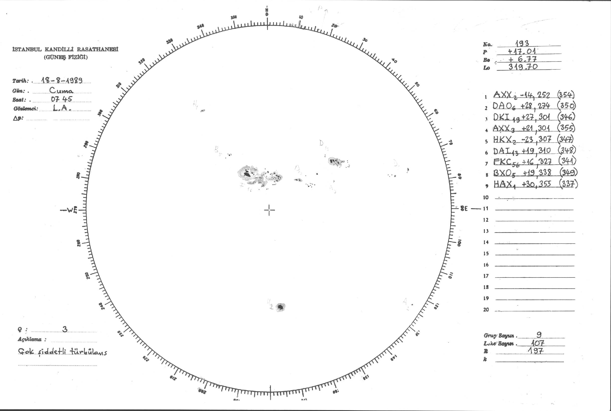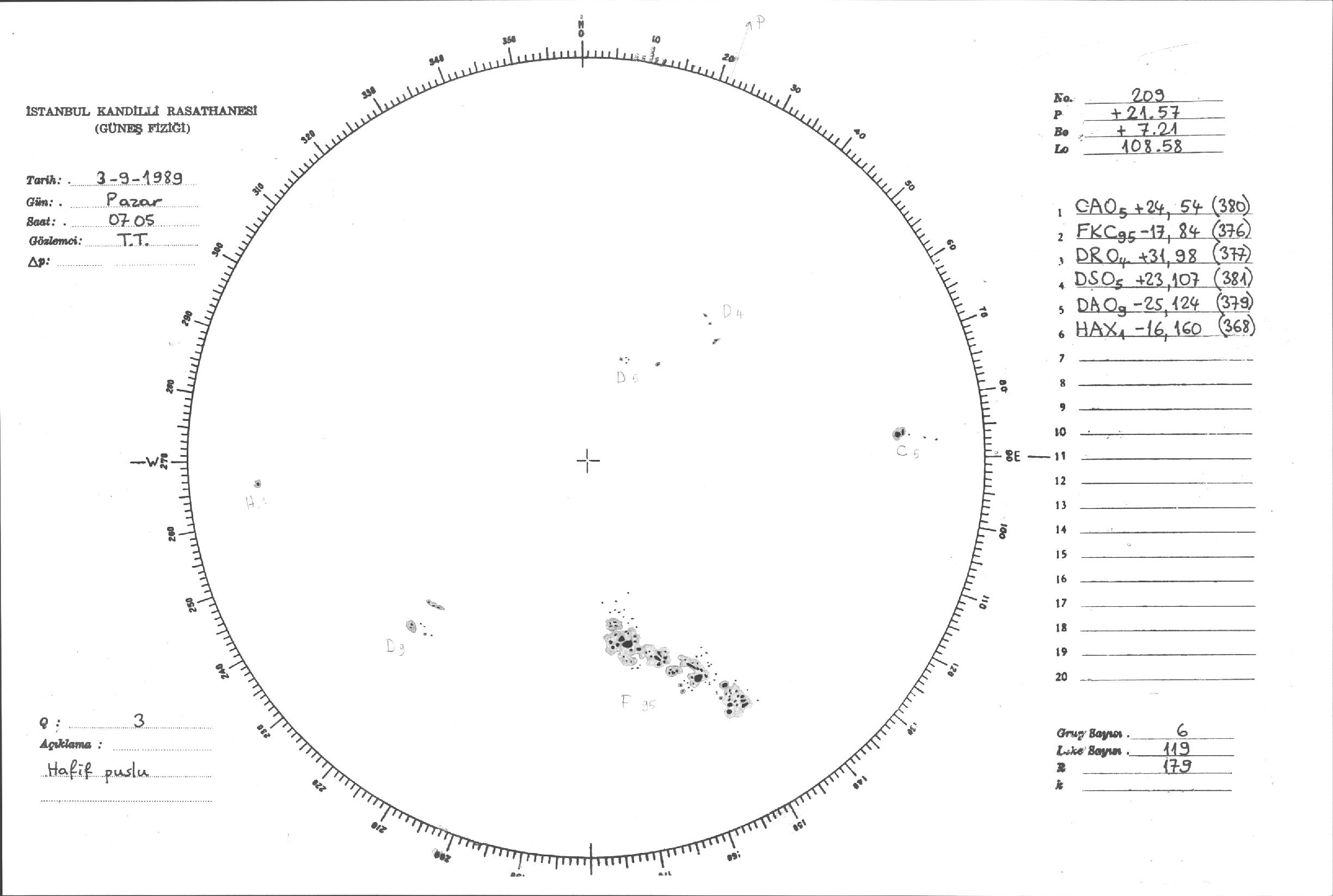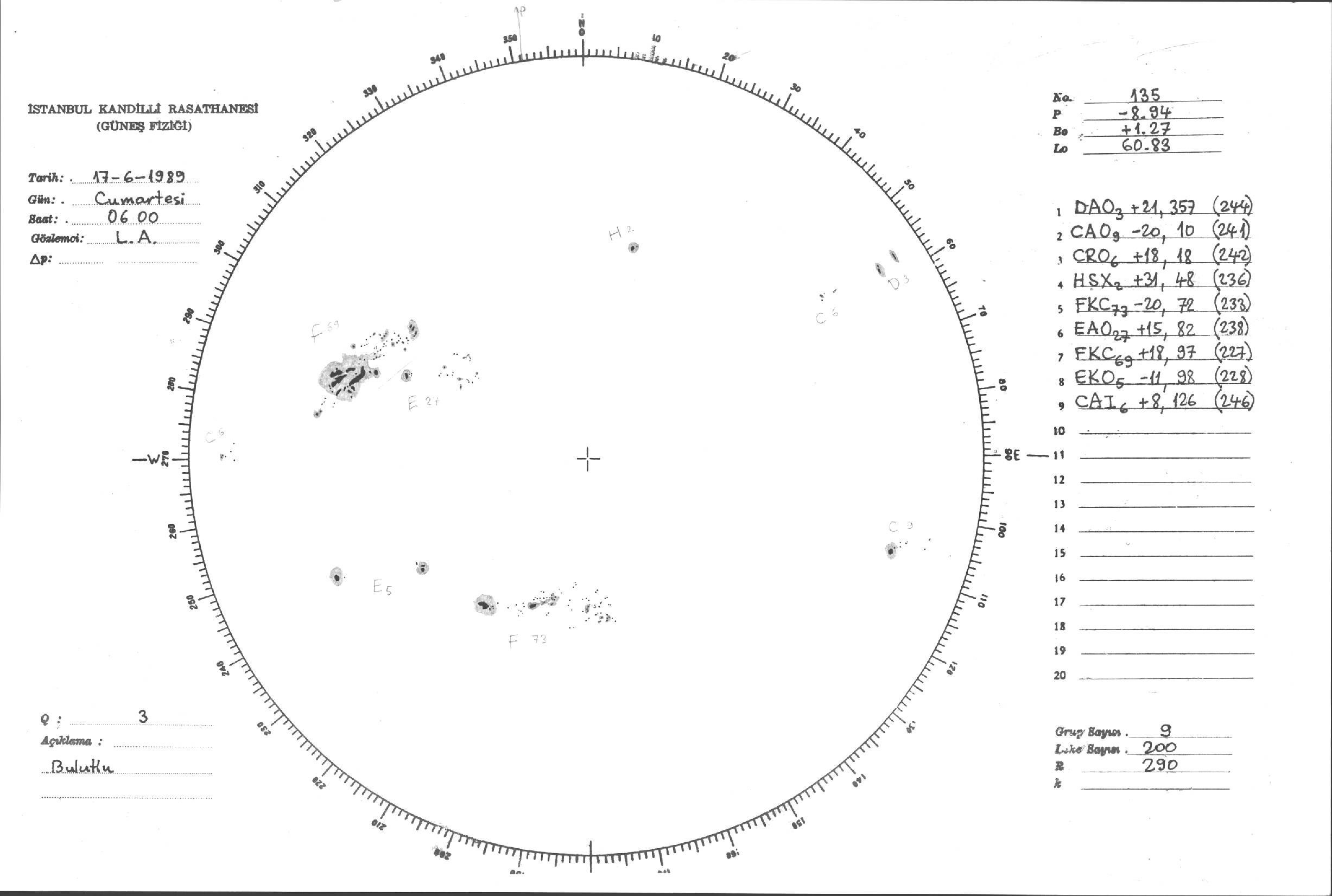 Güneş Lekesi Çizimleri / Kandilli Sunspot Drawings