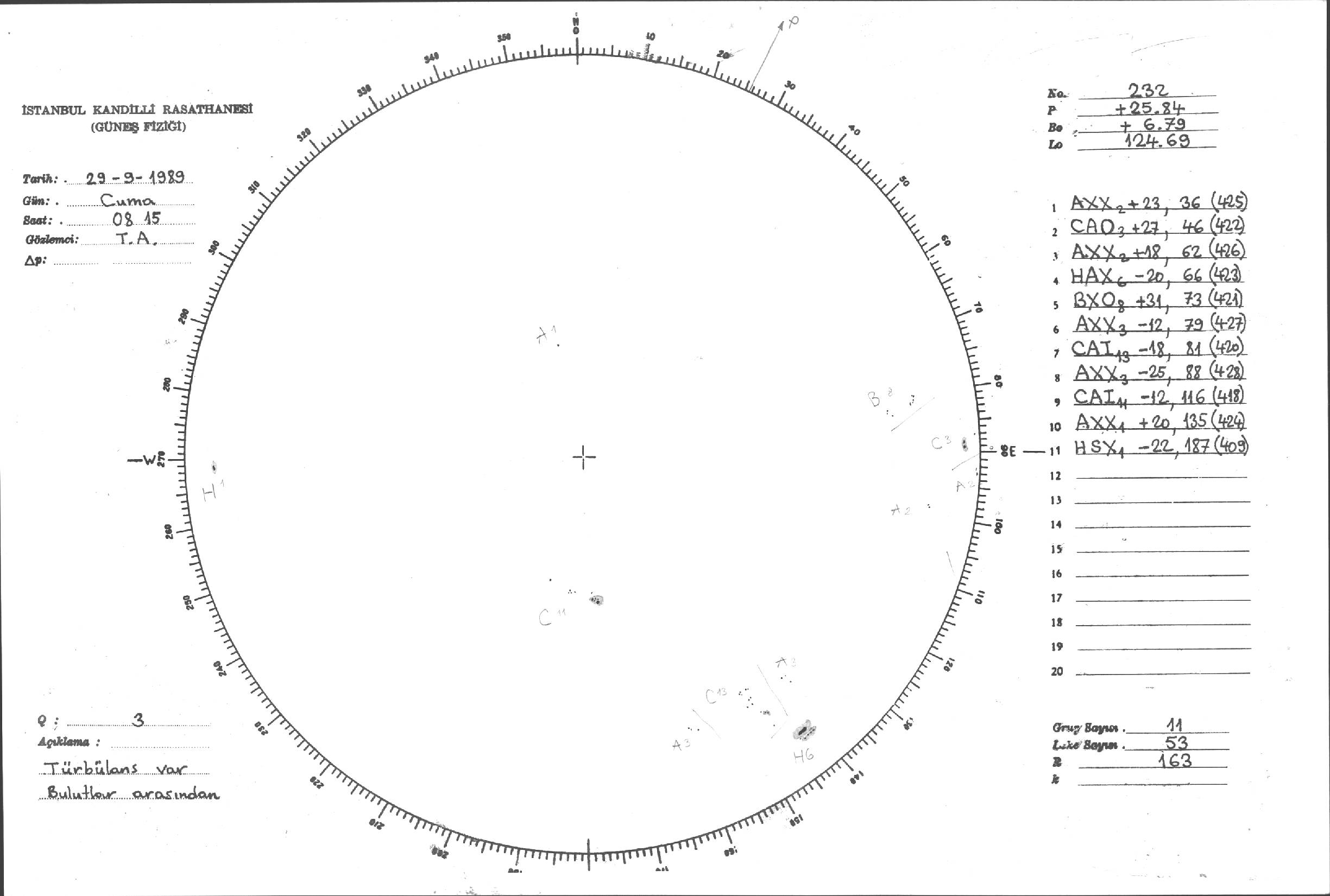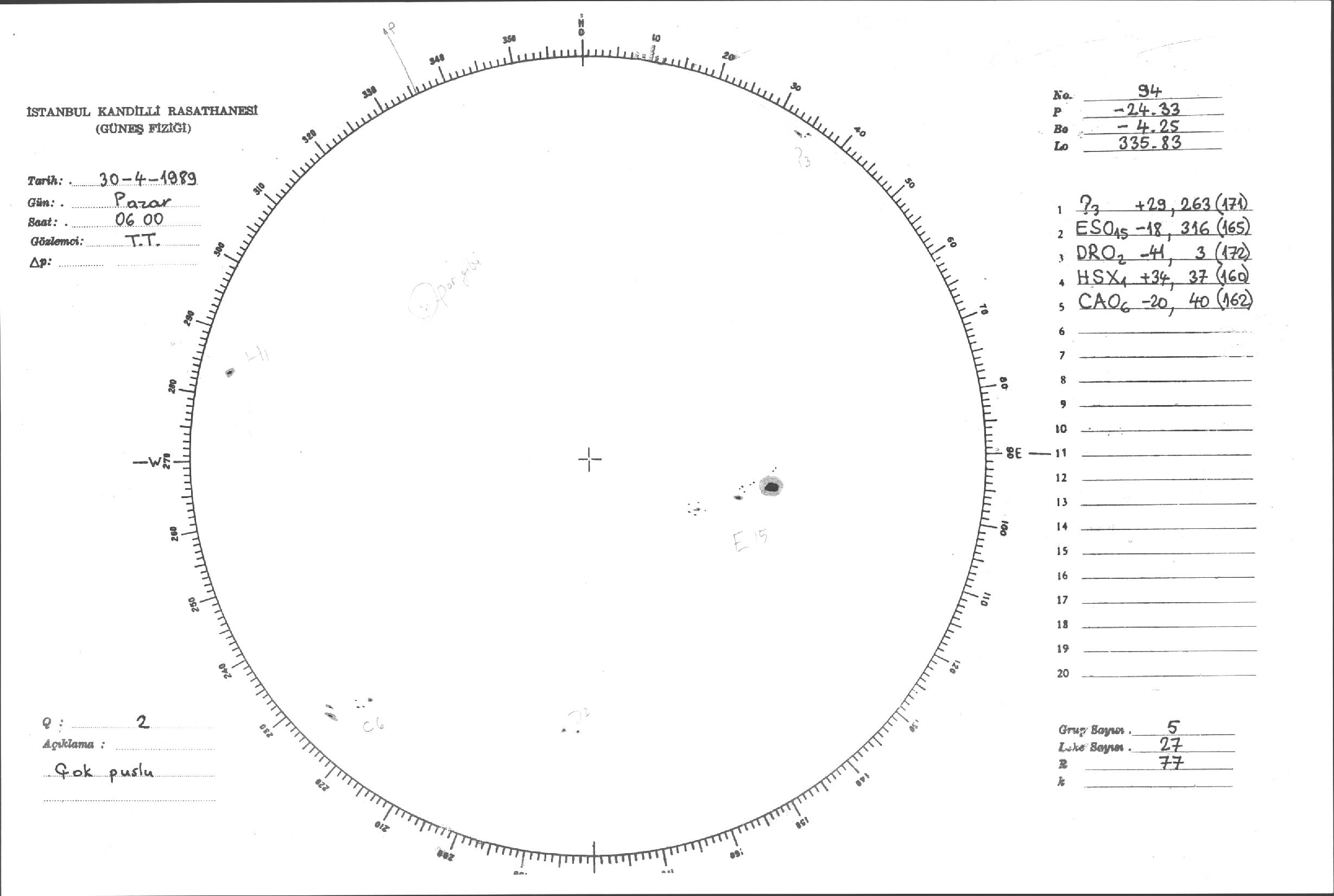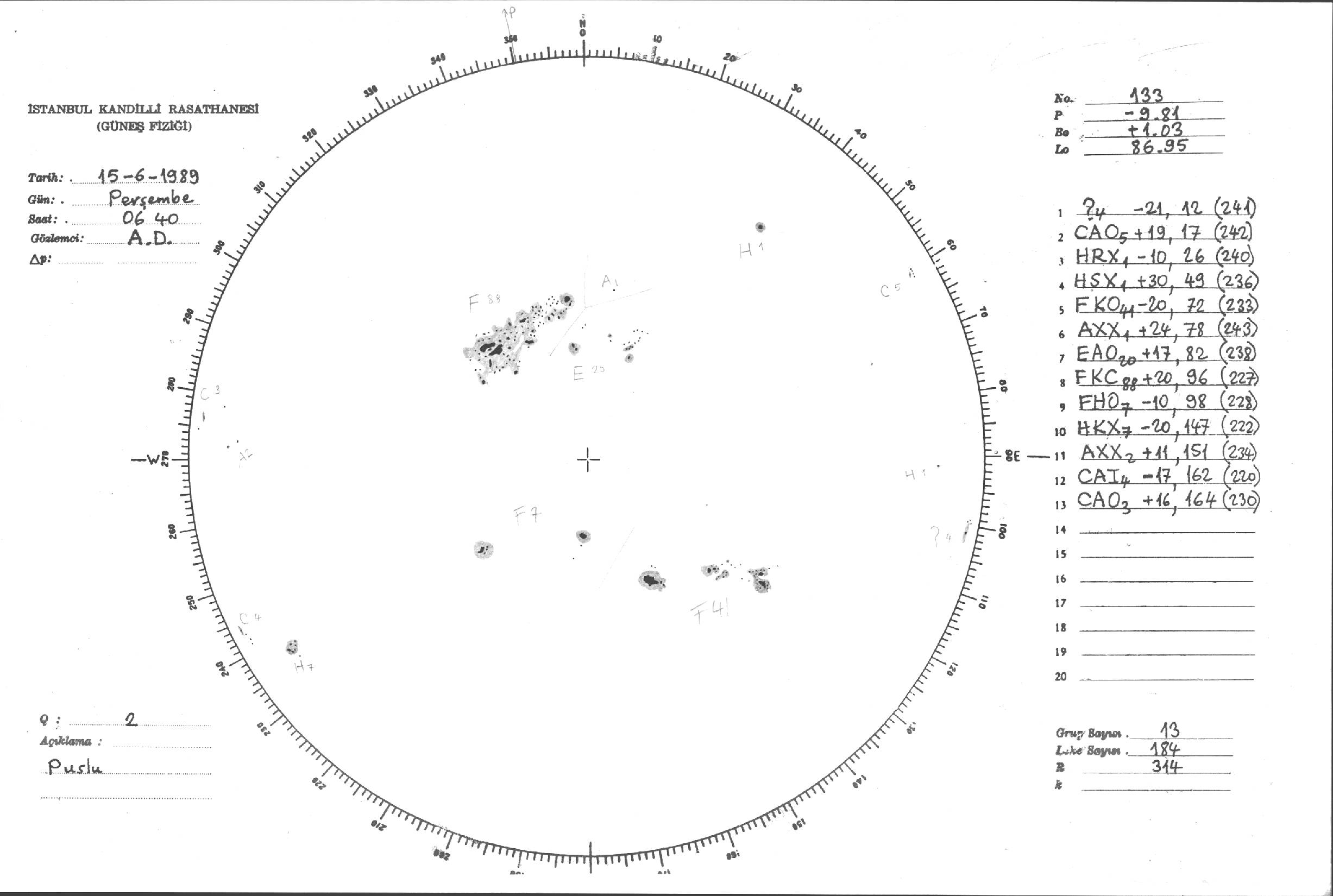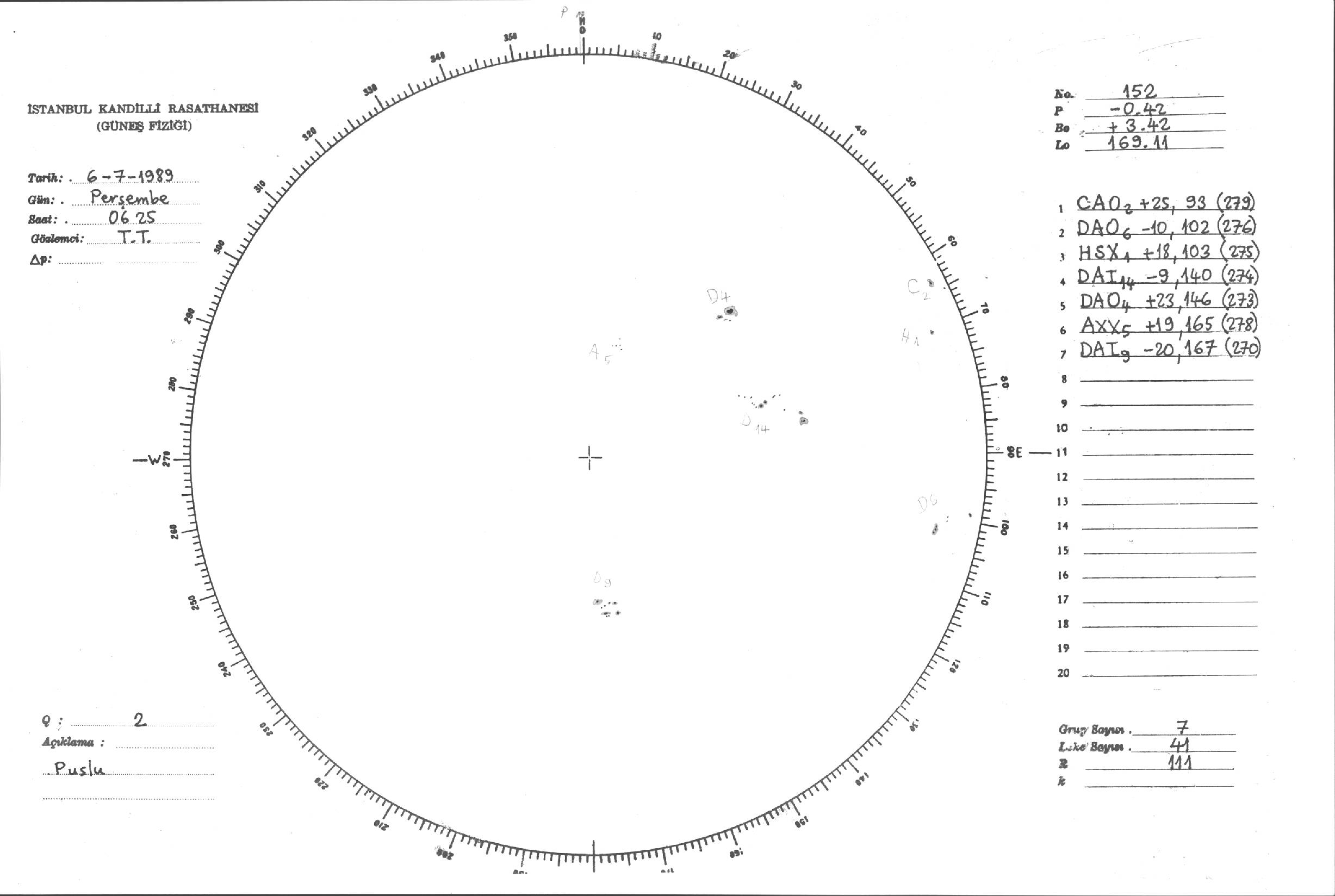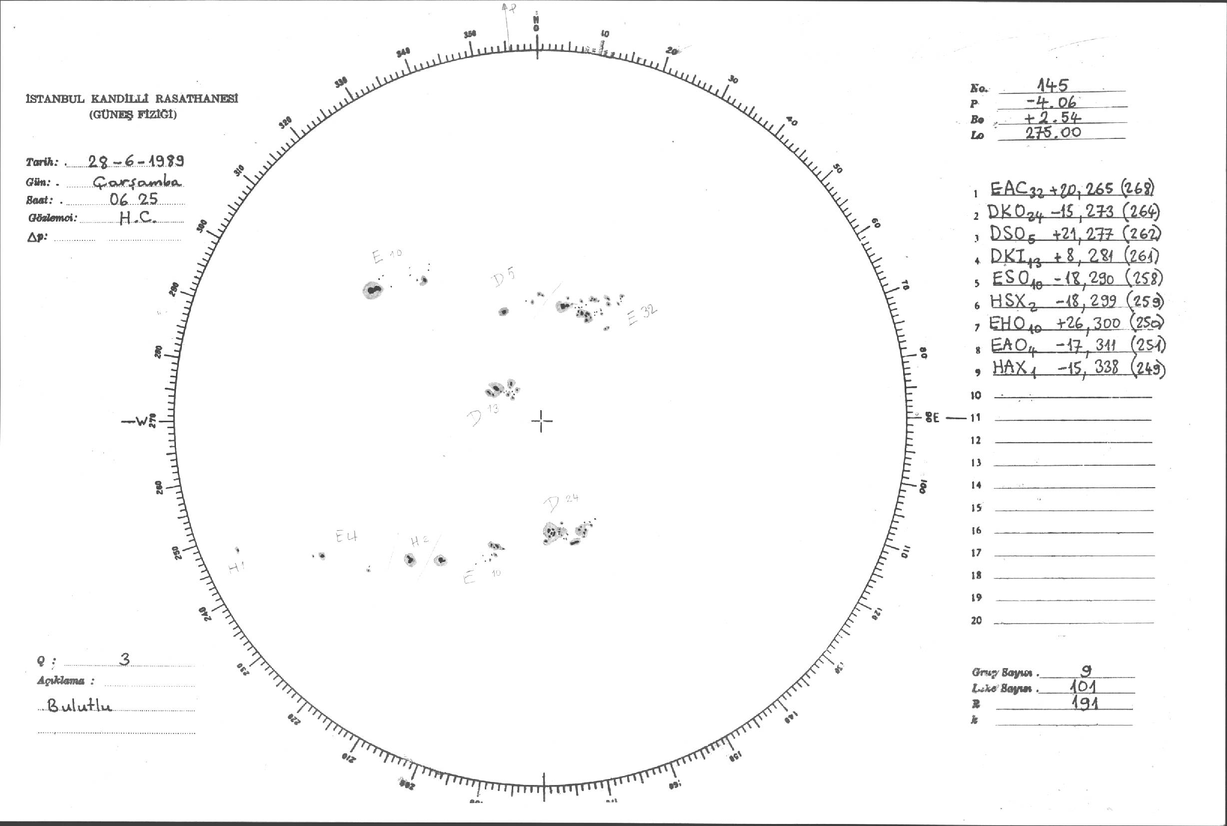Güneş Lekesi Çizimleri / Kandilli Sunspot Drawings