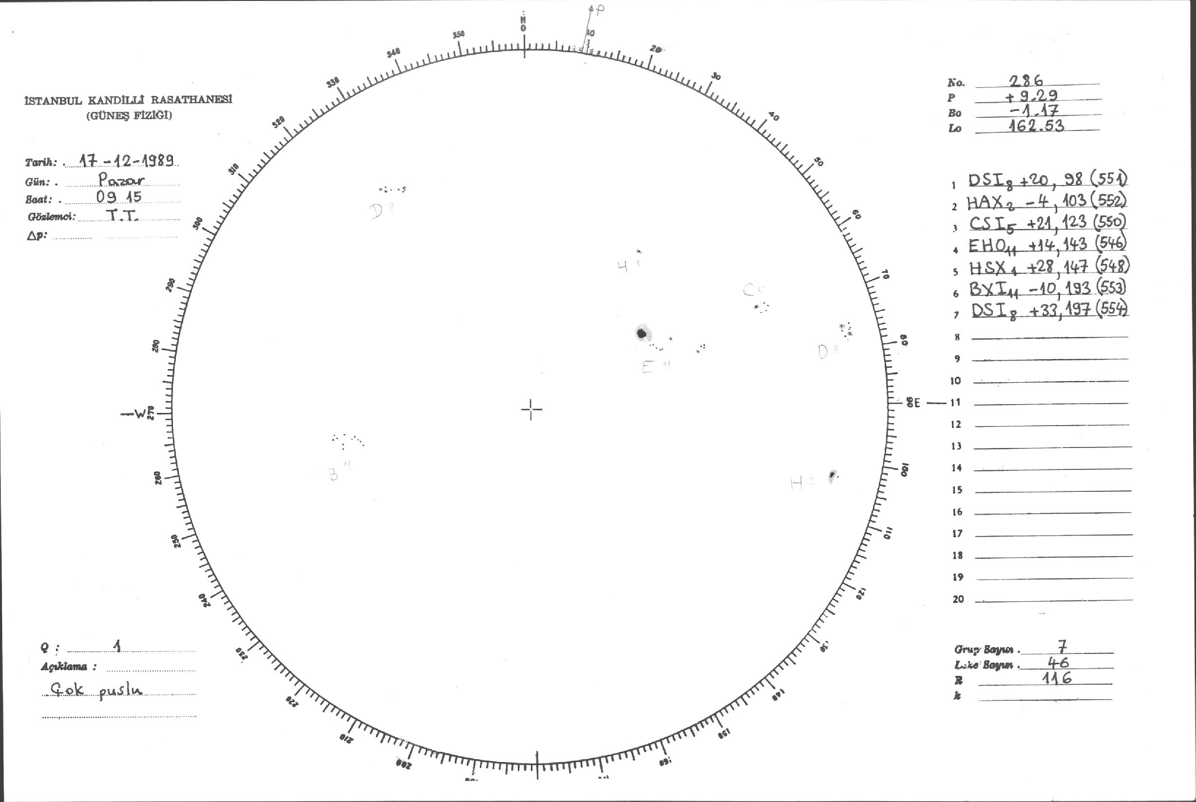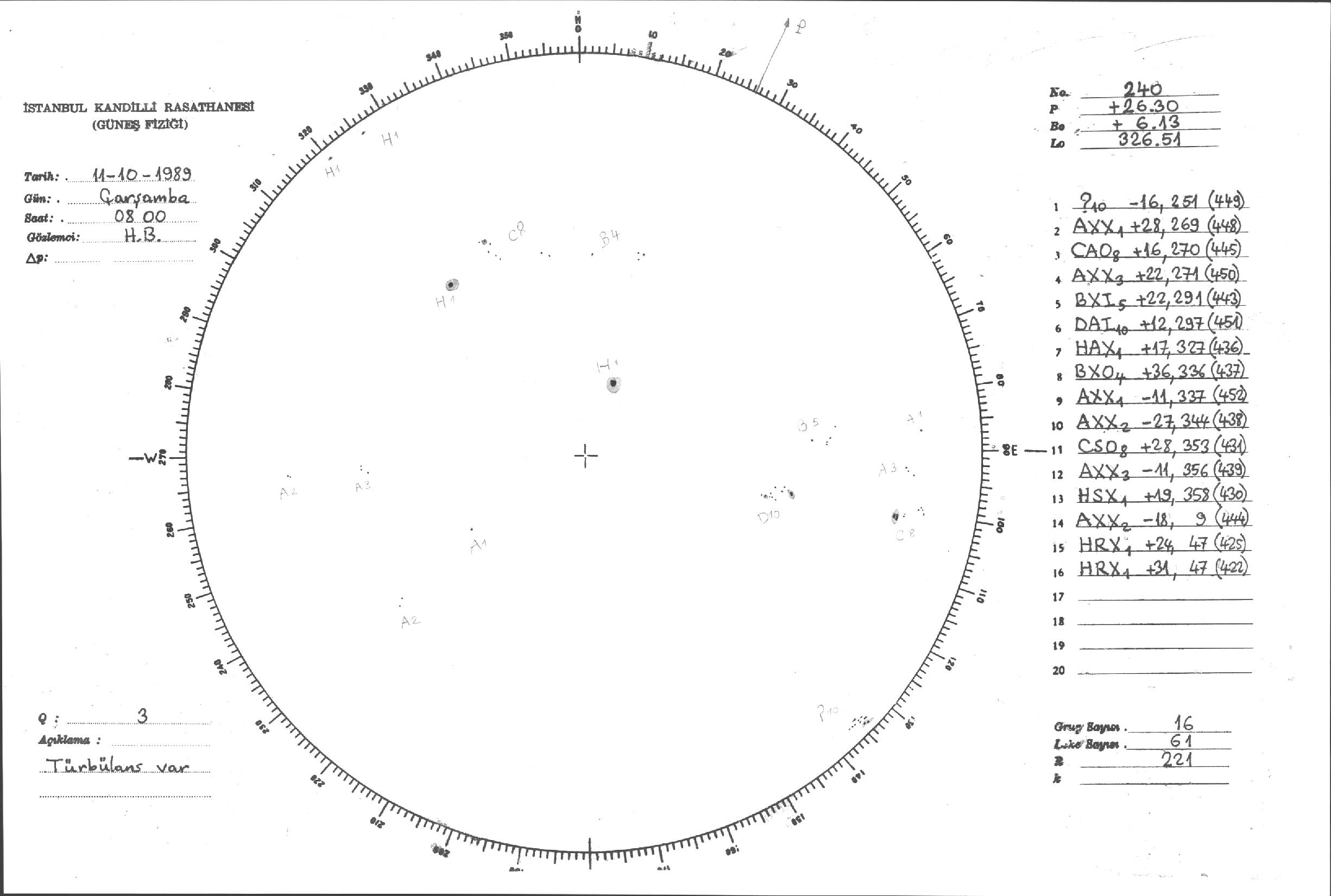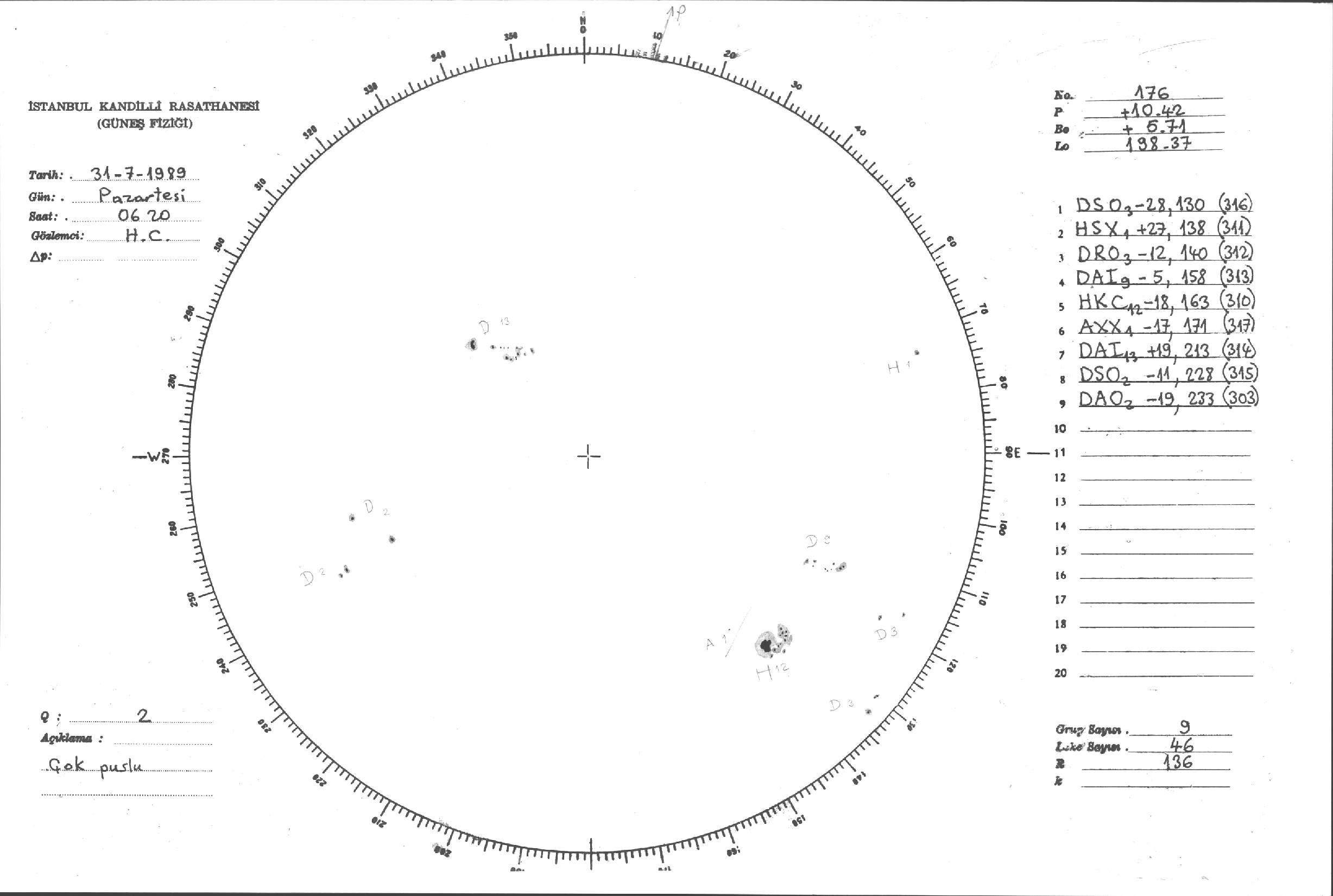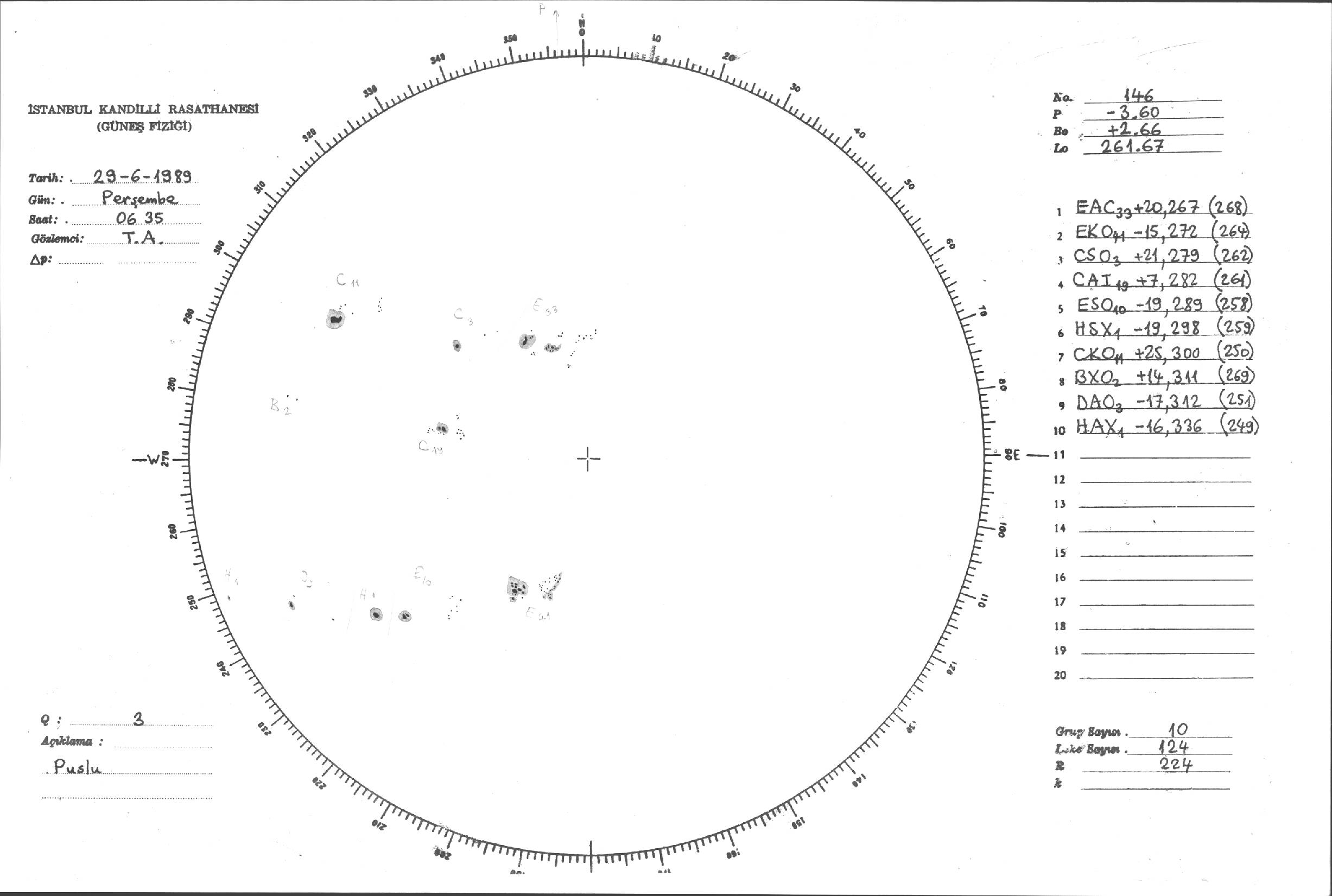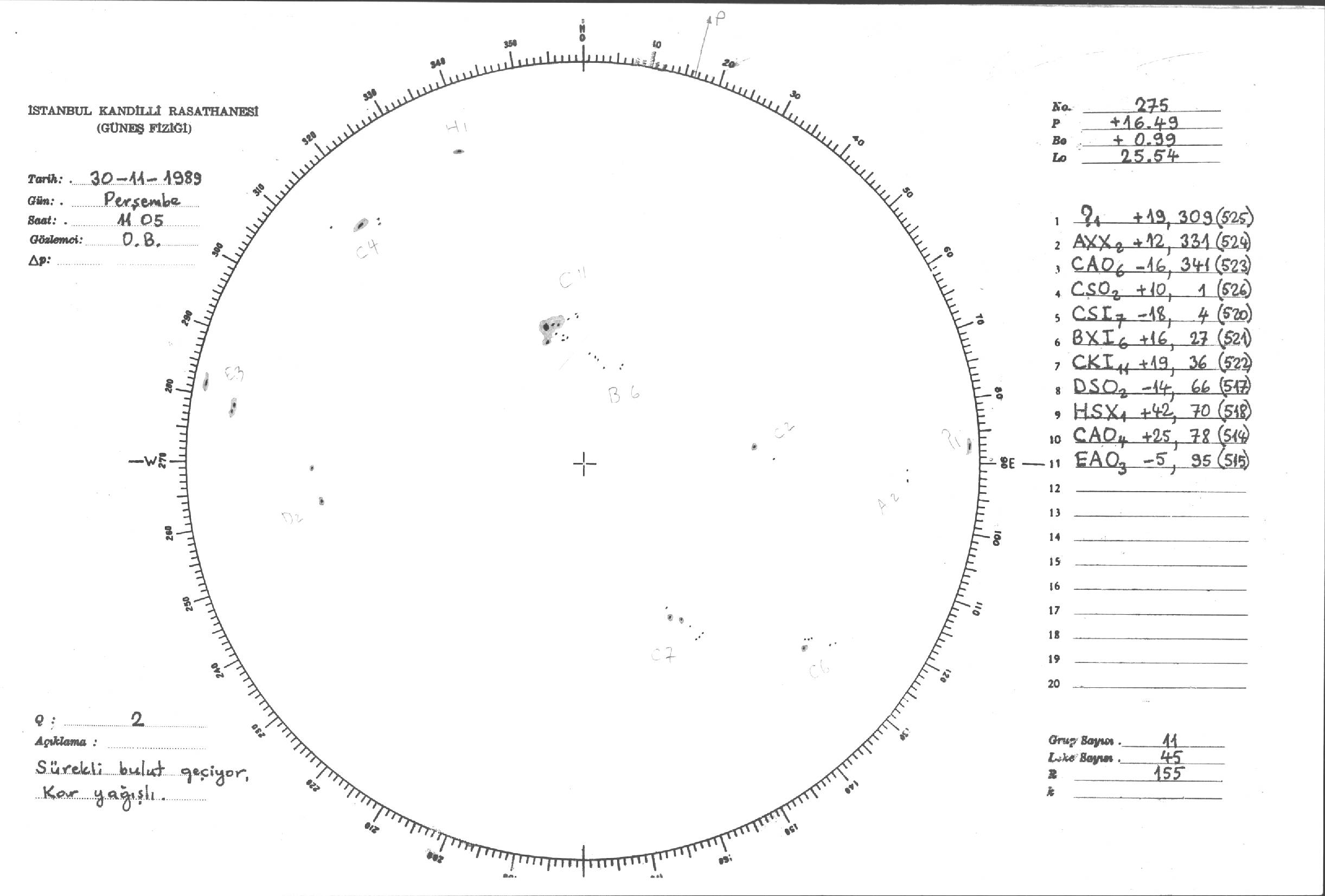 Güneş Lekesi Çizimleri / Kandilli Sunspot Drawings