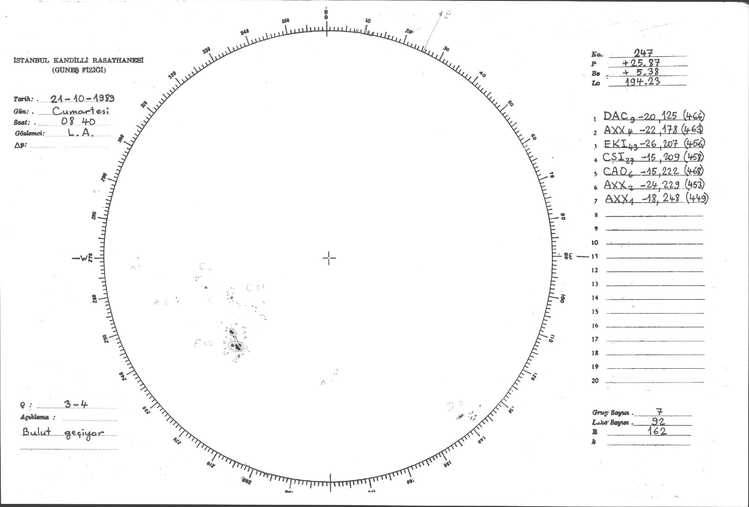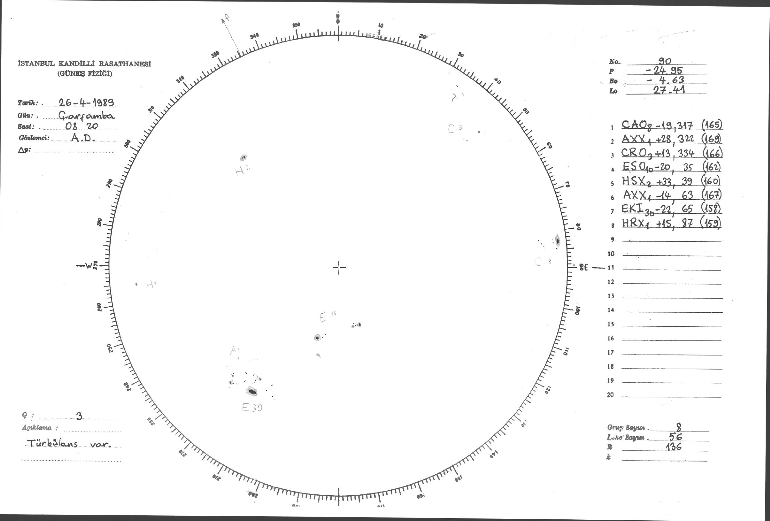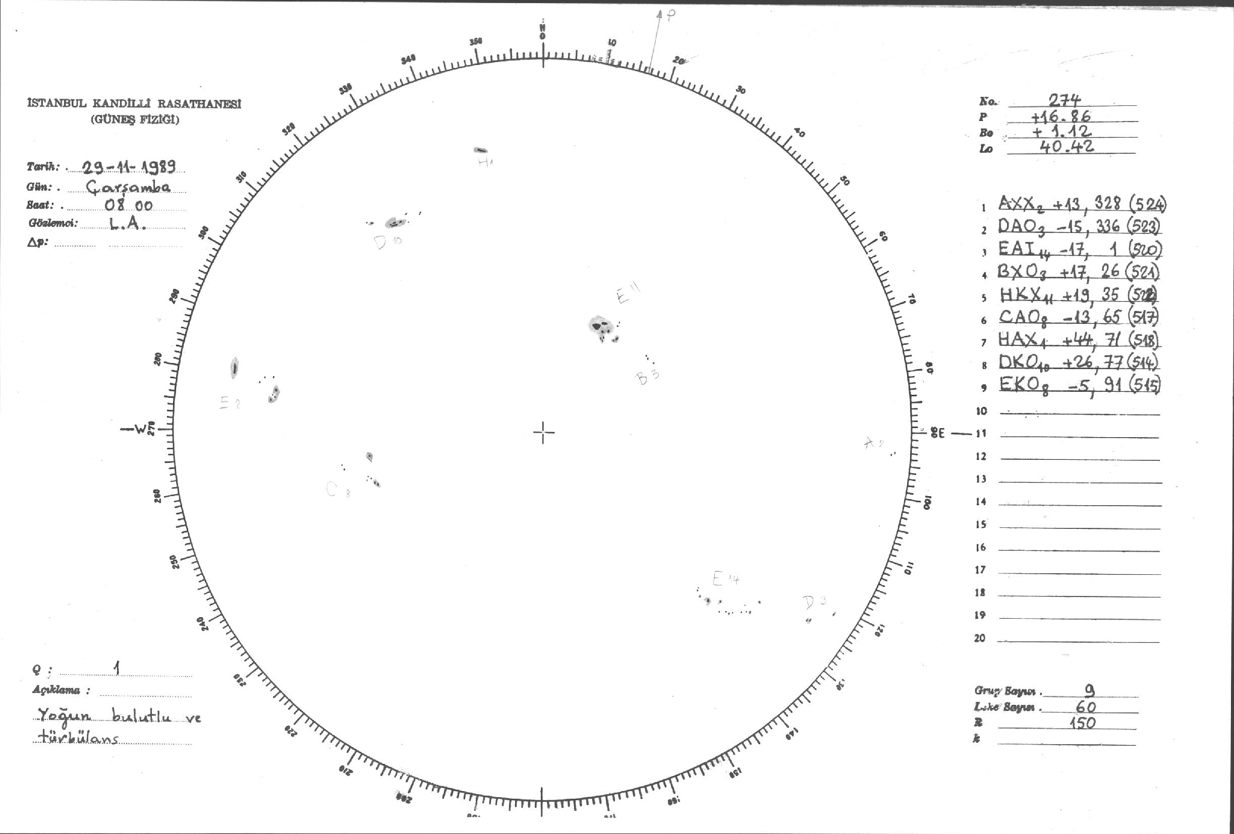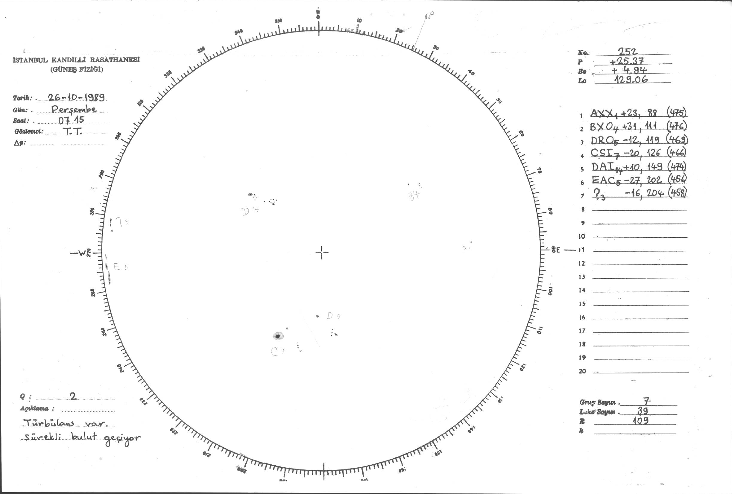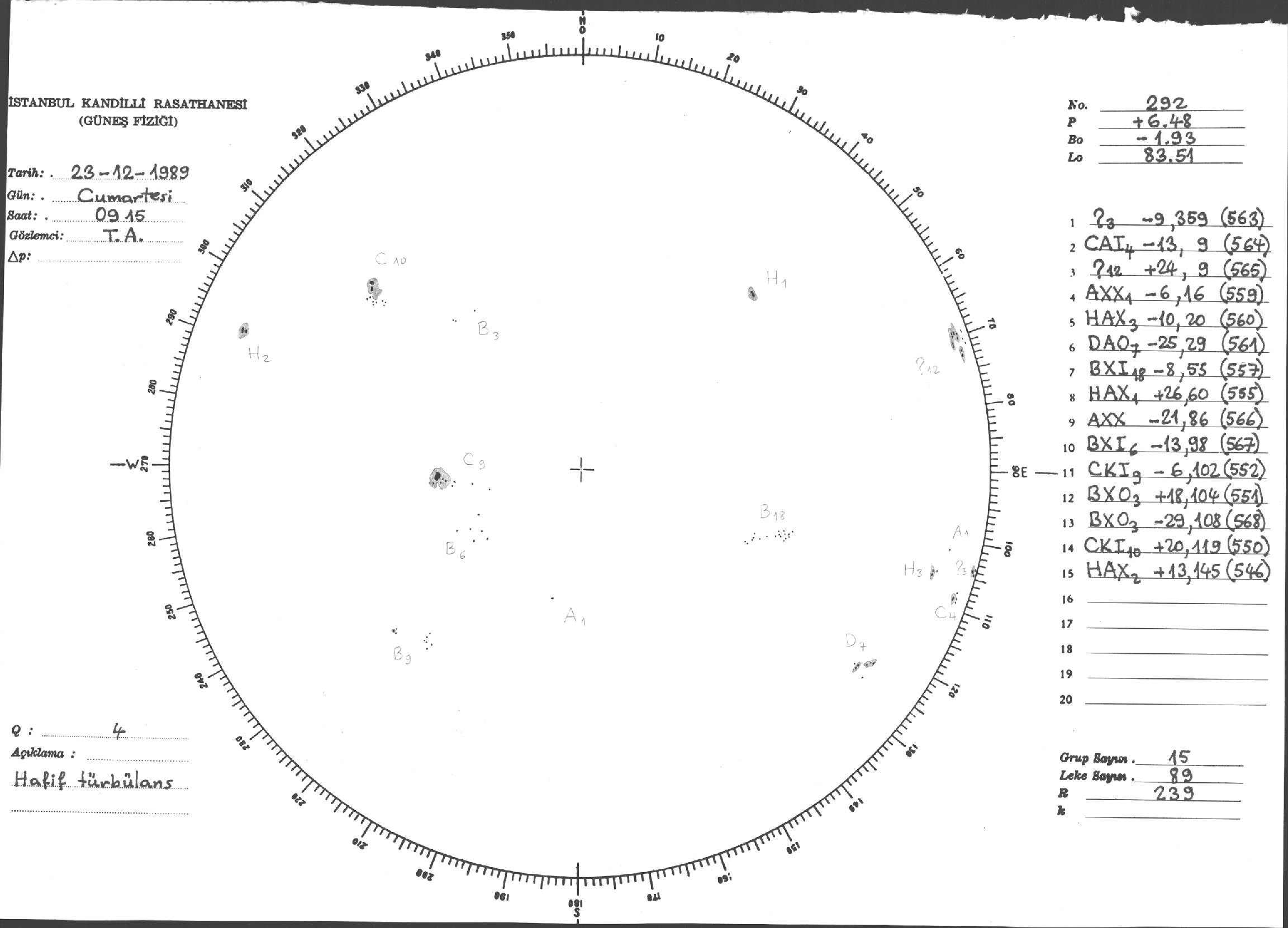 Güneş Lekesi Çizimleri / Kandilli Sunspot Drawings