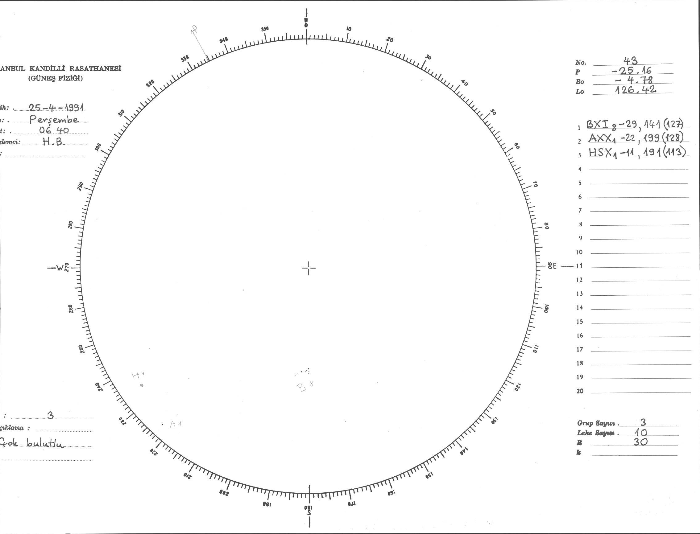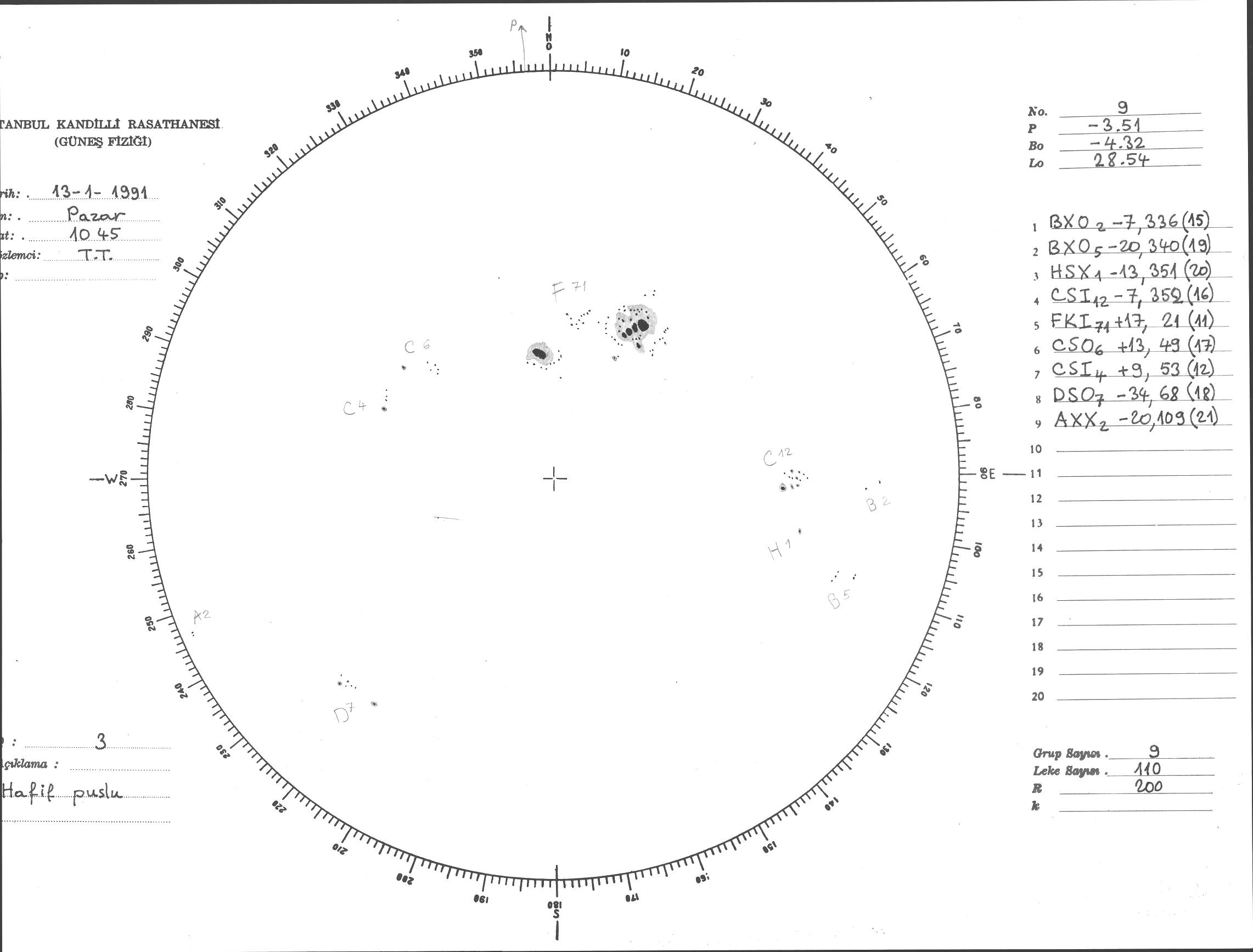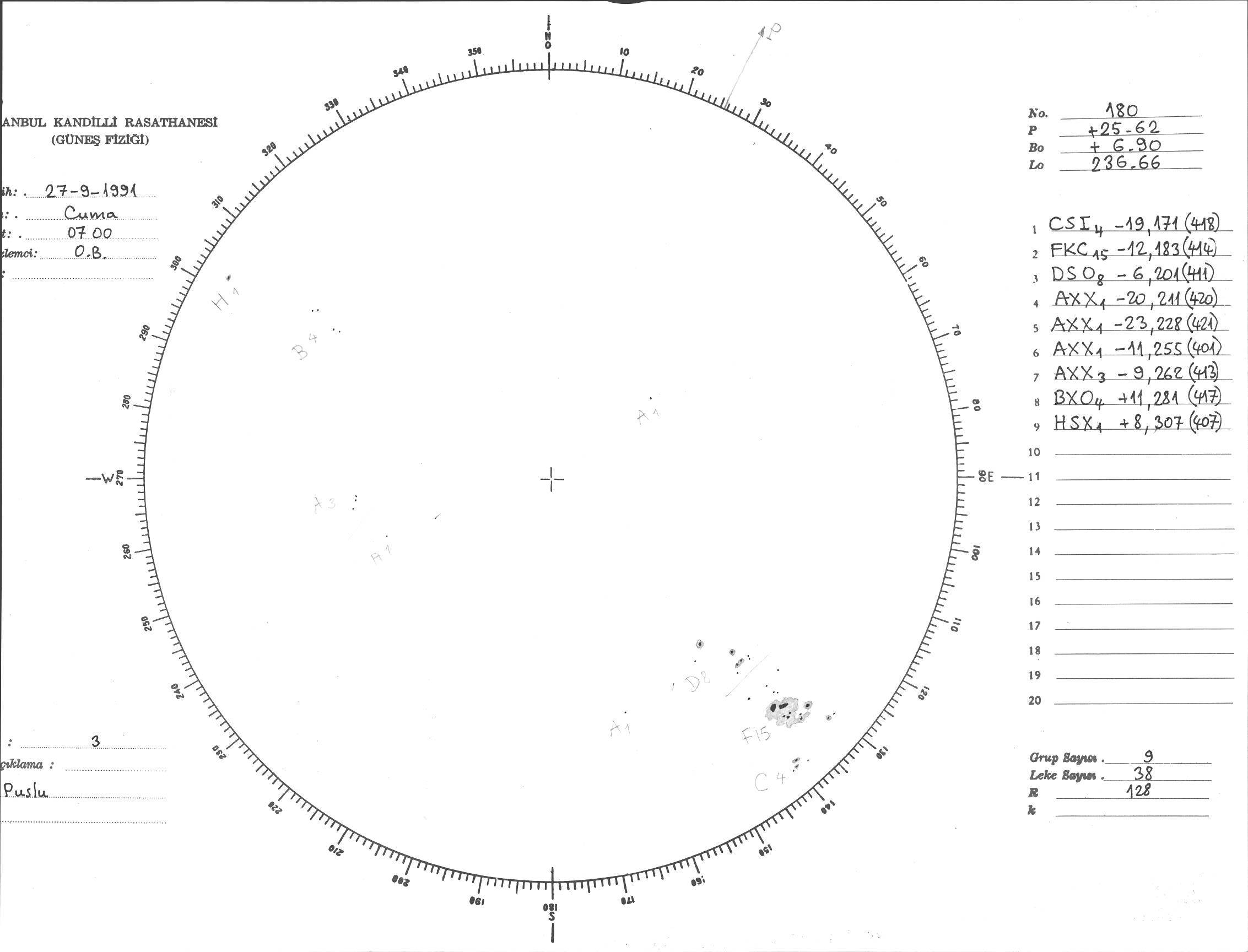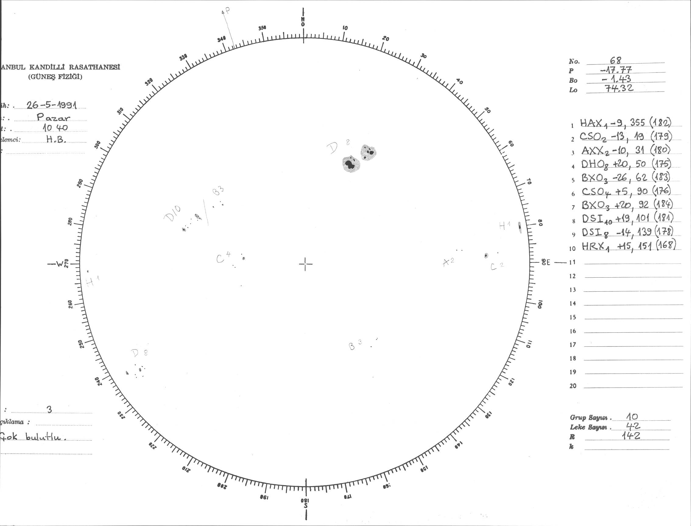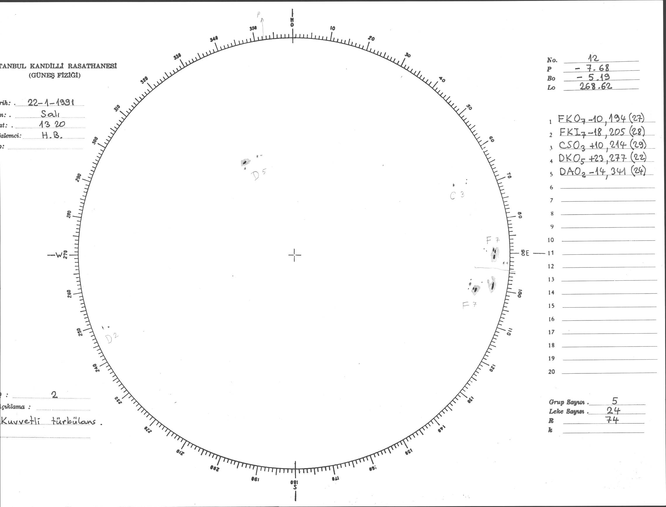 Güneş Lekesi Çizimleri / Kandilli Sunspot Drawings
