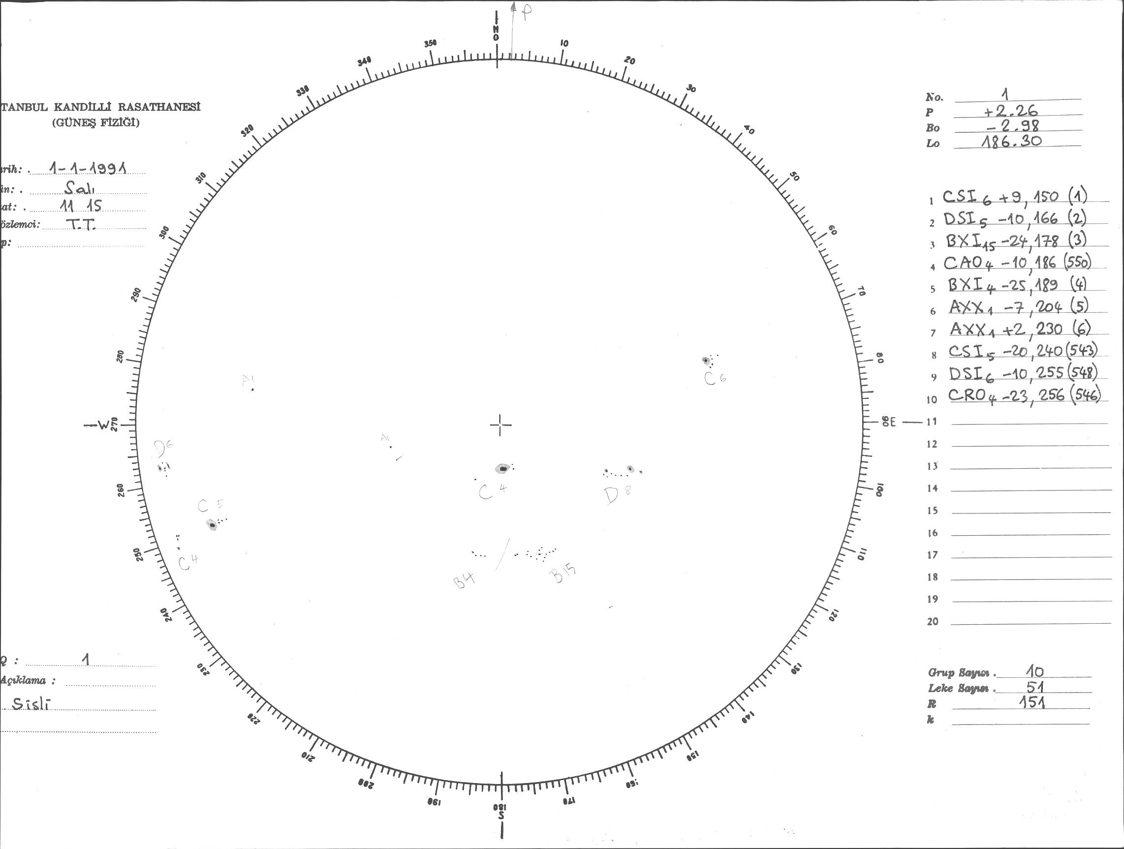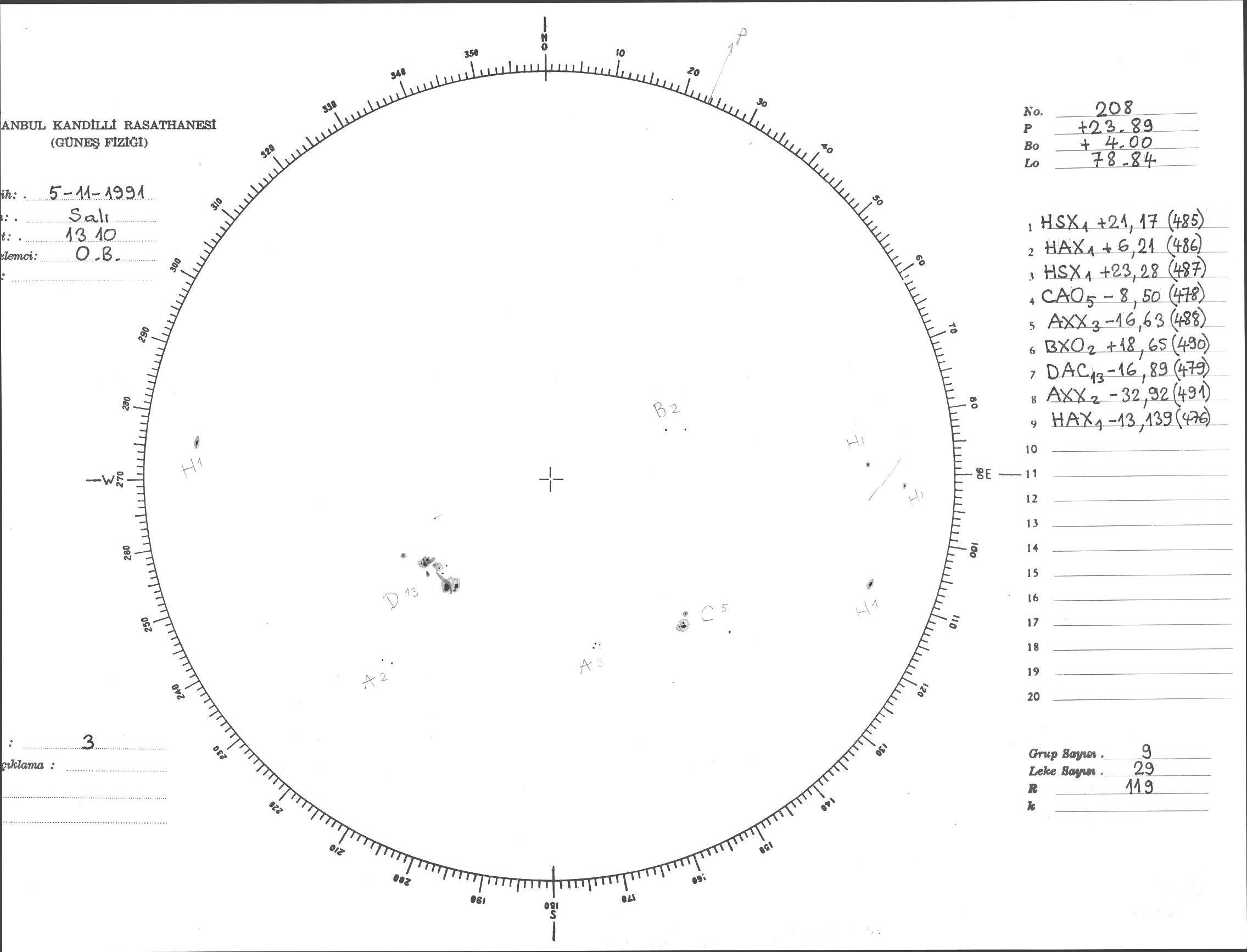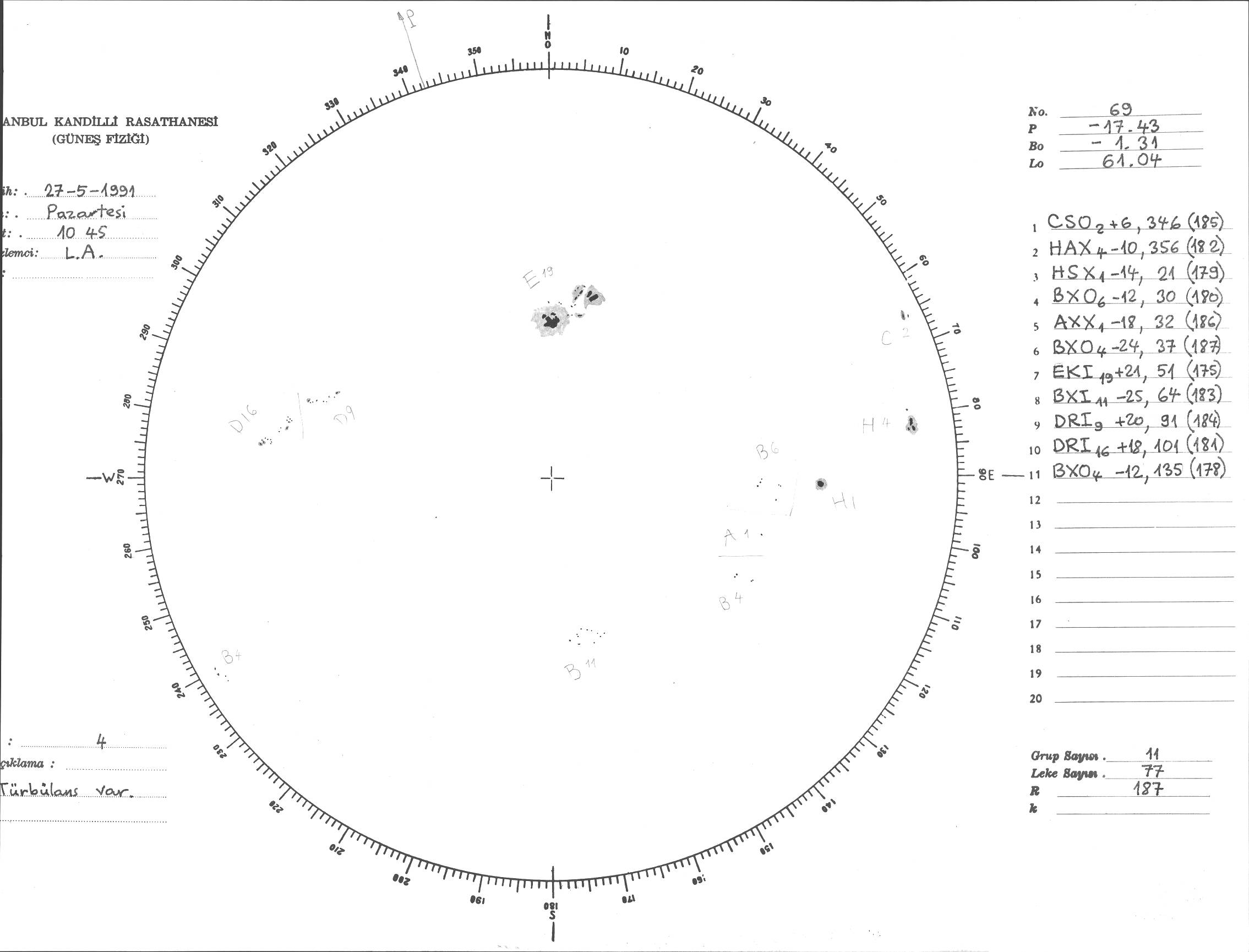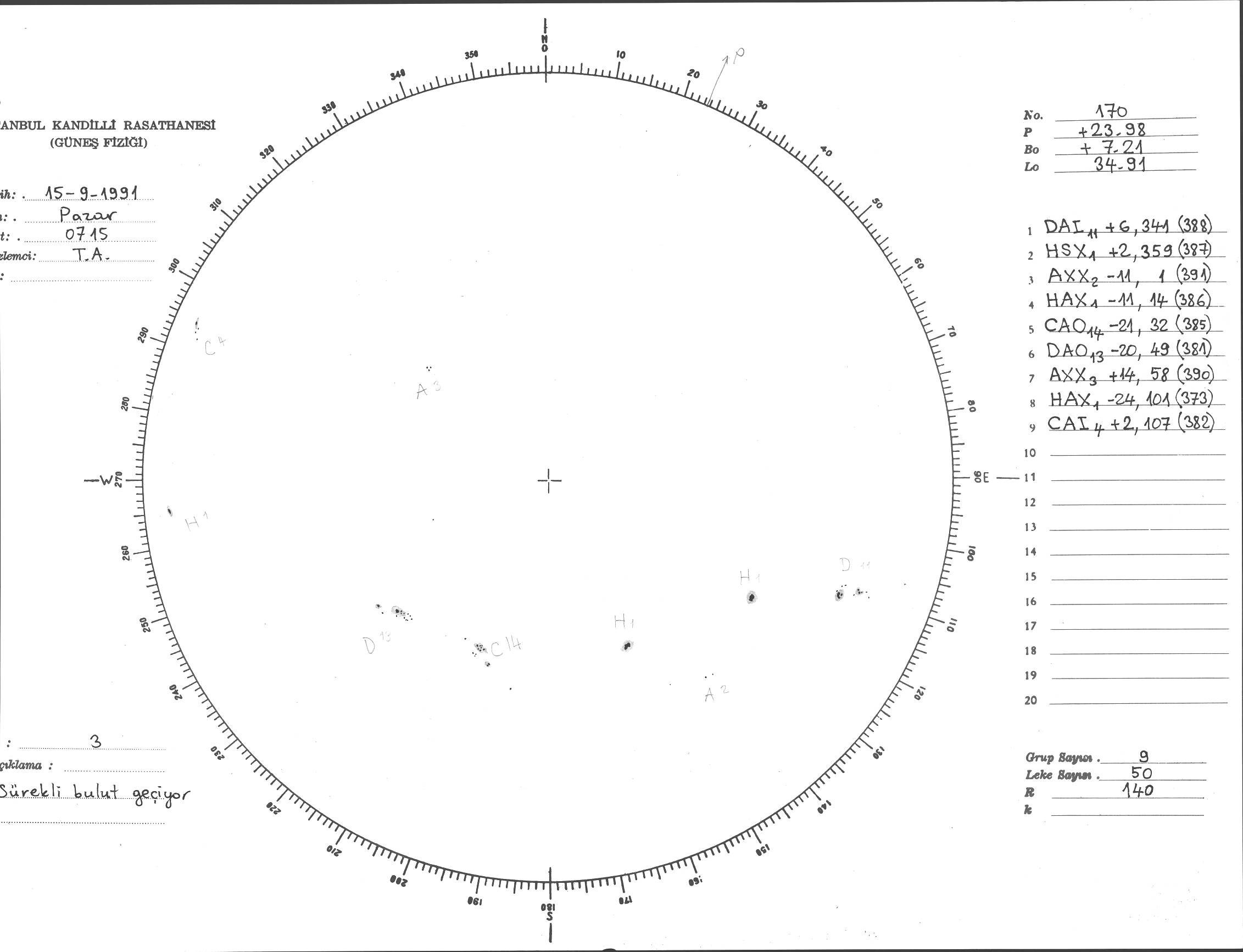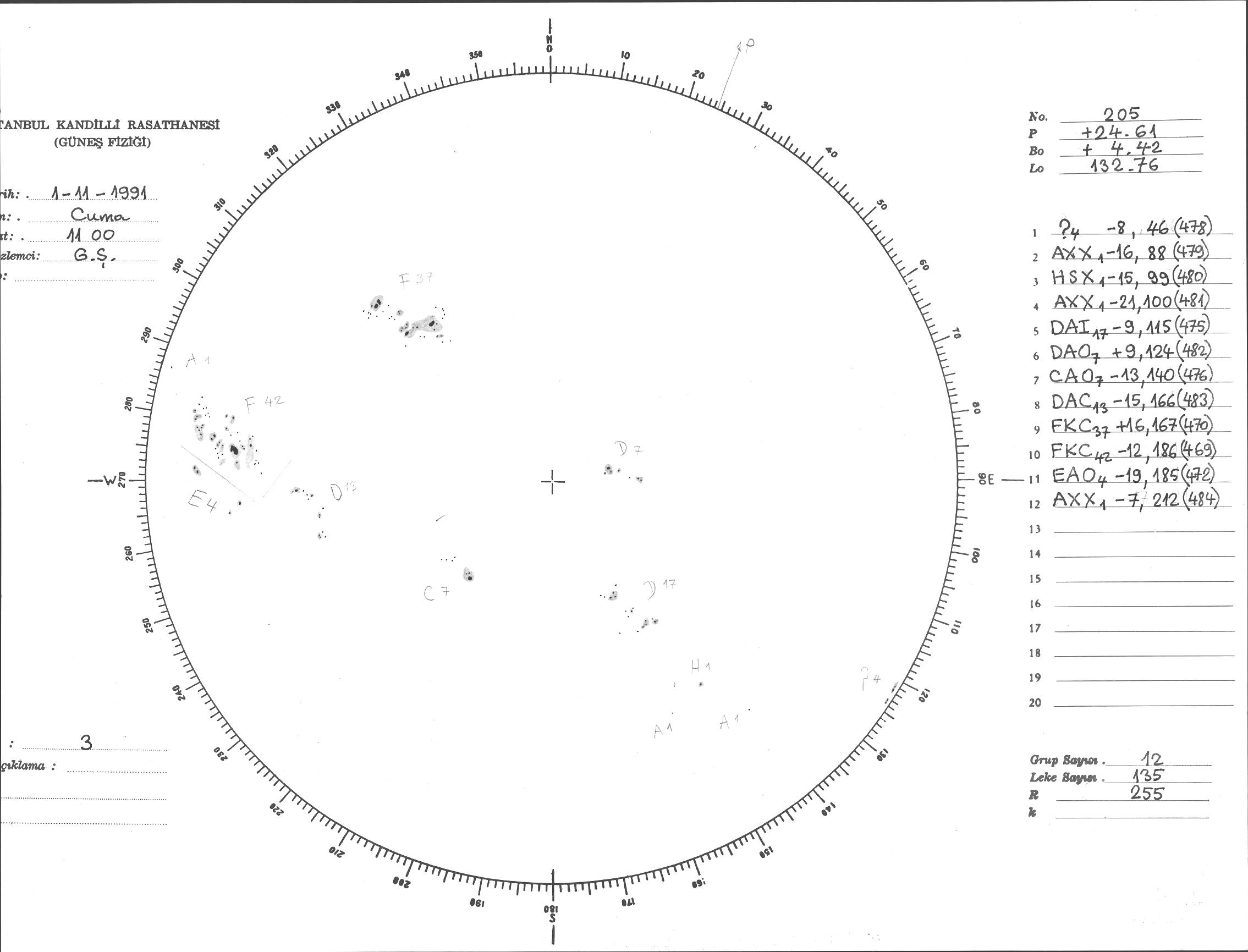 Güneş Lekesi Çizimleri / Kandilli Sunspot Drawings