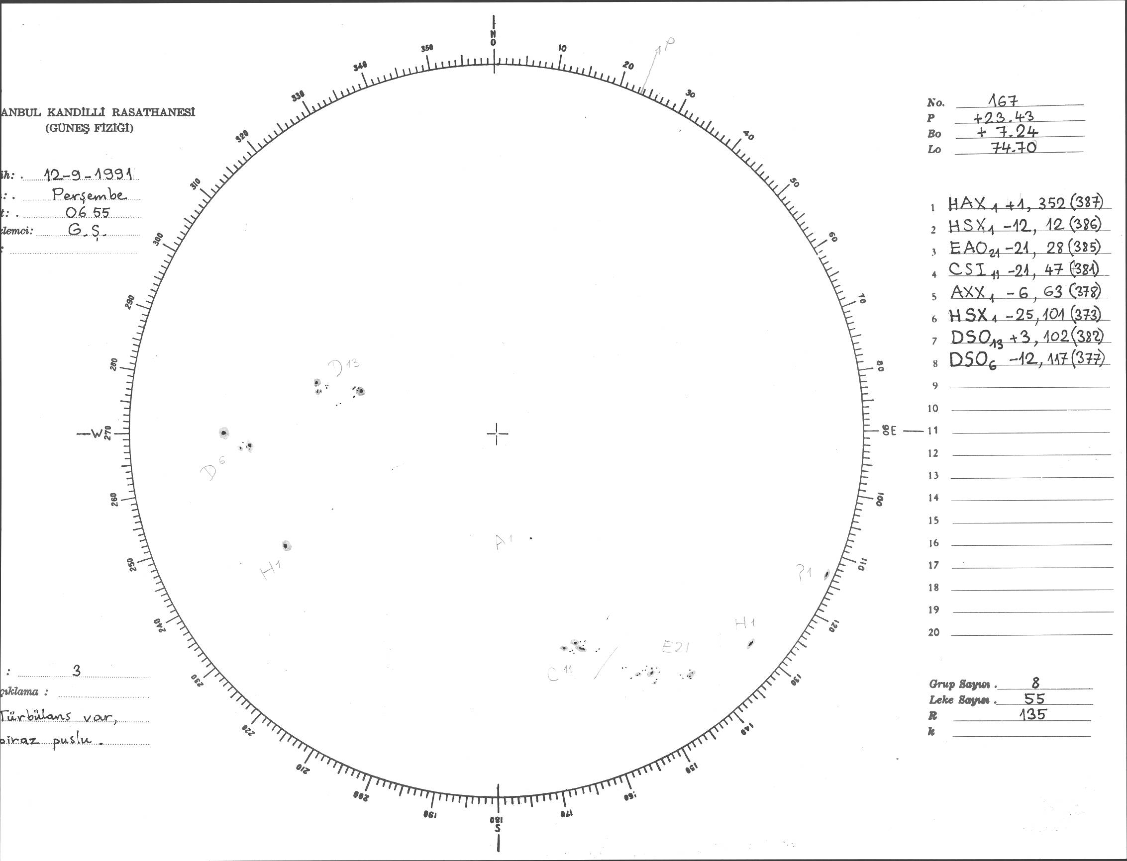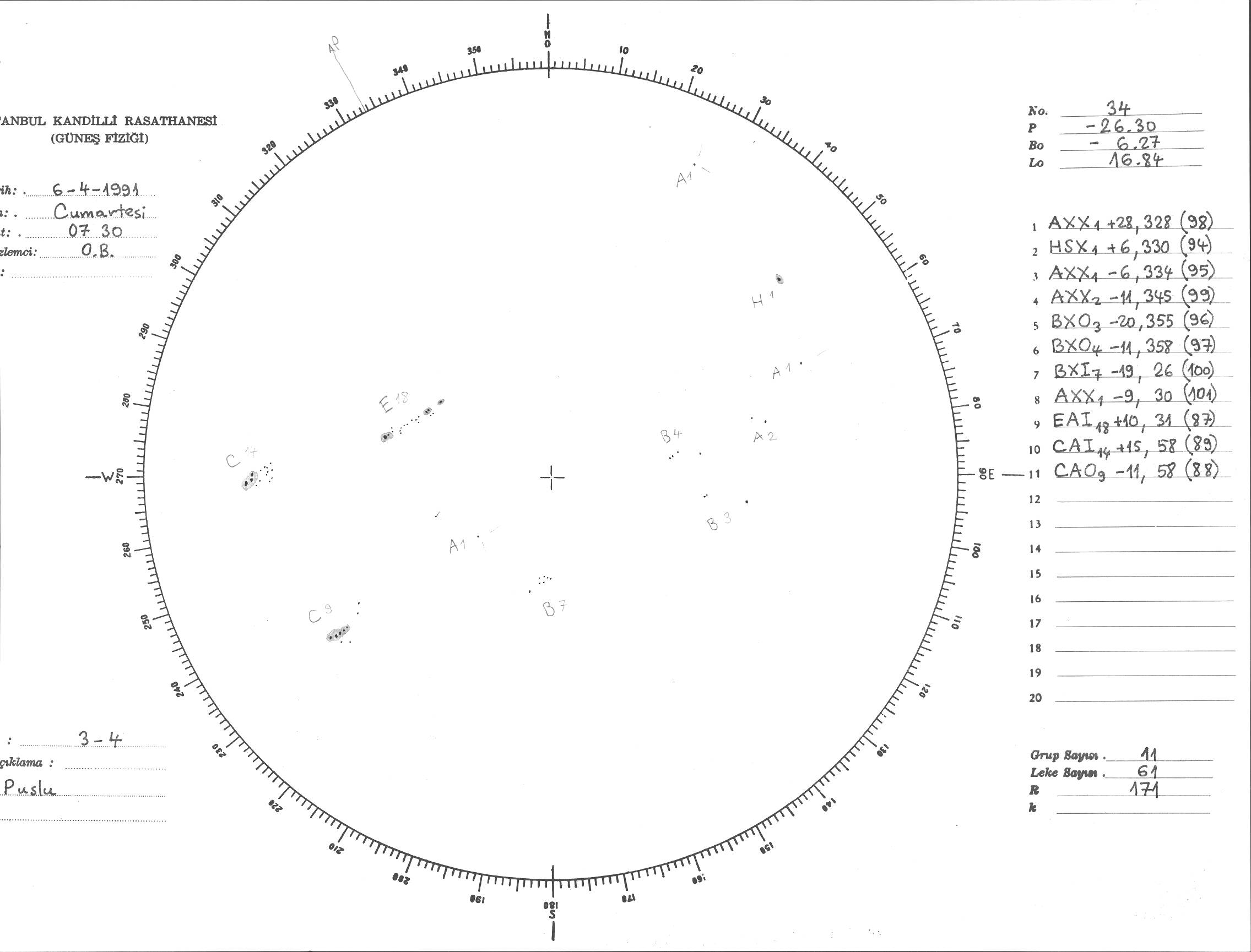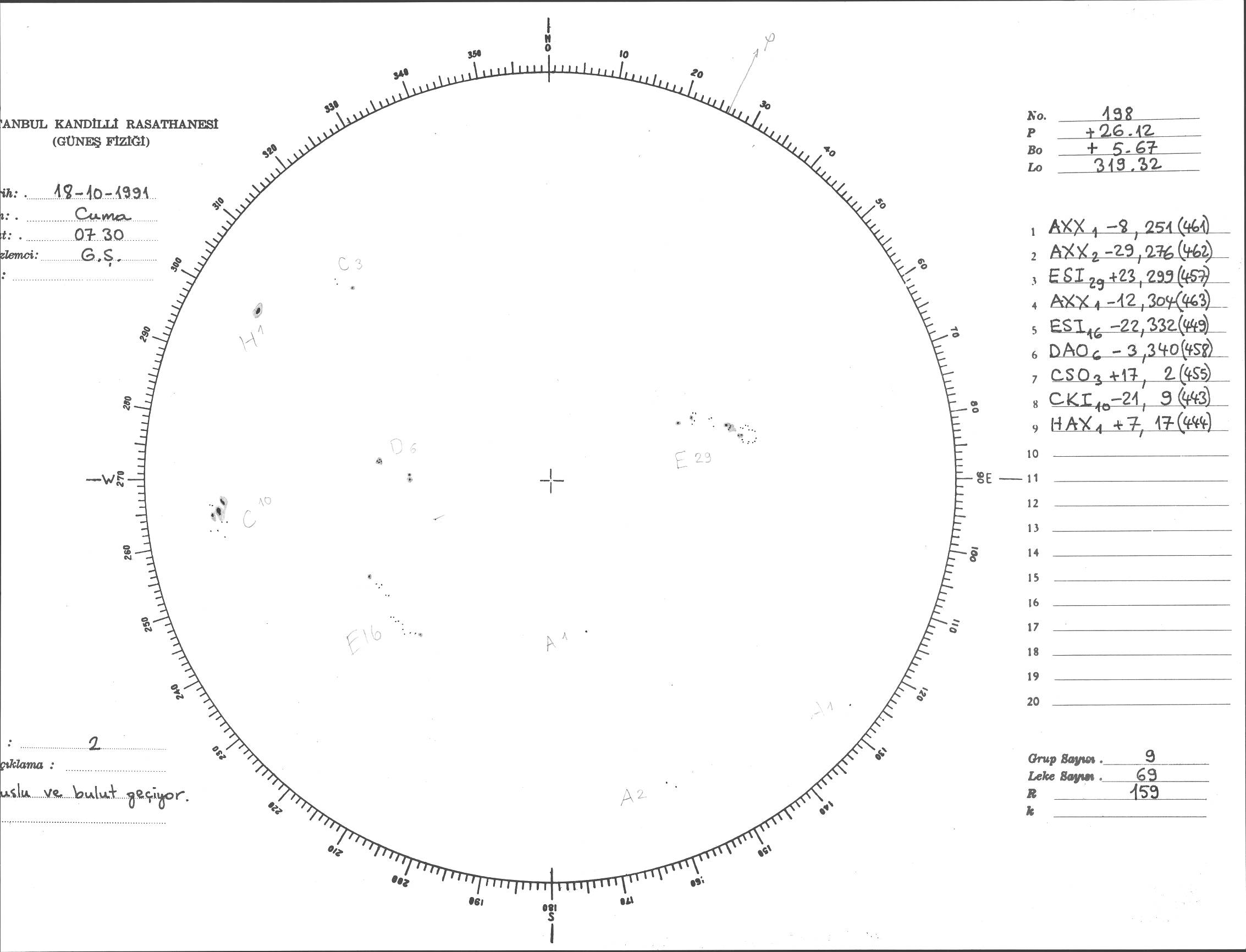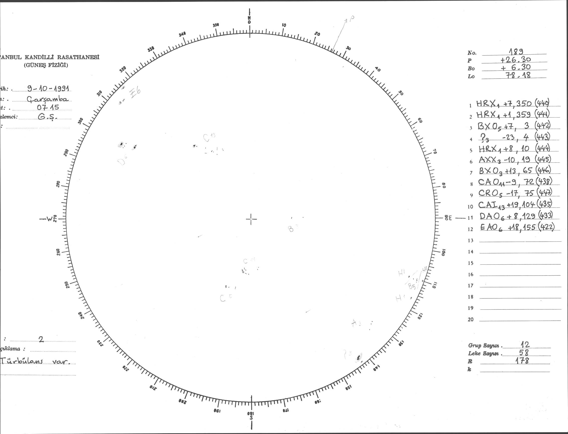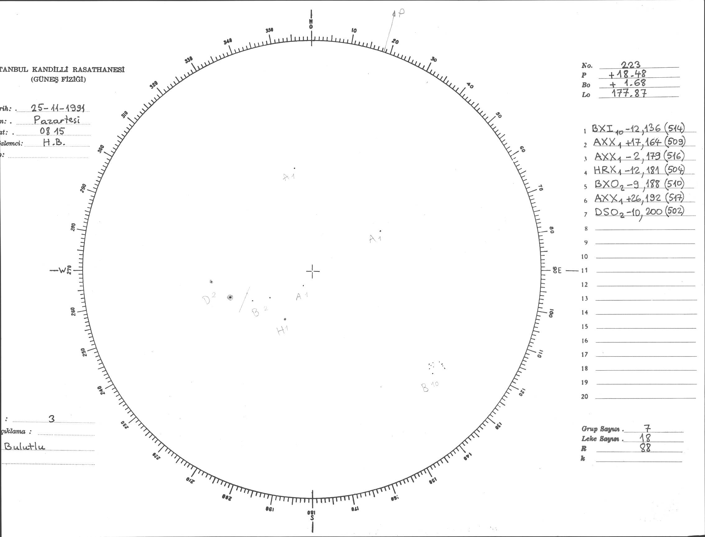 Güneş Lekesi Çizimleri / Kandilli Sunspot Drawings