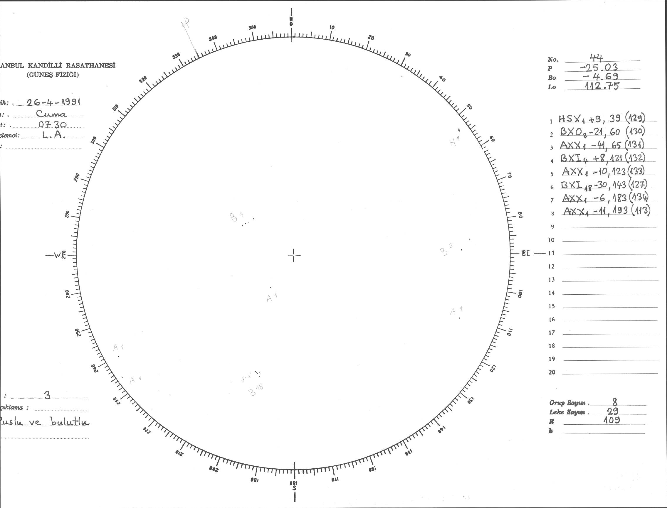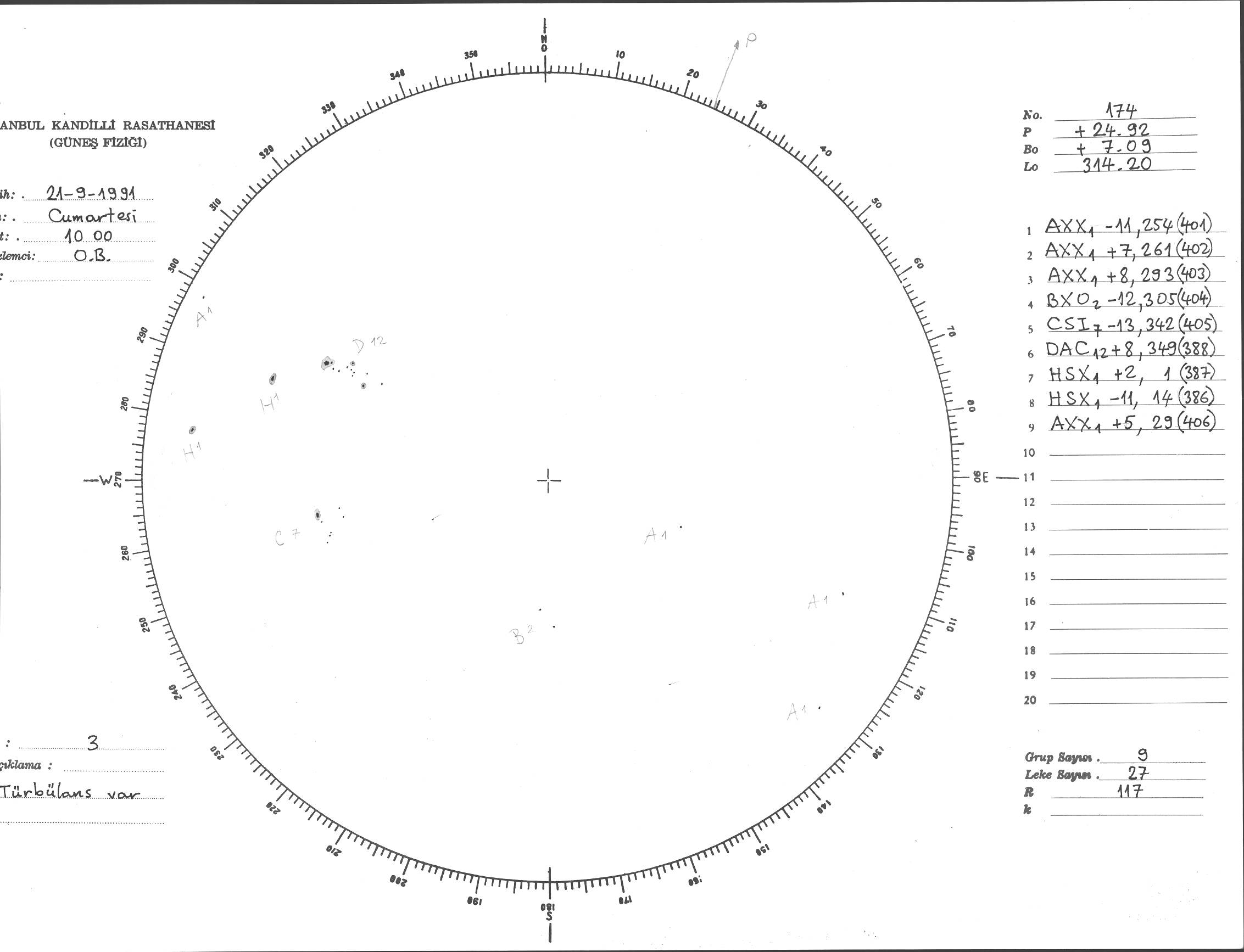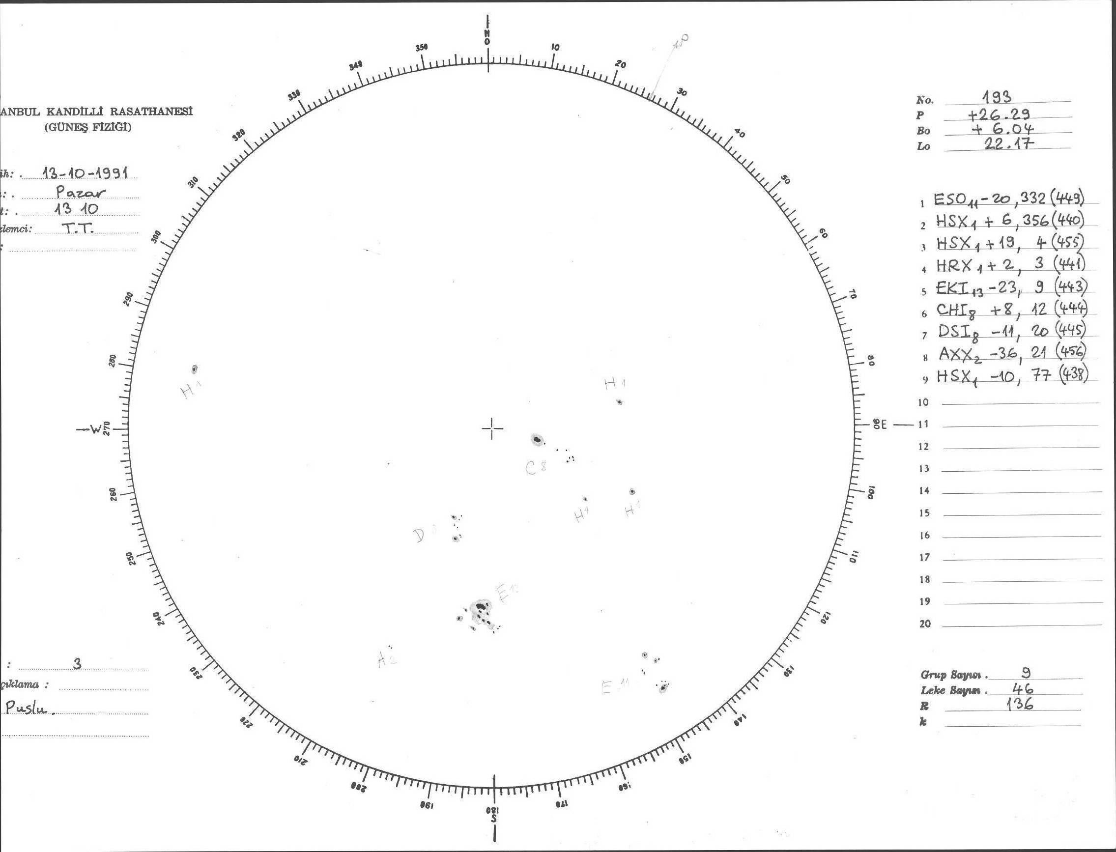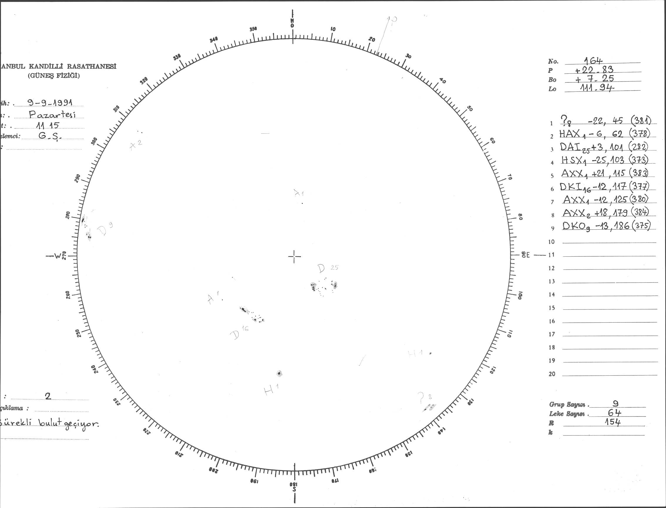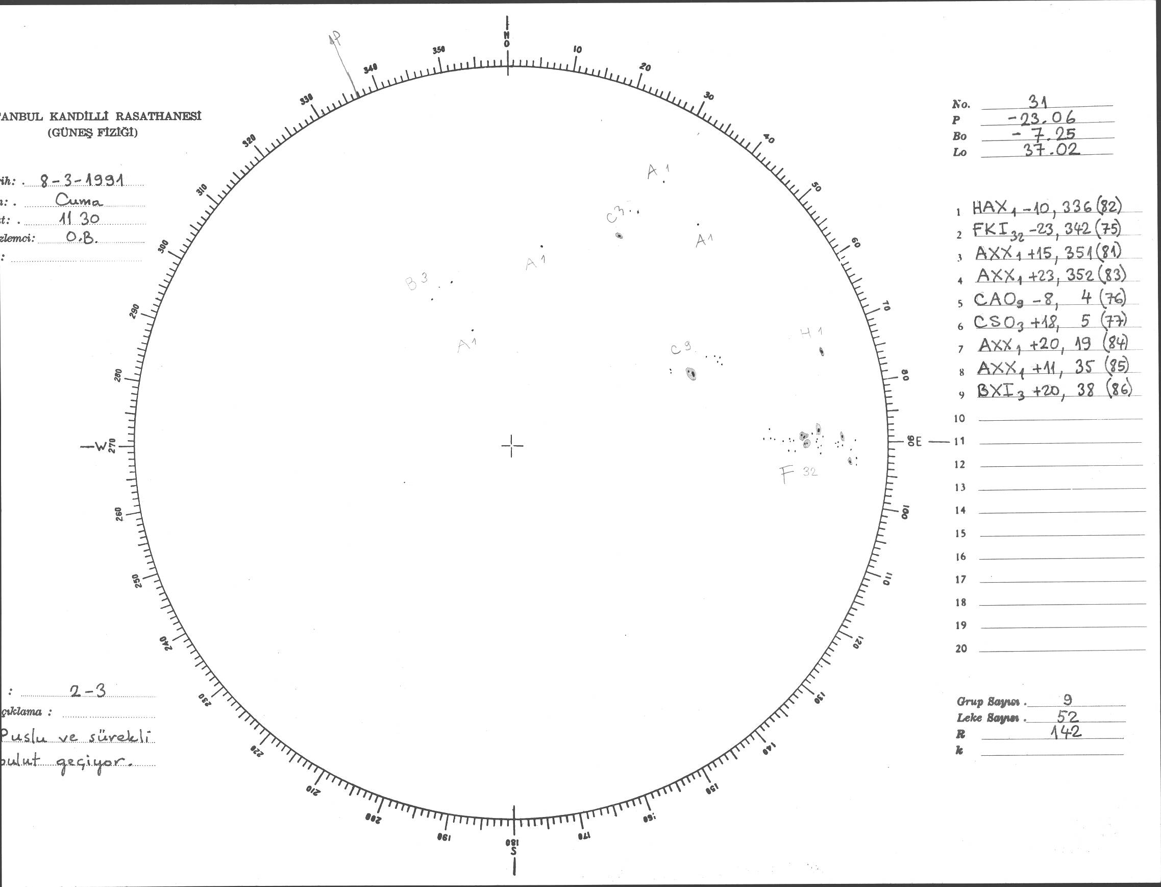 Güneş Lekesi Çizimleri / Kandilli Sunspot Drawings