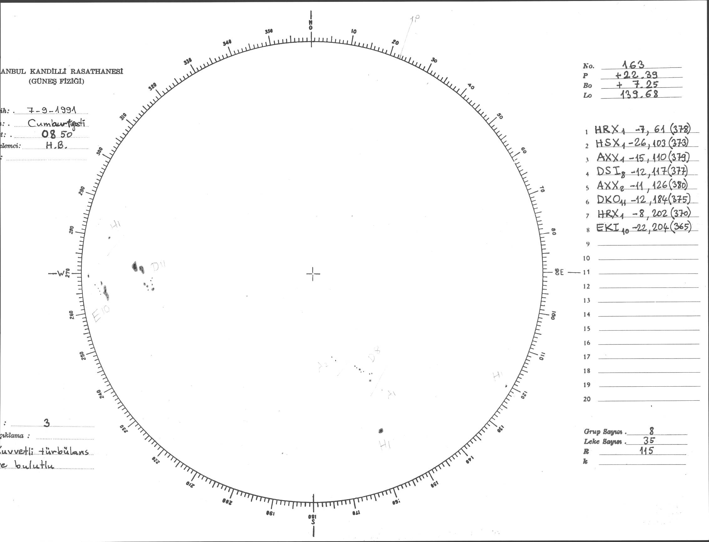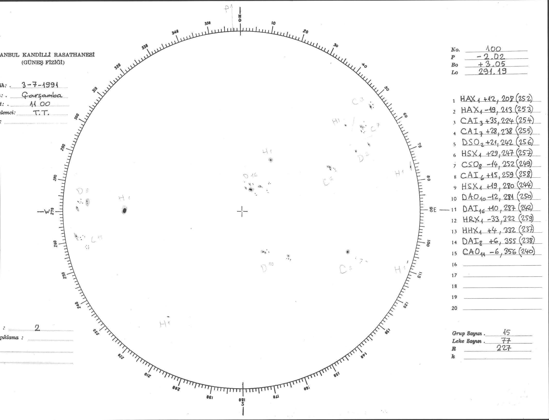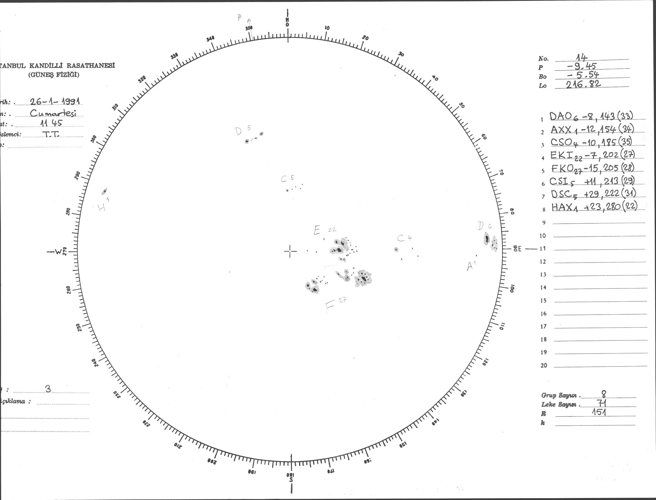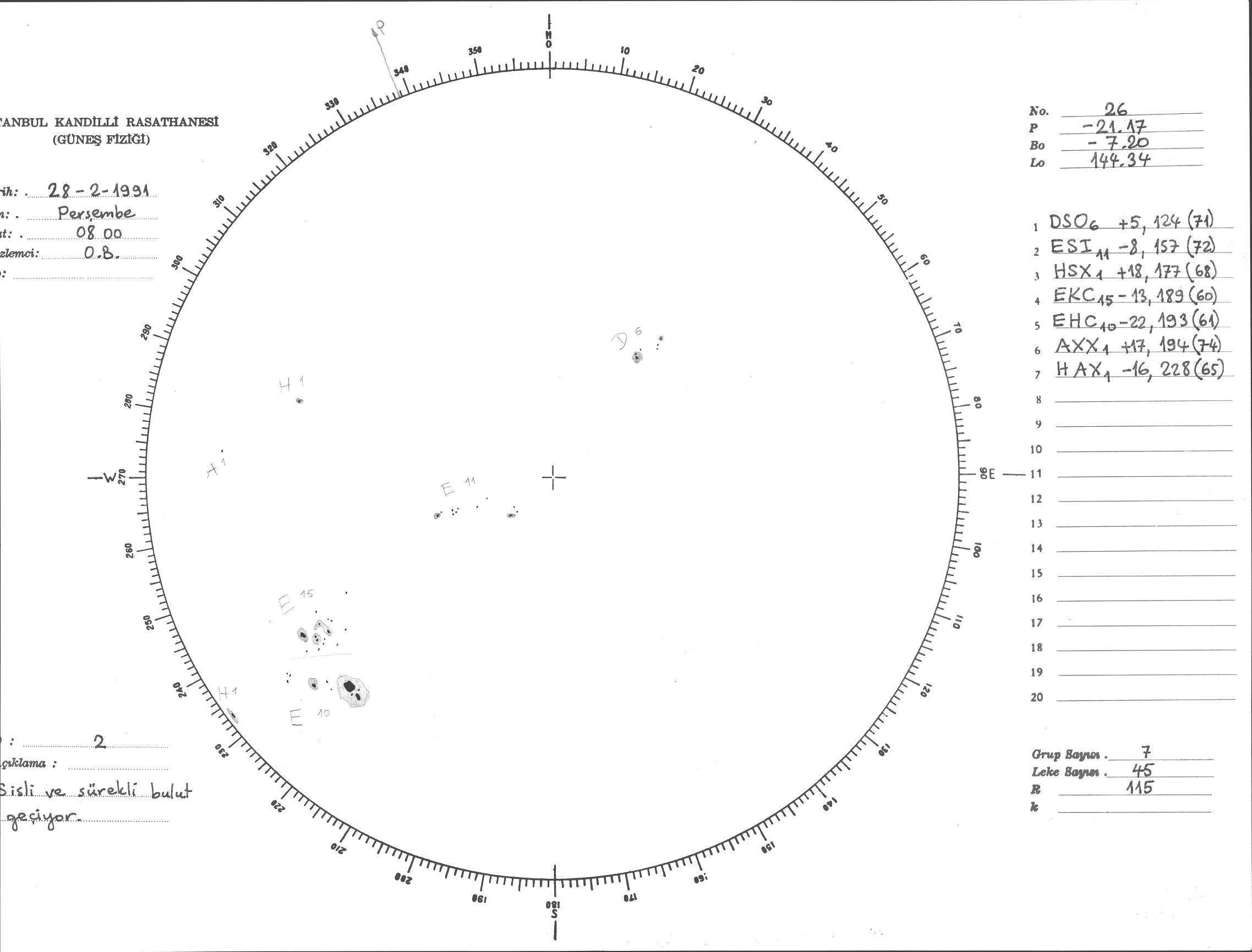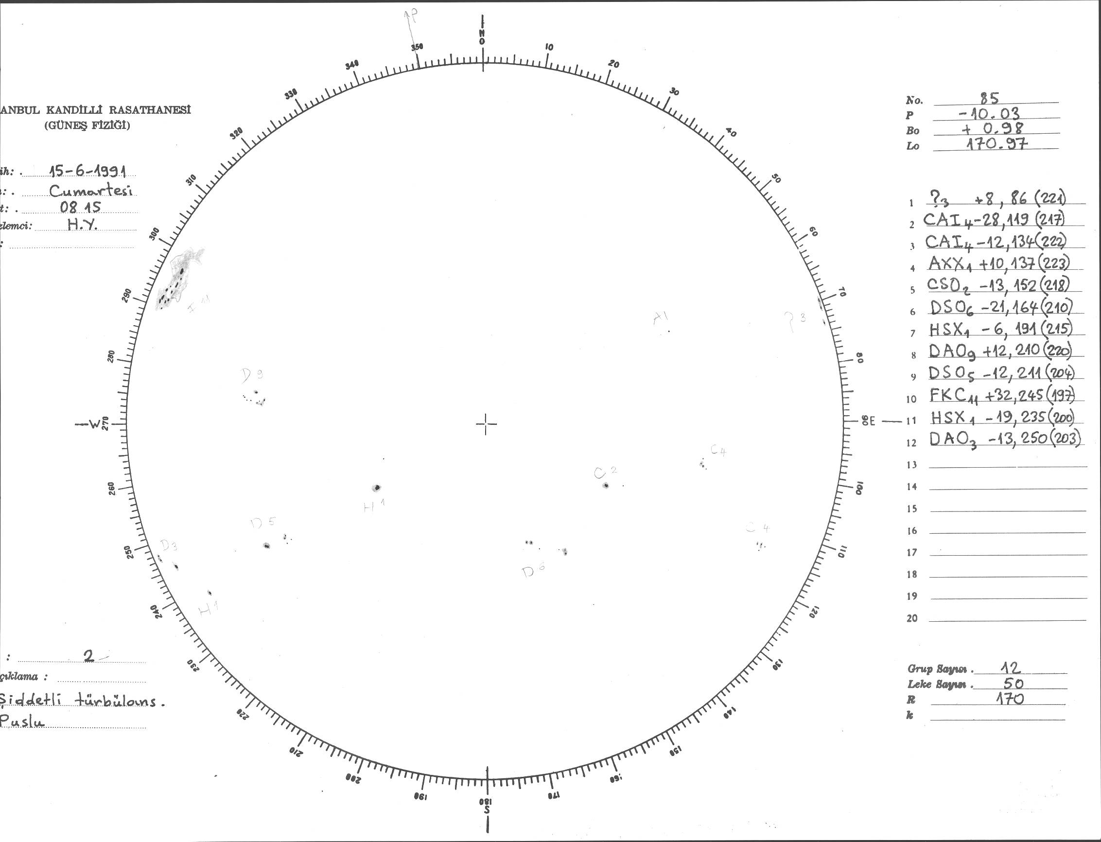 Güneş Lekesi Çizimleri / Kandilli Sunspot Drawings
