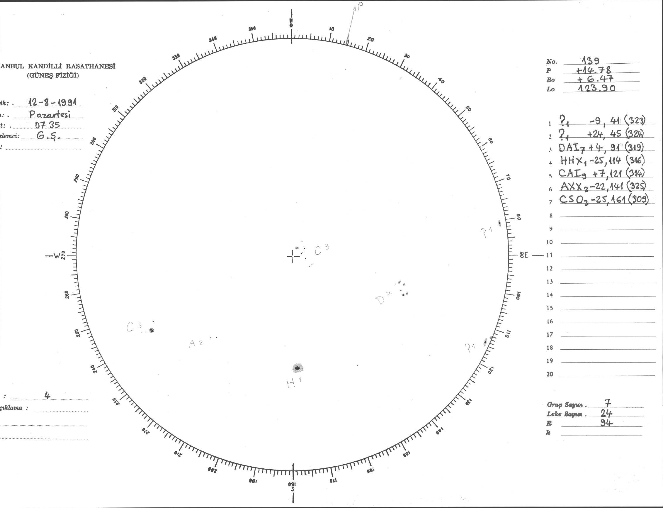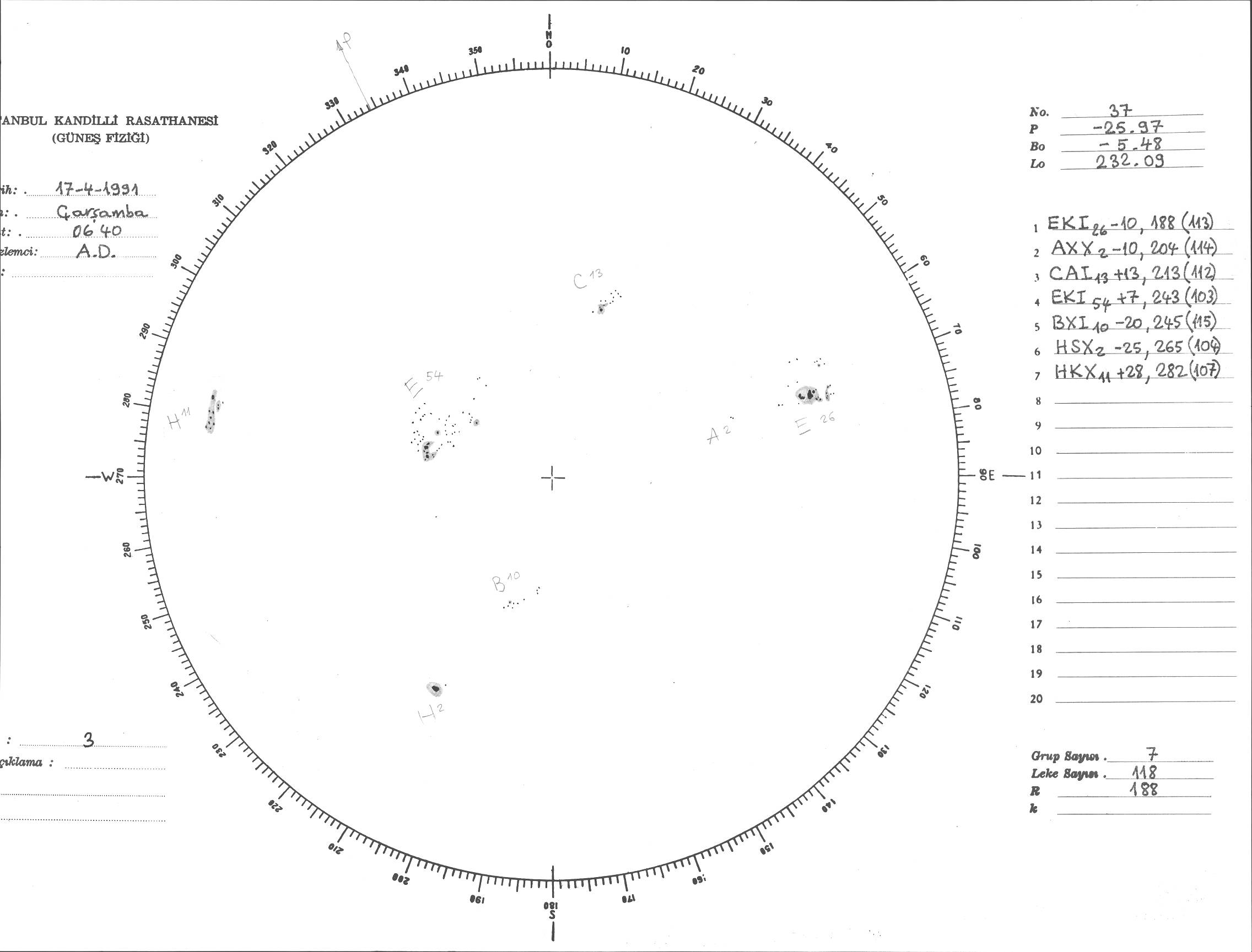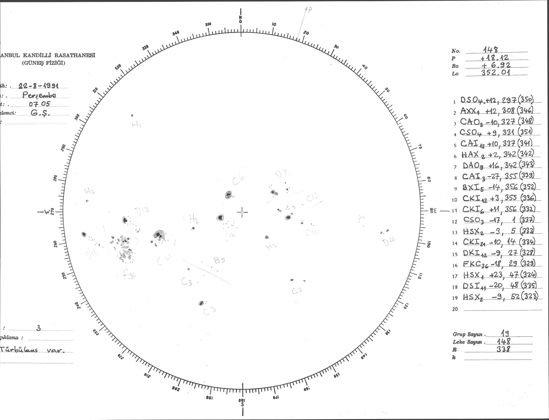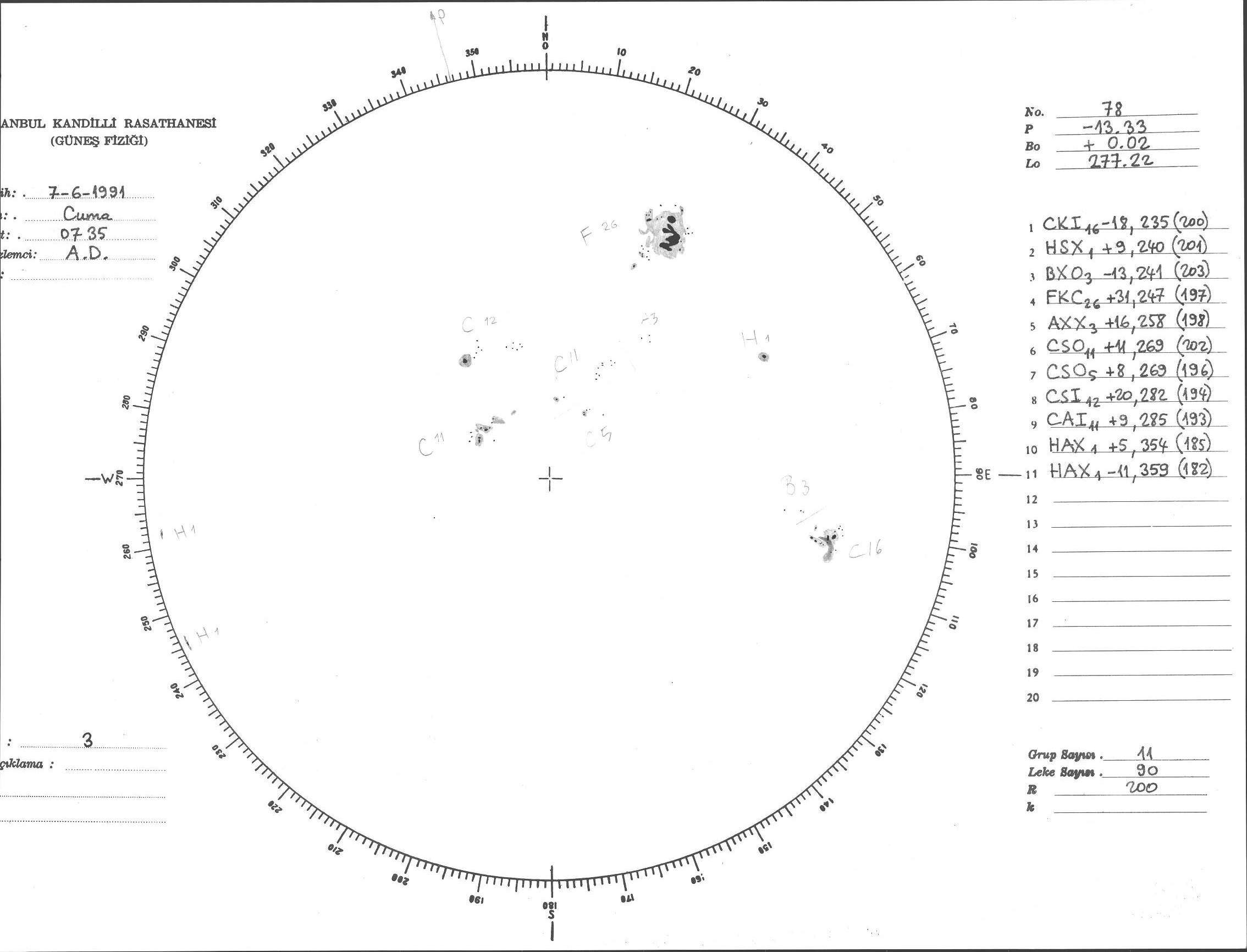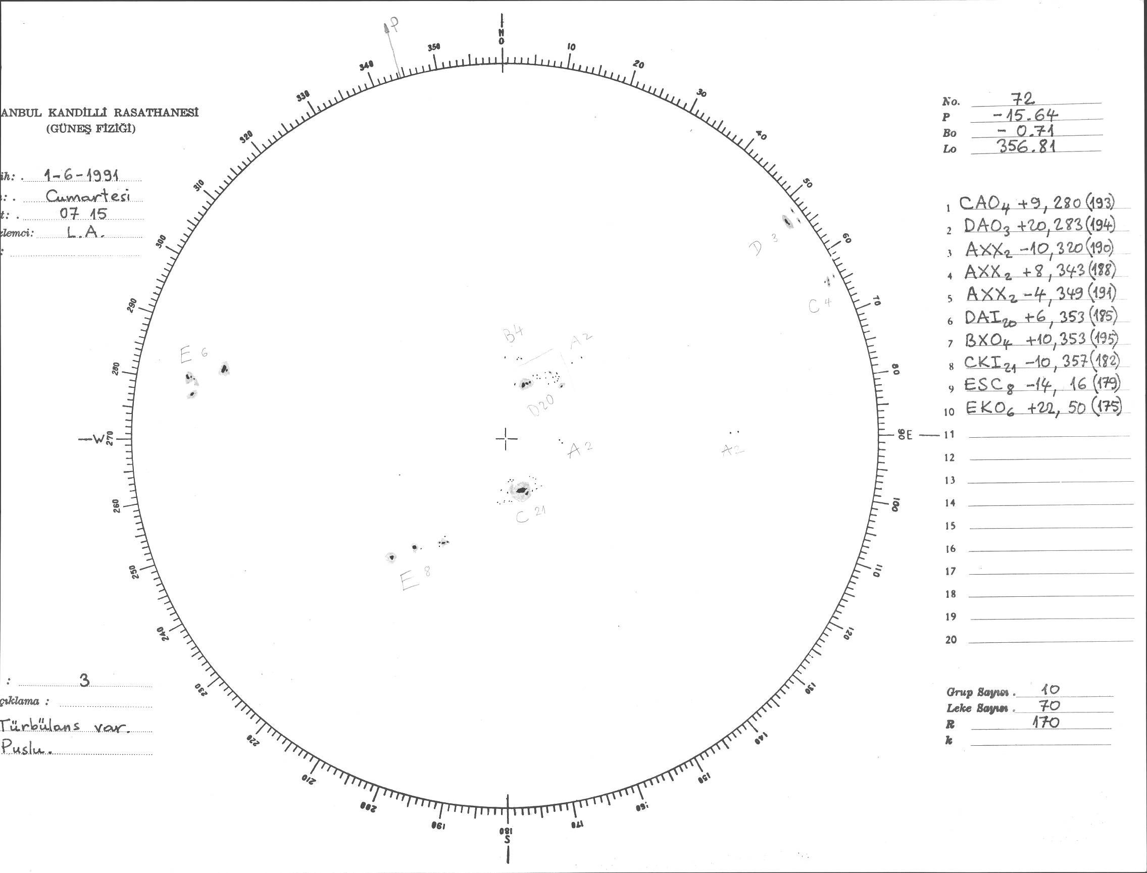 Güneş Lekesi Çizimleri / Kandilli Sunspot Drawings
