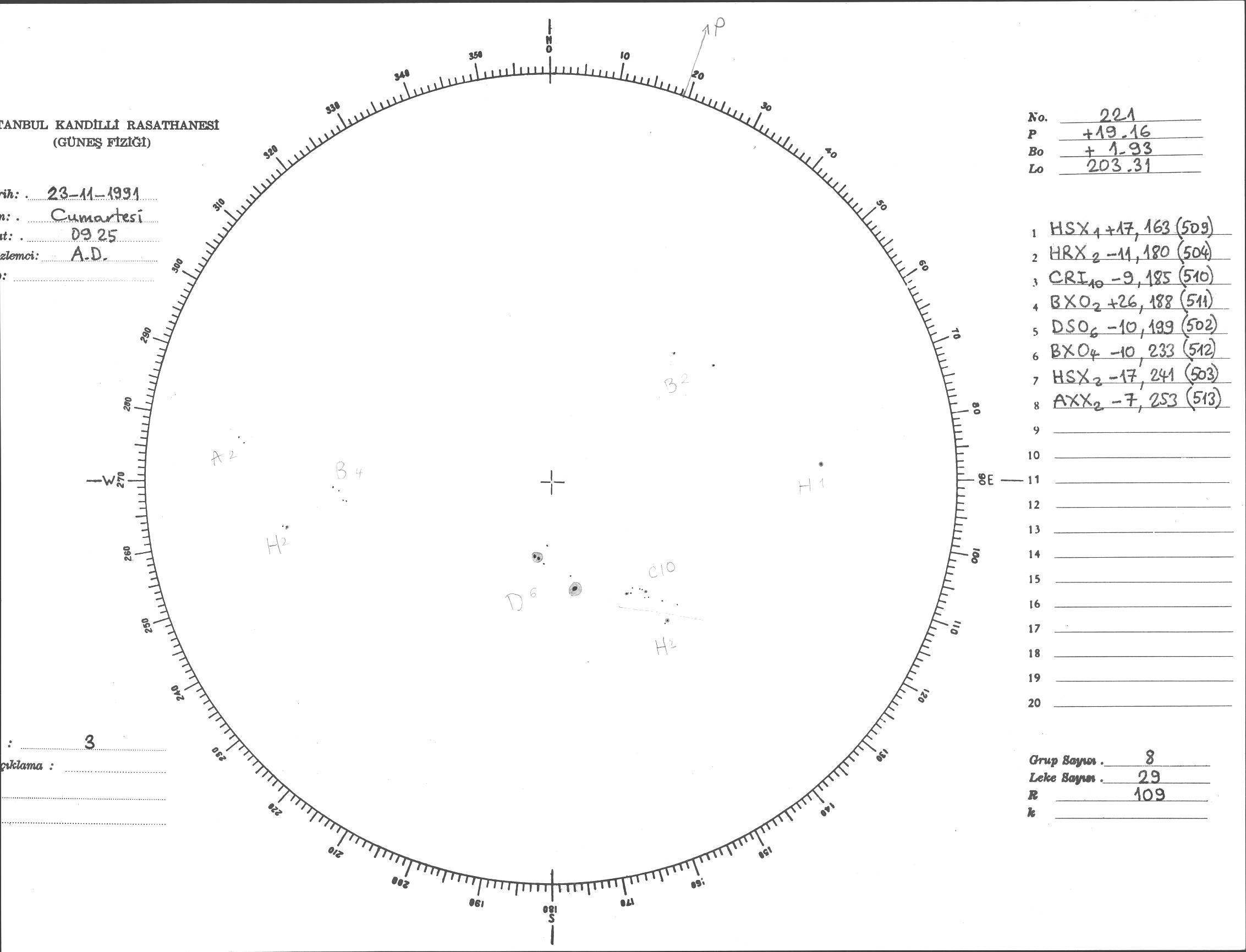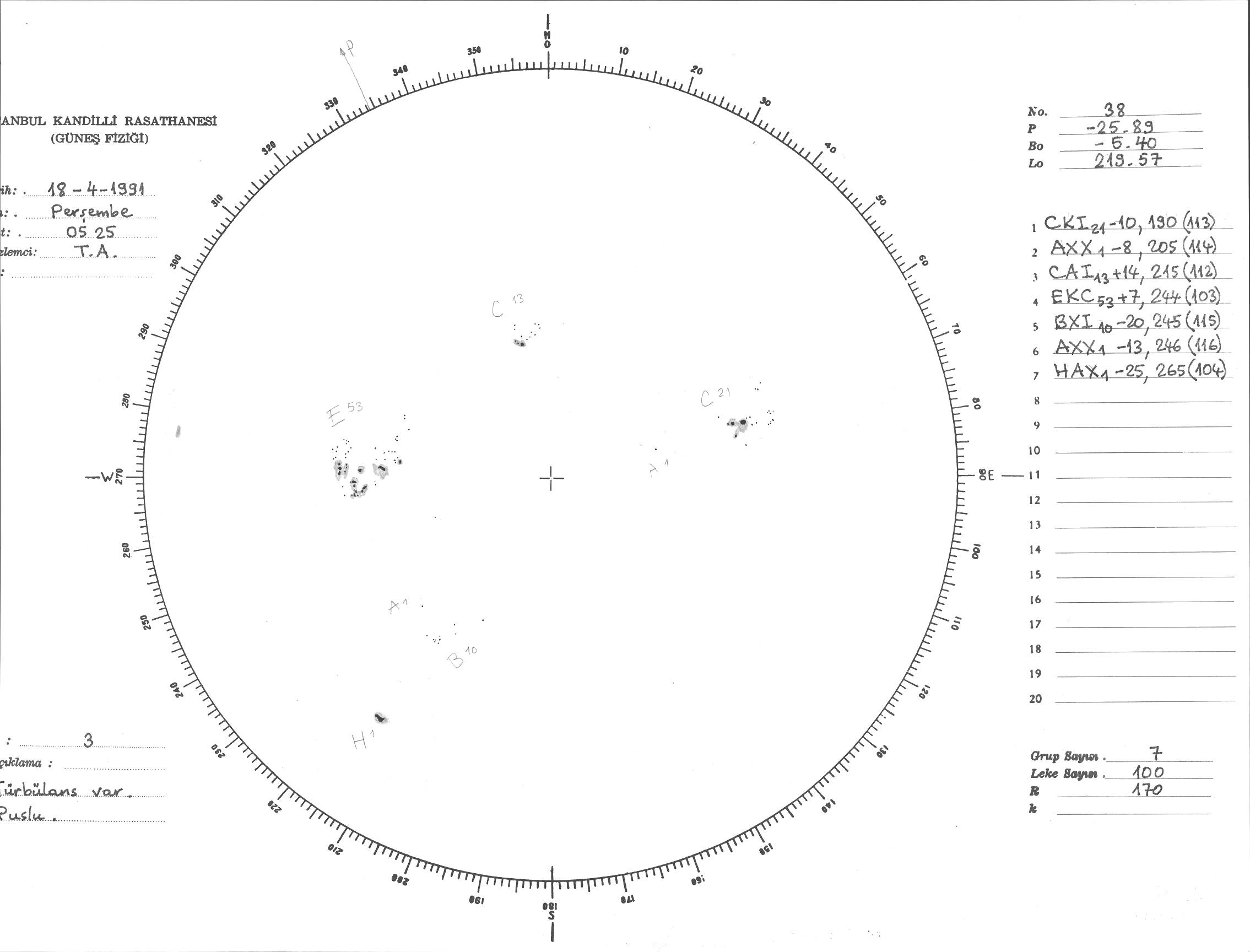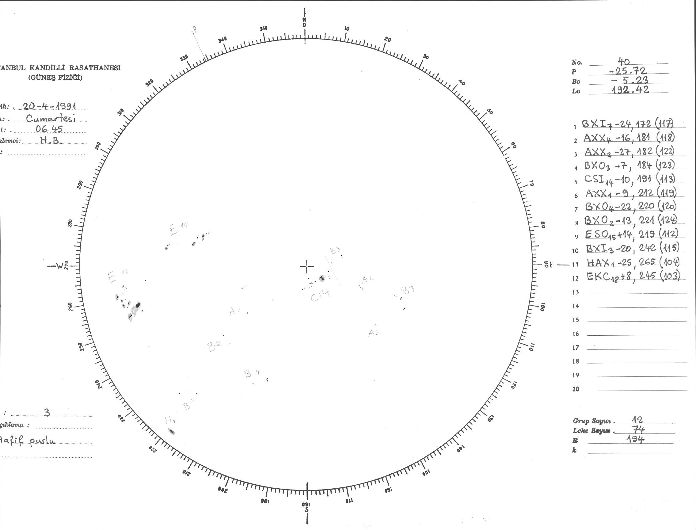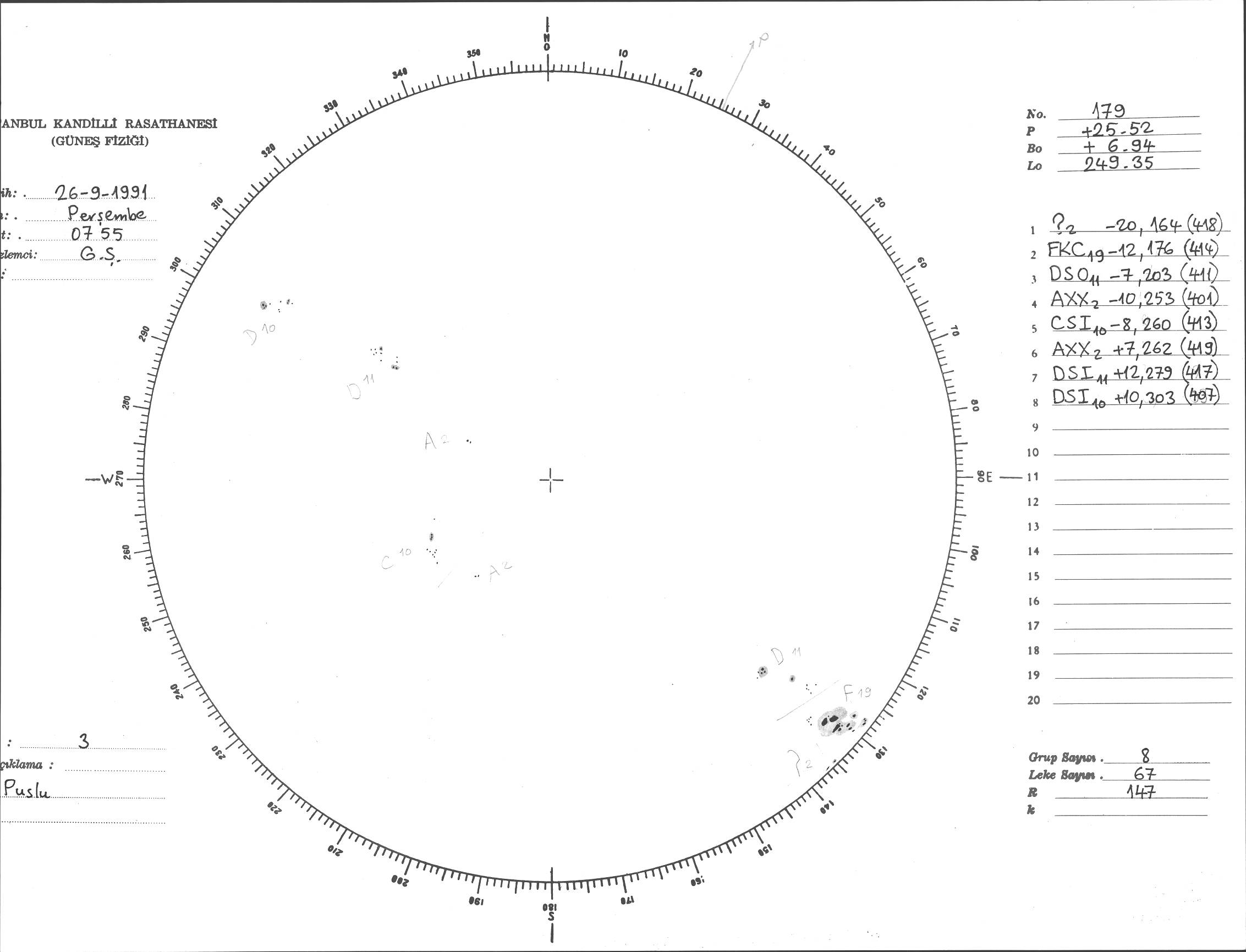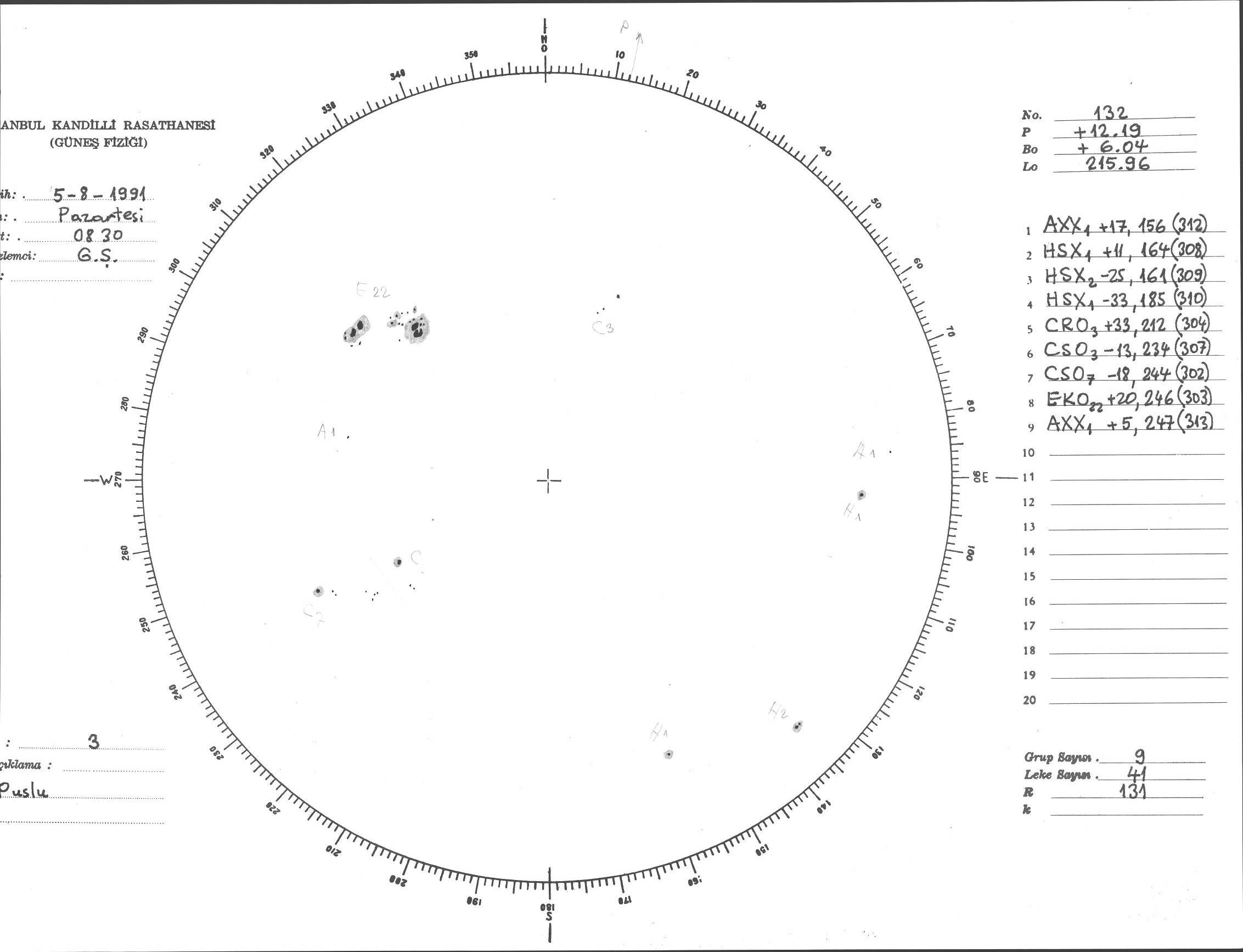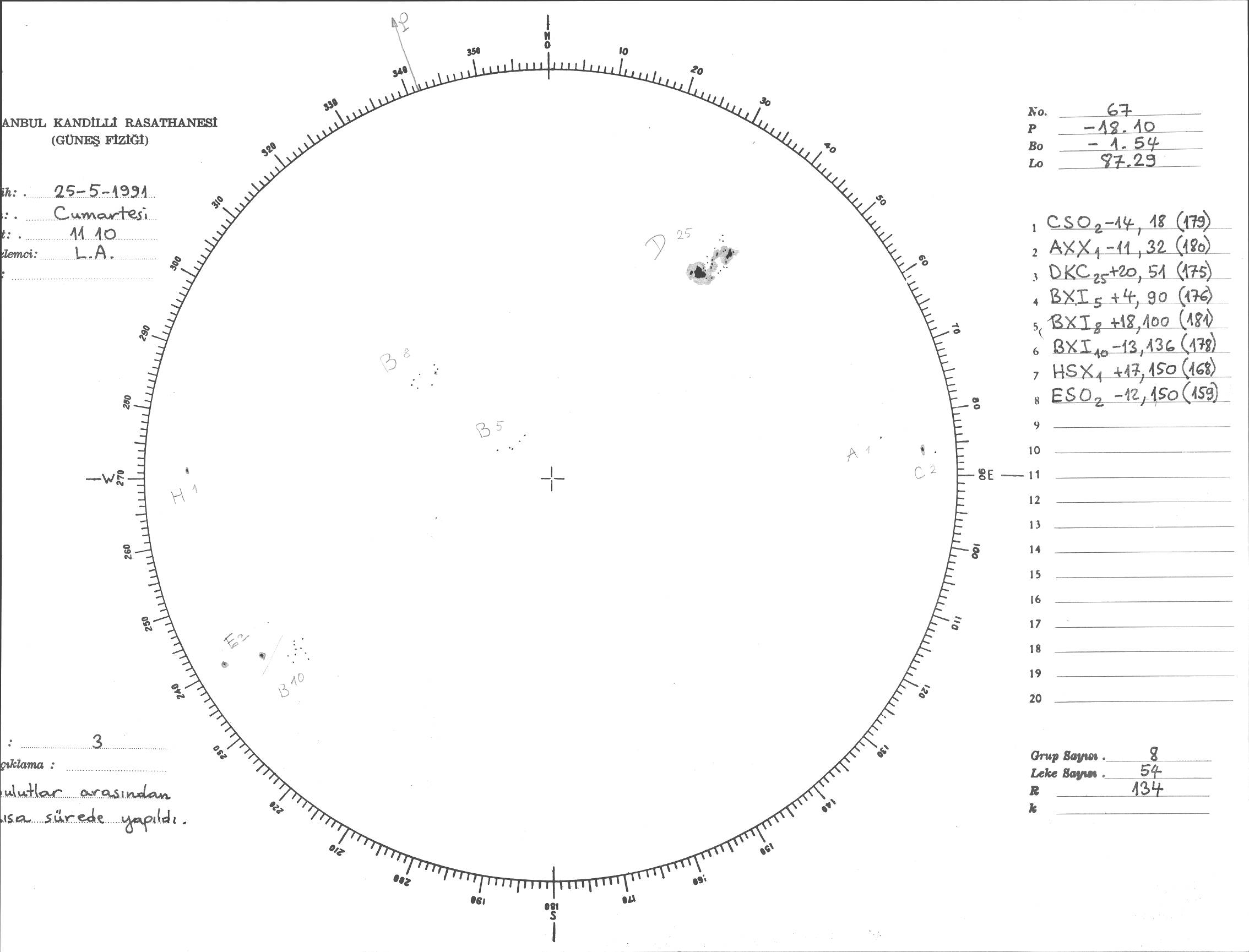 Güneş Lekesi Çizimleri / Kandilli Sunspot Drawings