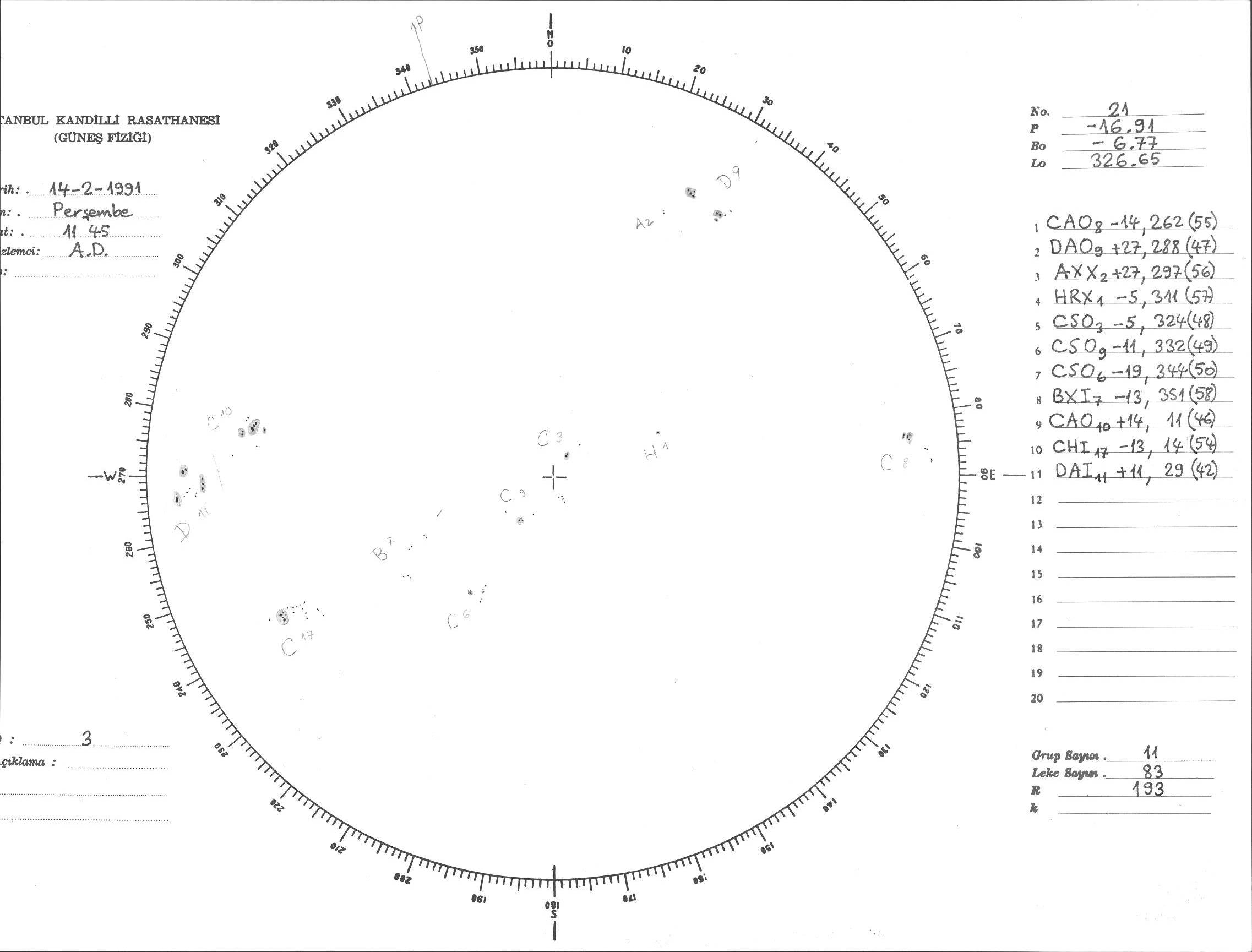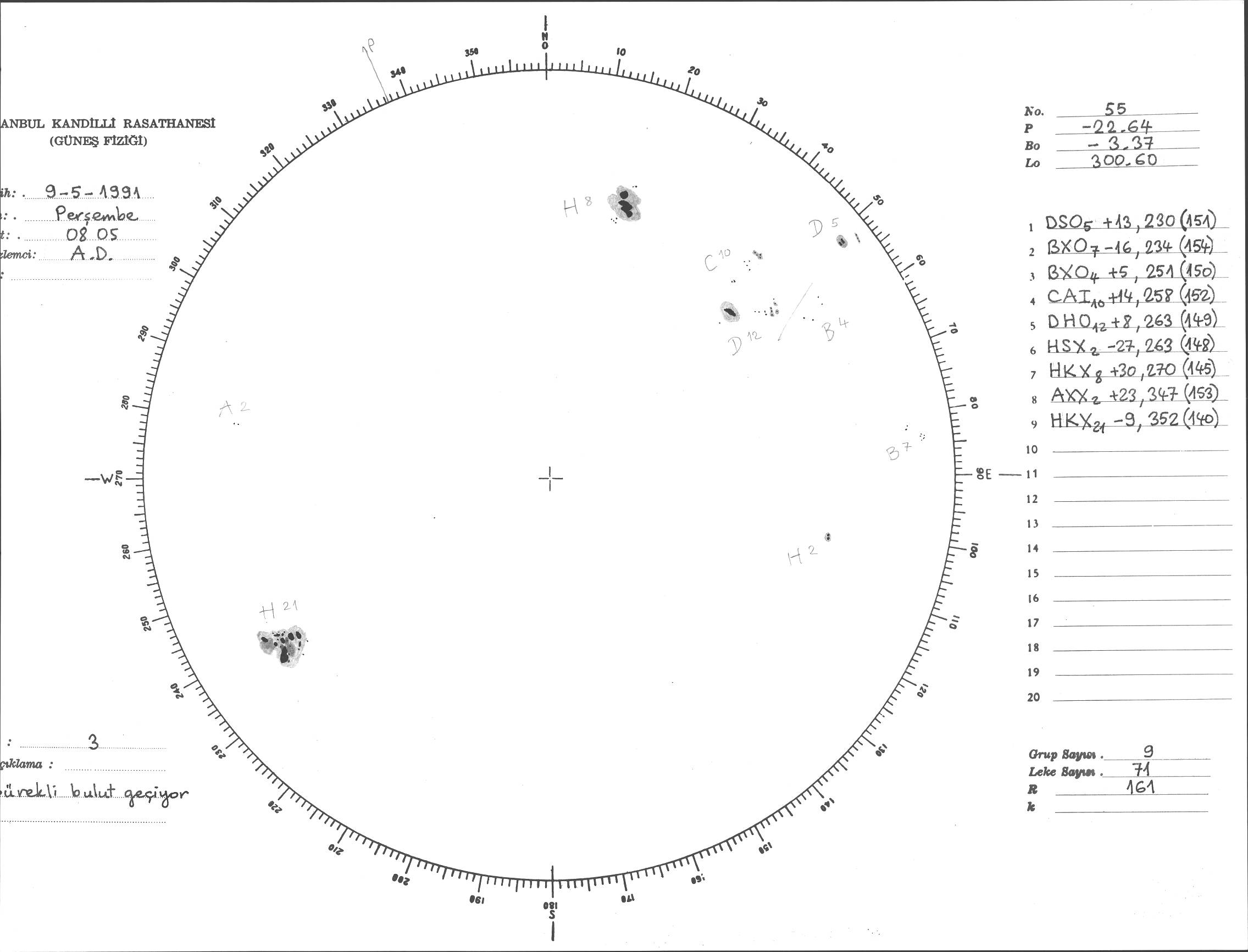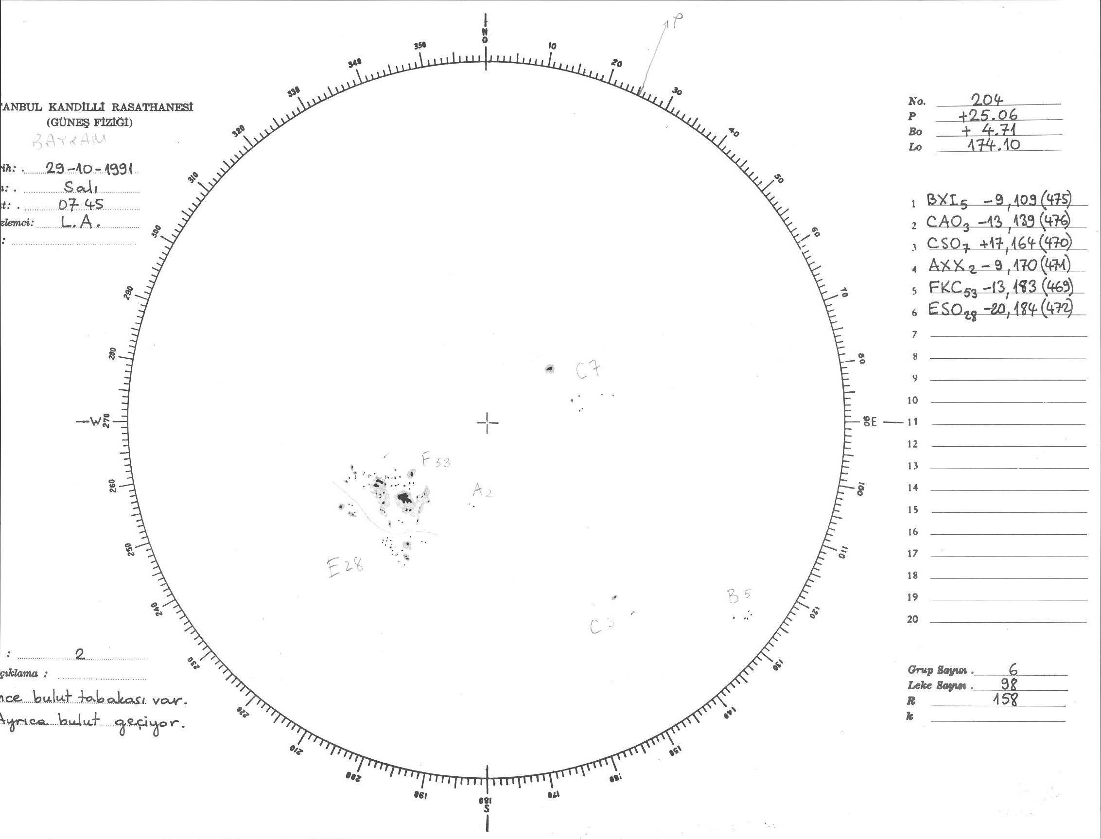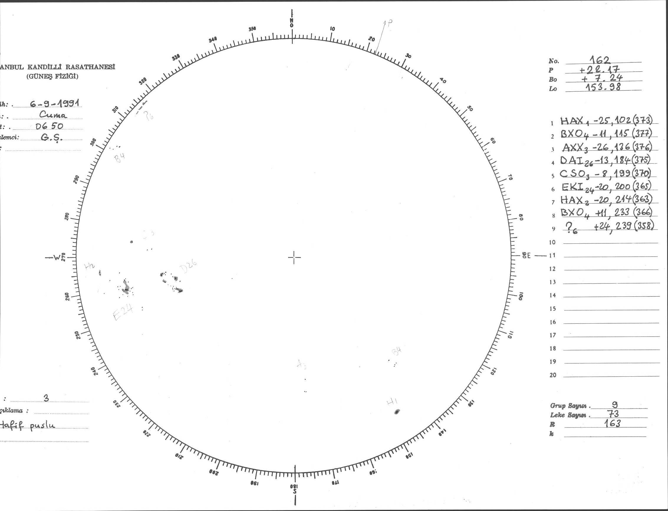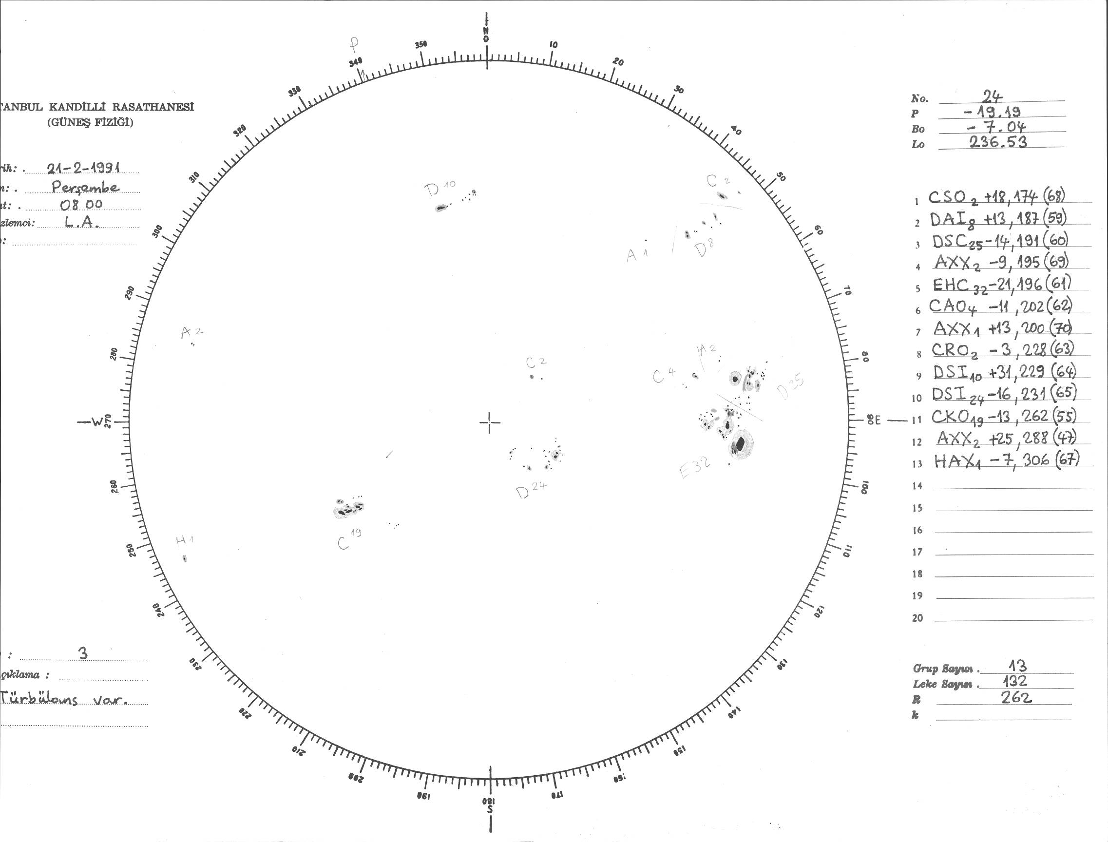 Güneş Lekesi Çizimleri / Kandilli Sunspot Drawings