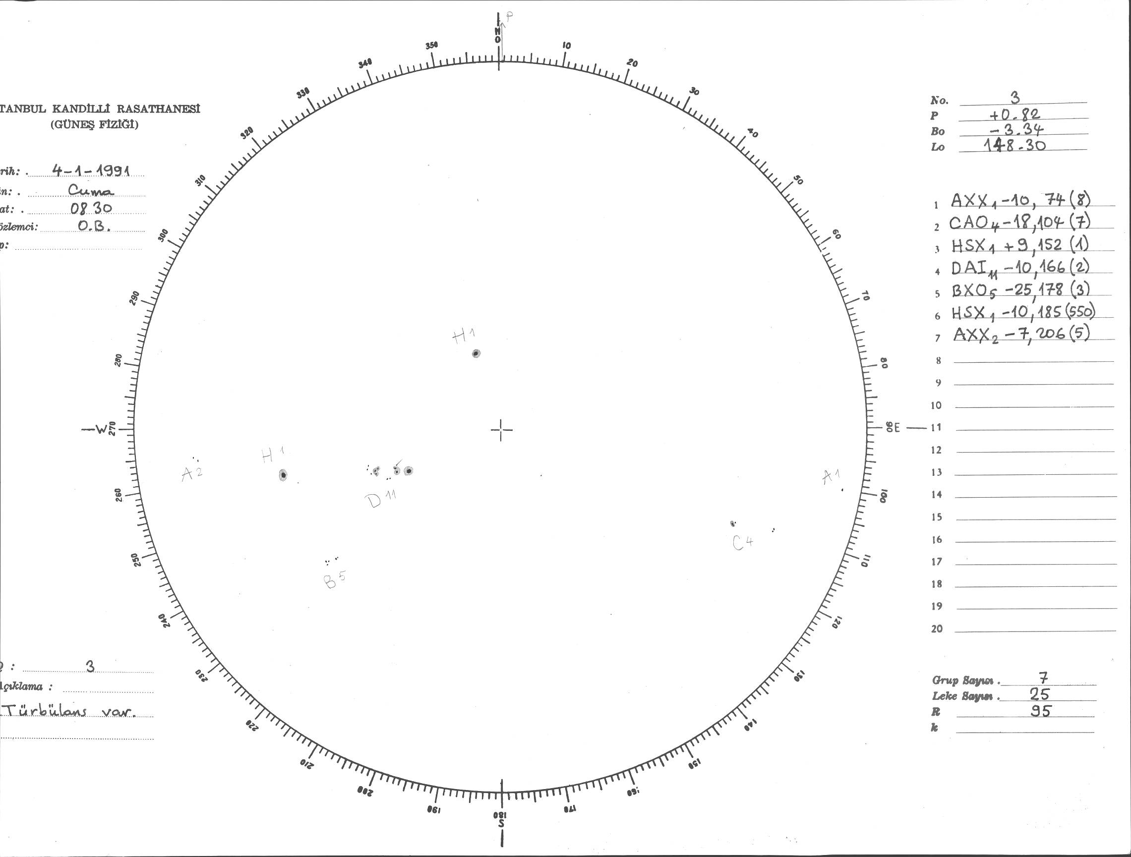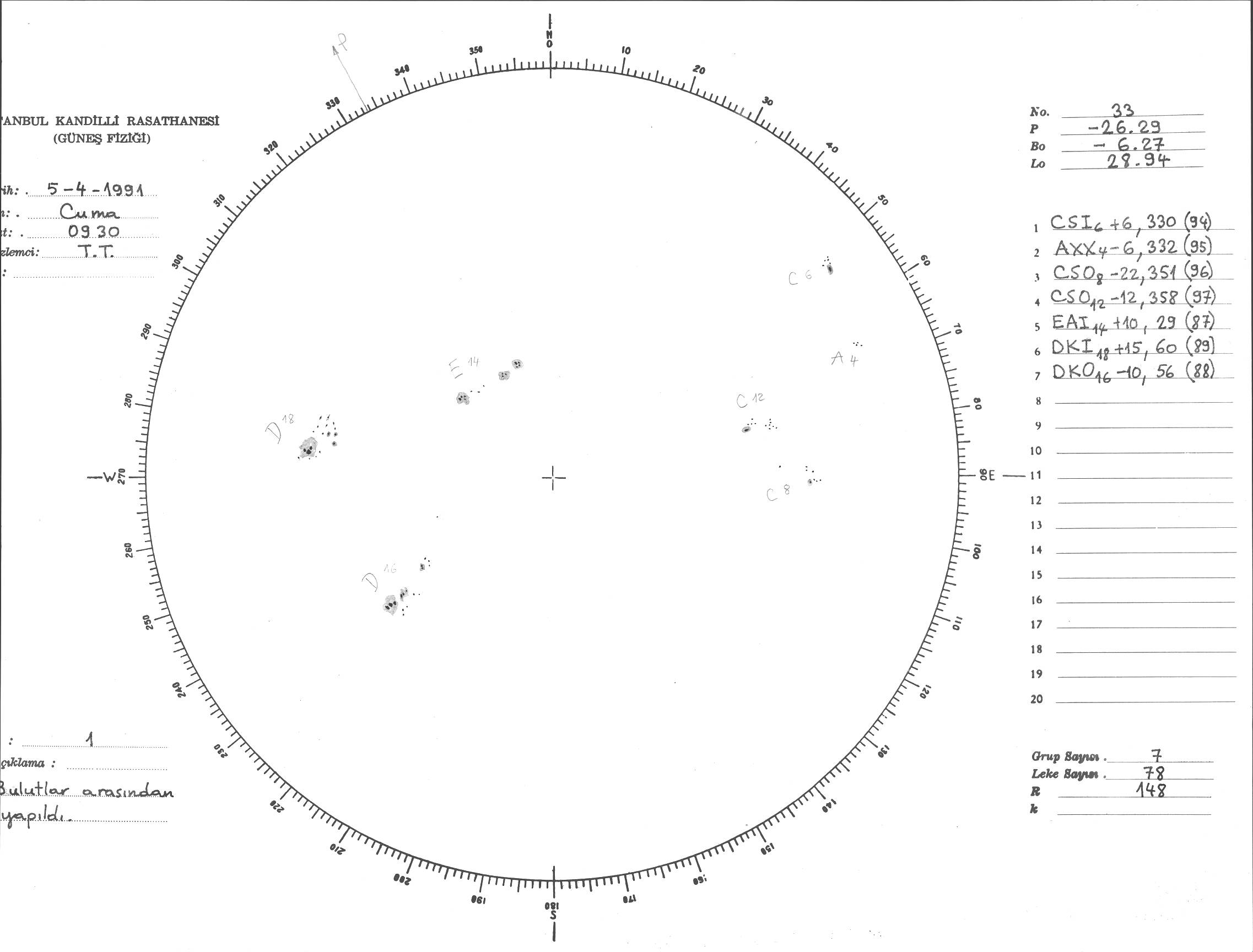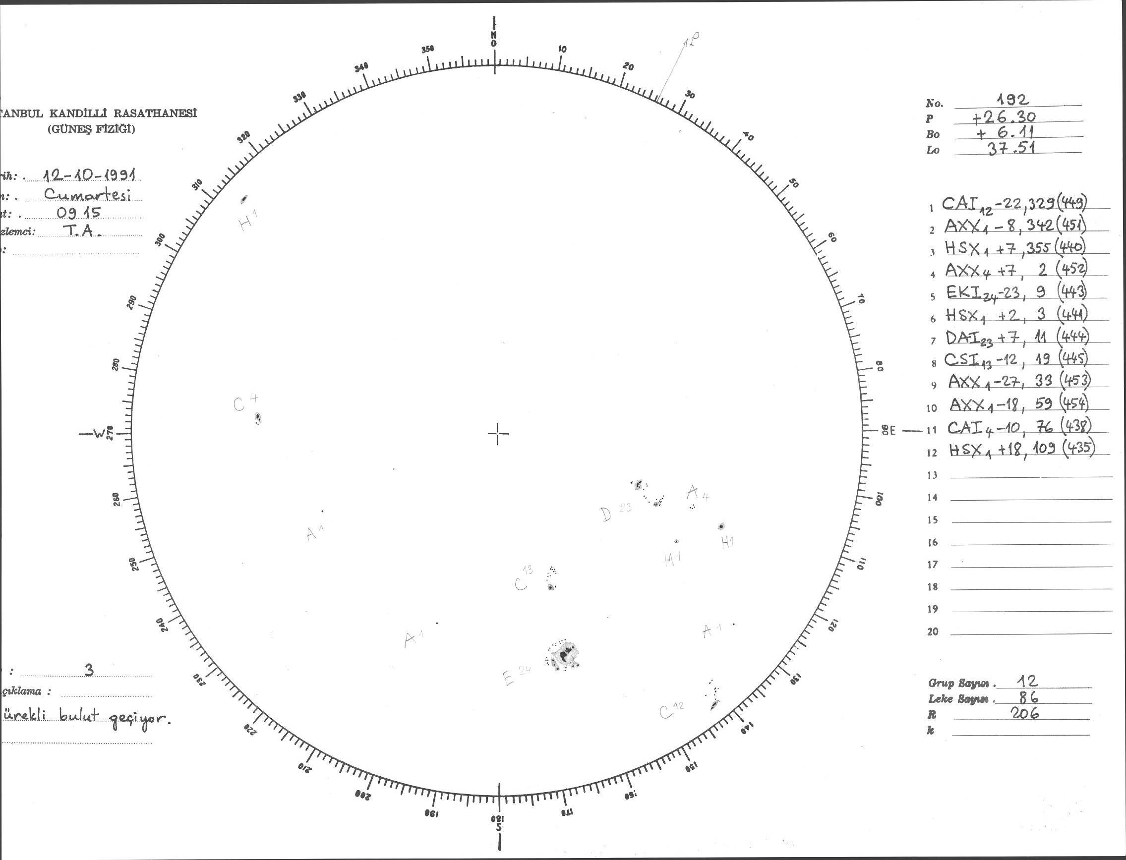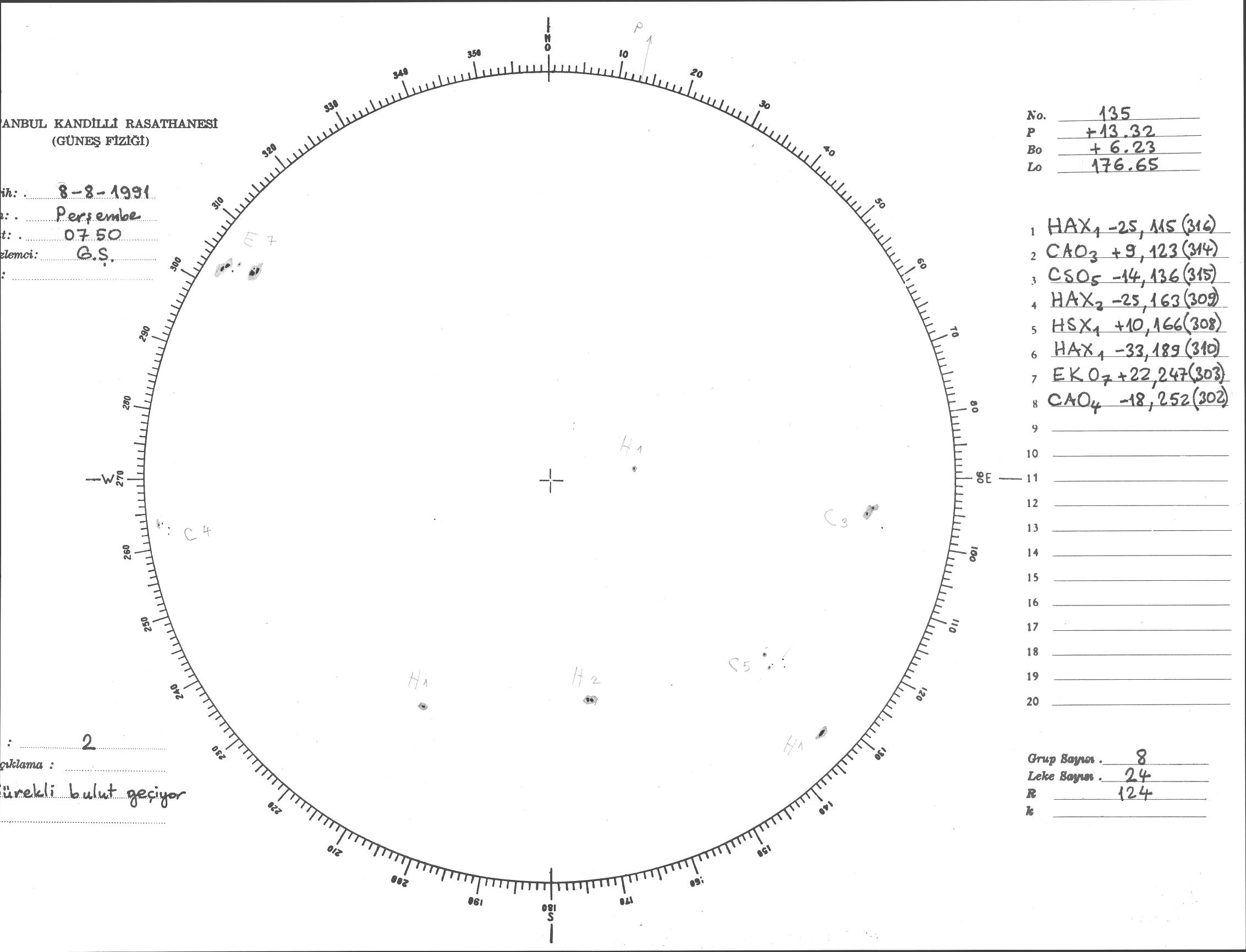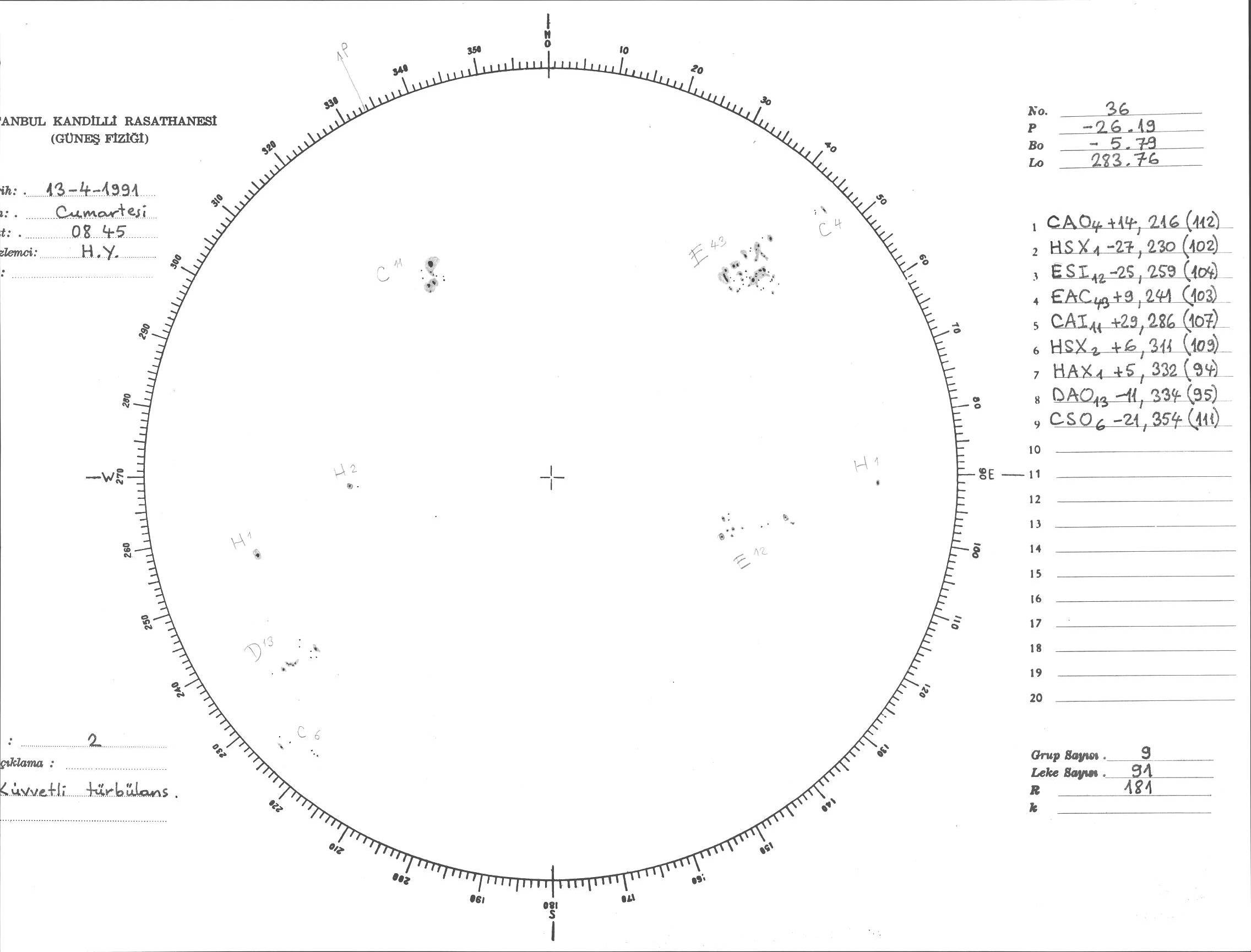 Güneş Lekesi Çizimleri / Kandilli Sunspot Drawings