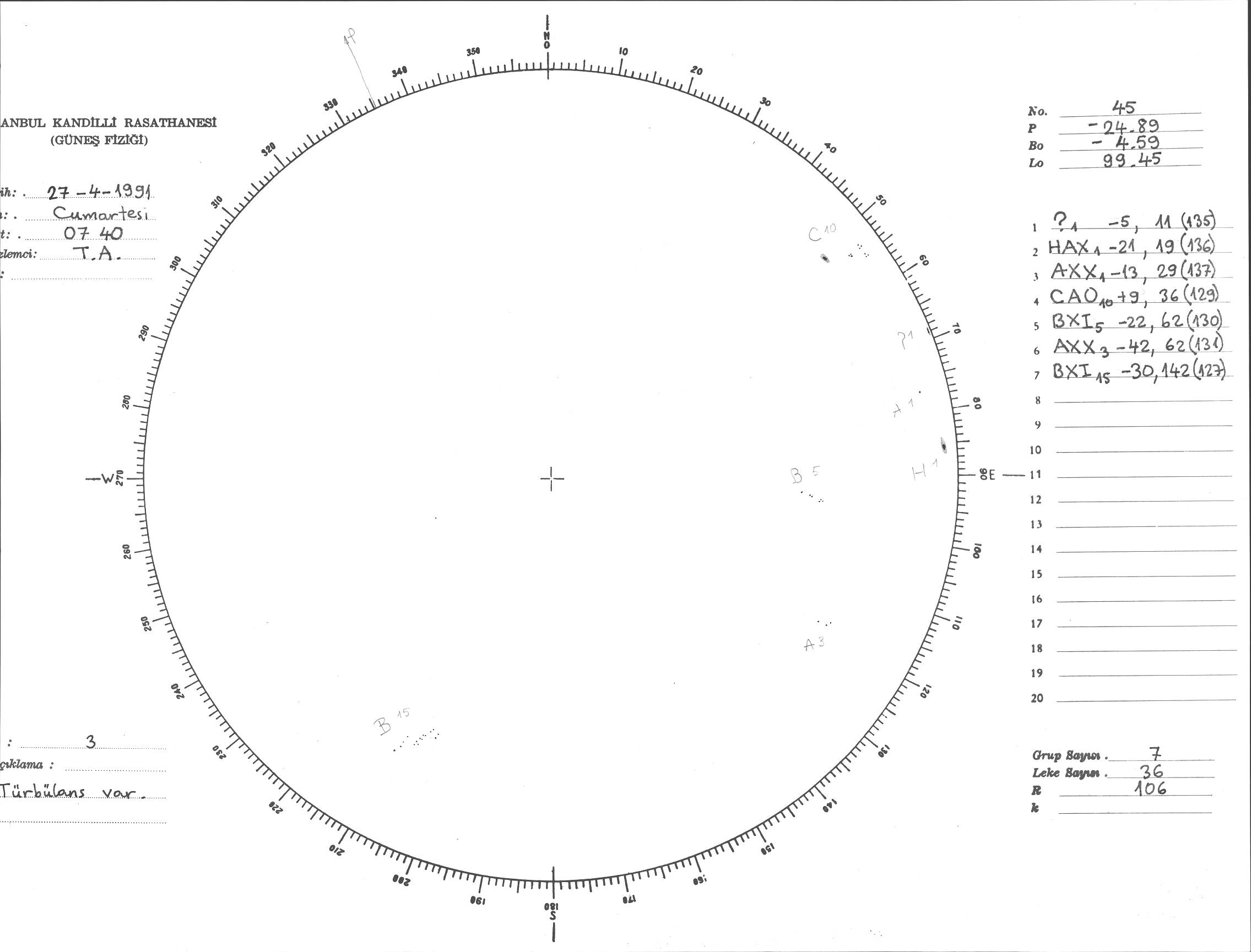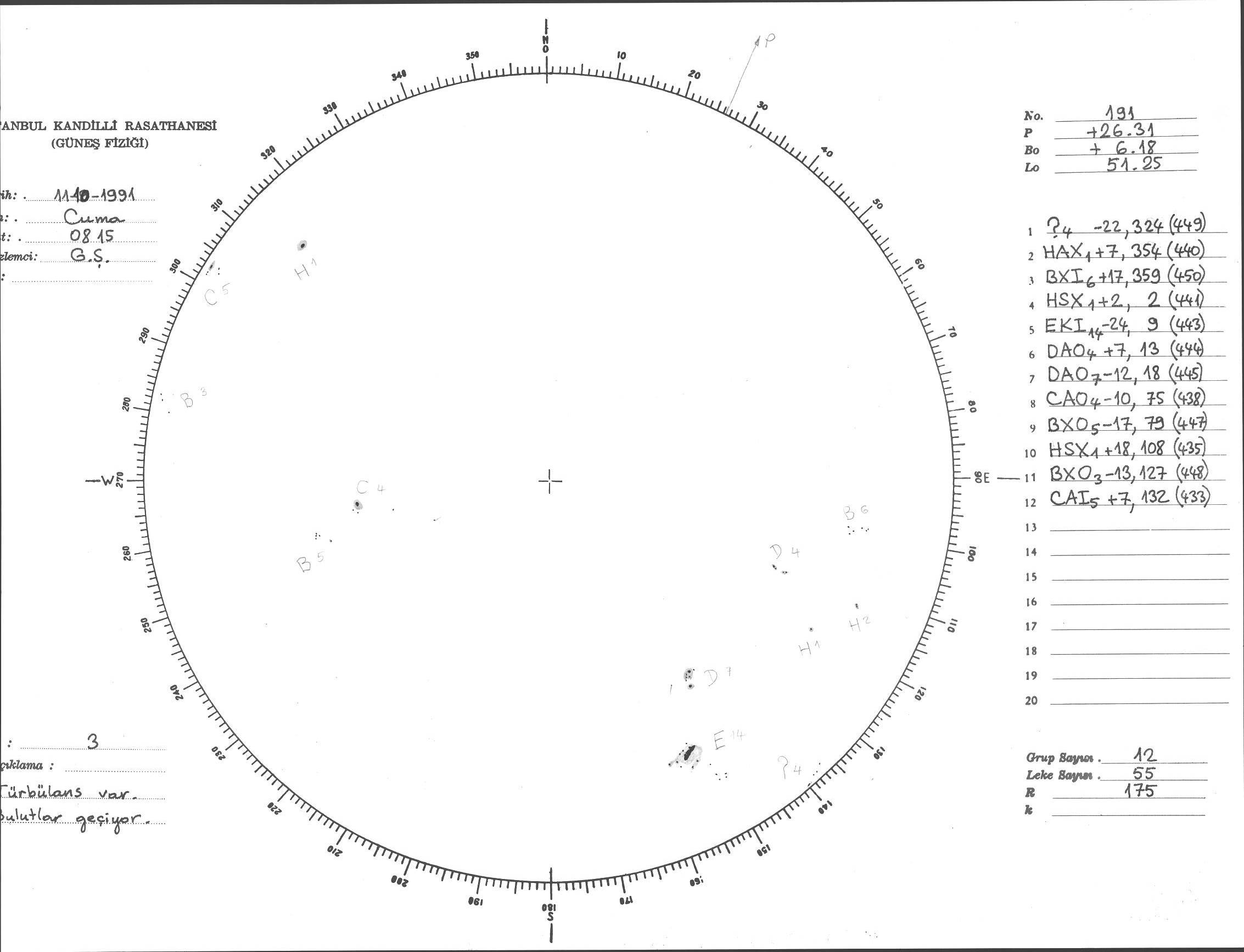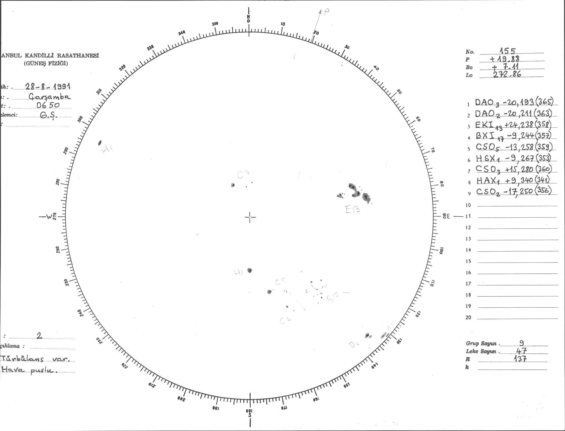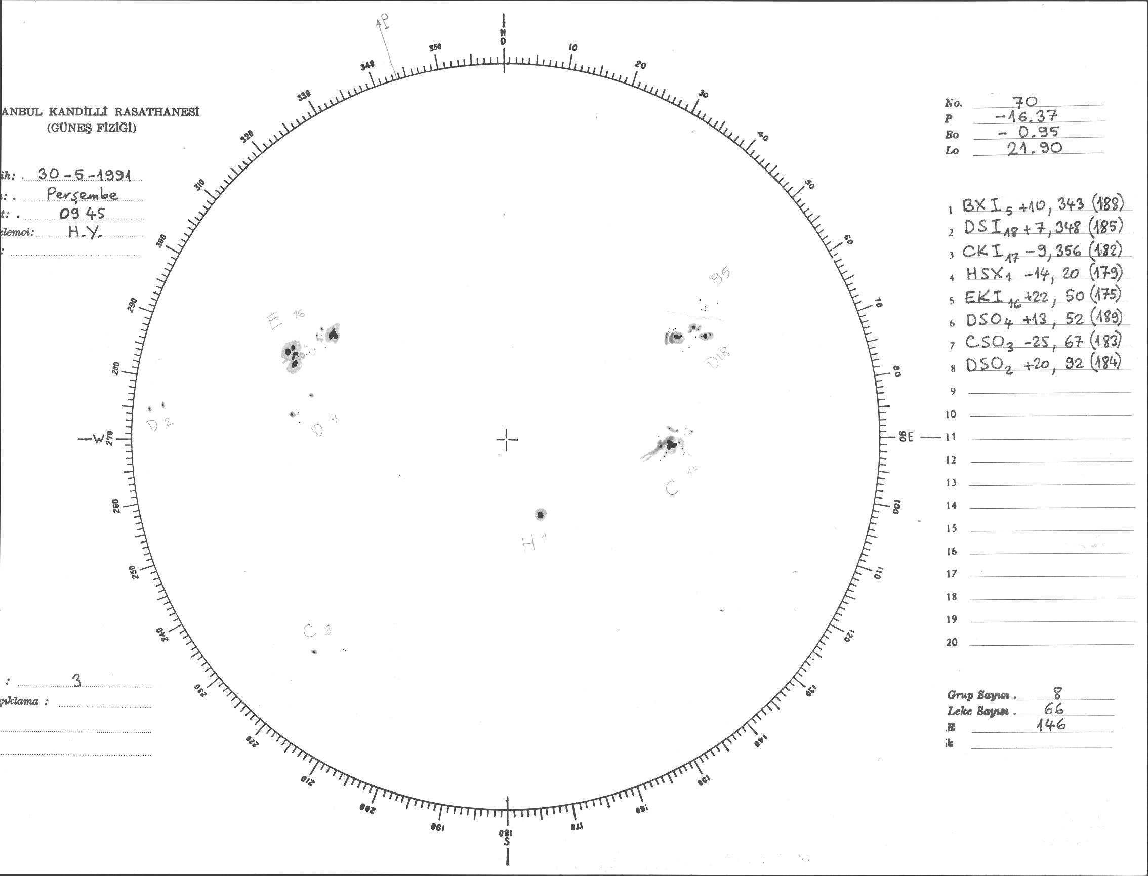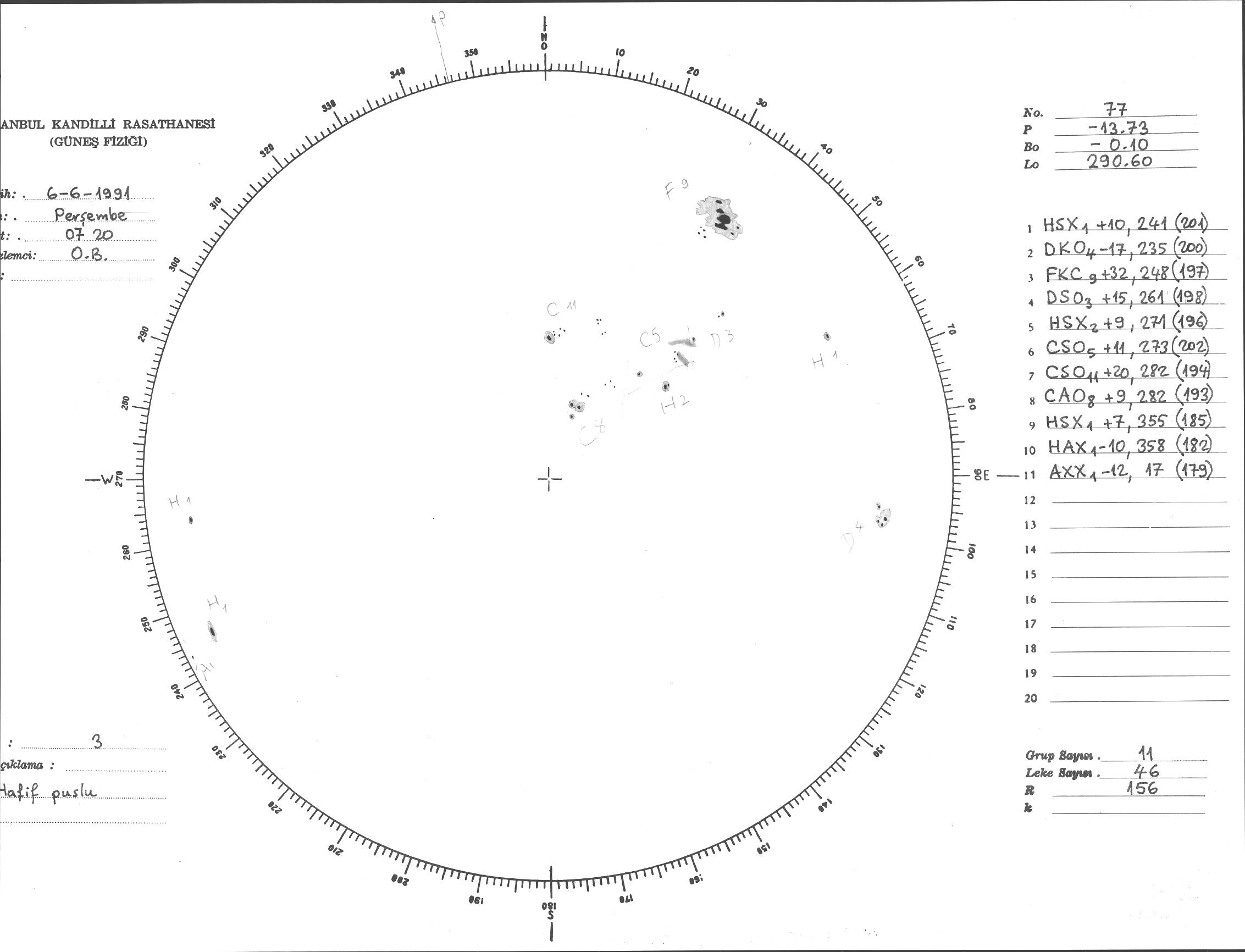 Güneş Lekesi Çizimleri / Kandilli Sunspot Drawings