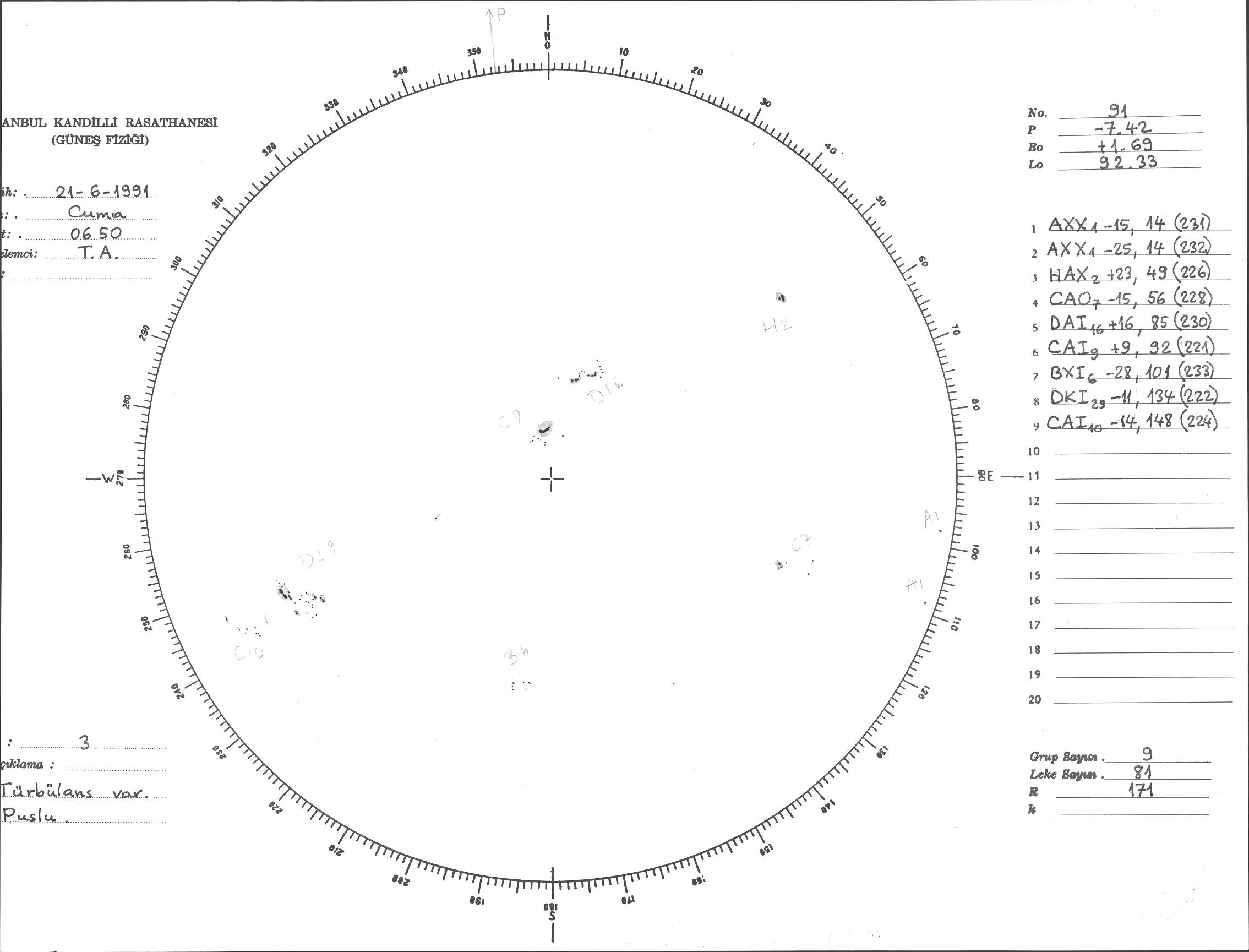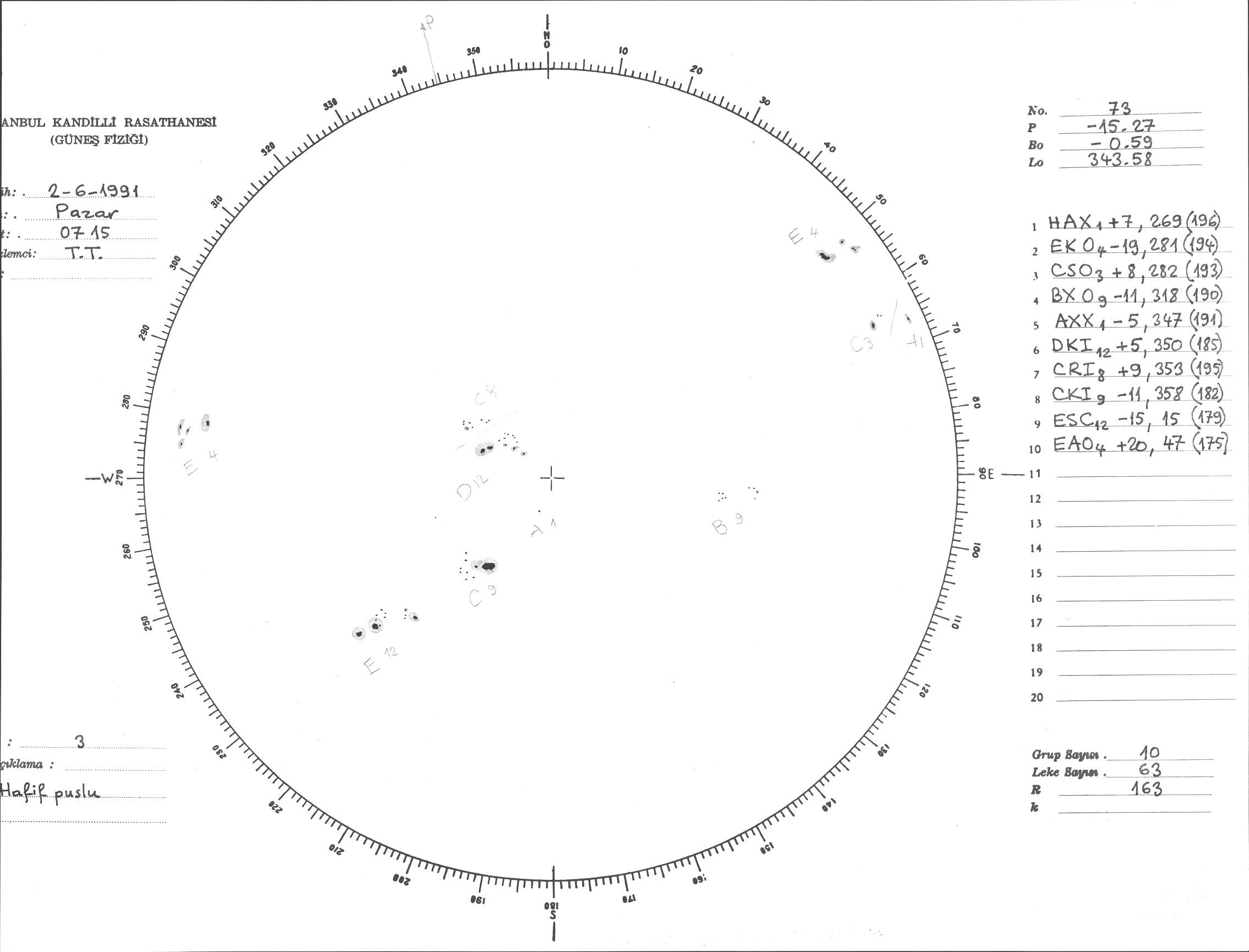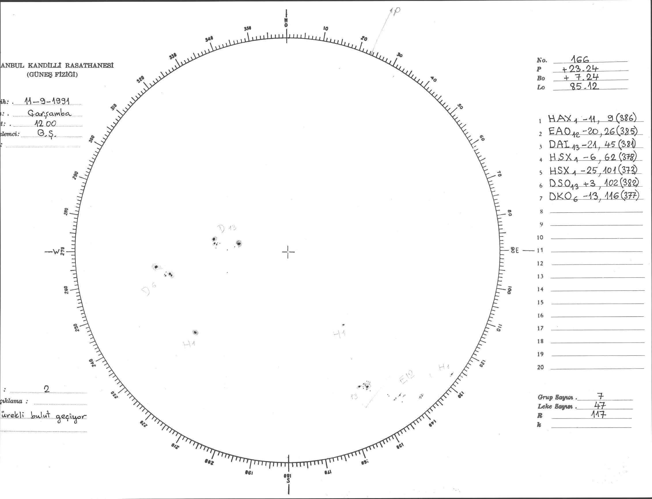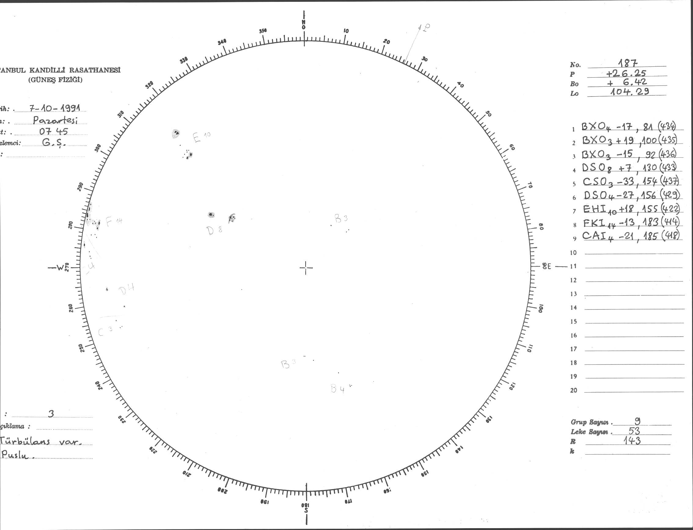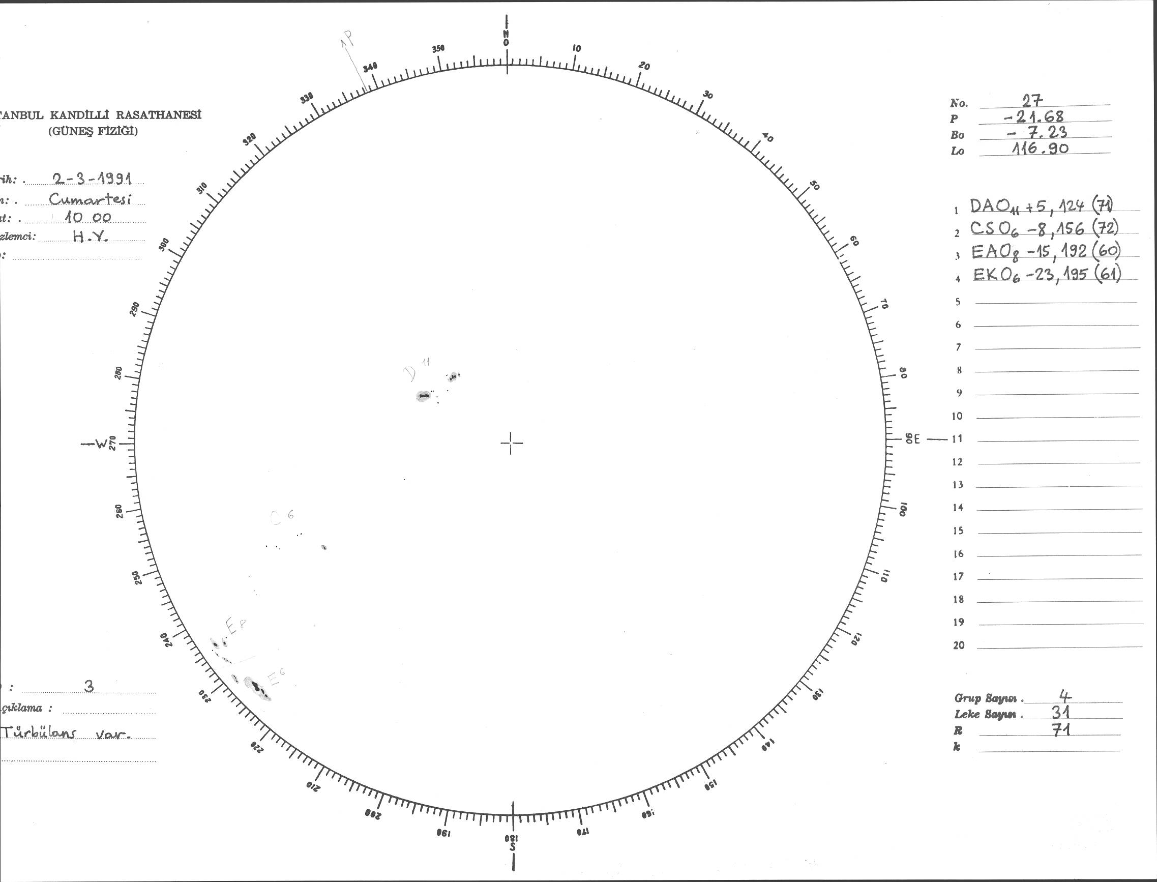 Güneş Lekesi Çizimleri / Kandilli Sunspot Drawings