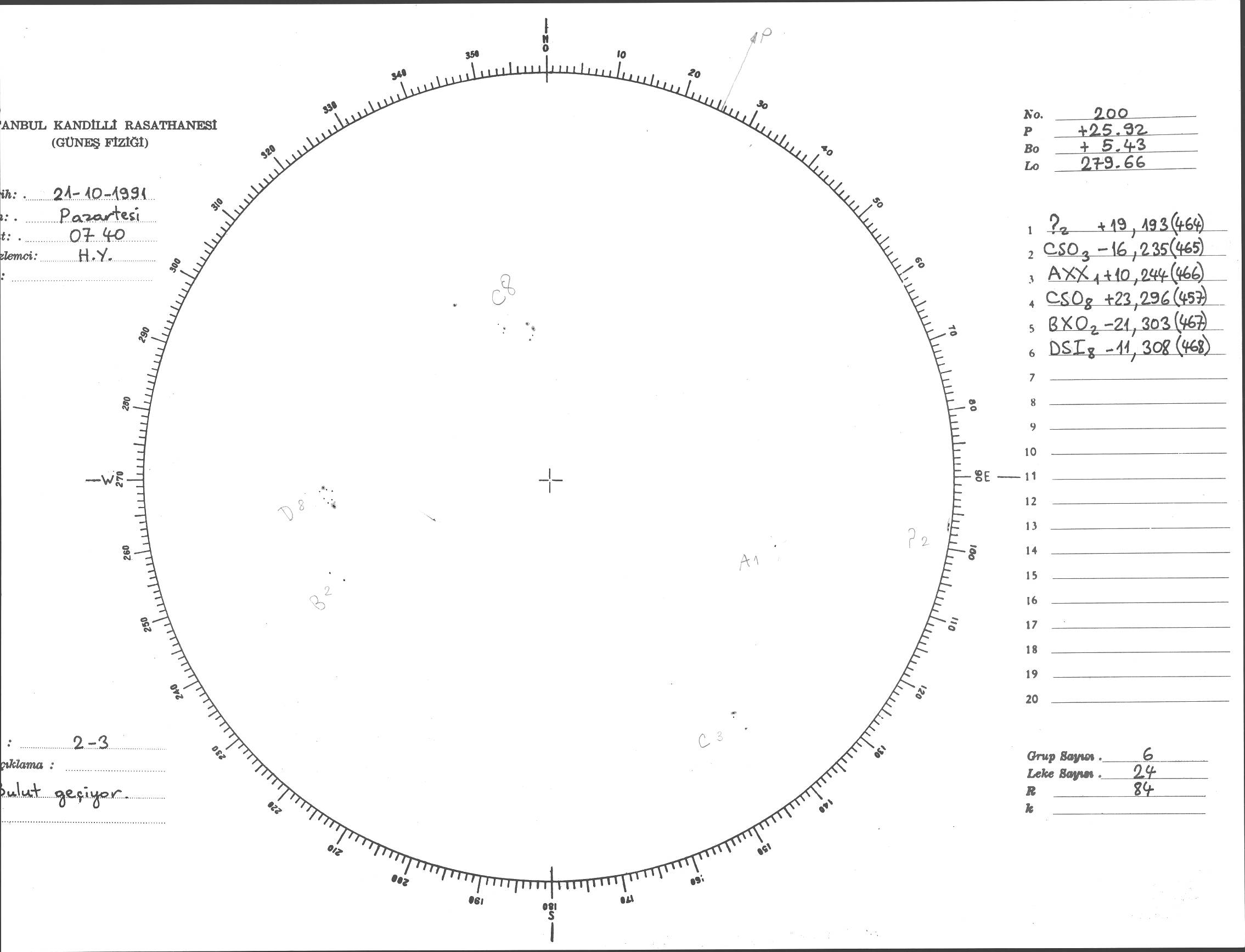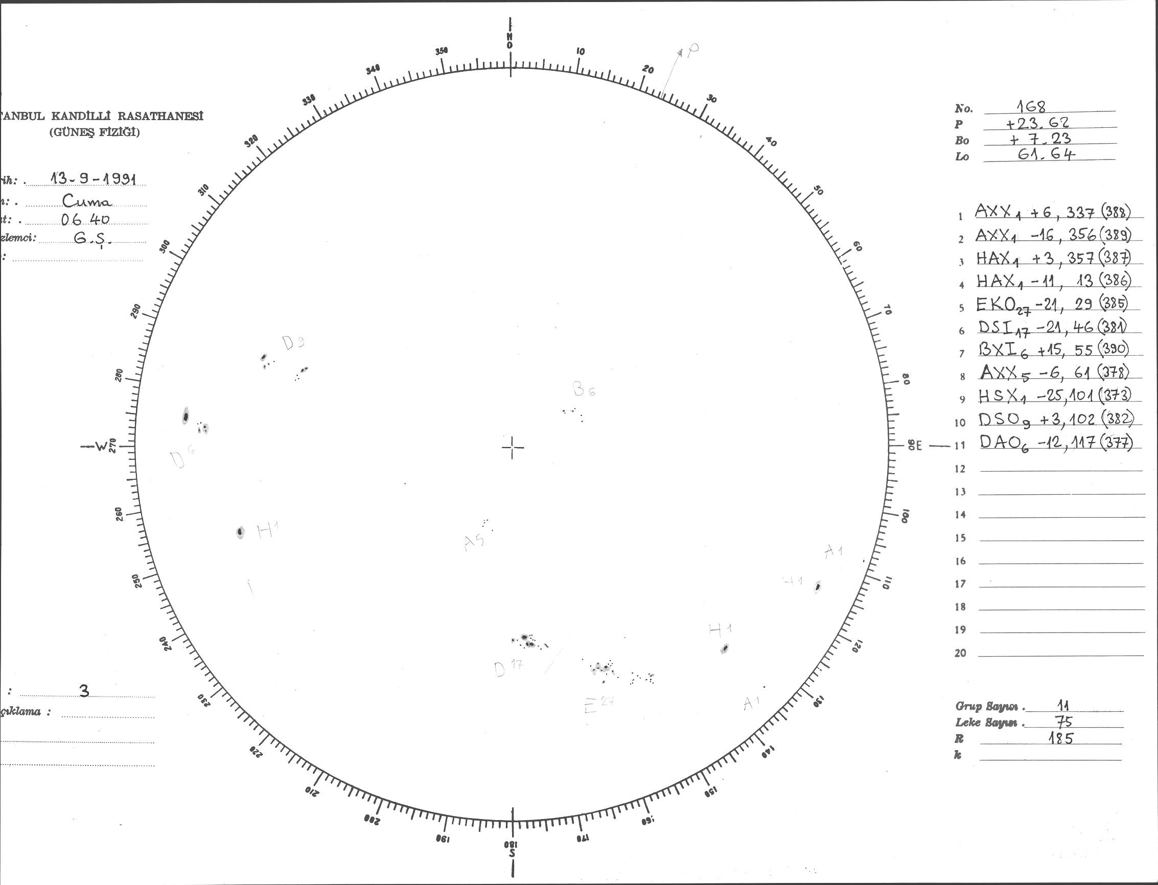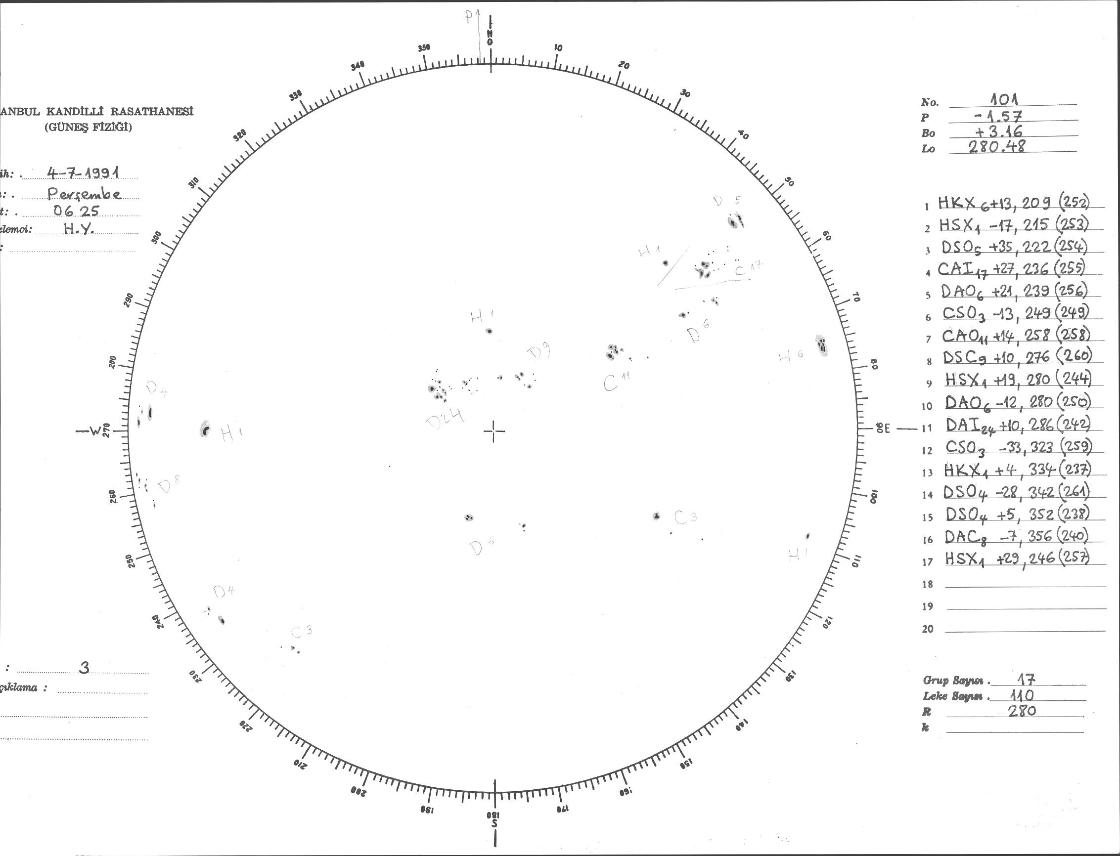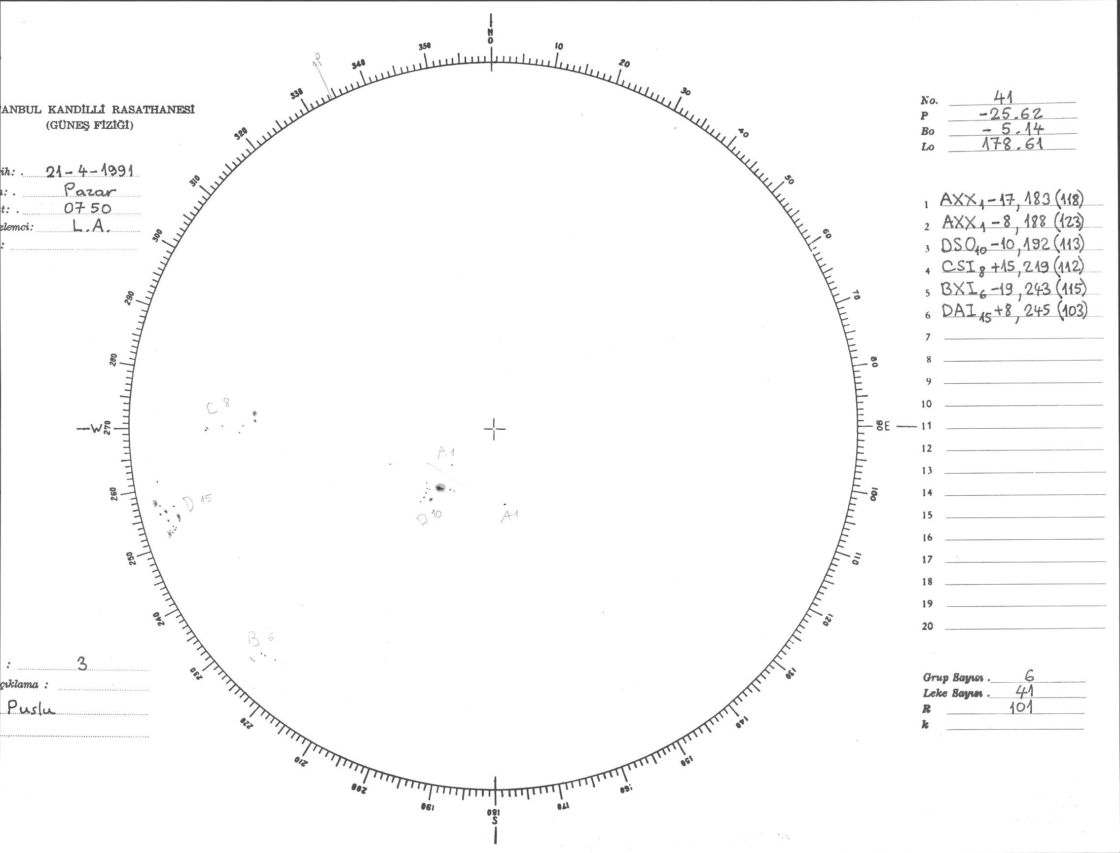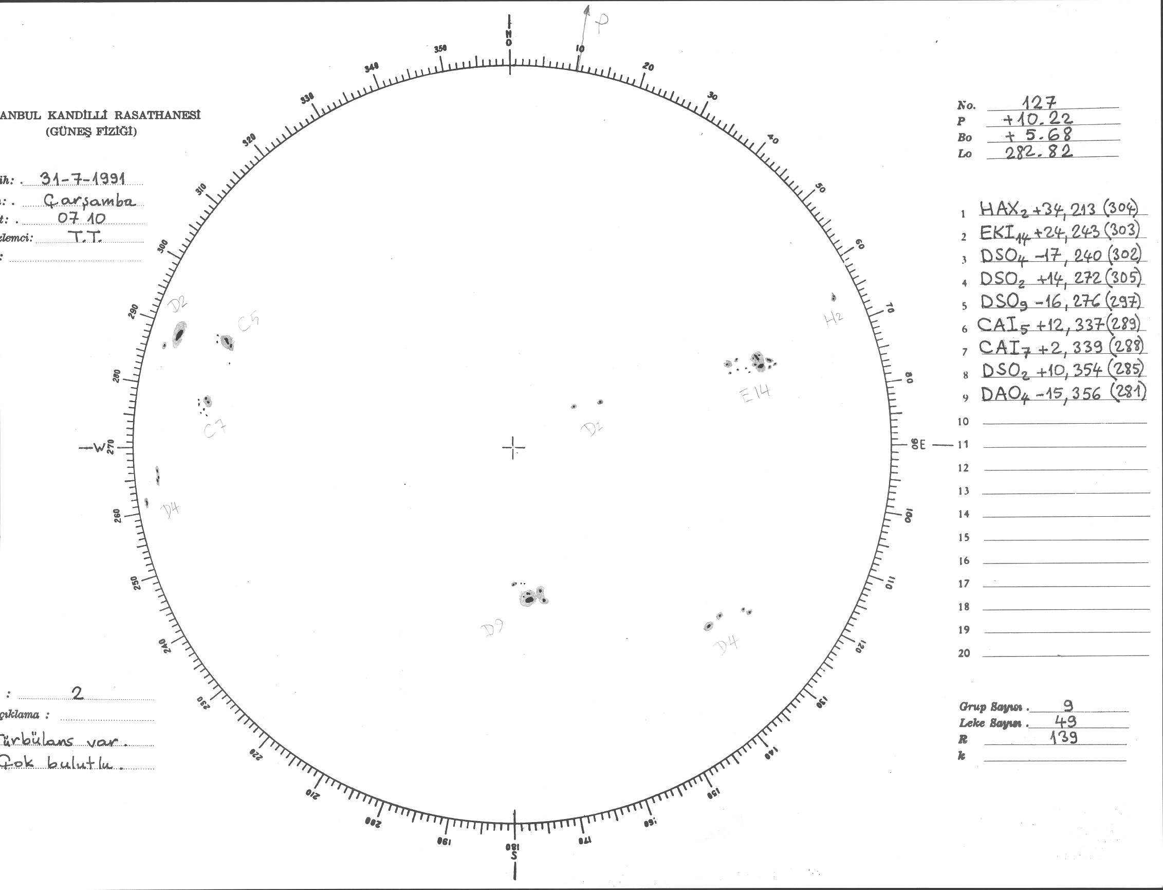 Güneş Lekesi Çizimleri / Kandilli Sunspot Drawings