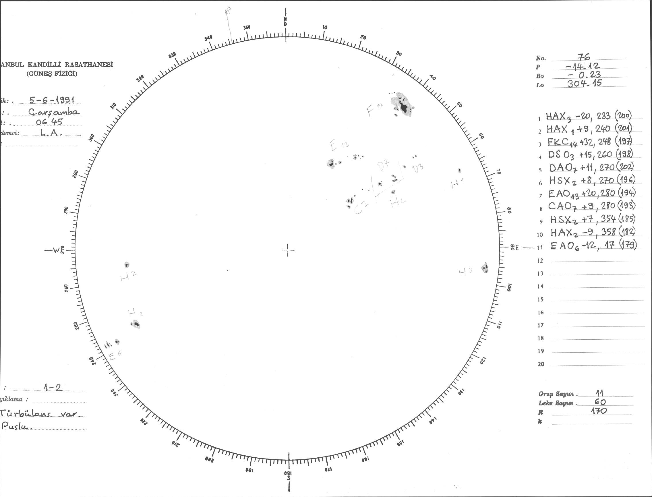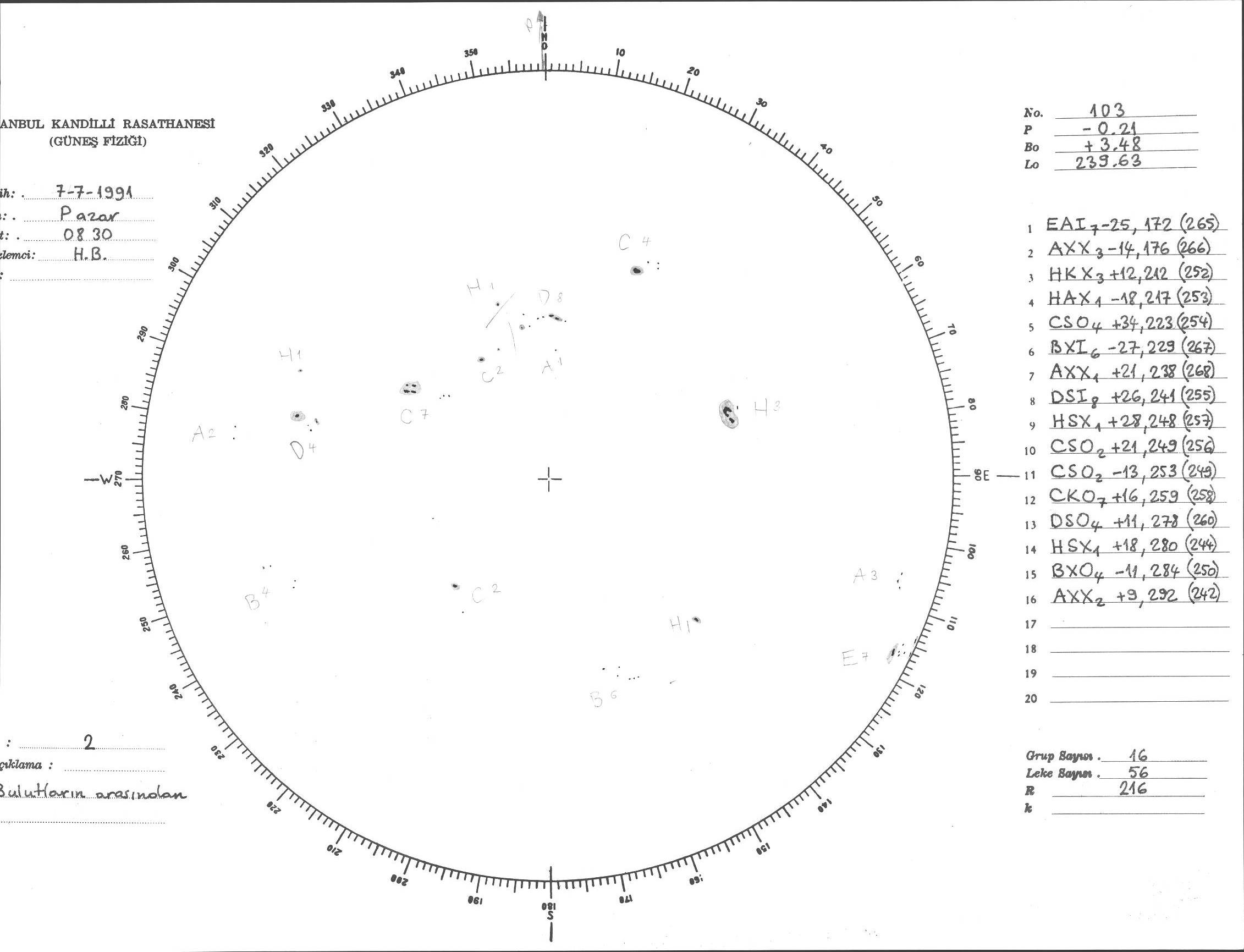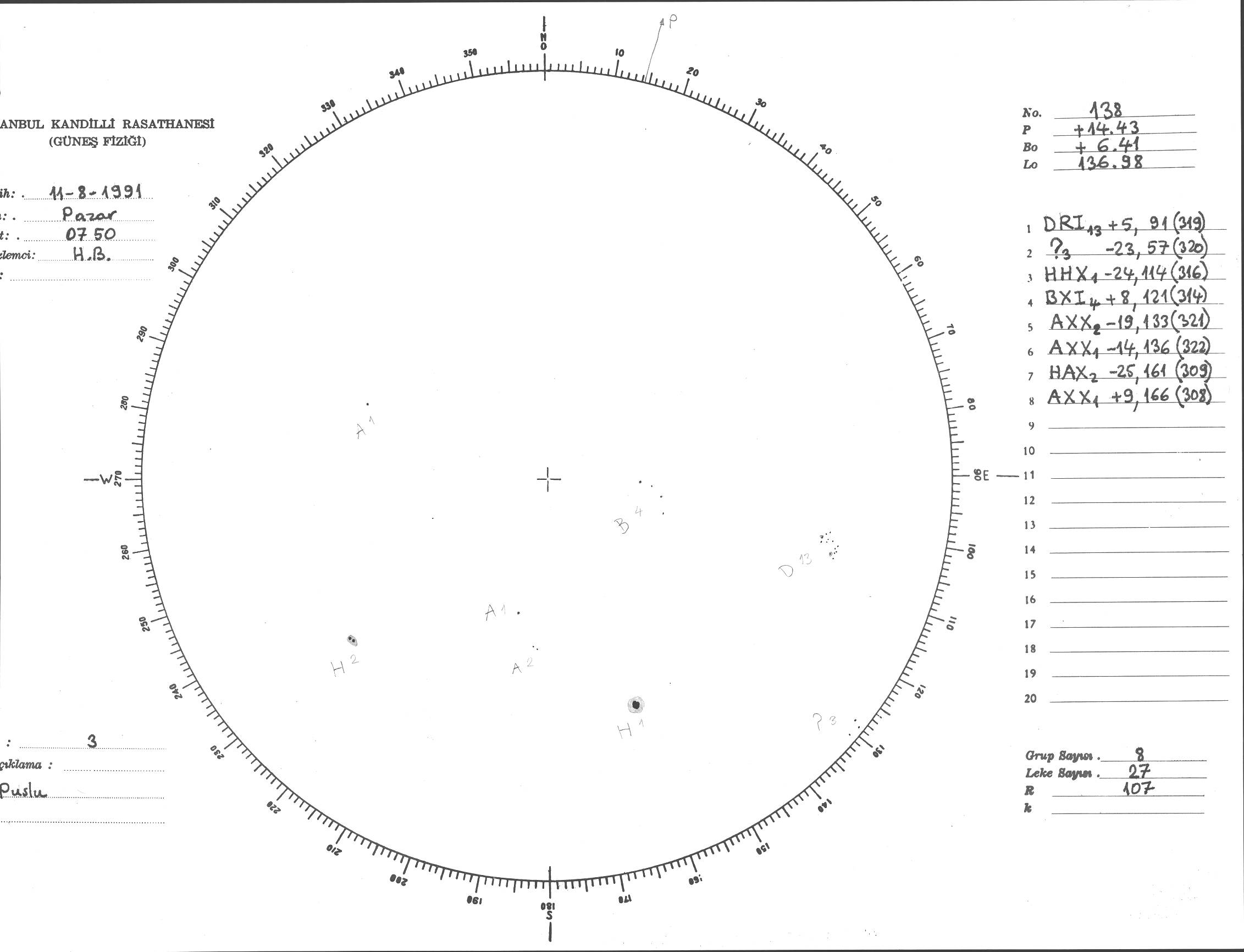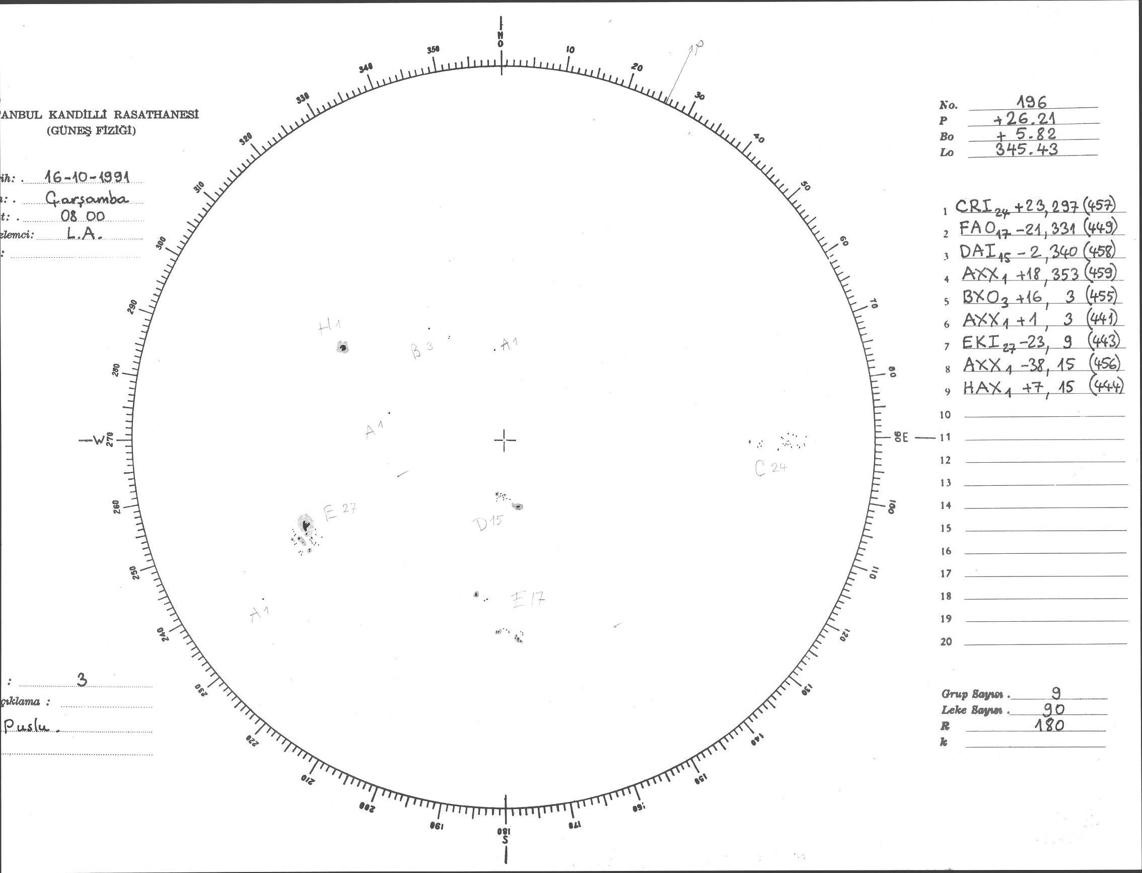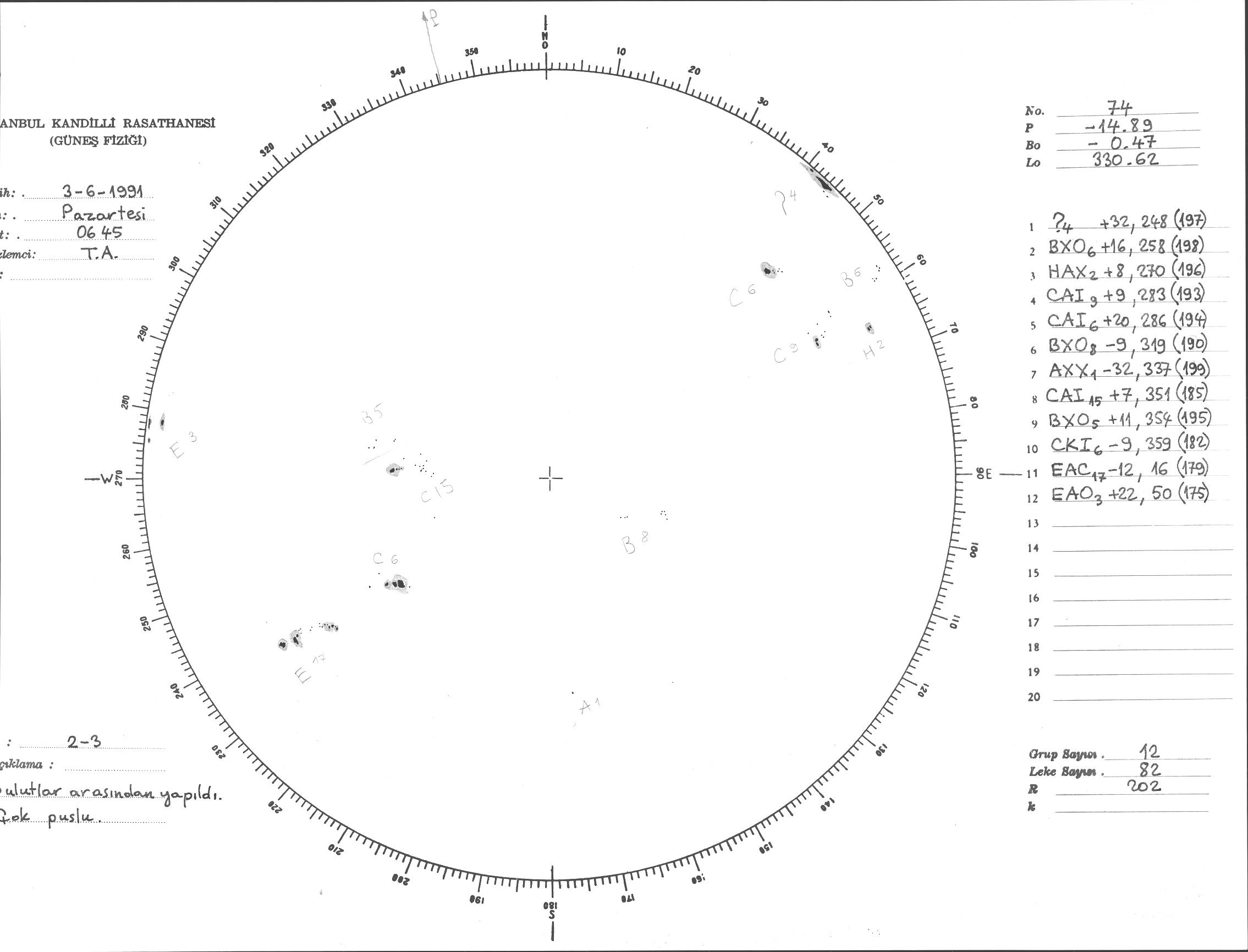 Güneş Lekesi Çizimleri / Kandilli Sunspot Drawings