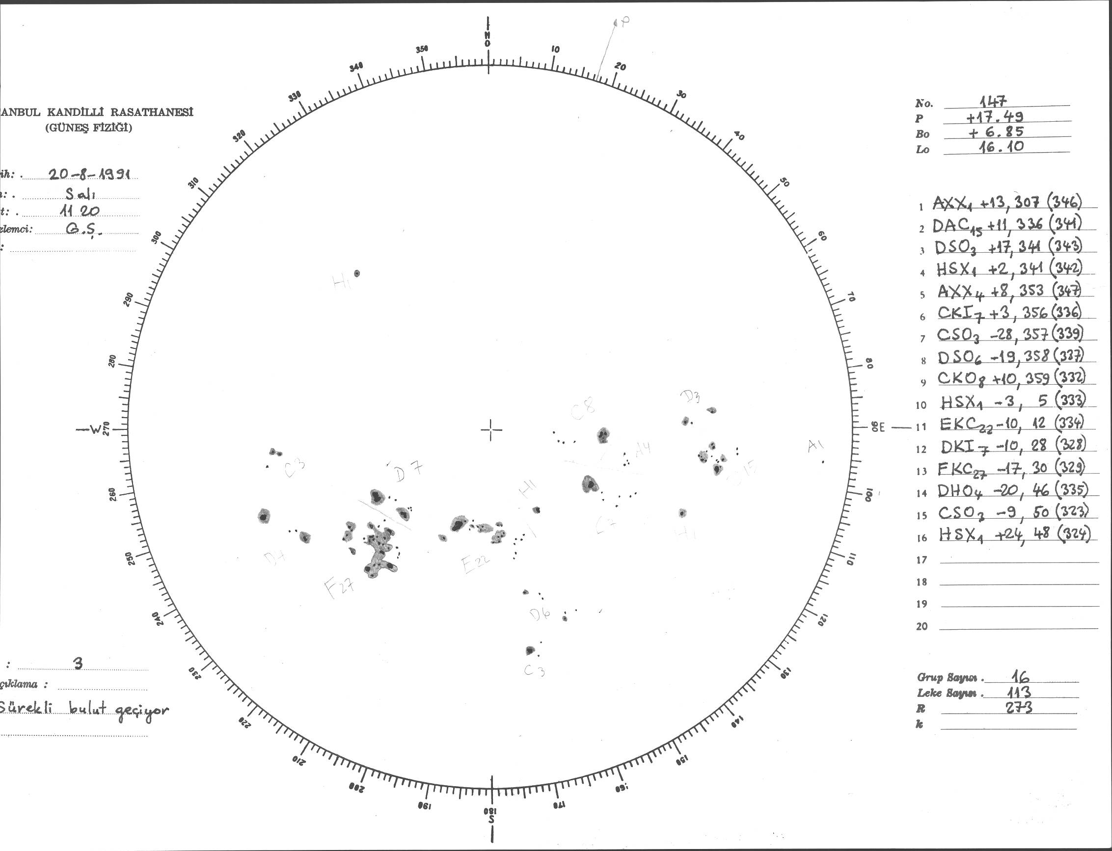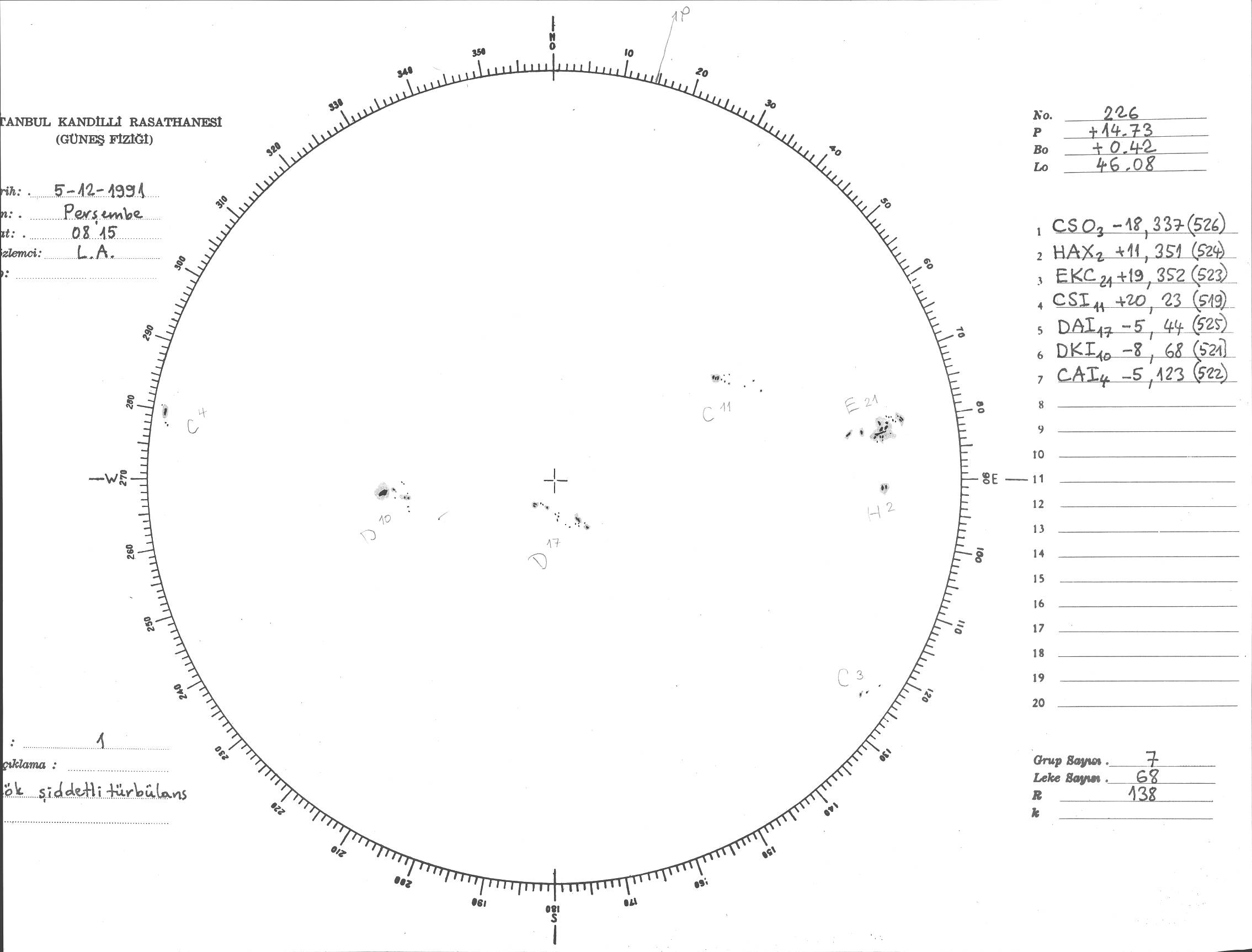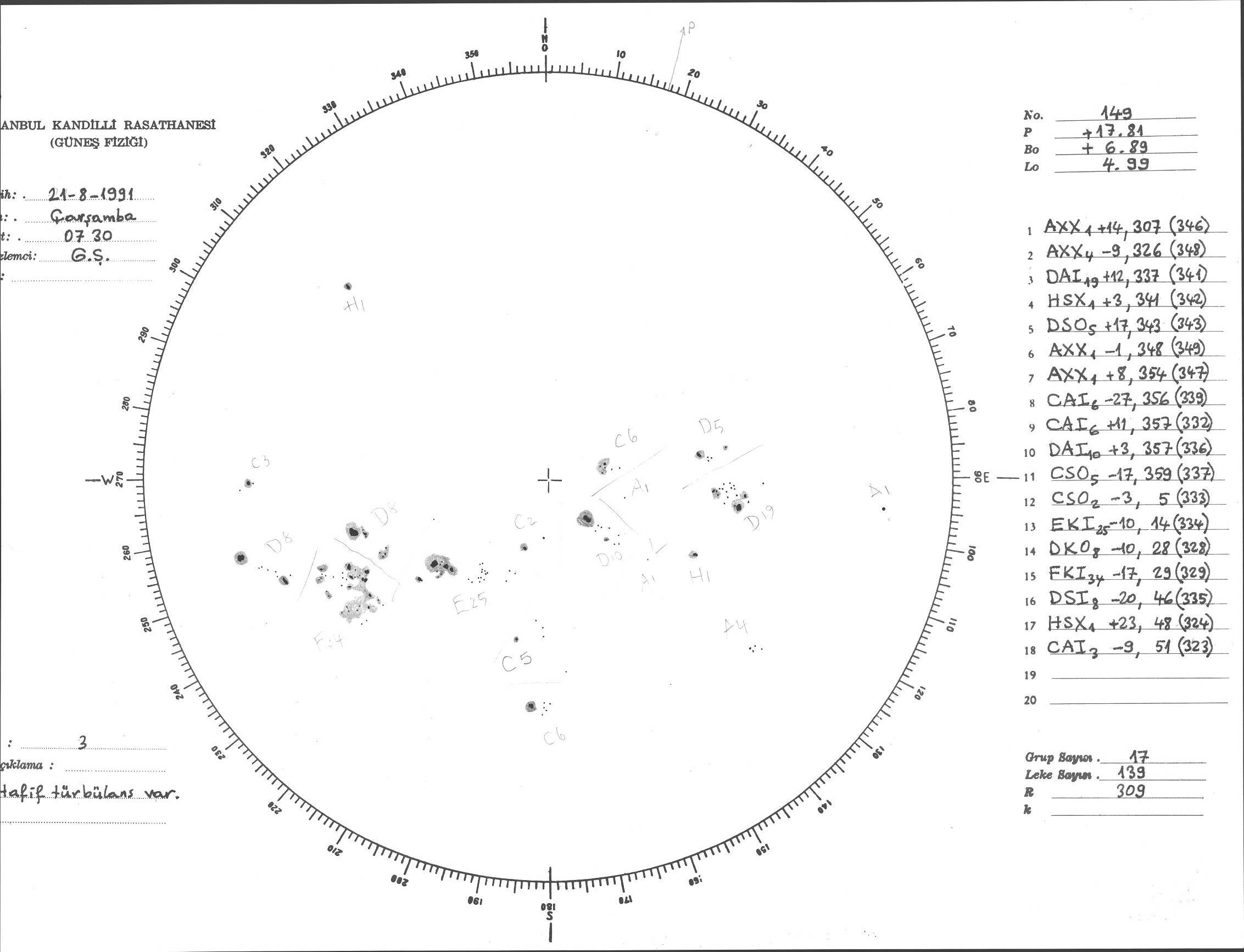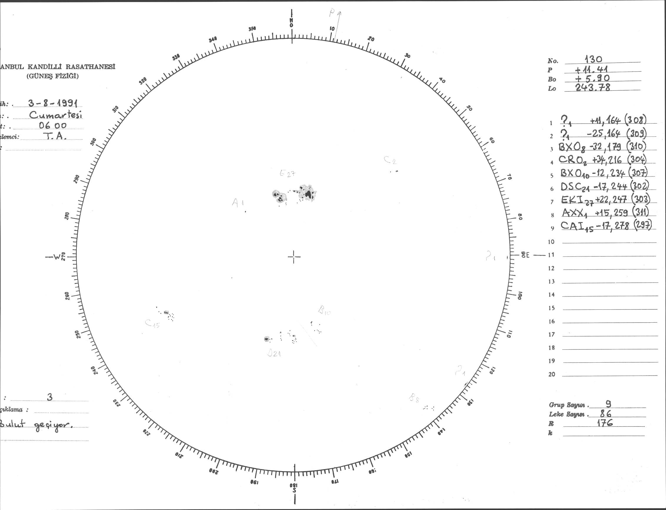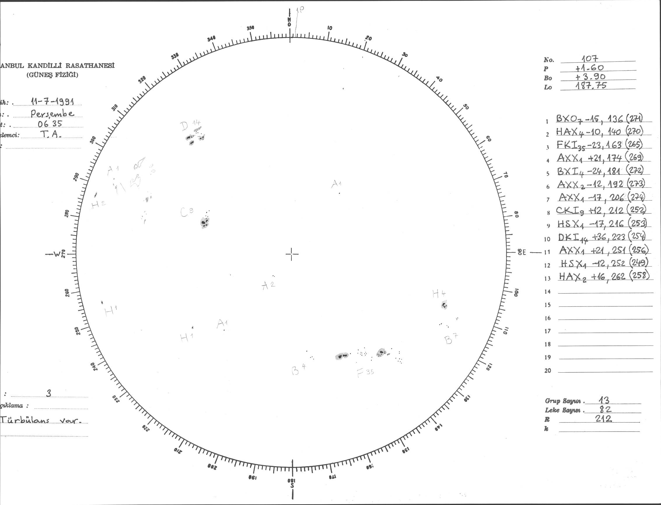 Güneş Lekesi Çizimleri / Kandilli Sunspot Drawings