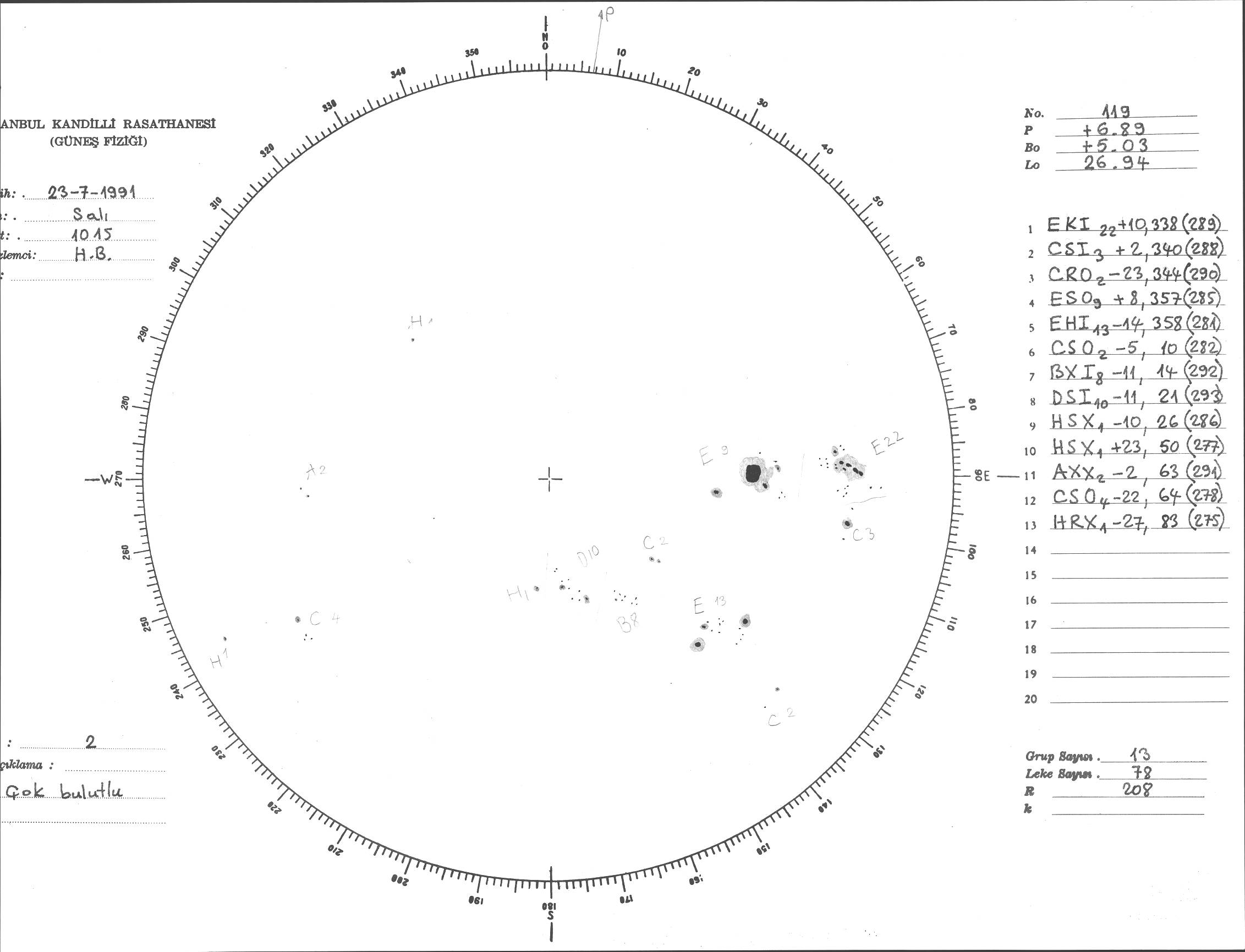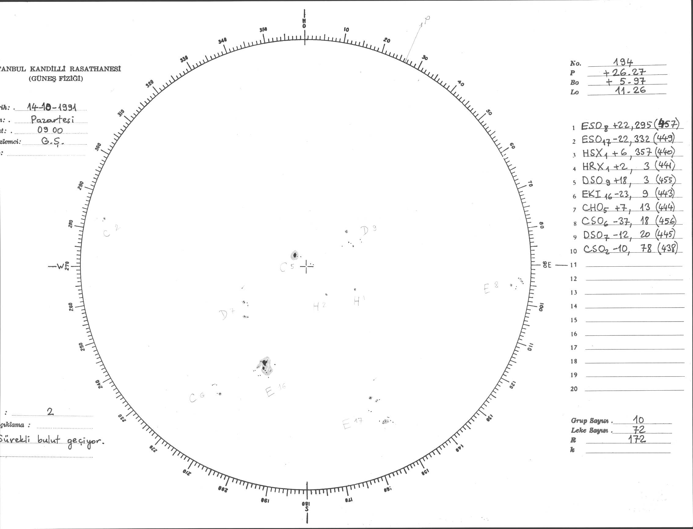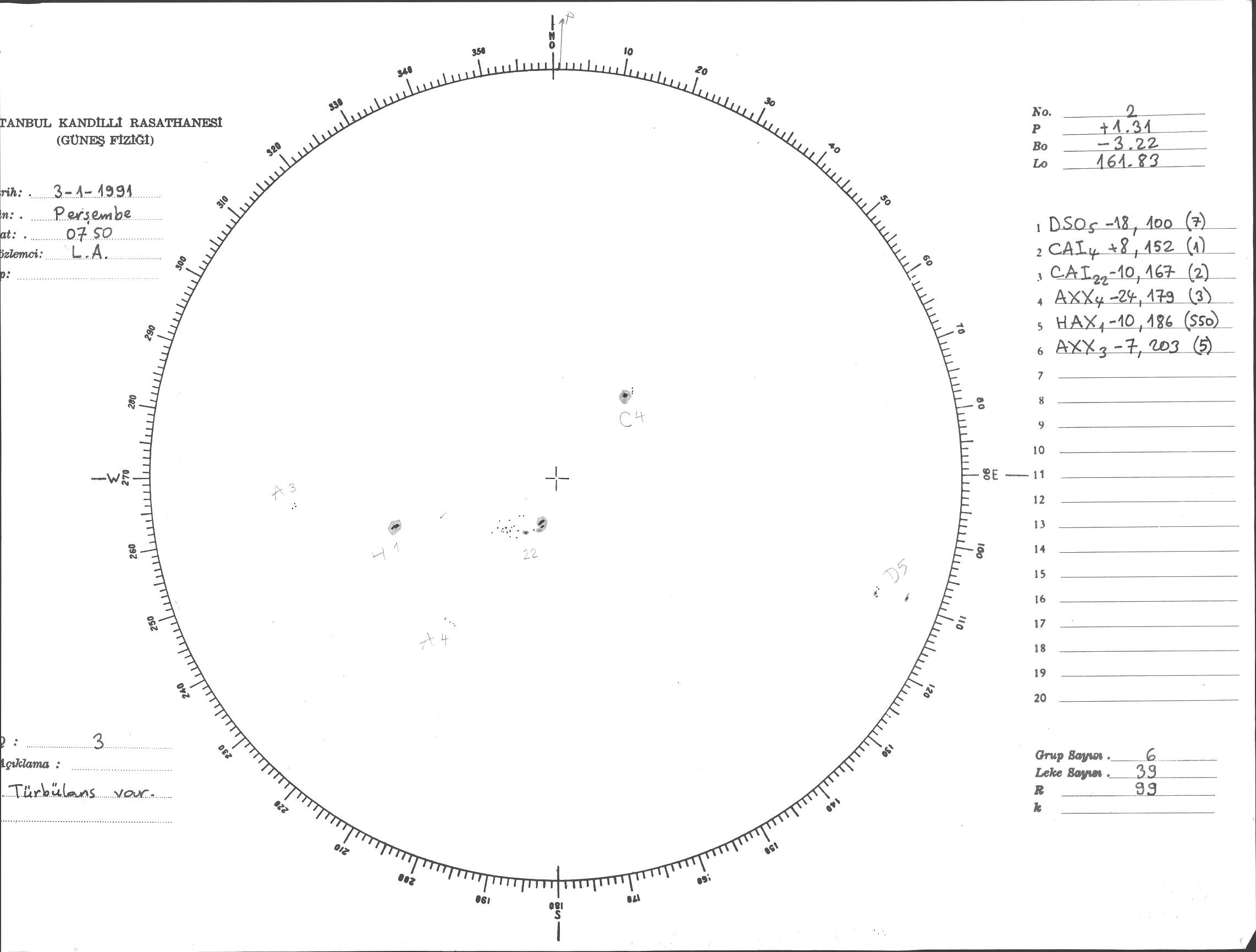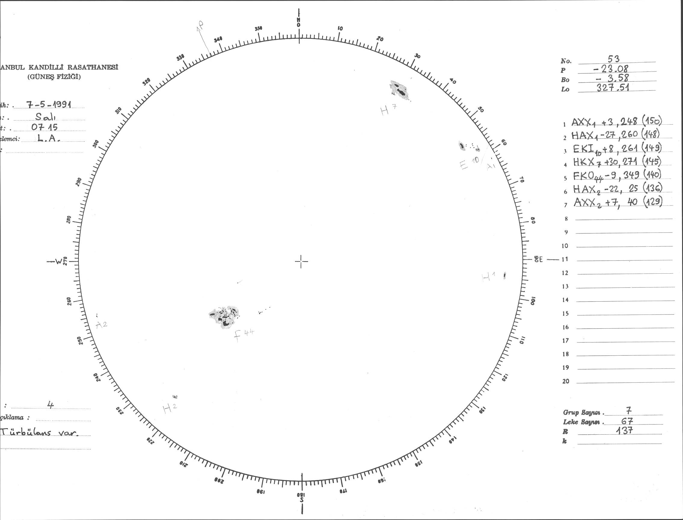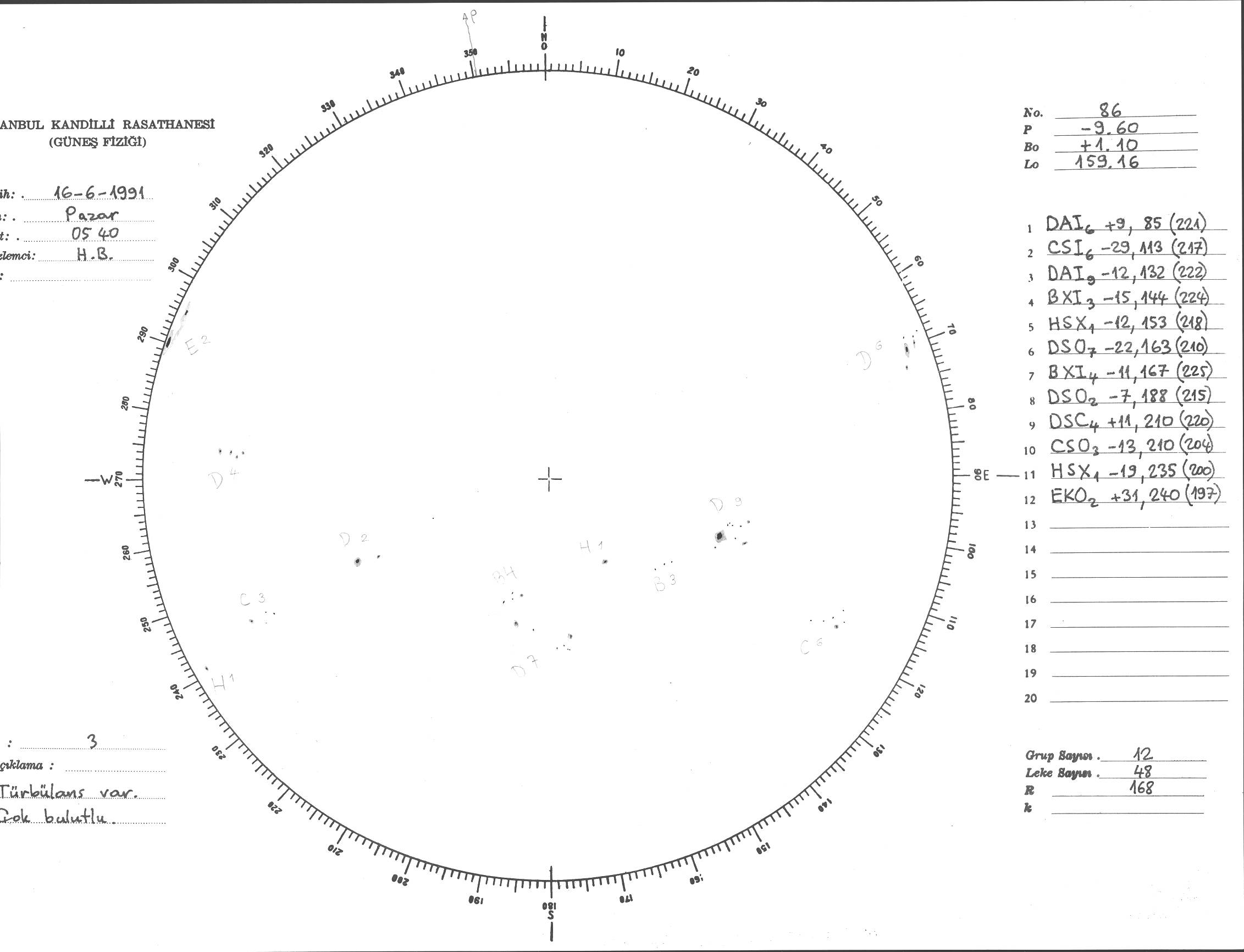 Güneş Lekesi Çizimleri / Kandilli Sunspot Drawings