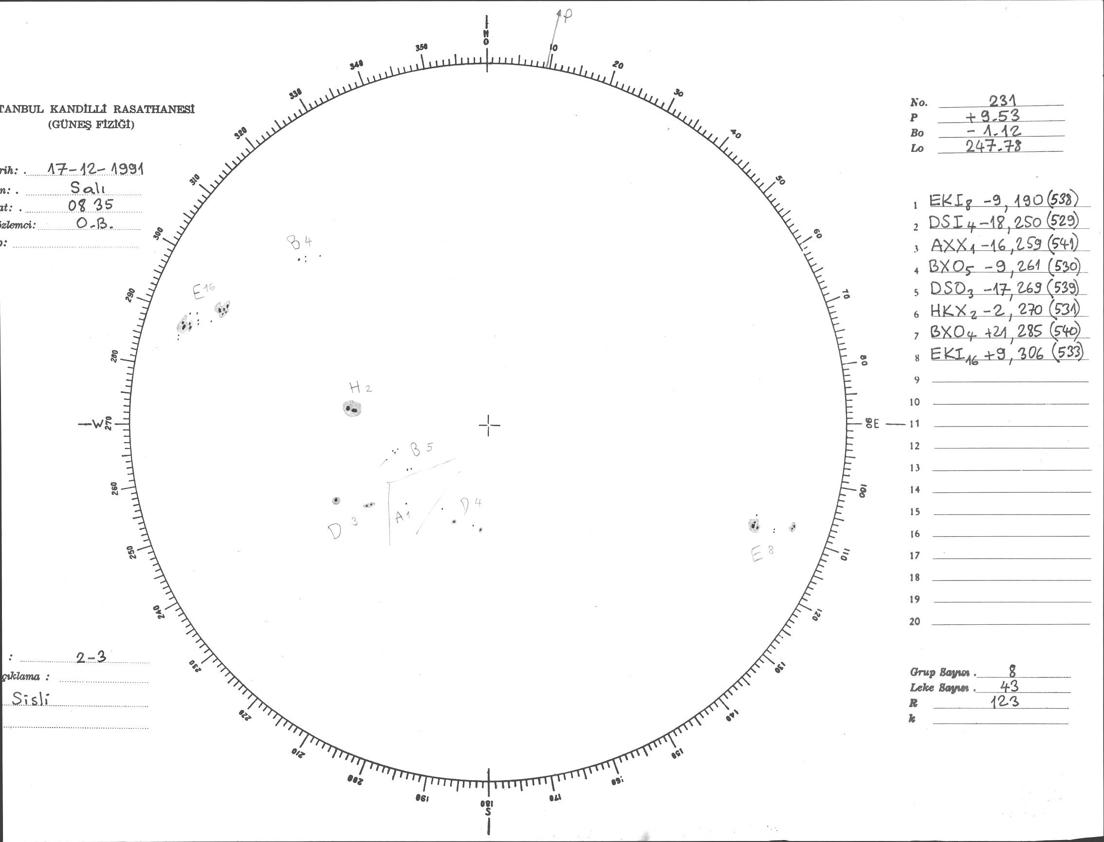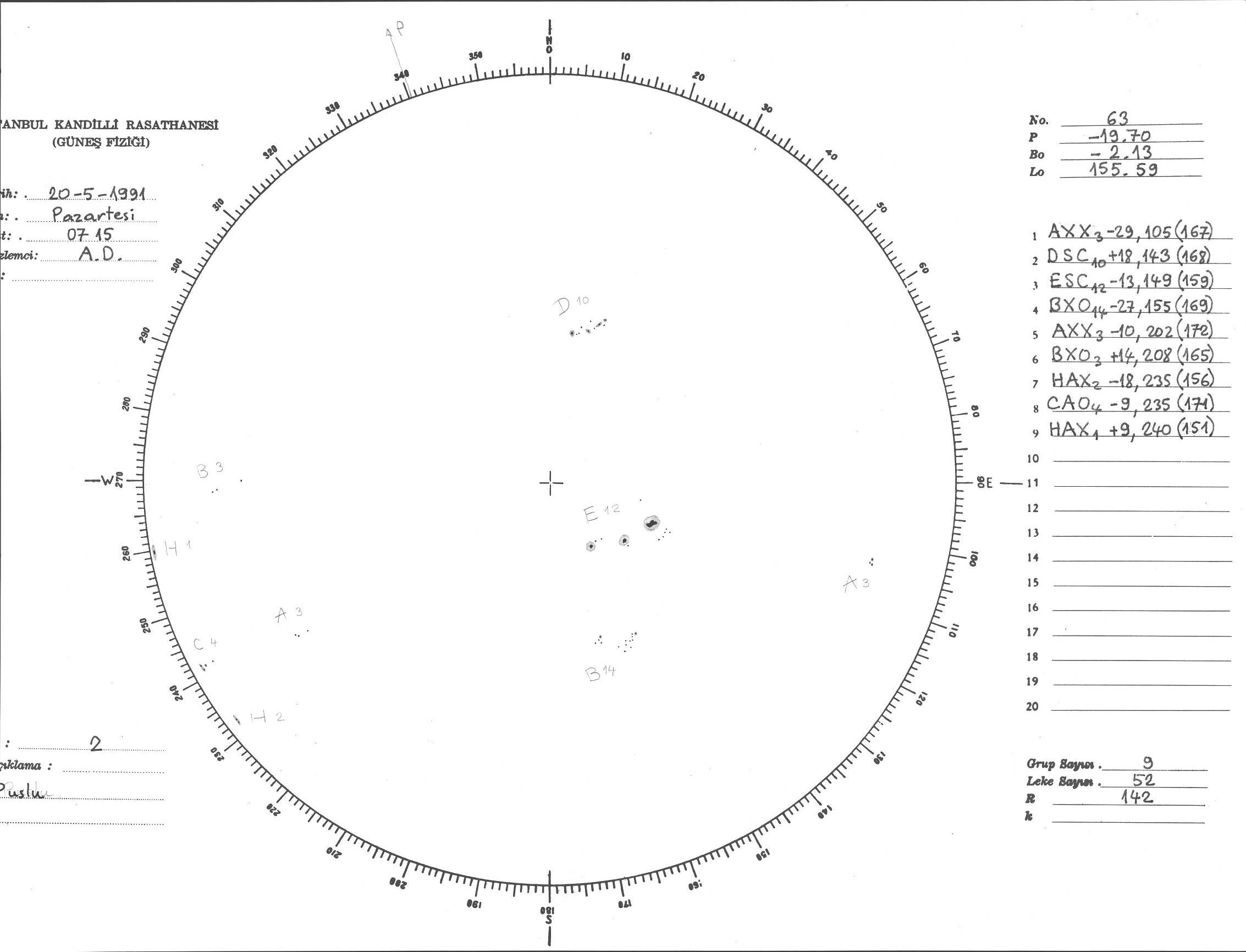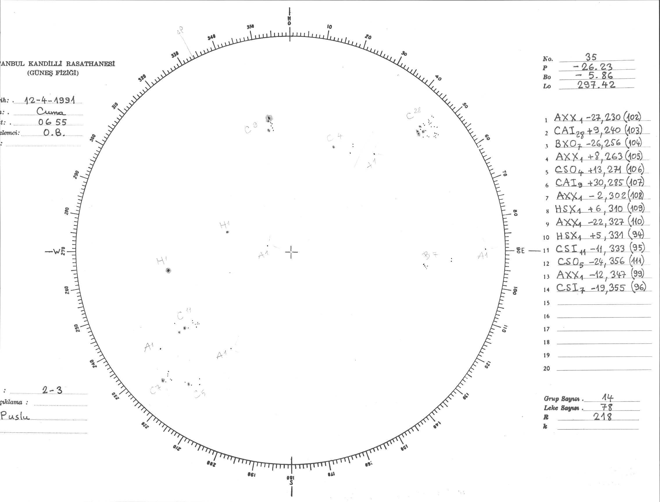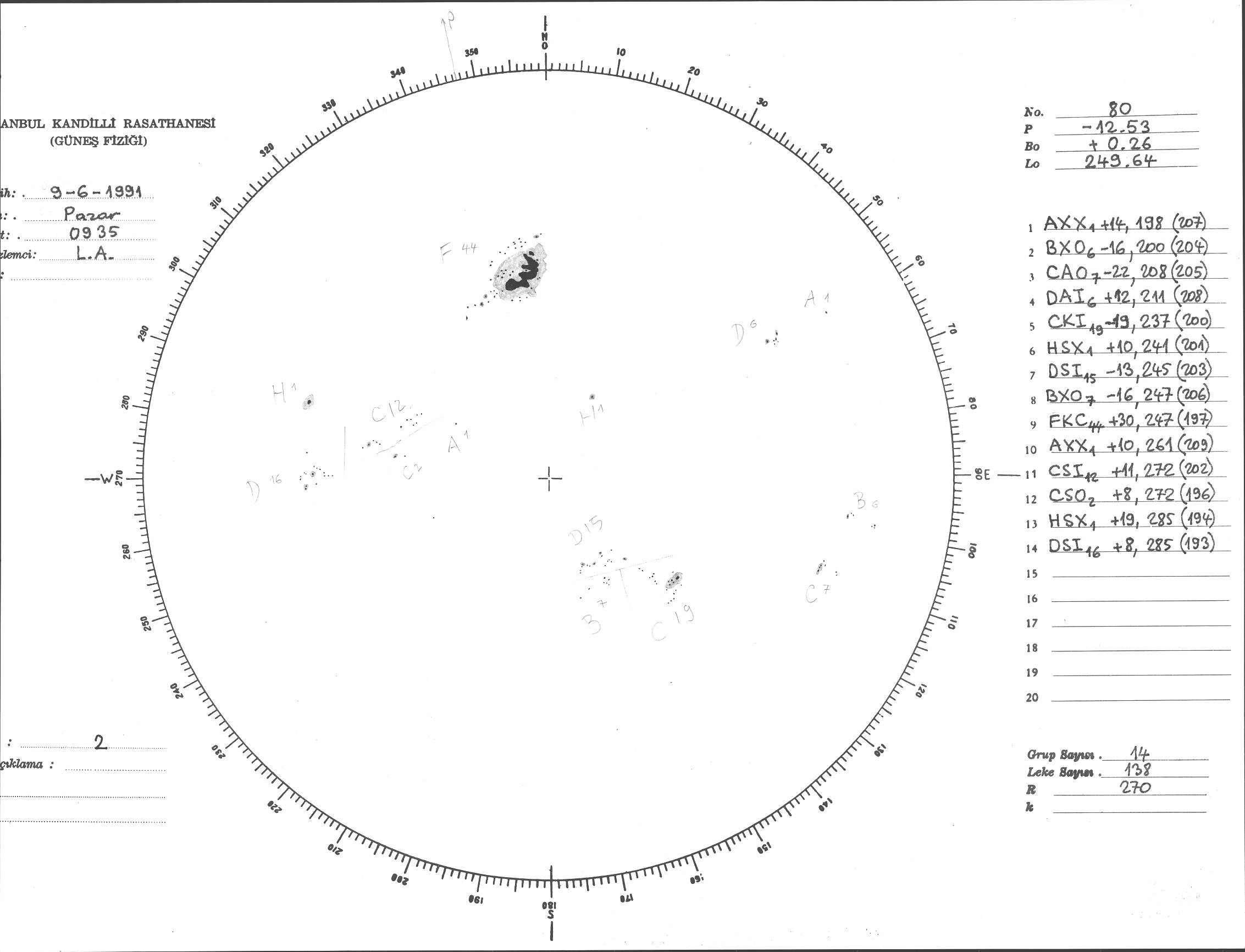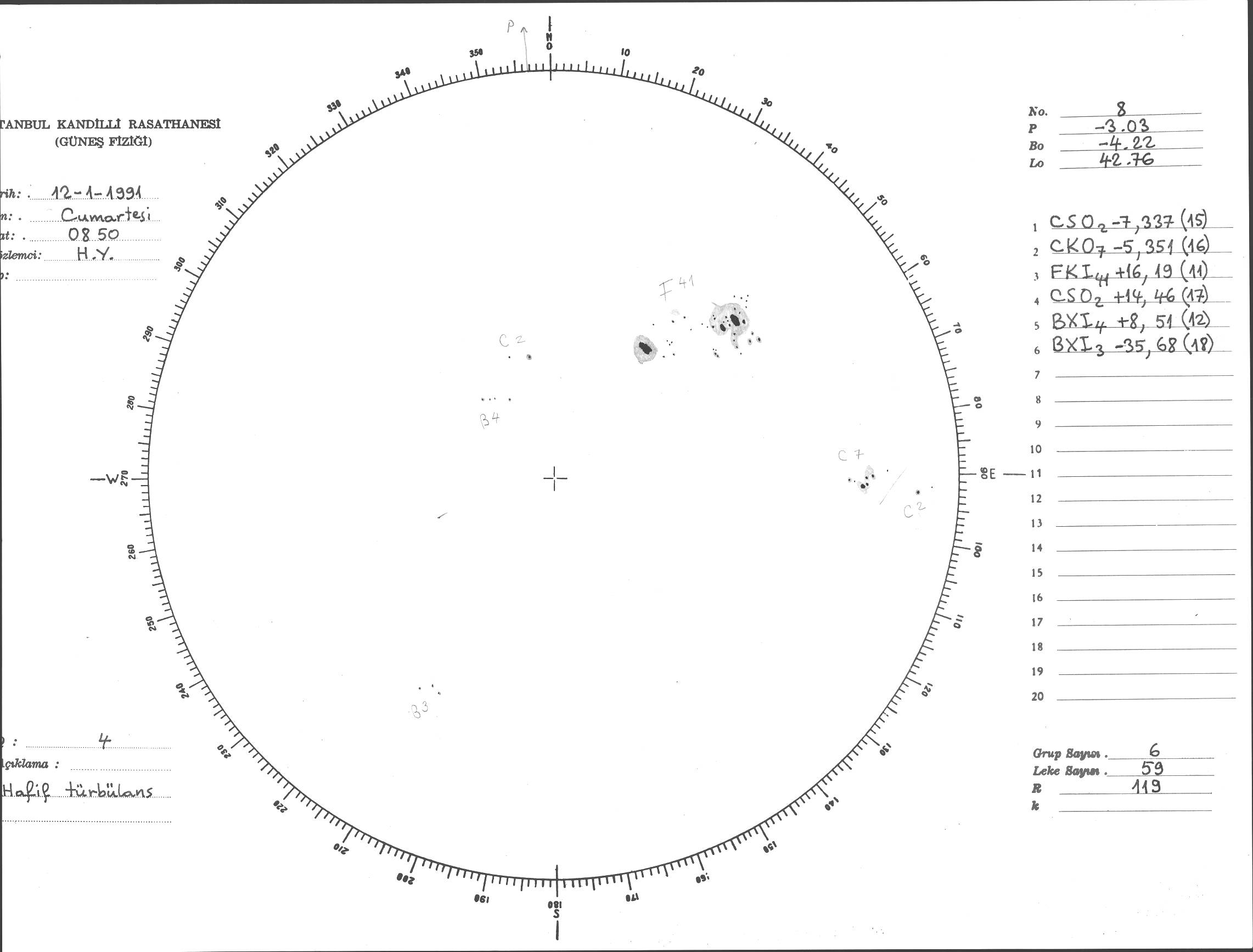 Güneş Lekesi Çizimleri / Kandilli Sunspot Drawings